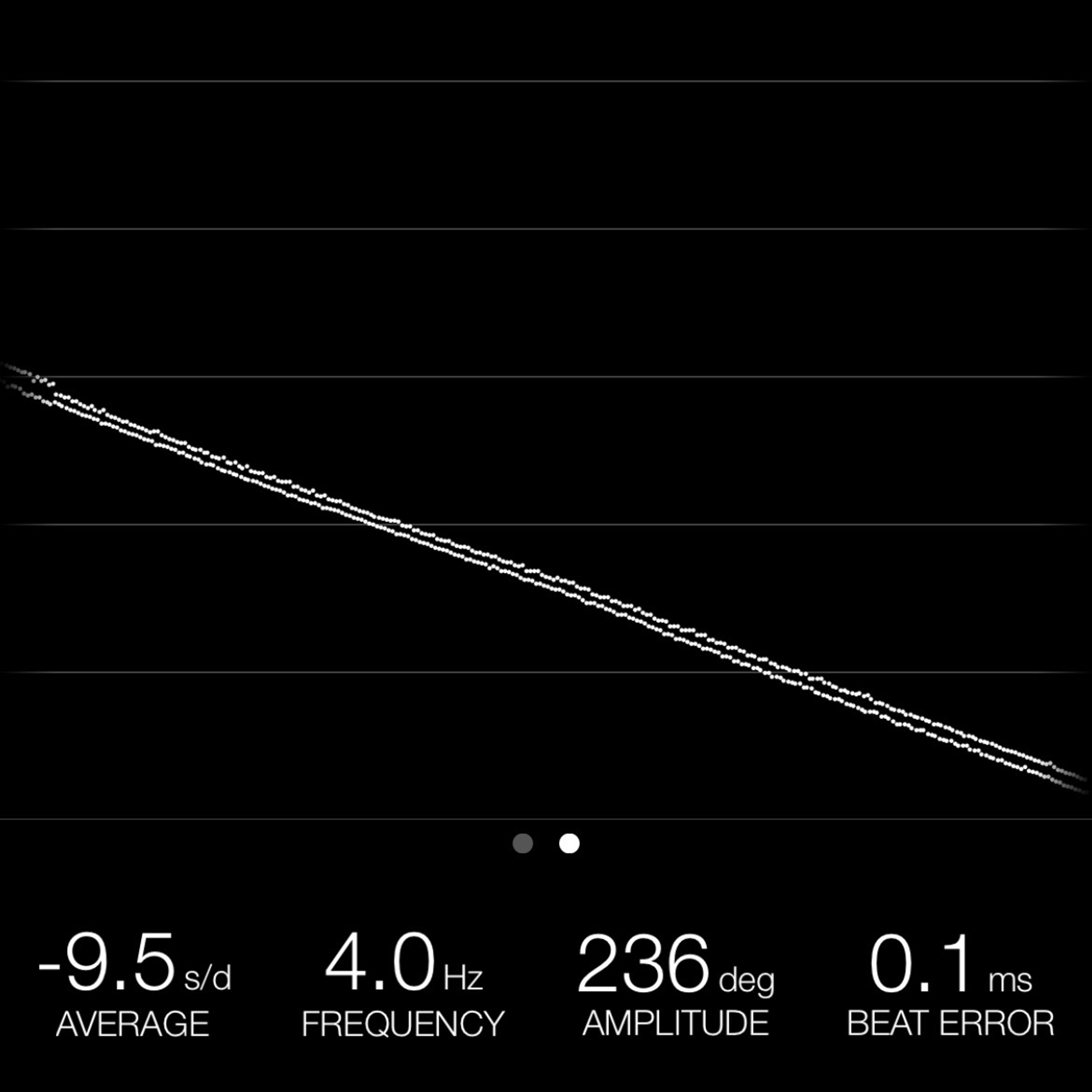 This reading was taken (crown down) with a ONEOF Accuracy Boutique Edition timing machine at time of cataloging. It is provided as a courtesy only, and shall not be construed as a warranty or guarantee of any kind. Please refer to our terms and conditions of sale for more information.