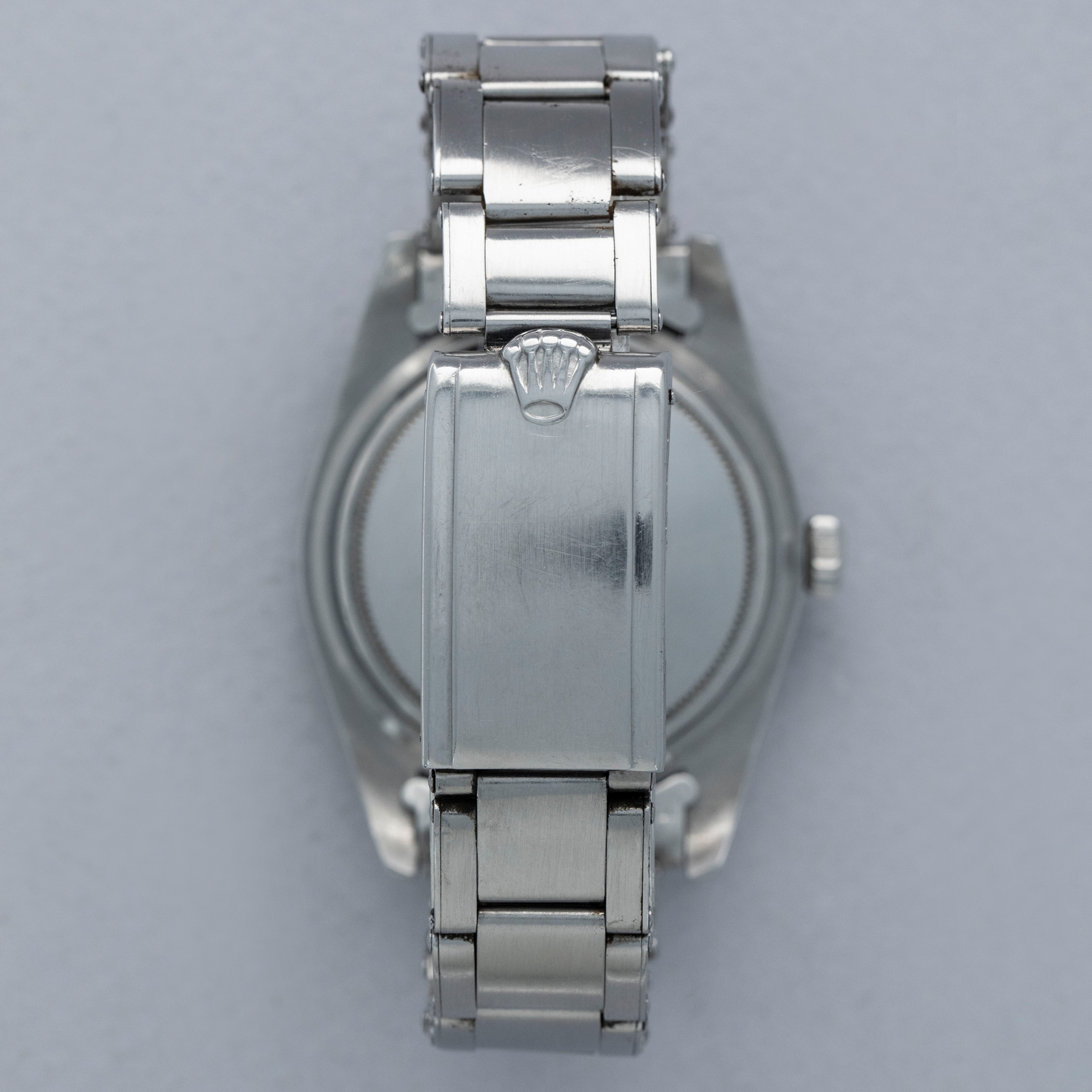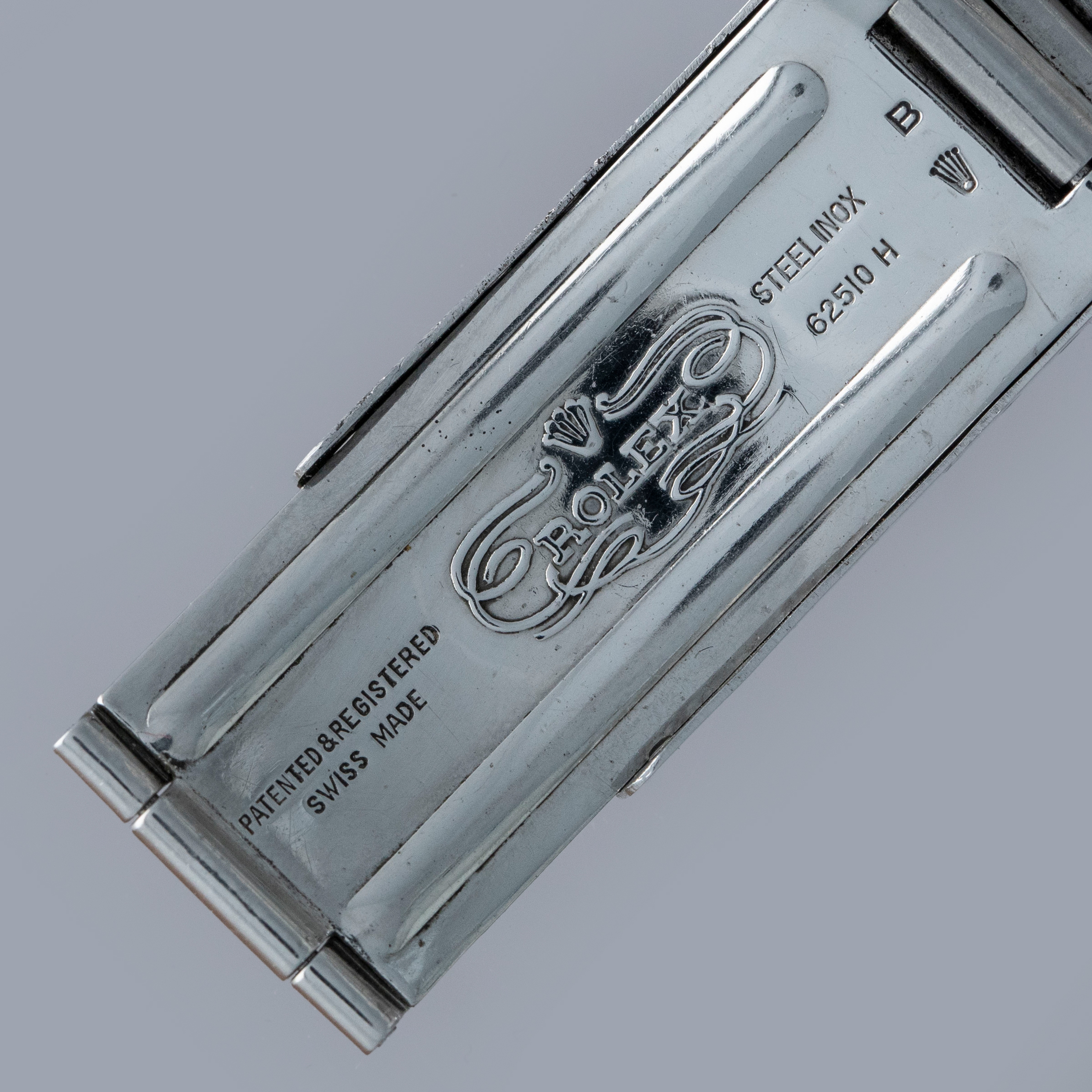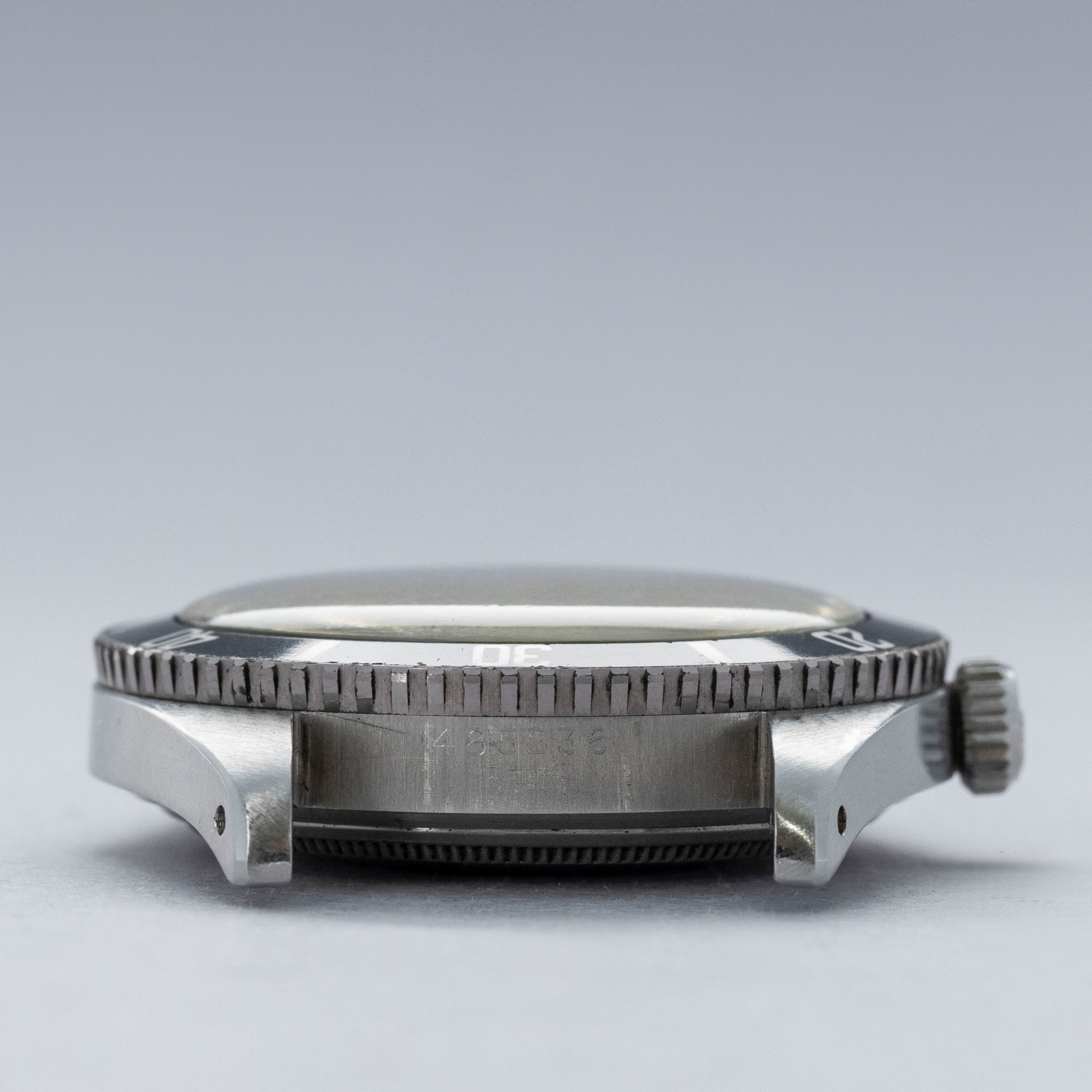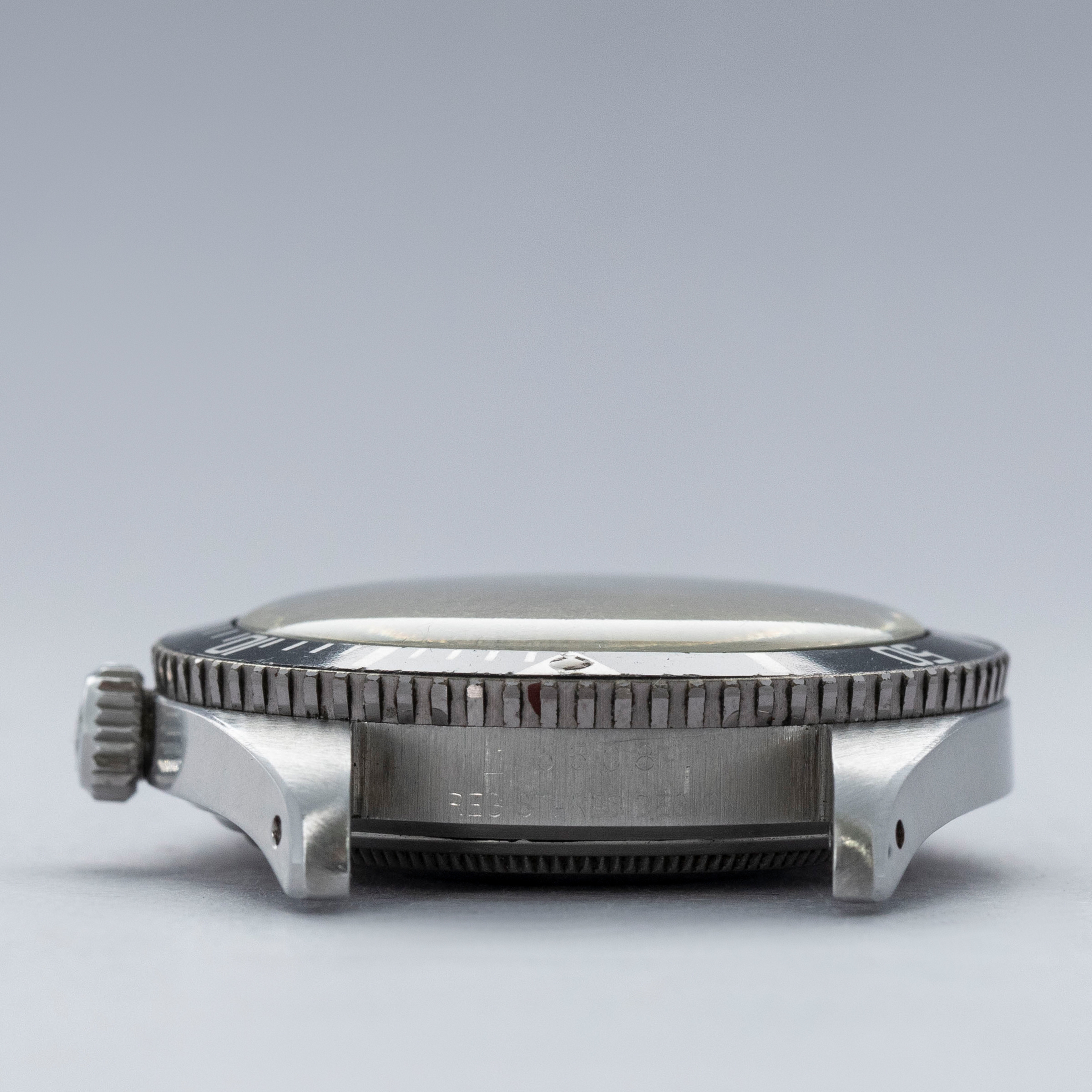 The watch is in overall excellent condition. The steel case remains well defined with light surface marks as expected of a watch of this vintage. The bezel is well defined, and the later black insert is very clean with a tight crack visible in the "triangle". The SWISS T 25 dial shows light surface aging, with luminous that has aged to a pleasing dark tone. The tone of luminous is slightly darker in the lower left quadrant. Hands have a luminous shade similar in tone with some cracks and discolorations. The Swiss rivet bracelet has been repaired at some point and the clasp comes from a later Jubilee bracelet. The bracelet has 10 links and fits an approximately 6 3/4” wrist. It shows light stretch.