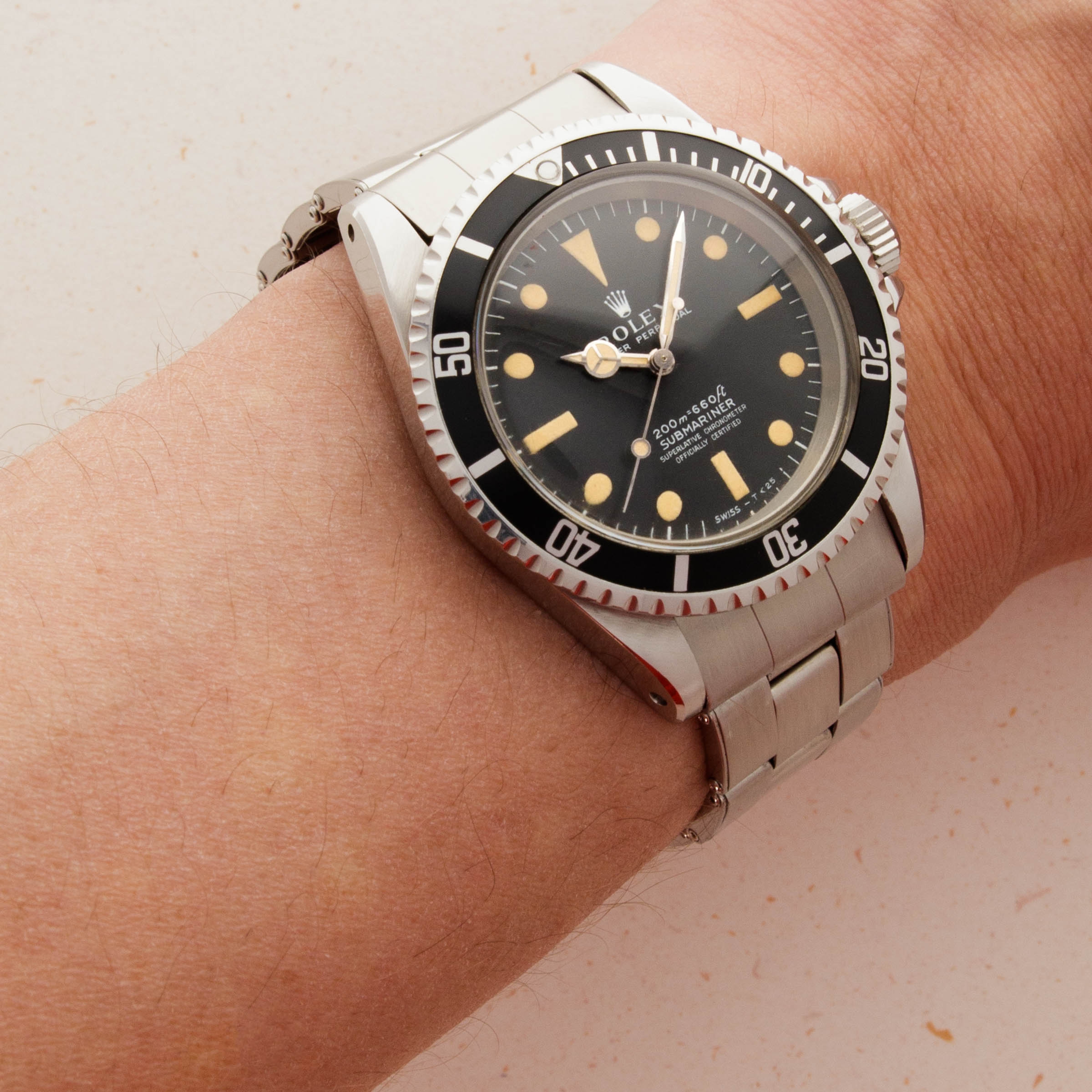 Often thought of as the quintessential Rolex Submariner, the ref. 5512 is one the longest continually running Submariner references, with almost 20 years of production under its belt. Released in 1959 and discontinued in 1978, the ref. 5512, was the chronometer-certified counterpart for the ref. 5513. Rolex being a far cry from the brand we know and love today, they ran the ref. 5512 and the ref. 5513 together to appeal to as many customers as possible. With its chronometer-certification, the ref. 5512, was more expensive at retail and as such, sold fewer units than the ref. 5513 meaning it is a relatively rare watch even considering its long production run. Like most new releases, when the ref. 5512 was released it included some design changes from the references it replaced. These changes ultimately turned the Submariner into the tool watch we know today. Among these changes were heavier hash markings on the bezel for improved tactility, bevelled lugs for better wear on the wrist and the addition of crown guards to protect the winding crown - all making the Submariner ref. 5512 an improved version of the references it replaced and continuing the Submariner’s journey as the diving industry’s golden standard of dive watch.