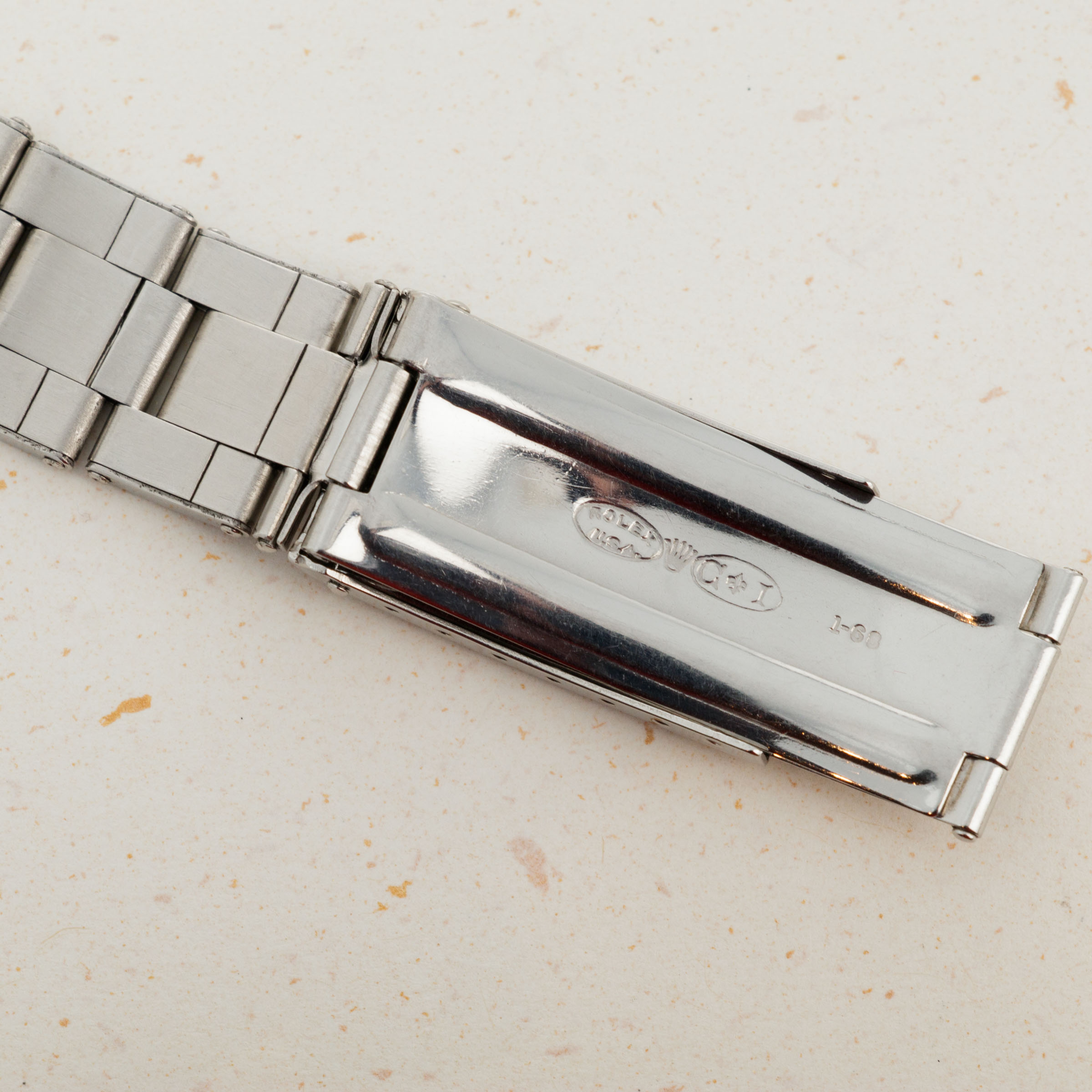 The watch is in overall excellent condition. The case has very minor surface wear, and retains sharp chamfered and thick lugs. The tritium in the hands and dial all match and are an even golden tone. The pearl in the bezel insert is a slightly lighter shade. Original twinlock crown. The original domed crystal has some surface scratches. The bracelet is a USA C&I band dated 1969. It has 11 links with very minor stretch.