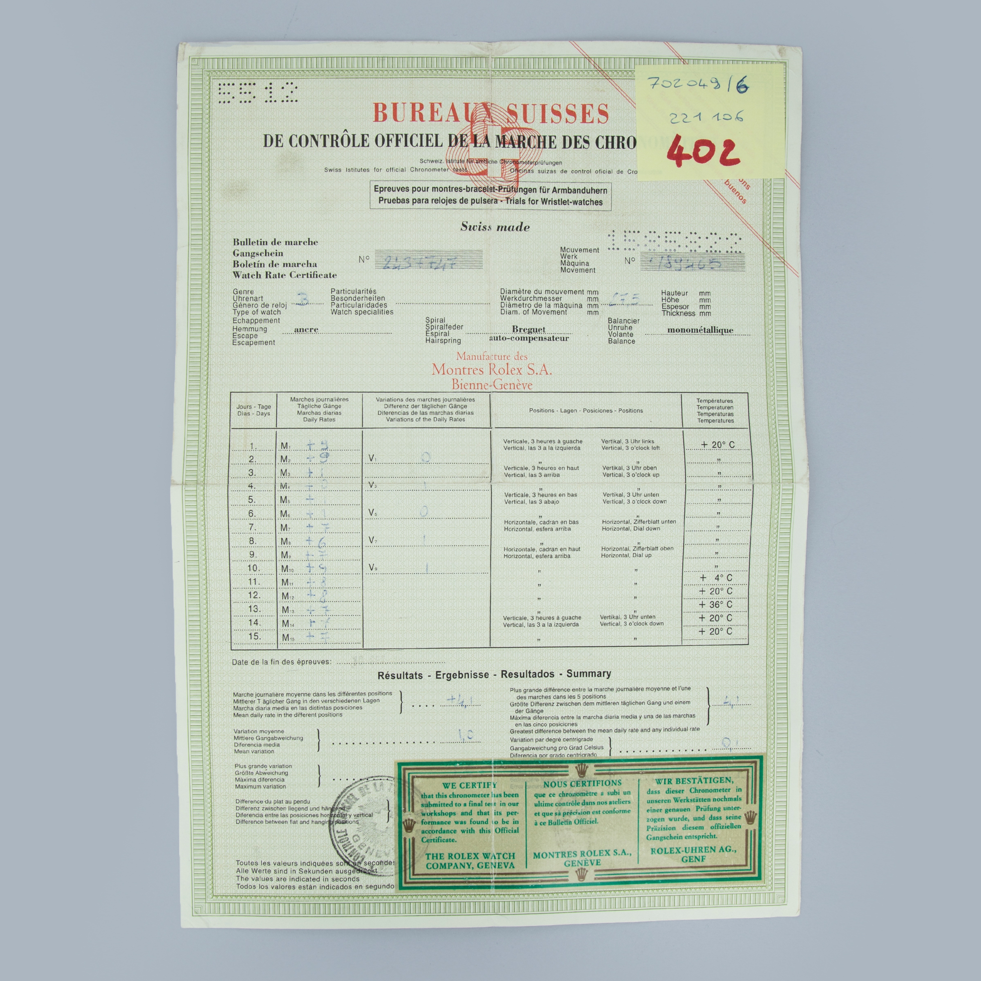 Watch, original guarantee papers, original chronometer certificate, additional stainless Oyster bracelet