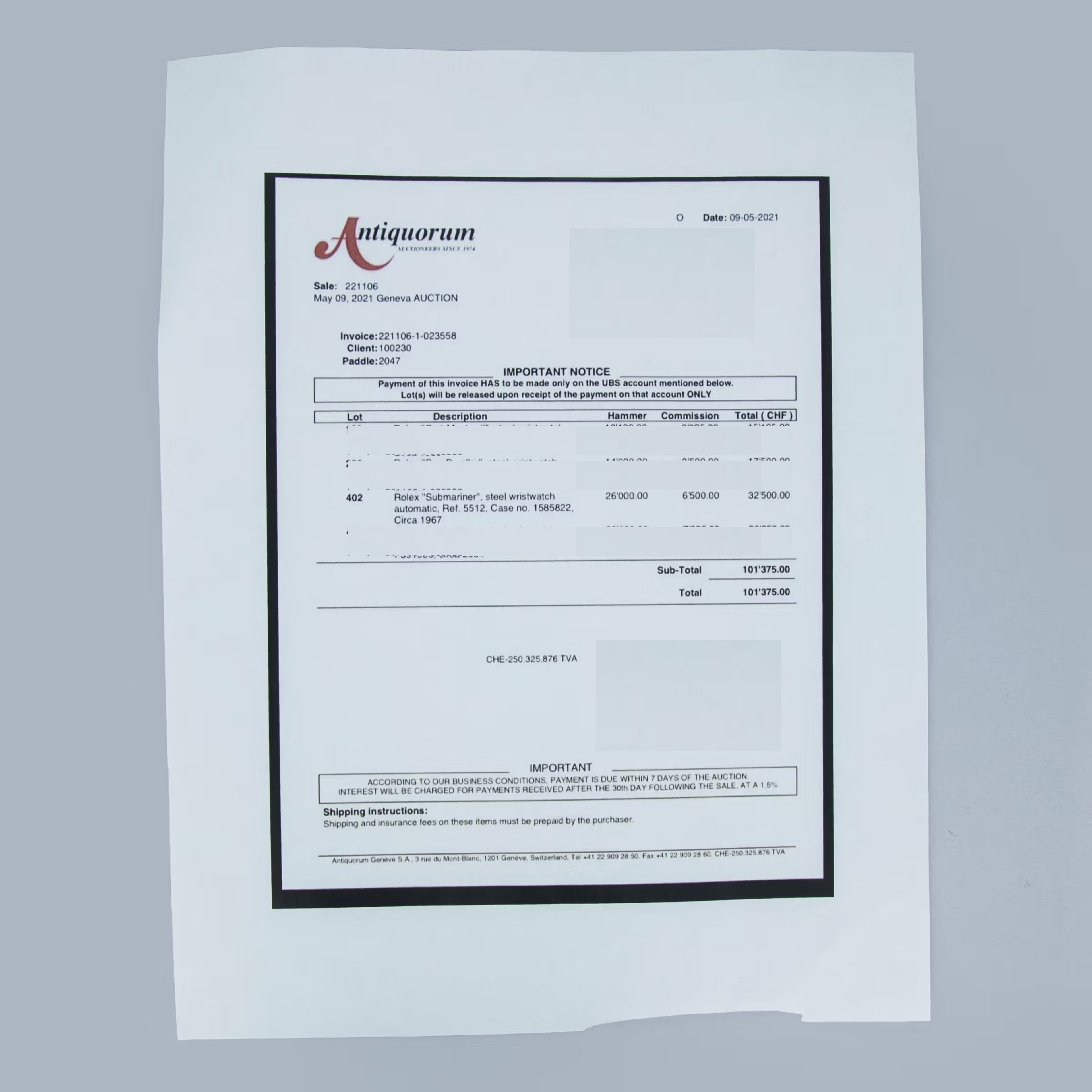 Rolex Submariner 5512 Meters First Guarantee and Timing Certificate