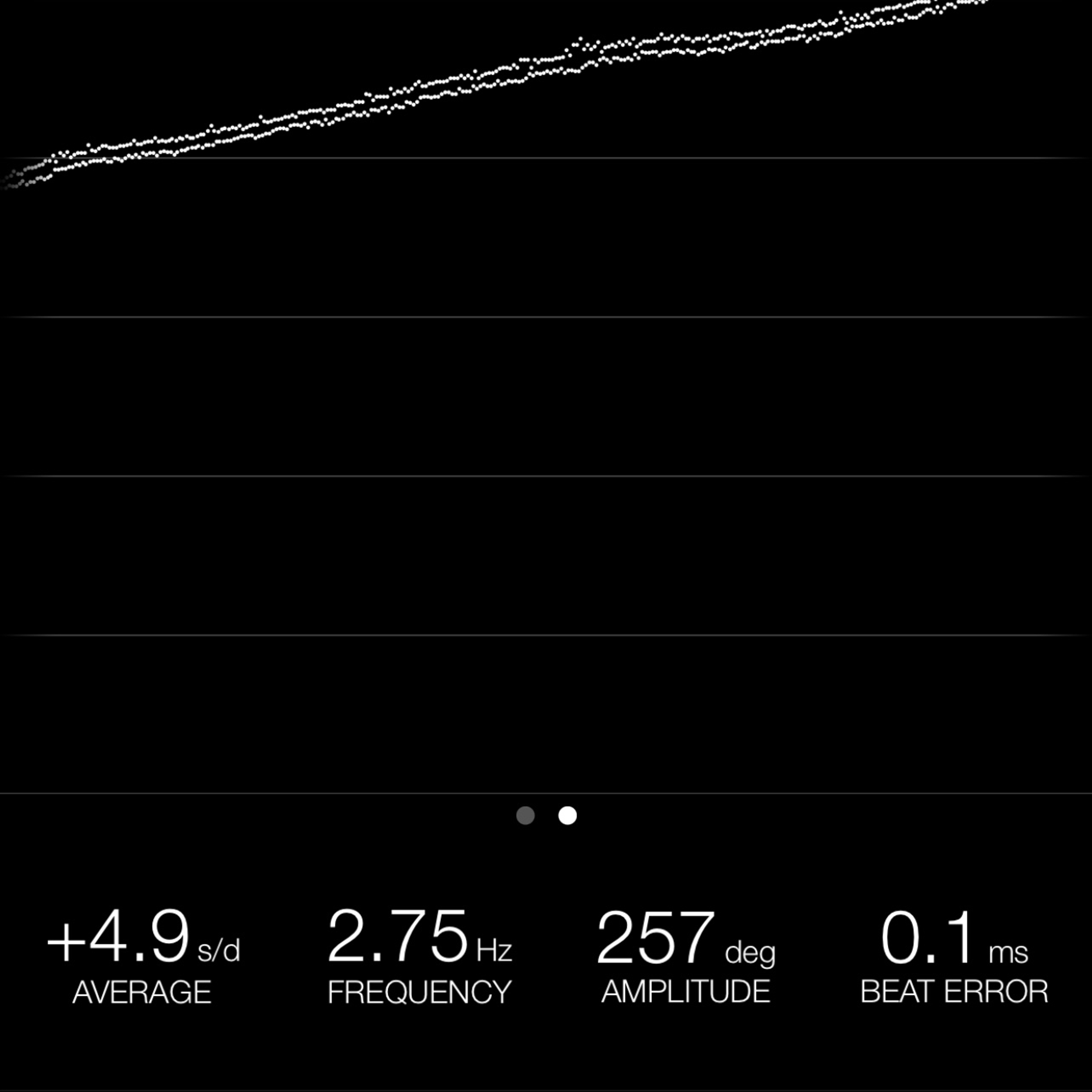 This reading was taken (crown down) with a ONEOF Accuracy Boutique Edition timing machine at time of cataloging. It is provided as a courtesy only, and shall not be construed as a warranty or guarantee of any kind. Please refer to our terms and conditions of sale for more information.