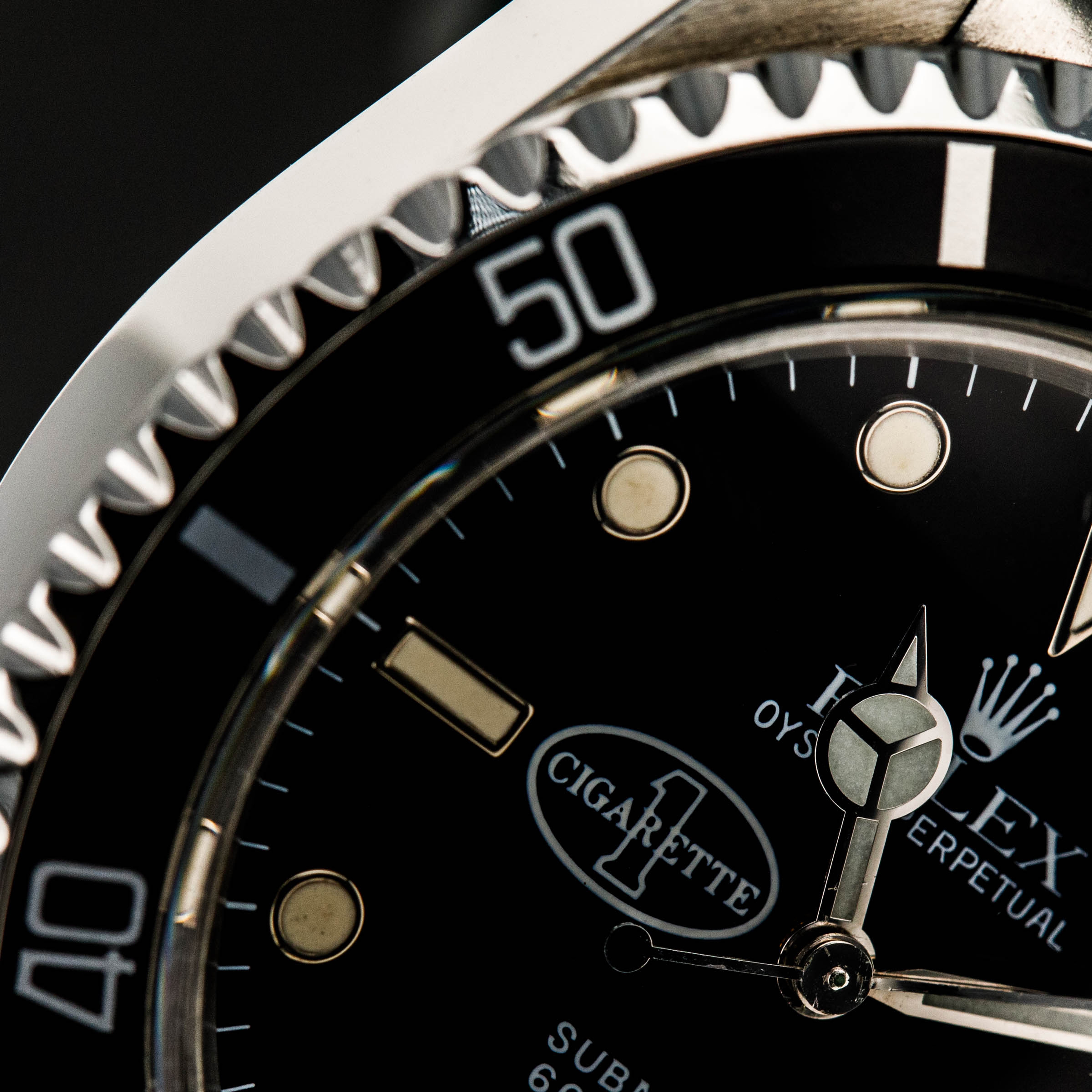 Boasting a black dial with 18kt white gold surrounds for its luminous hour markers and its Cigarette 1 logo at 9 o'clock, this ref. 5513 combines historical intrigue and folklore with the utility that made the Submariner so popular amongst those who needed a reliable dive watch.