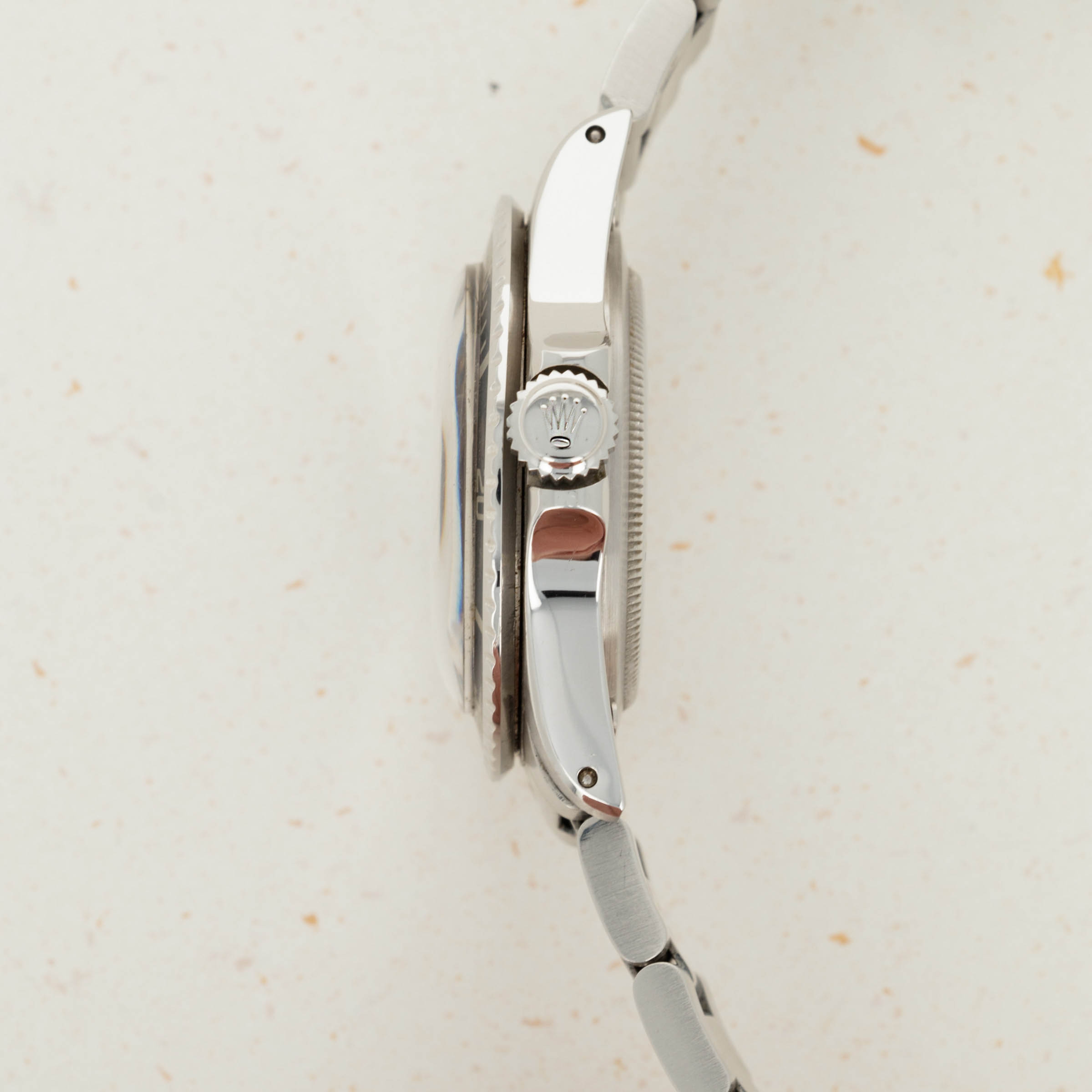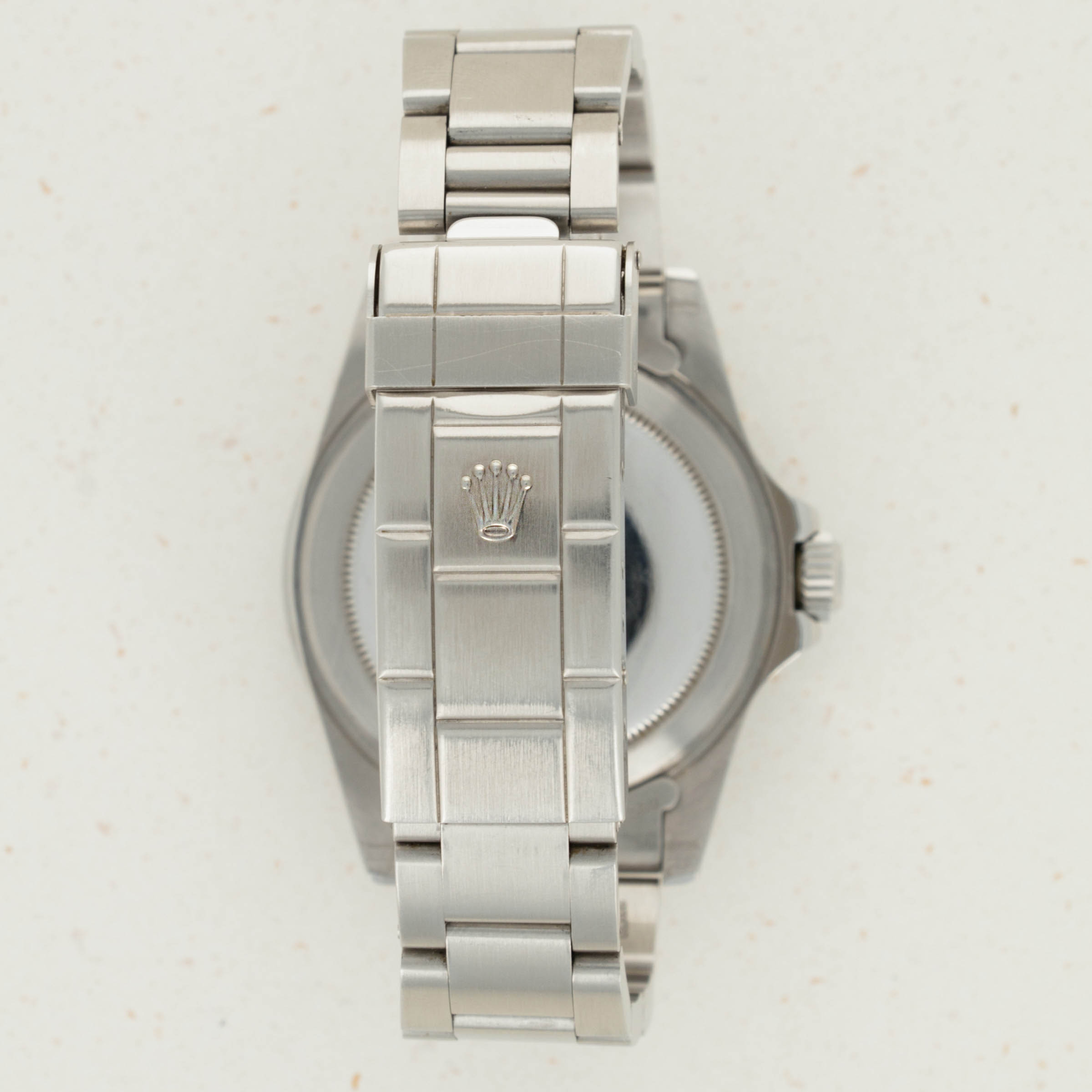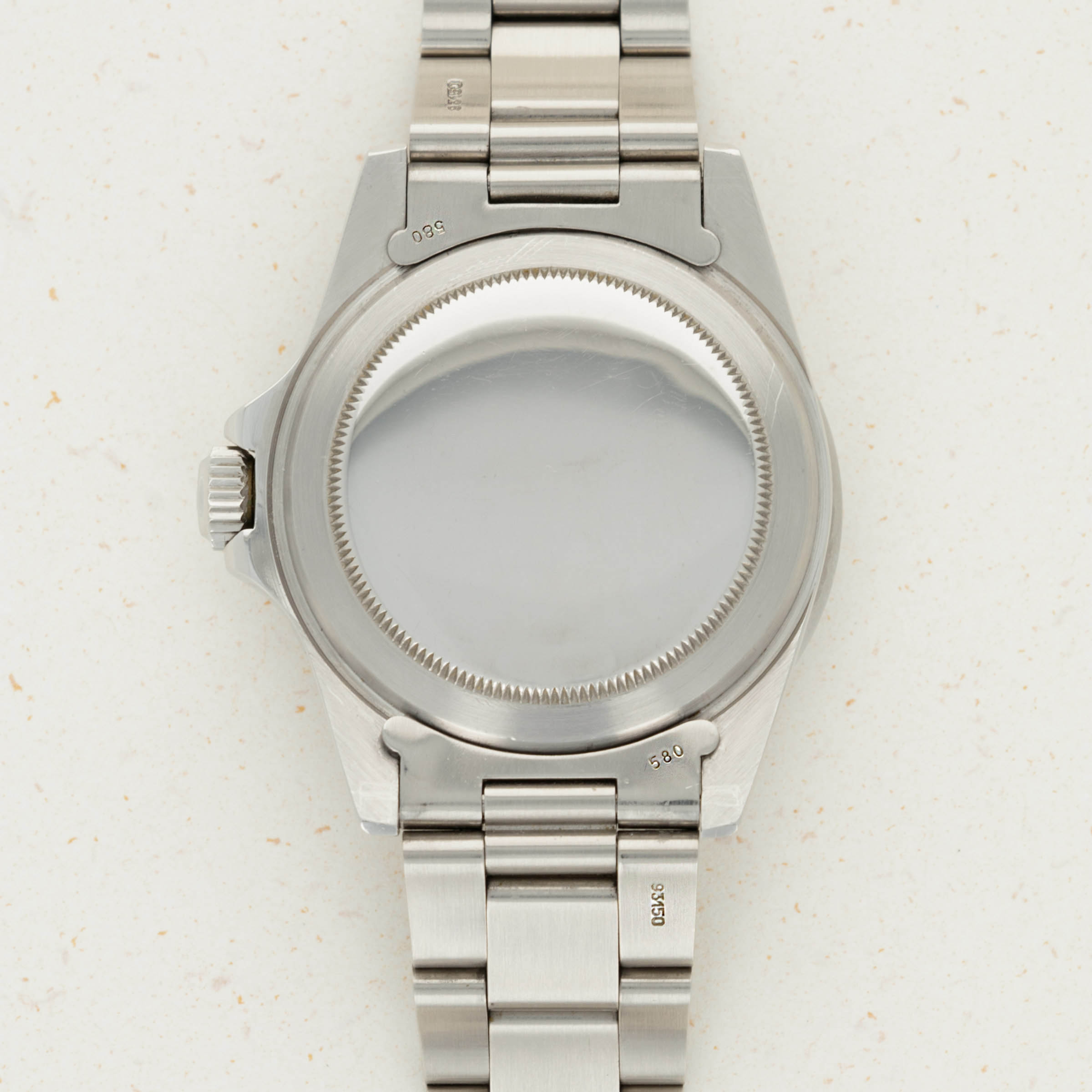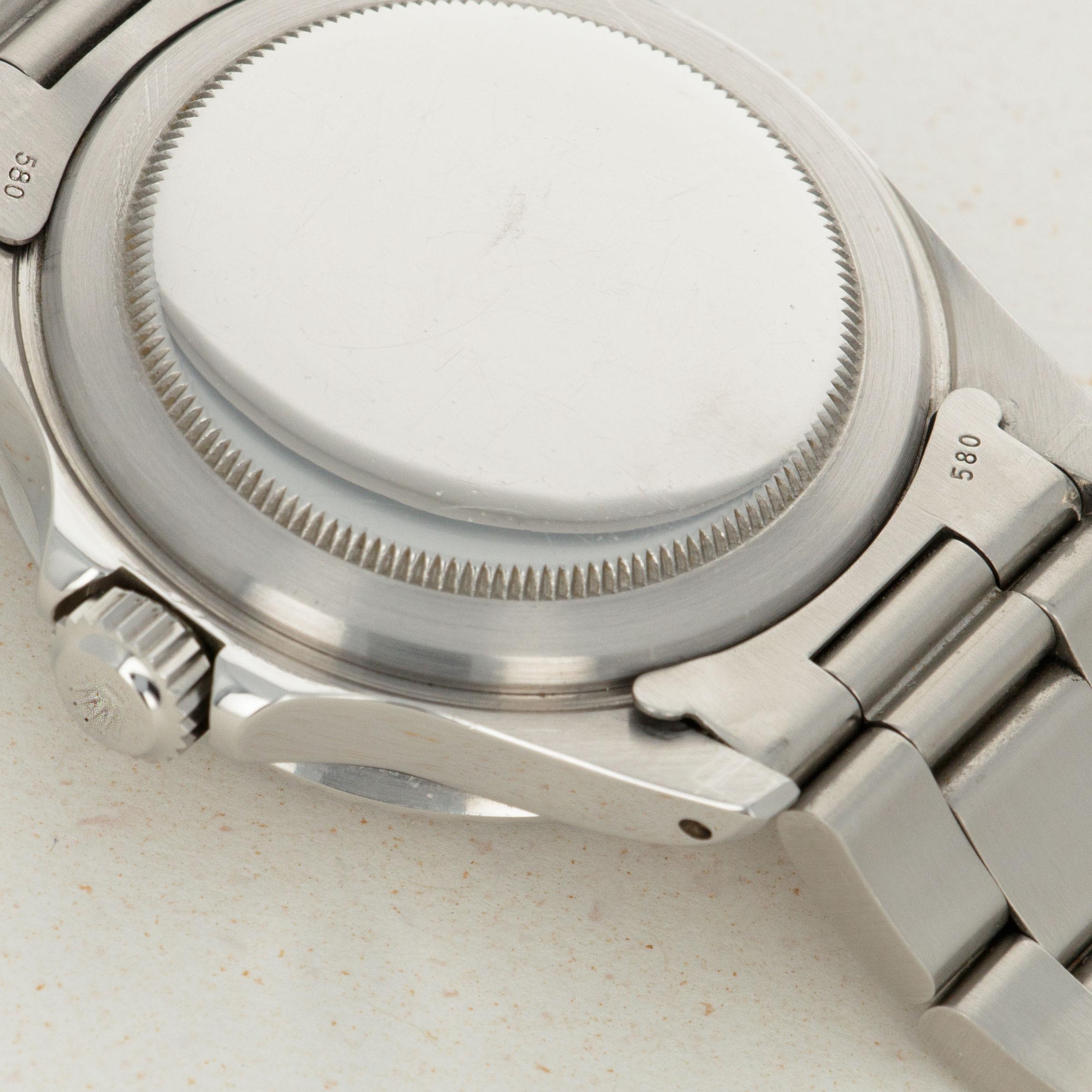 Watch is in excellent overall condition. Recently detailed case has sharp chamfered edges and no major dings or scratches. The original twin lock crown is still fitted to the watch. The dial has original dome shaped luminous that is cream colored. The surface has light matting and very minimal spotting as shown in the images. The hands do not fluoresce and have been re-lumed to match the dial. Pear in the insert is also replaced. Later solid oyster band has 11 links total and exhibits little stretch.