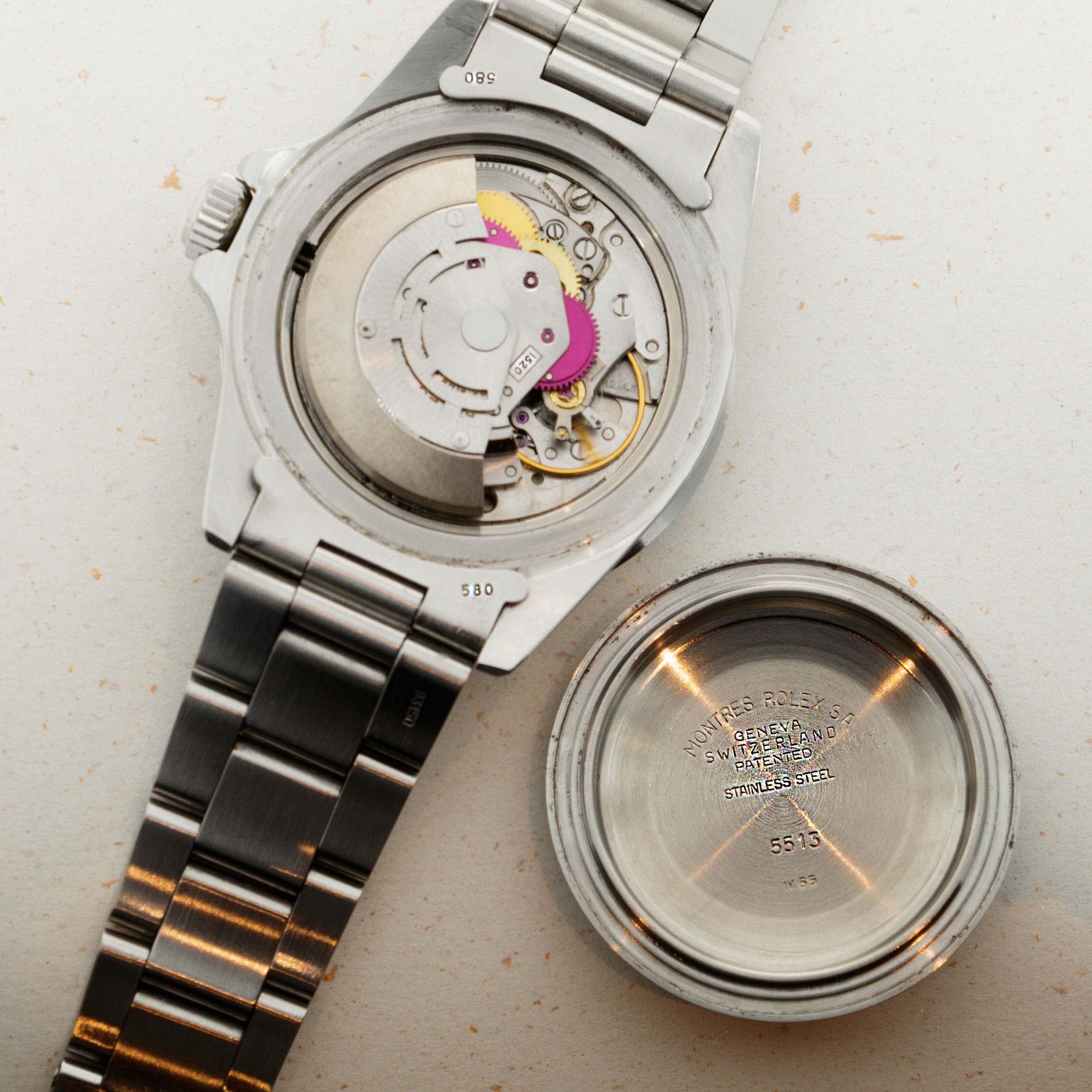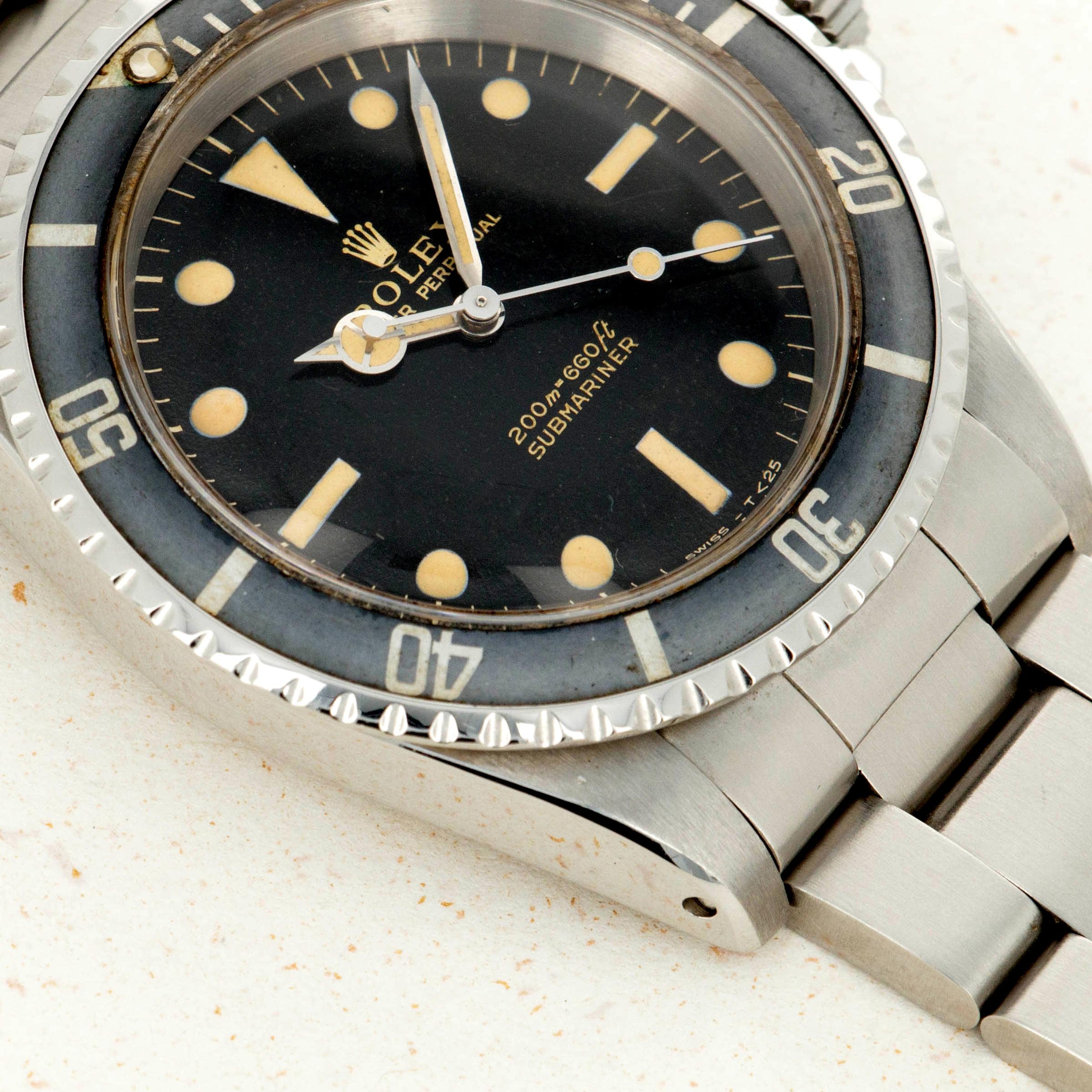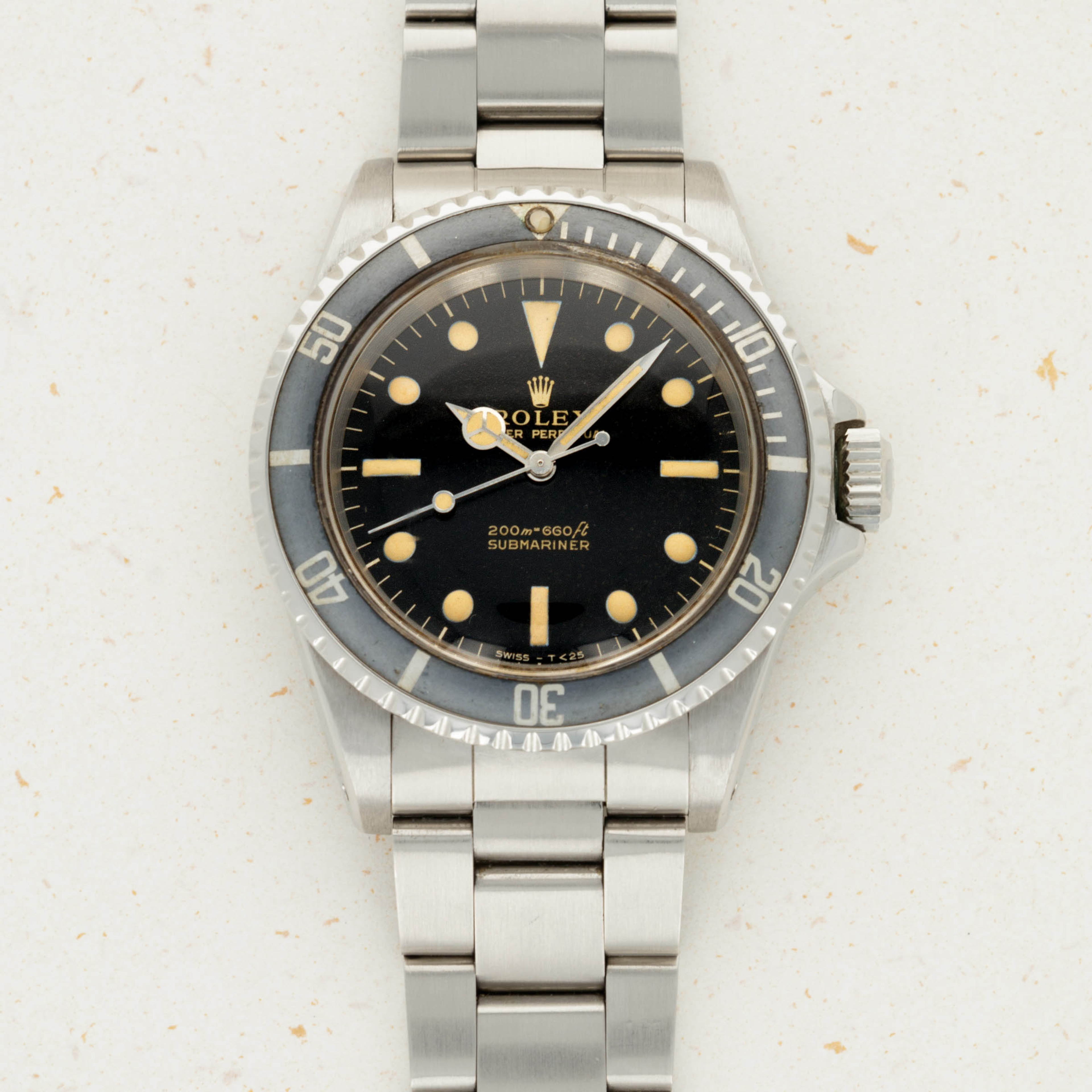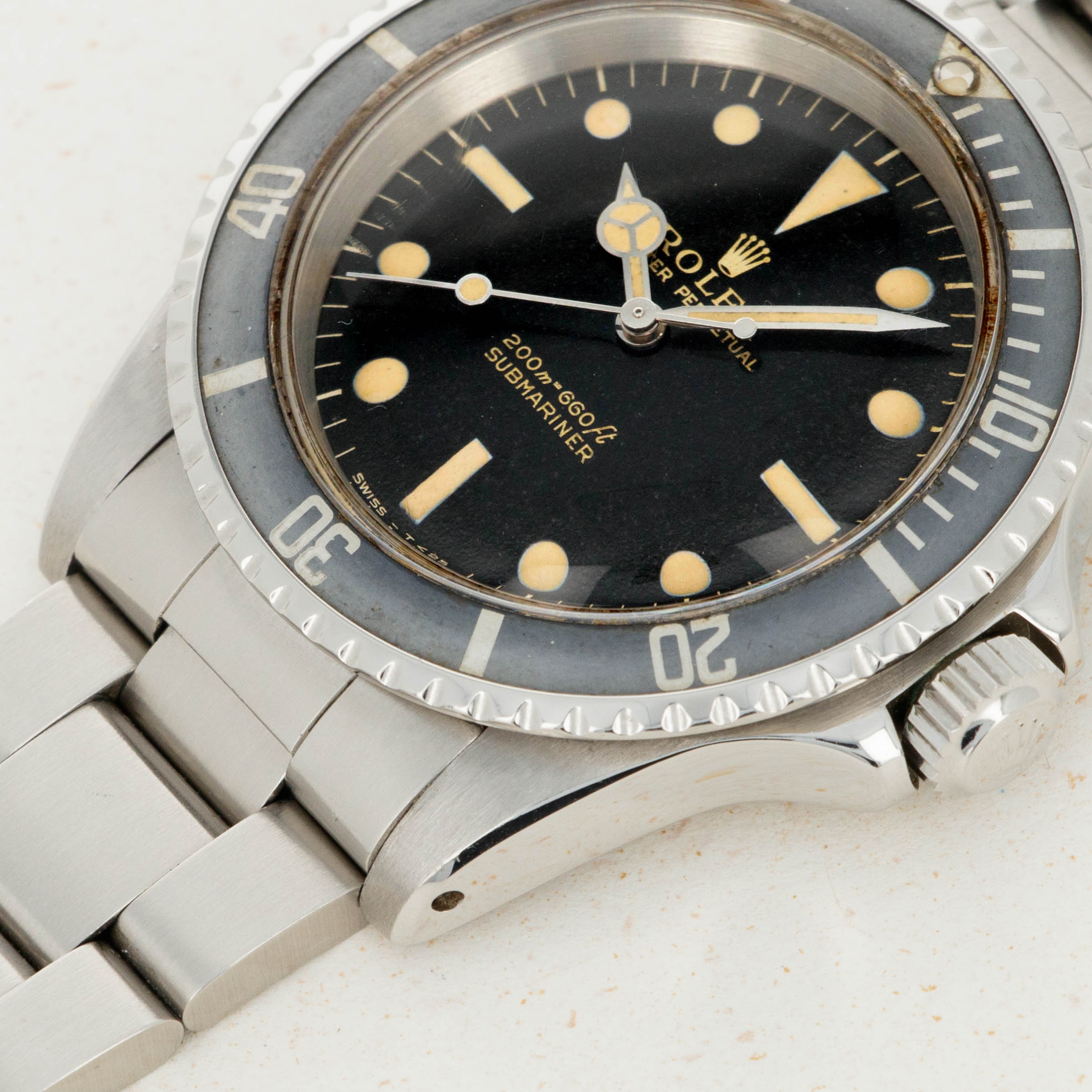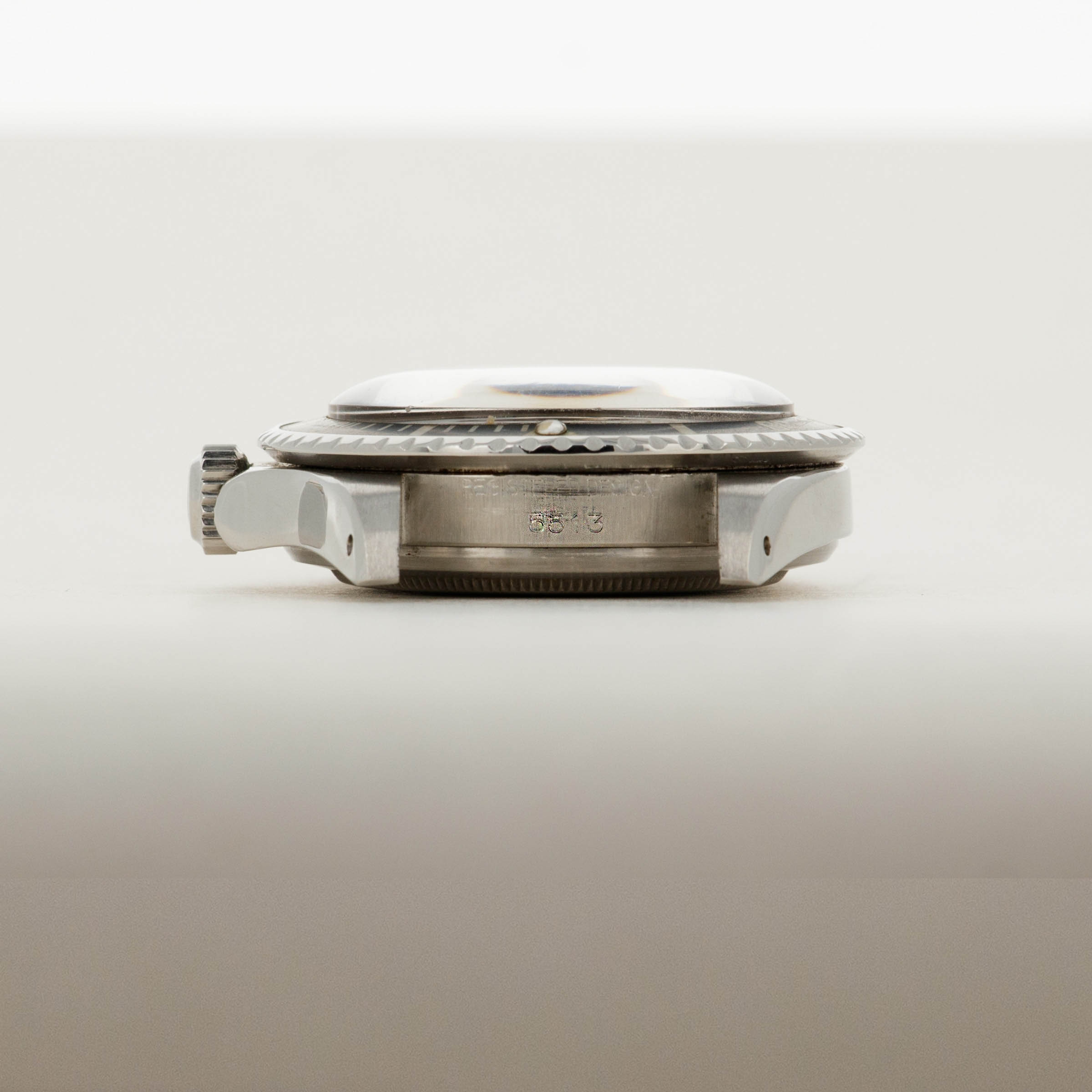 The 5513 was produced from 1962 to 1988, and was the non-chronometer version of the non-date Submariner. There were a multitude of dial variants made over those 26 years, ranging from gilt chapter ring dials in the beginning to matte dials, then ultimately the glossy dials with white gold luminous surrounds.