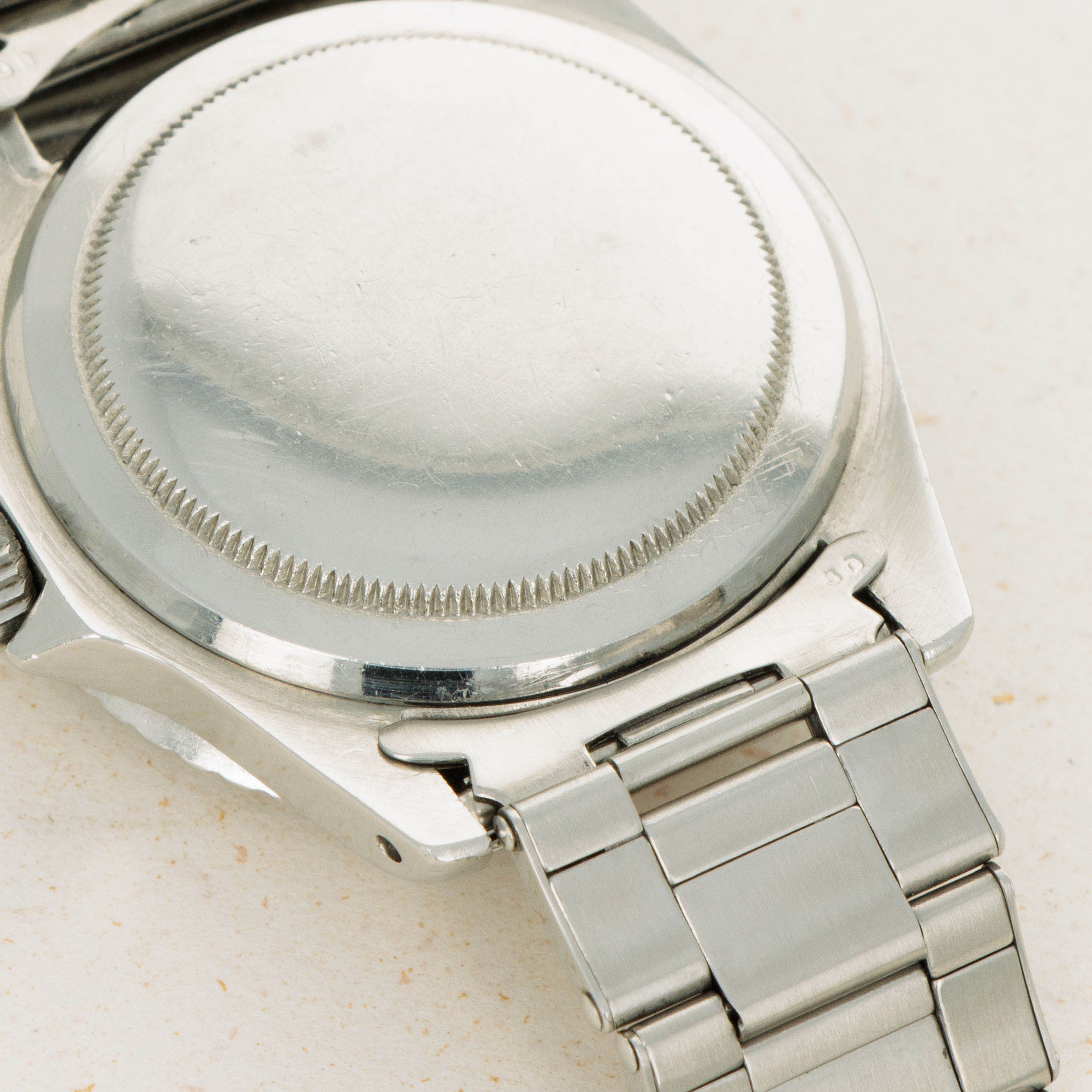 Watch is in excellent overall condition. Case shows wear comesurate with its age, but the lugs remain thick. The serial number and case number between the lugs are fully legible. Bezel shows minor wear, and an intact pearl. Original "Kissing L" Explorer dial in excellent condition. There is light even spotting visible on the surface, but it remains glossy. Very minor wear on the edge of the dial visible. The luminous on the dial is original and exhibits minor surface wear. Swiss rivet bracelet has 12 links, and shows minor stretch.