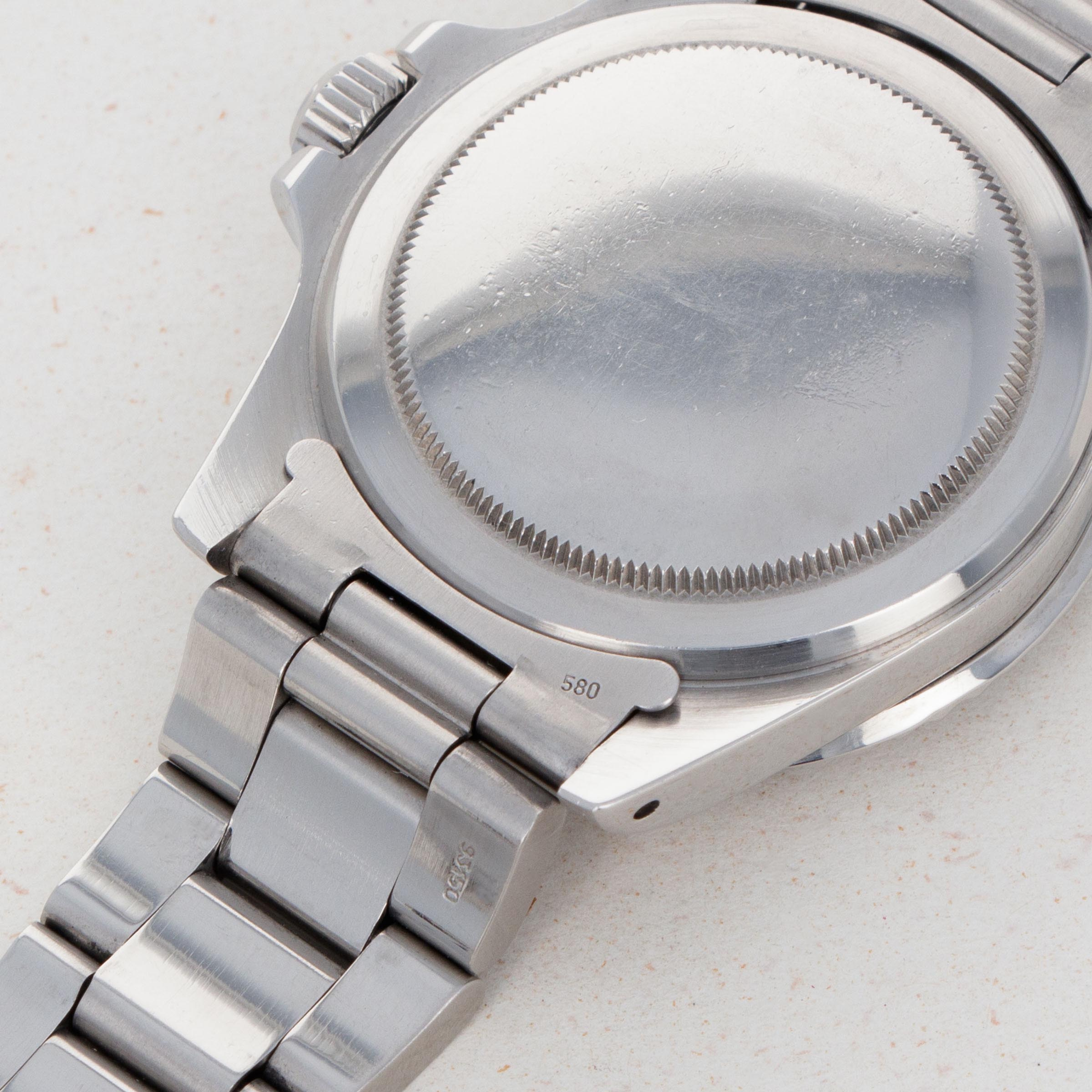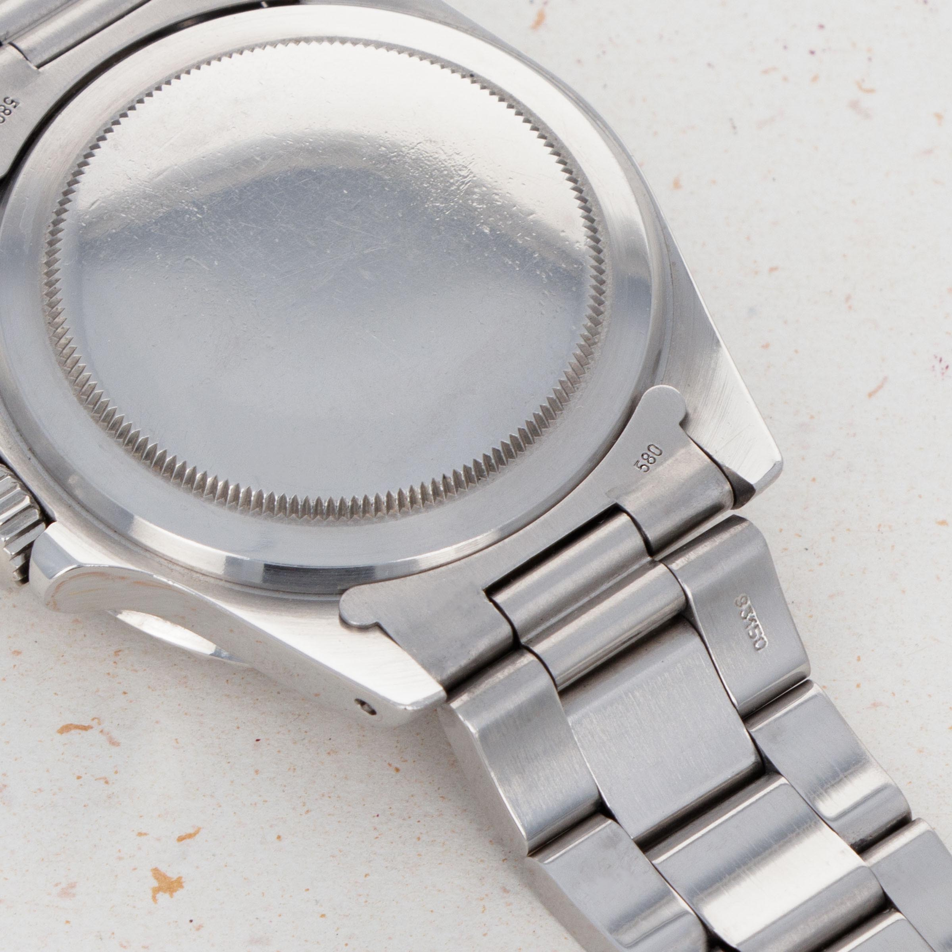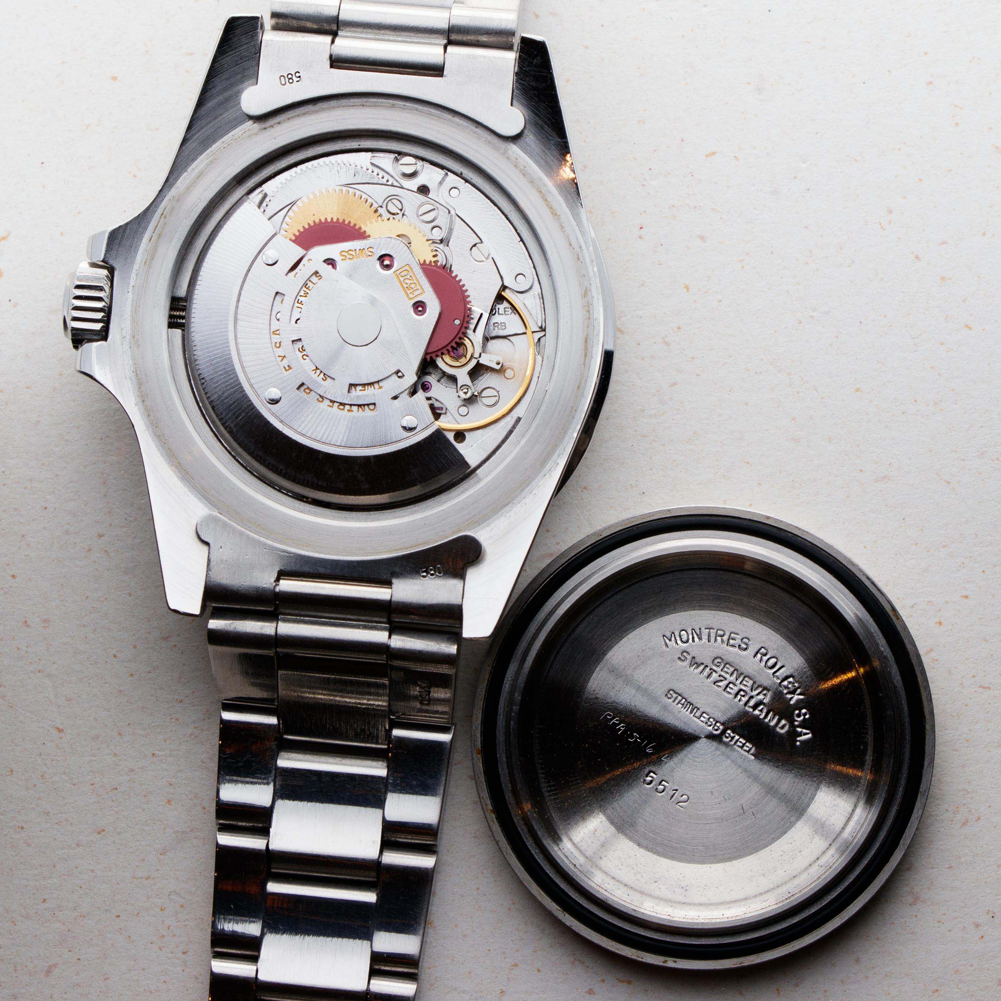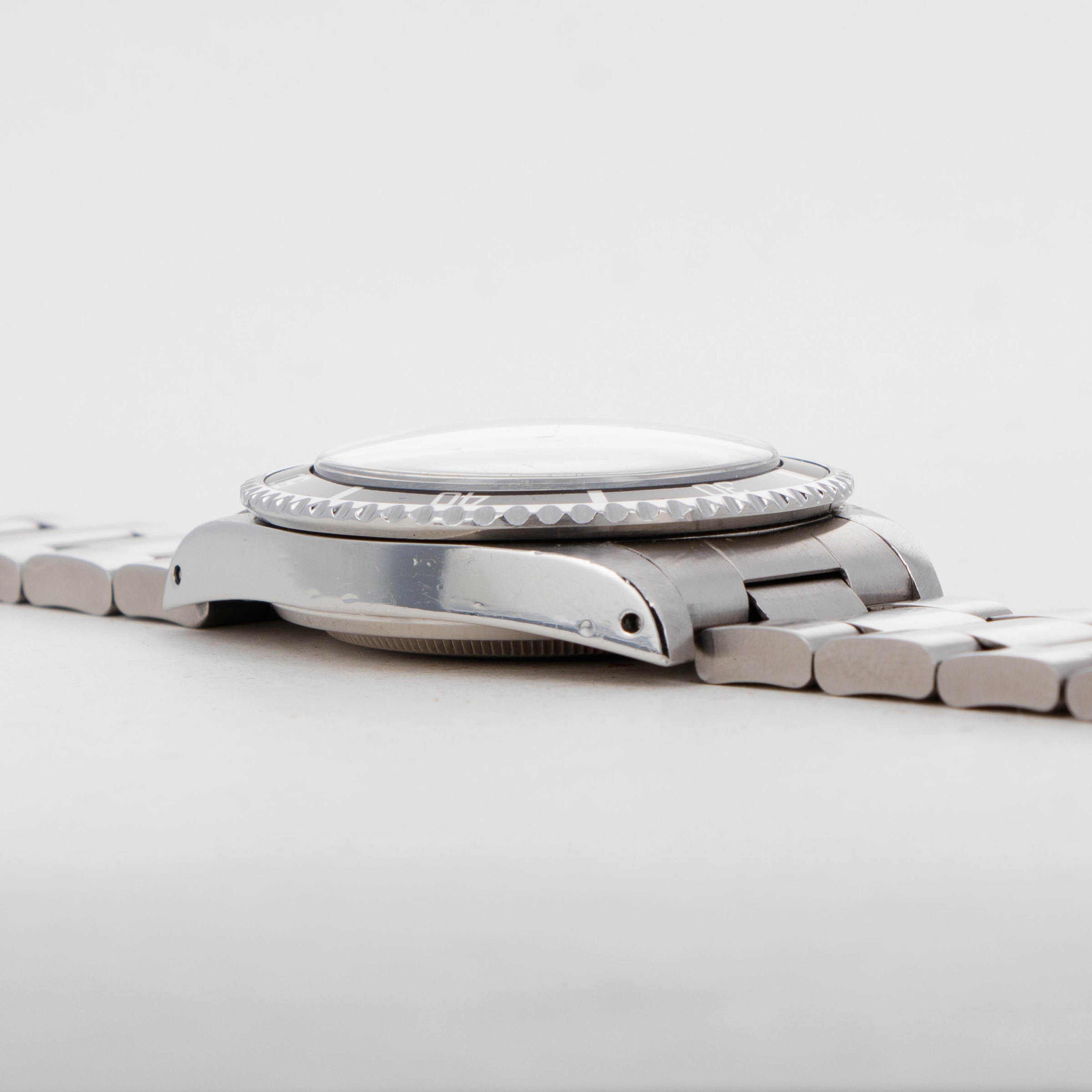 The present watch is in overall excellent condition. The crystal with surface wear, the numerals and hands match and are a clean white. The case with minor polishing, wear and dings predominantly to the sides of the case. The case back with minor pin head dings and surface wear, the inside of the case back is stamped with reference number 5512. The numbers between the lugs are very crisp and easy to read. The bracelet with wear and stretch, 11 links, 1 removable.