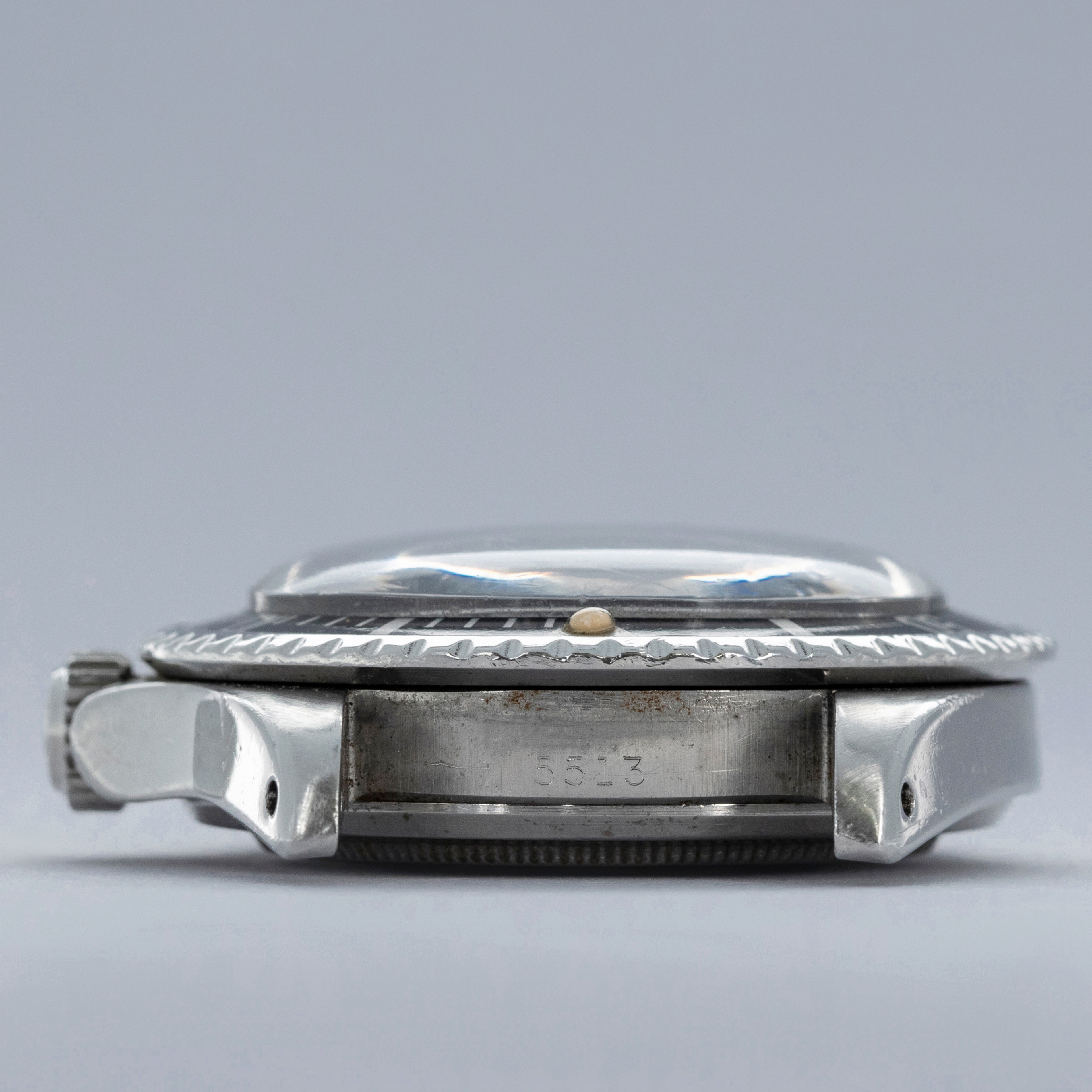 The 5513 was produced from 1962 to 1988, and was the non-chronometer version of the non-date Submariner. There were a multitude of dial variants made over those 26 years, ranging from gilt chapter ring dials in the beginning to matte dials, then ultimately the glossy dials with white gold luminous surrounds.