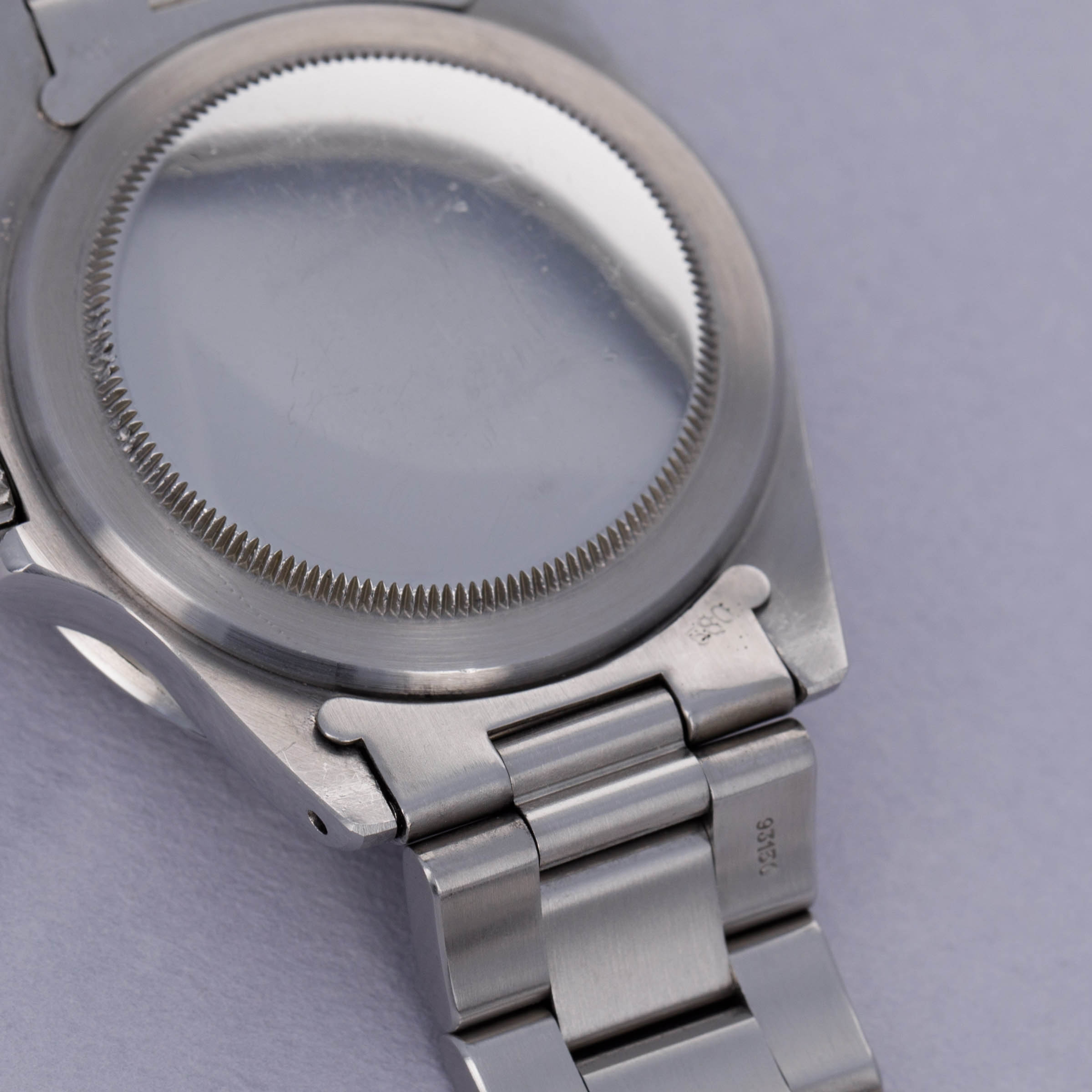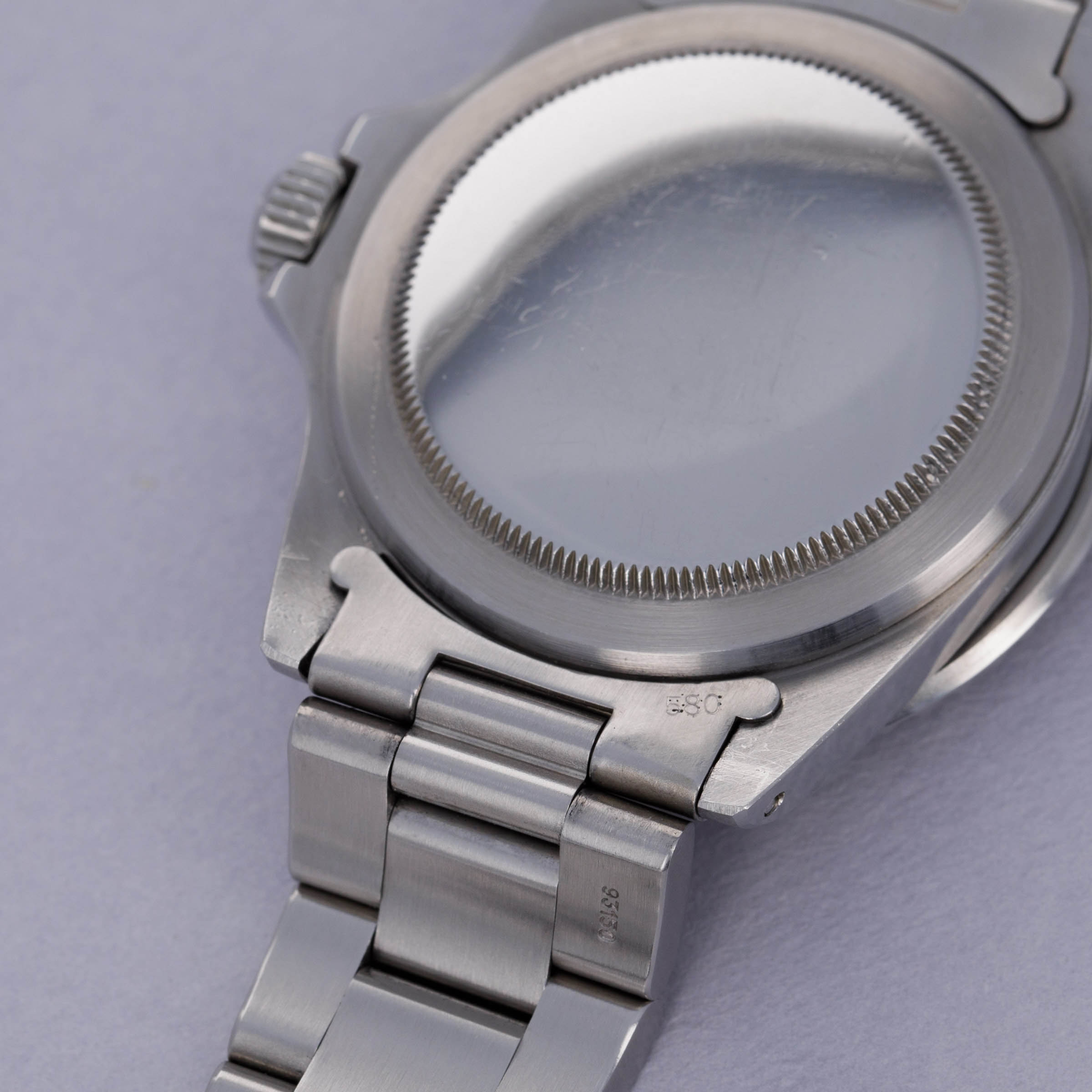 Watch is in near-mint vintage condition. The case has thick lugs, and a sharp well defined chamfered edge. The springbar holes have some wear around the edges due to the use of an improper tool to remove the bracelet. Original matte MK1 Maxi dial is near mint, with no visible flaws. The luminous has aged to a creamy tone, and the hands match. Please note there is a small discoloration on the luminous of the seconds hand. There is minor surface corrosion along the edge of the caseback where the gasket sits. Watch comes on a solid link oyster bracelet that fits an approx 7 1/4" wrist. There is minimal stretch.