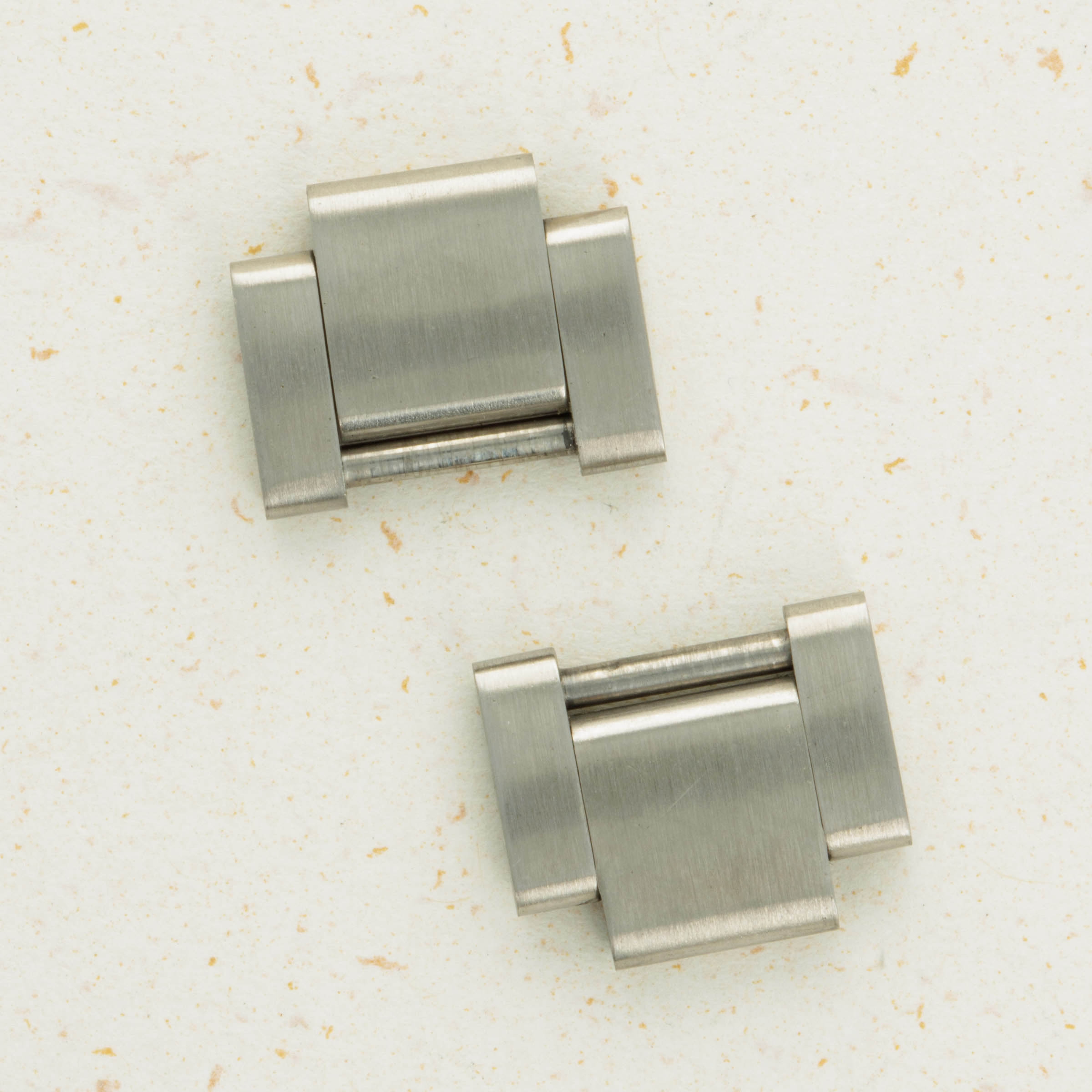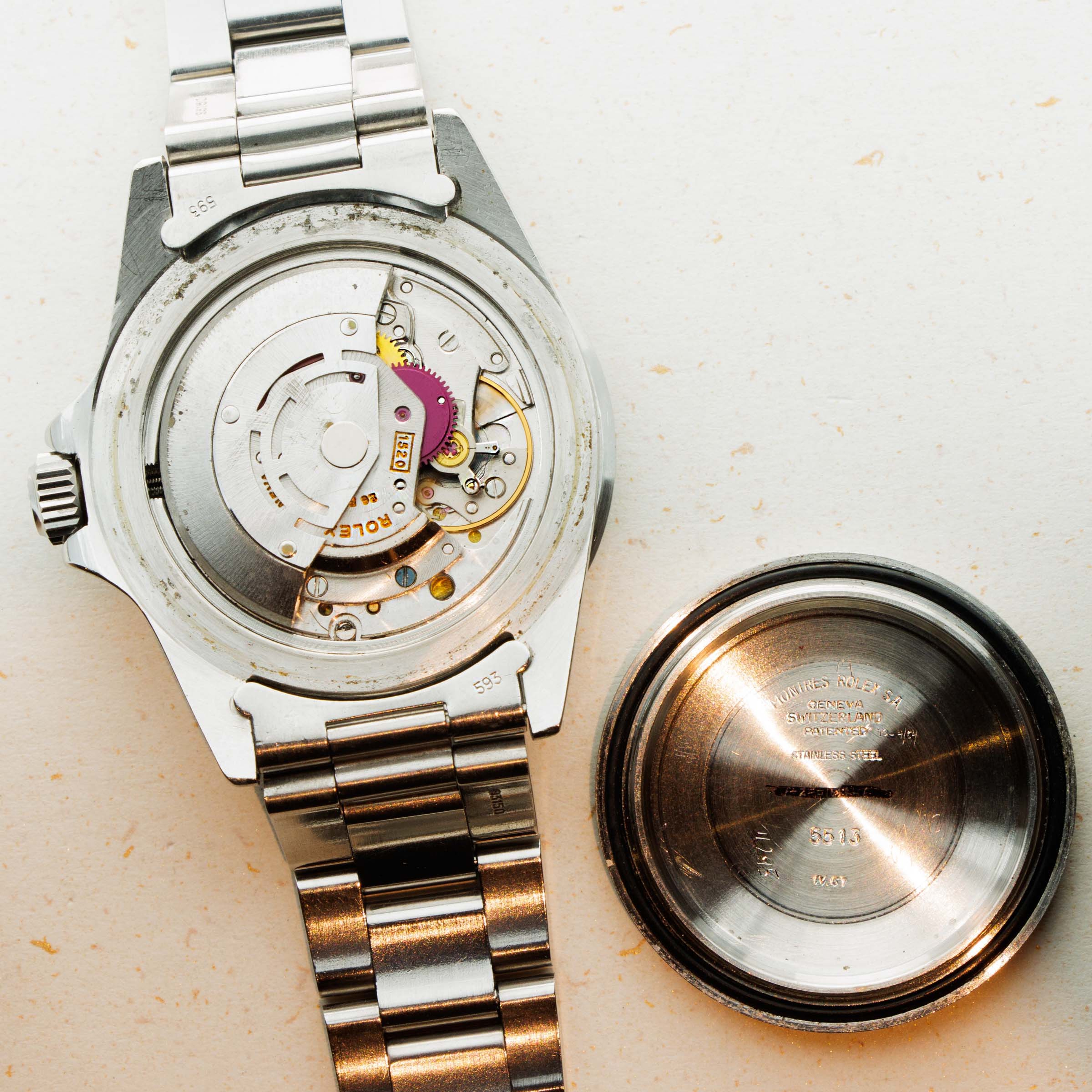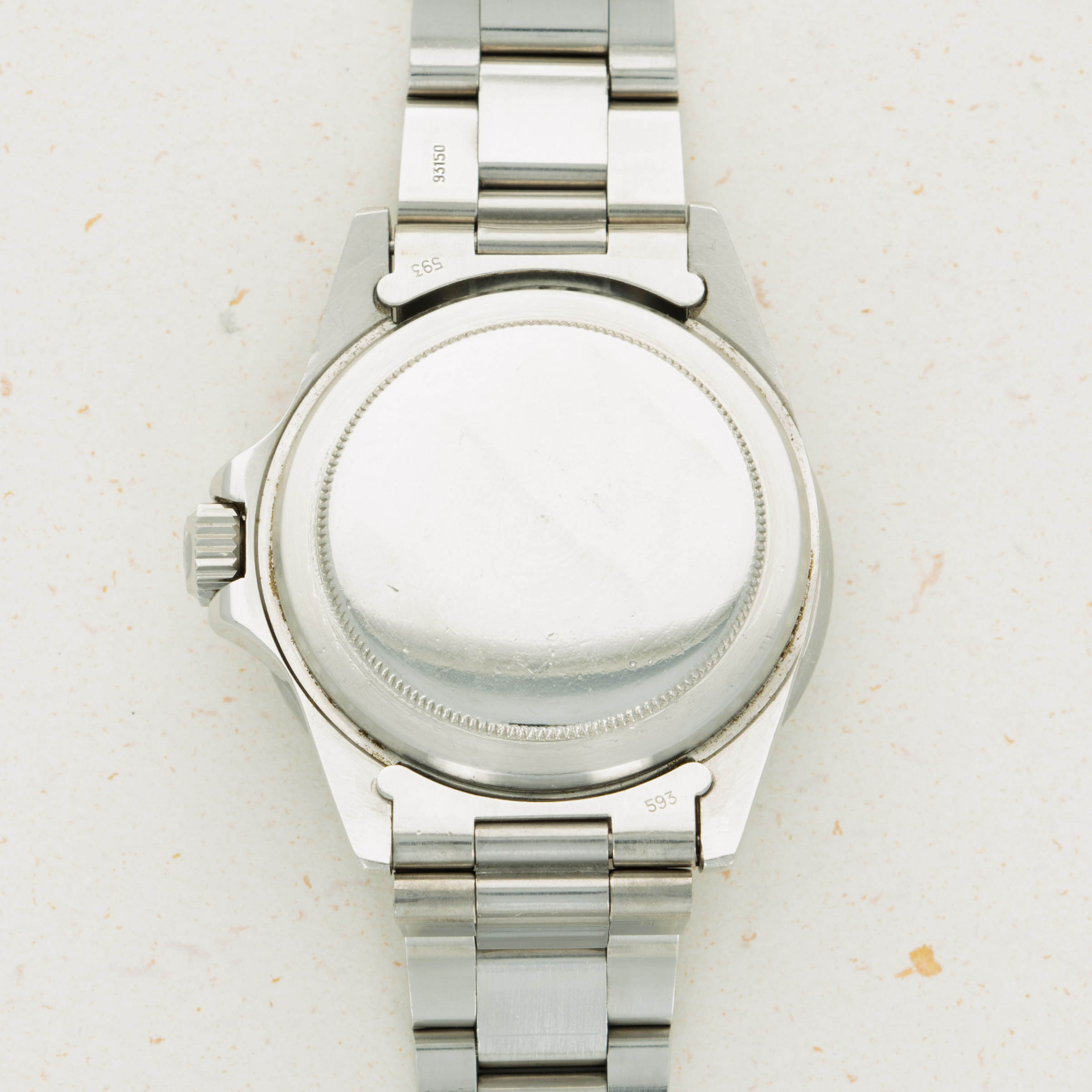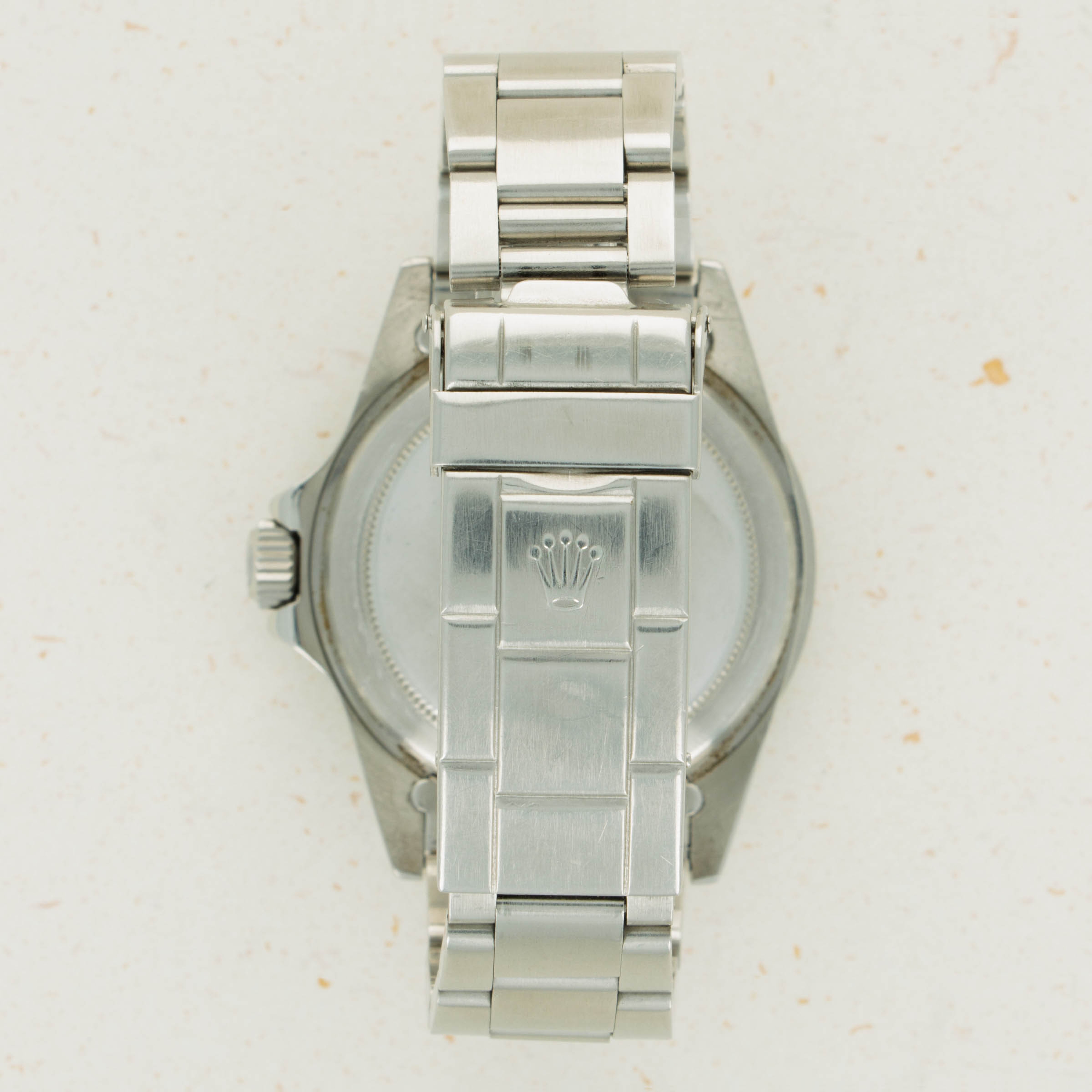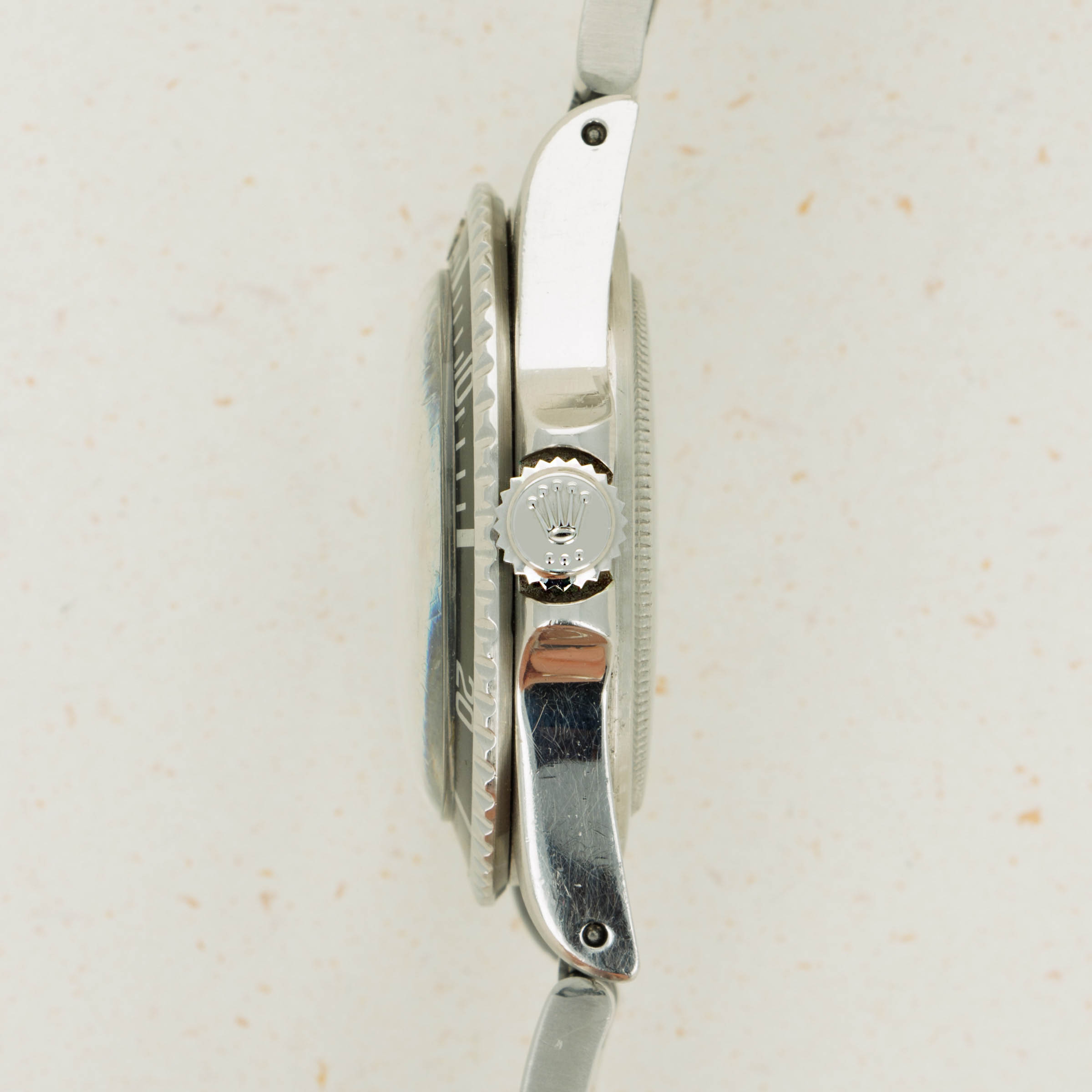 Watch is in very good overall condition. The case shows light surface wear including some mild corrosion between the lugs- the numbers are clear and legible and not obstructed by this. Bezel insert has an aftermarket pearl installed. The maxi-dial was fitted during a service at Rolex sometime in the past. It is near-mint and shows a light patina. The bracelet has 10 links currently fitted with two additional on the side.
