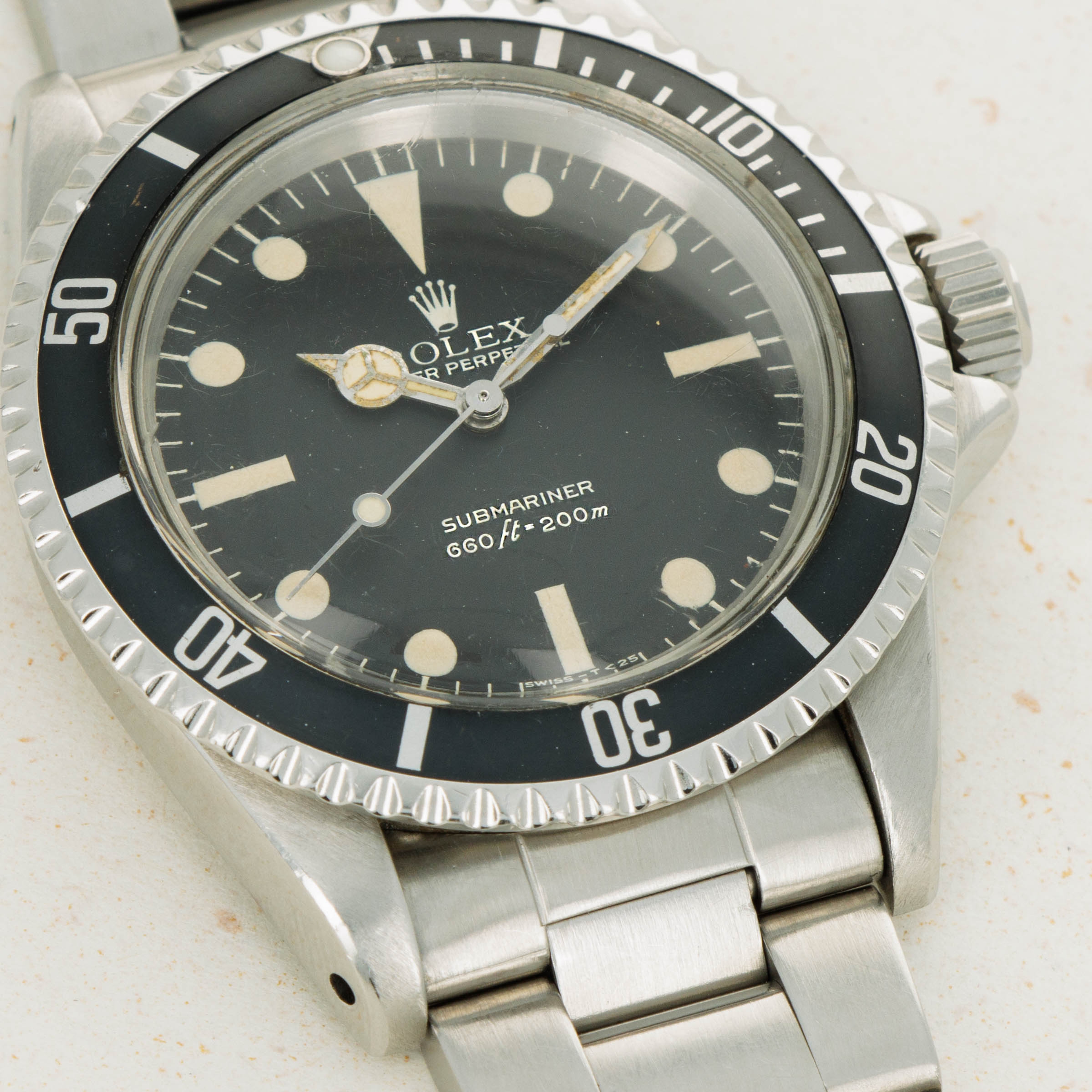 The 5513 was produced from 1962 to 1988, and was the non-chronometer version of the non-date Submariner. There were a multitude of dial variants made over those 26 years, ranging from gilt chapter ring dials in the beginning to matte dials, then ultimately the glossy dials with white gold luminous surrounds.