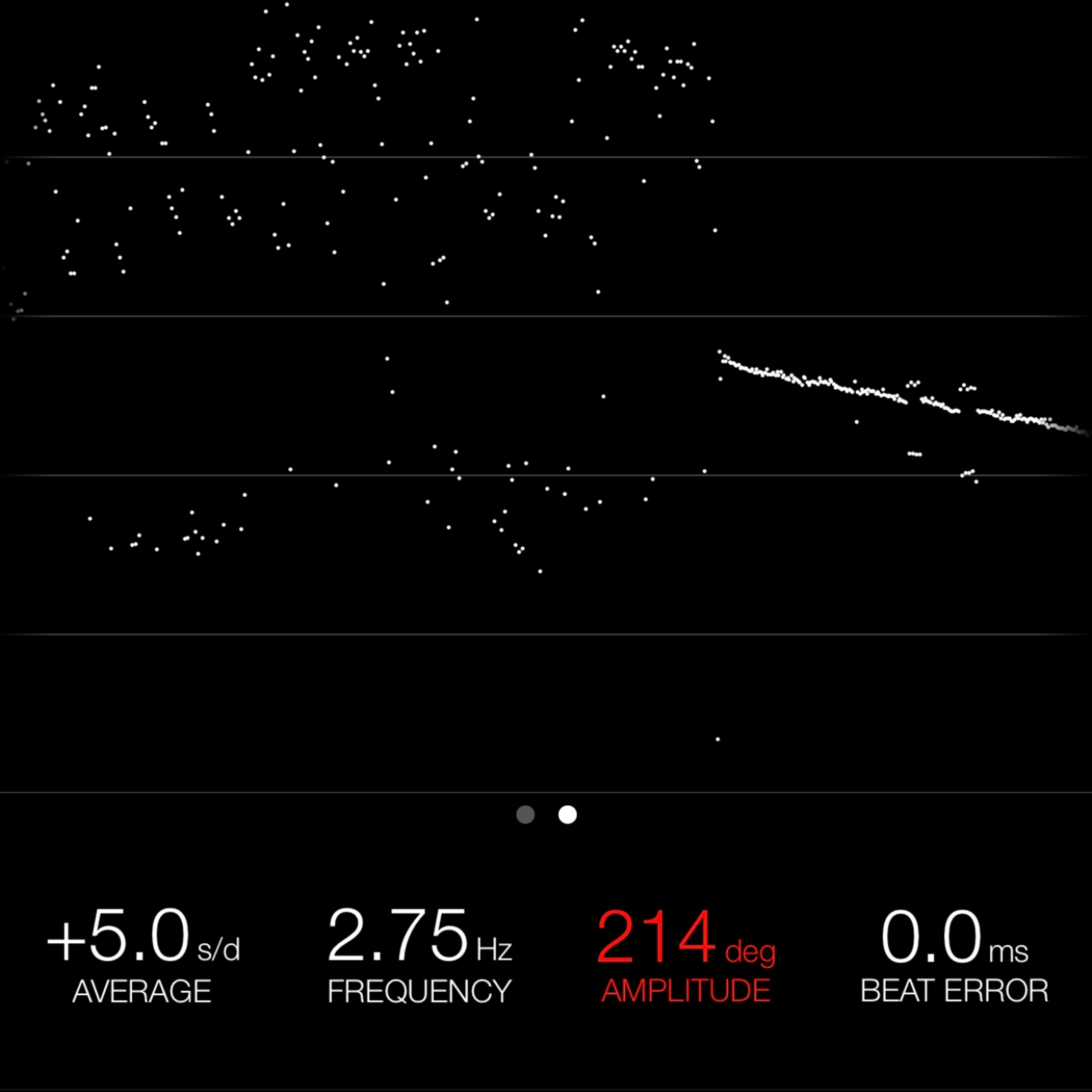 This reading was taken (crown down) with a ONEOF Accuracy Boutique Edition timing machine at time of cataloging. It is provided as a courtesy only, and shall not be construed as a warranty or guarantee of any kind. Please refer to our terms and conditions of sale for more information.