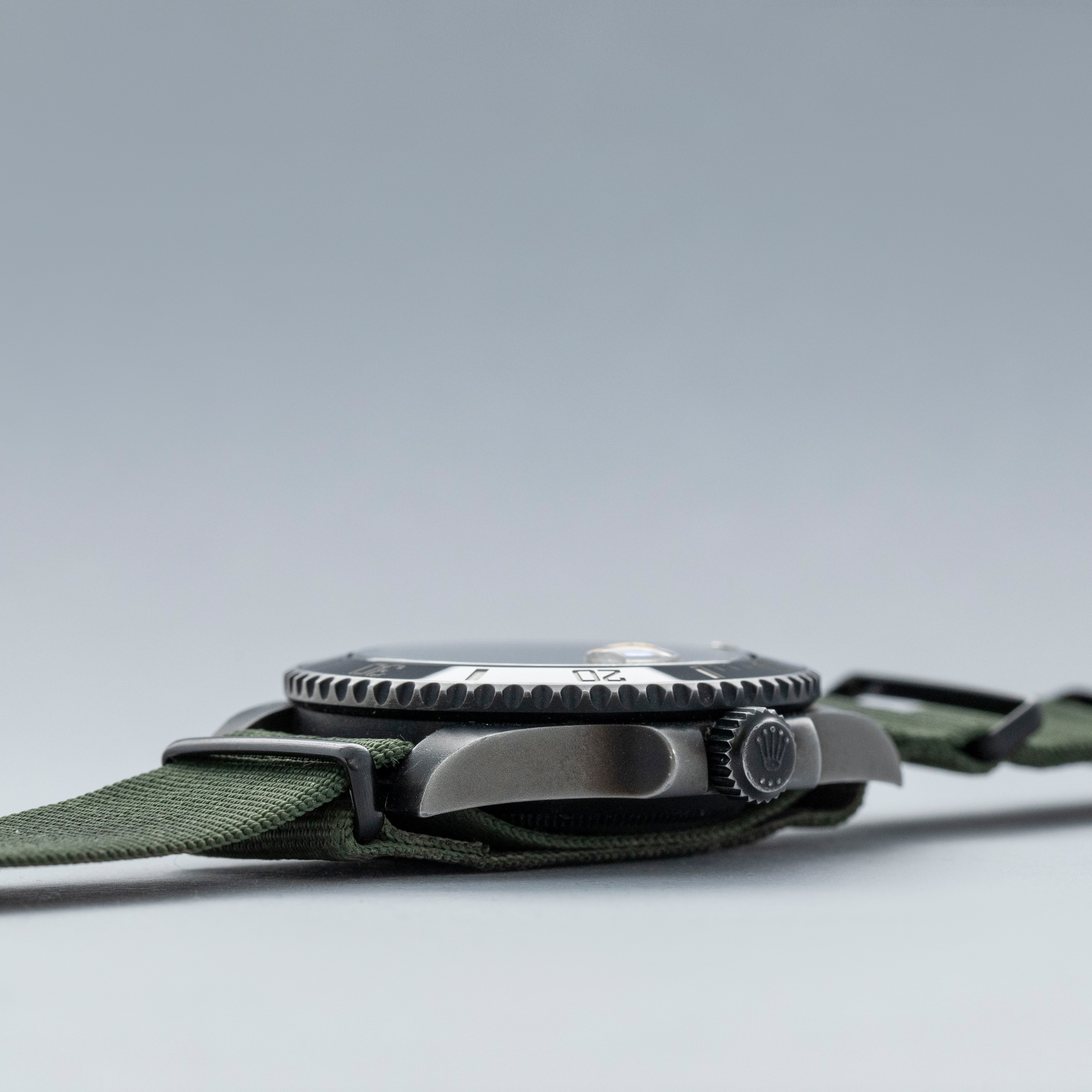 In a bid to emulate the original Milsub ref 5517, the Prohunter ref. 116610 features fixed spring bars that enable the watch to be worn only on fabric straps - just like the original.
