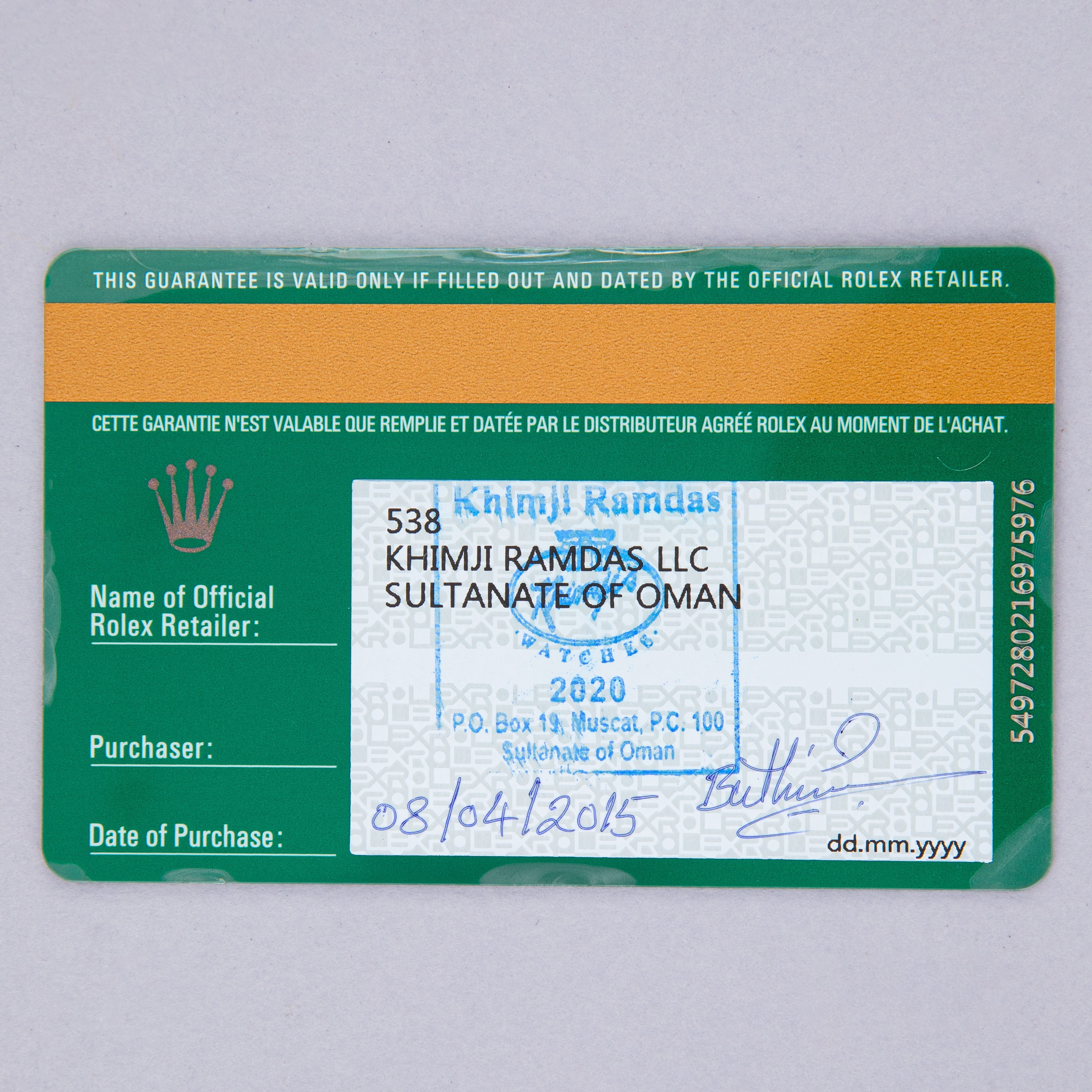 Made on special order for the Sultanate of Oman, this example features the Omani national symbol, the Khanjar dagger, engraved onto its caseback, which designates this as a piece that was either gifted to a person of high-esteem like a friend of the Royal family or a foreign dignitary.