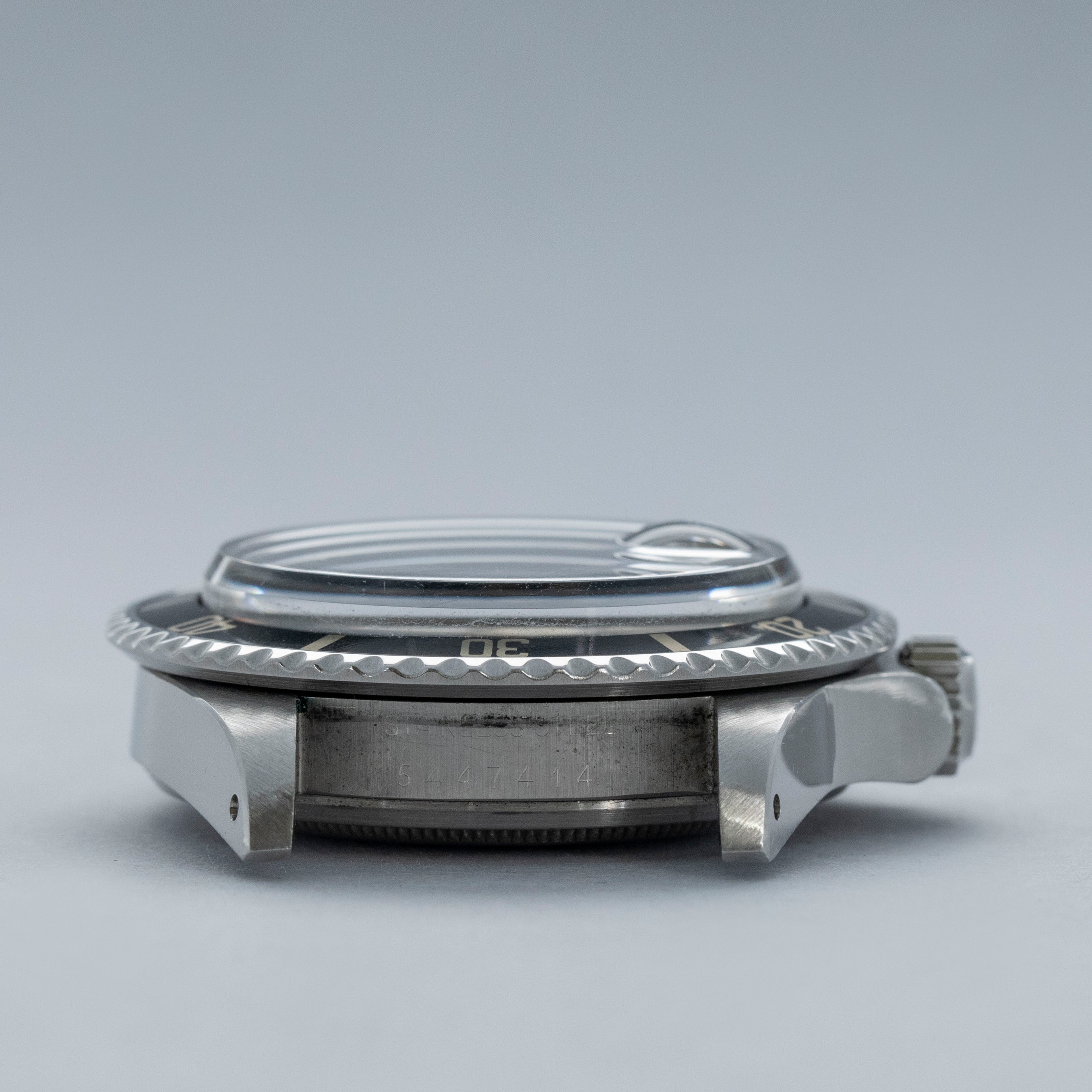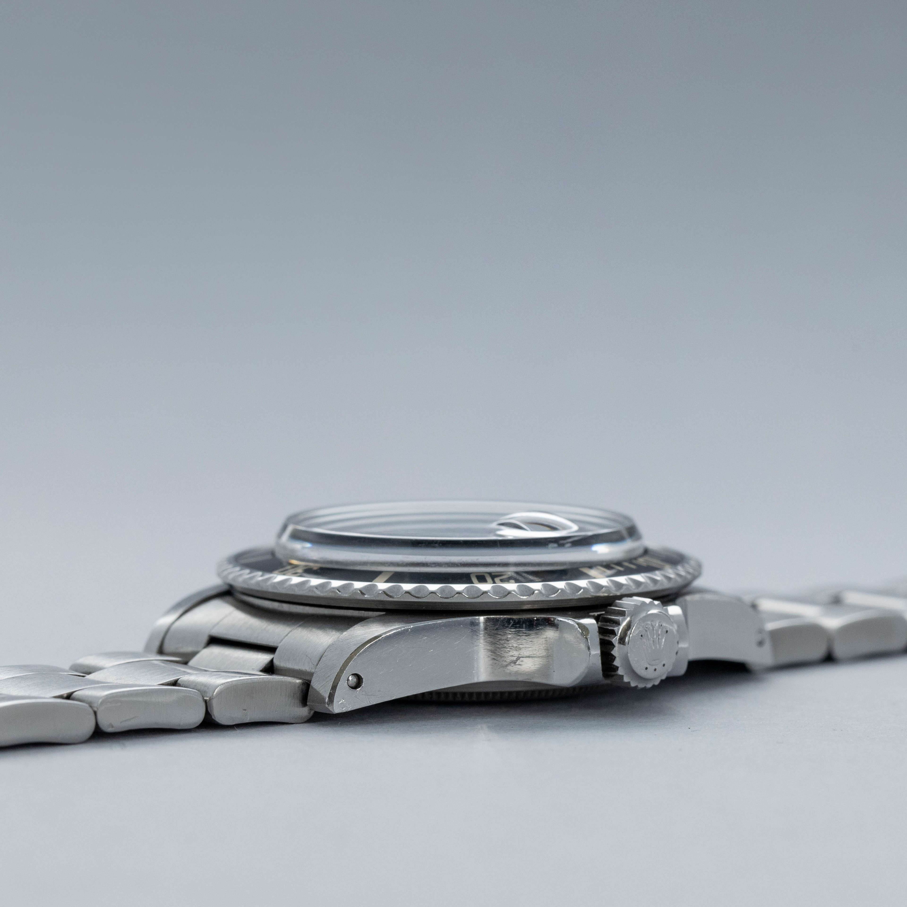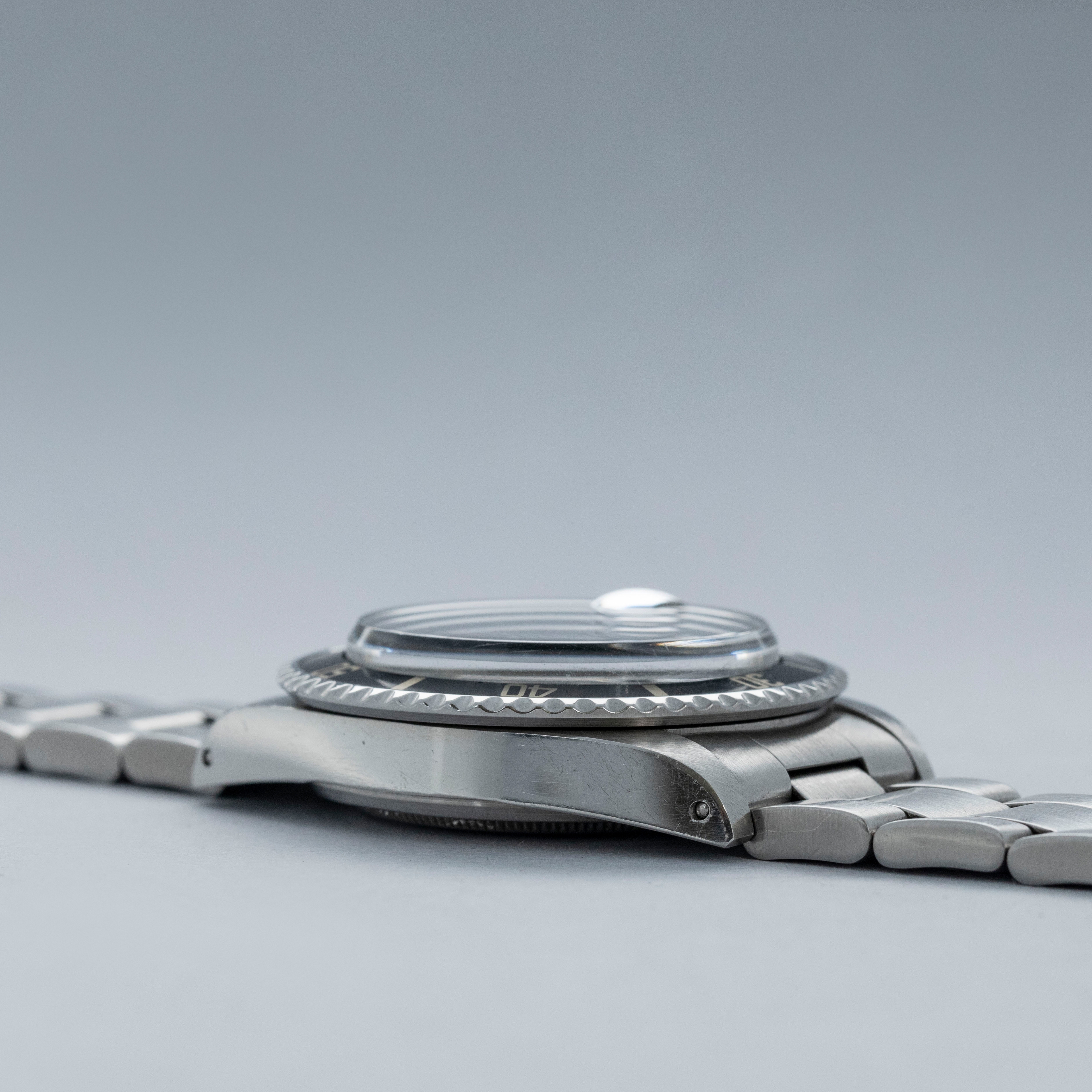 Boasting an aged look through its slightly patinated black aluminum bezel insert and well-aged luminous plots and hands, this example merges the Submariner's timeless design with a vintage wrist presence.