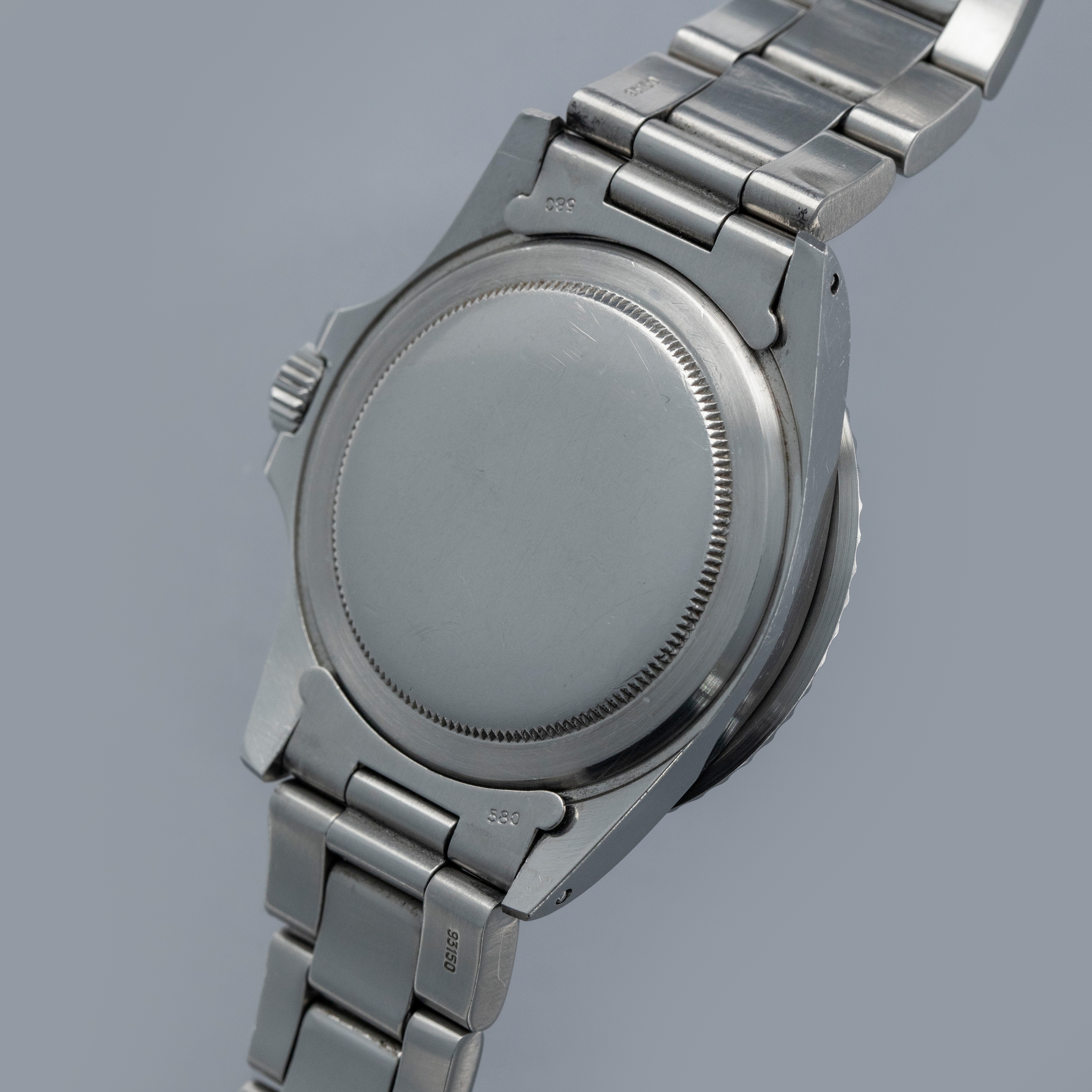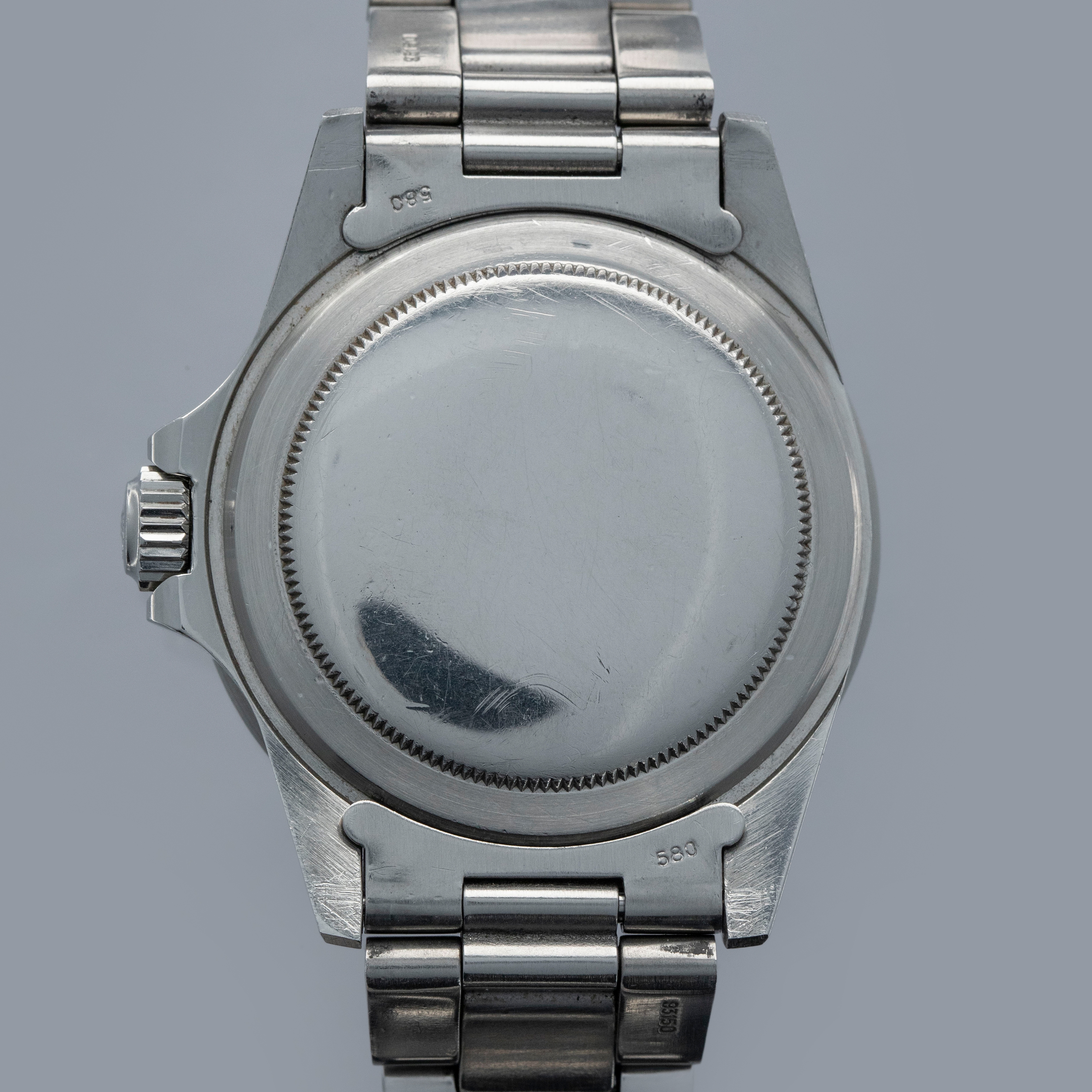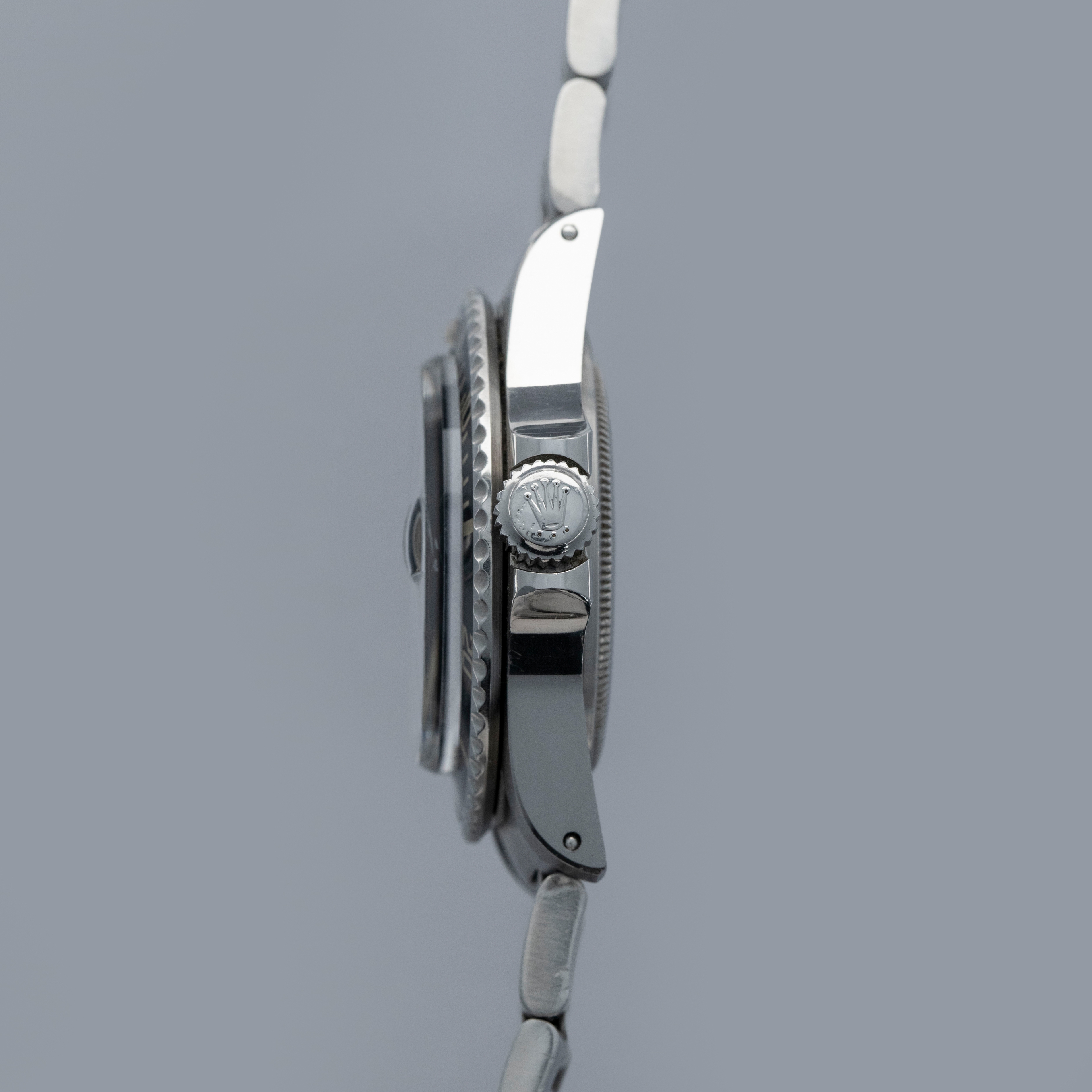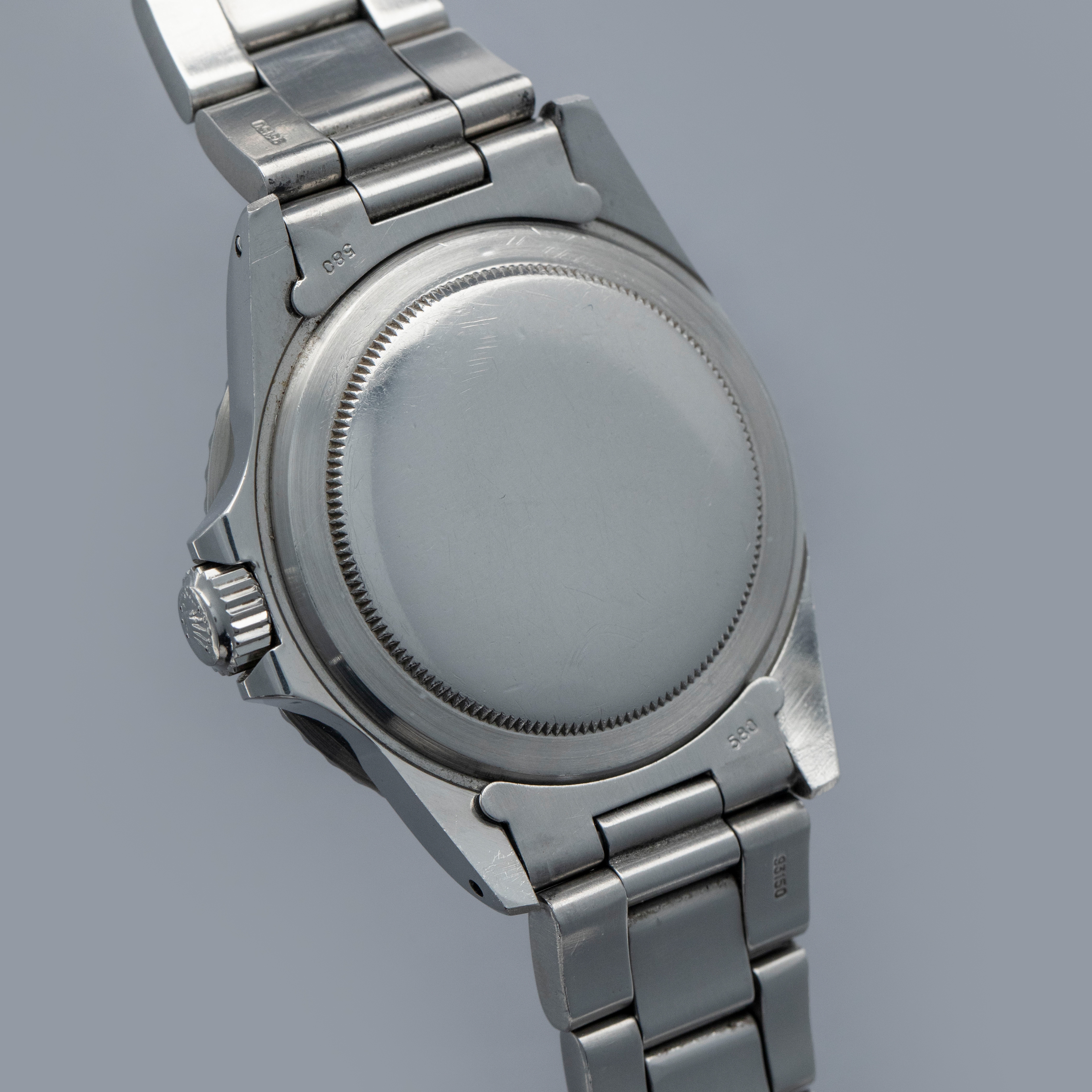 Watch is in overall excellent condition. The steel case is very well defined with some surface scratches and light marks, while the case back shows more noticeable scratches and scuffs, likely from a case back removal tool. The bezel is well defined, and the insert has only a couple of small marks, with the silver numerals and triangle having taken on a warm patina. The dial is near mint, with minor marks in some of the lume plots, and the hands are very clean. Fitted with a solid link Oyster bracelet showing light surface wear and slight play between the links. 11 links, 1 of which is removable, and fits approximately a 7 1/4” wrist.