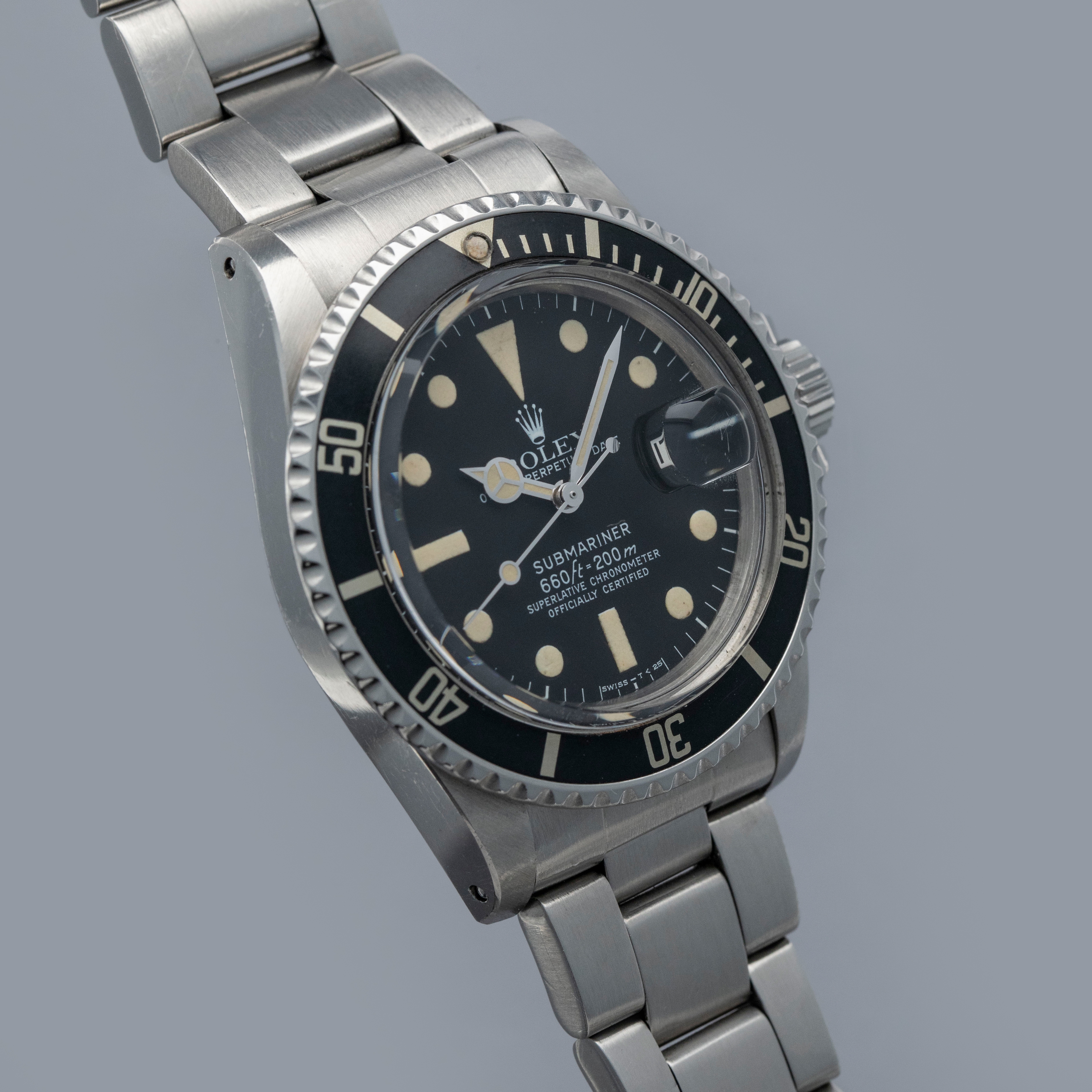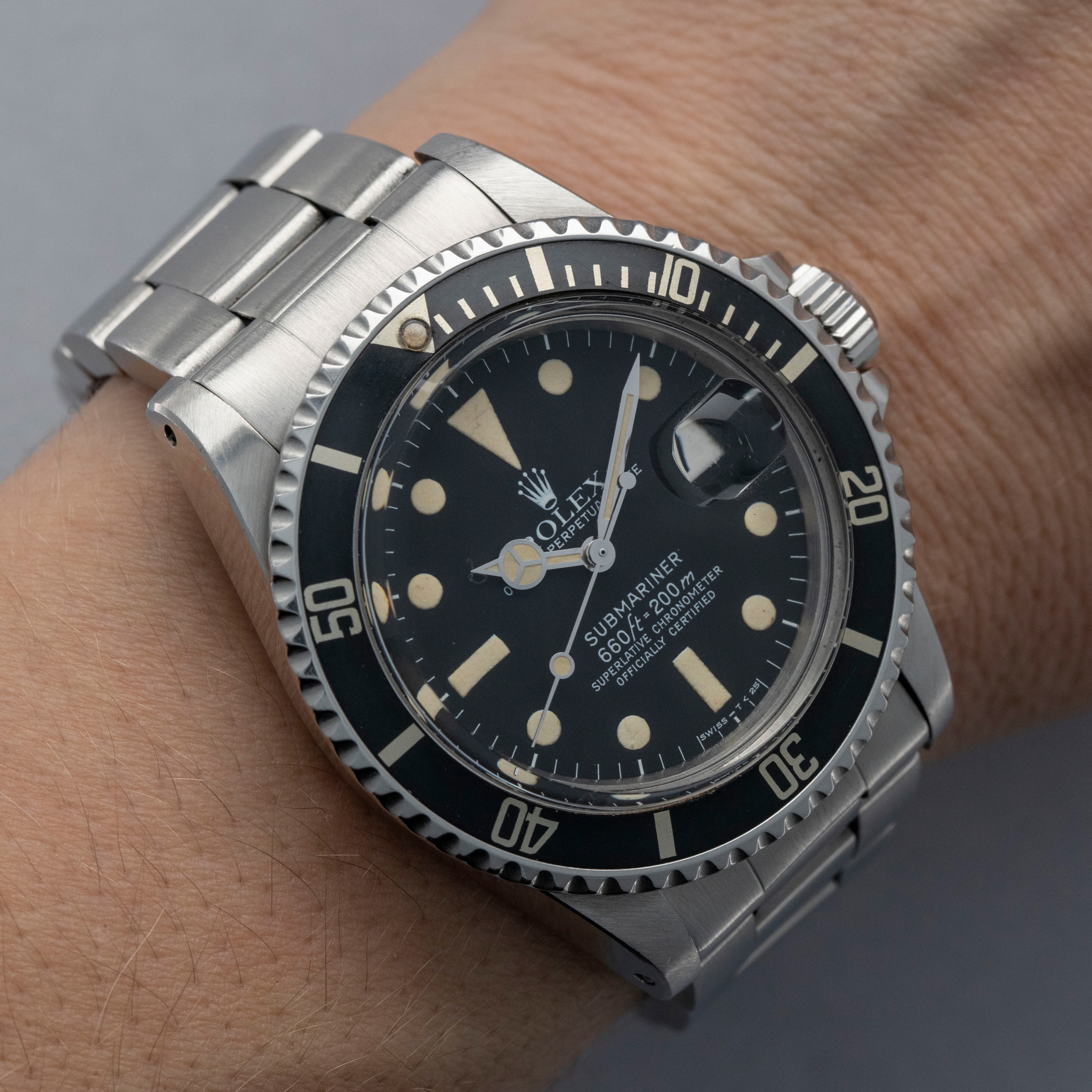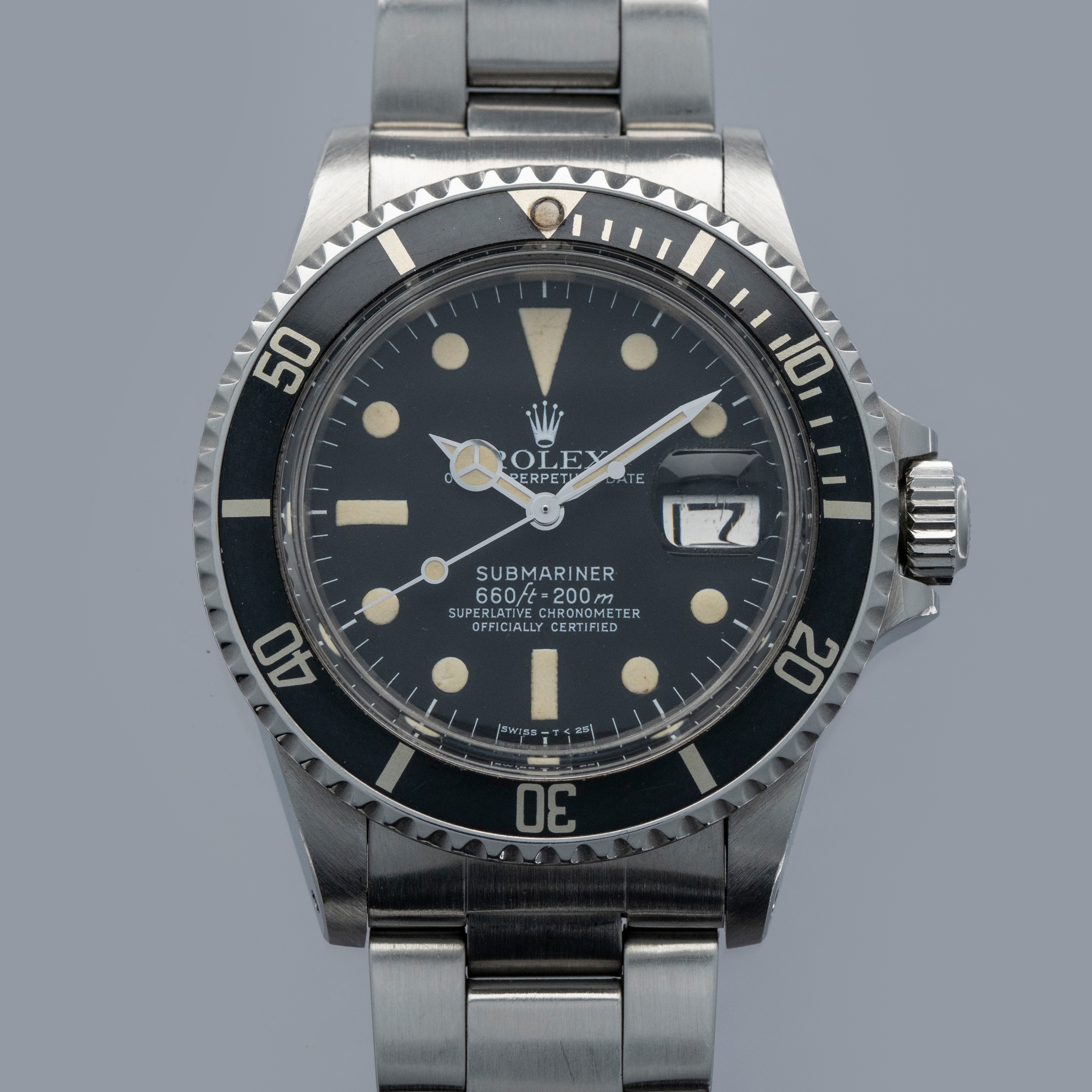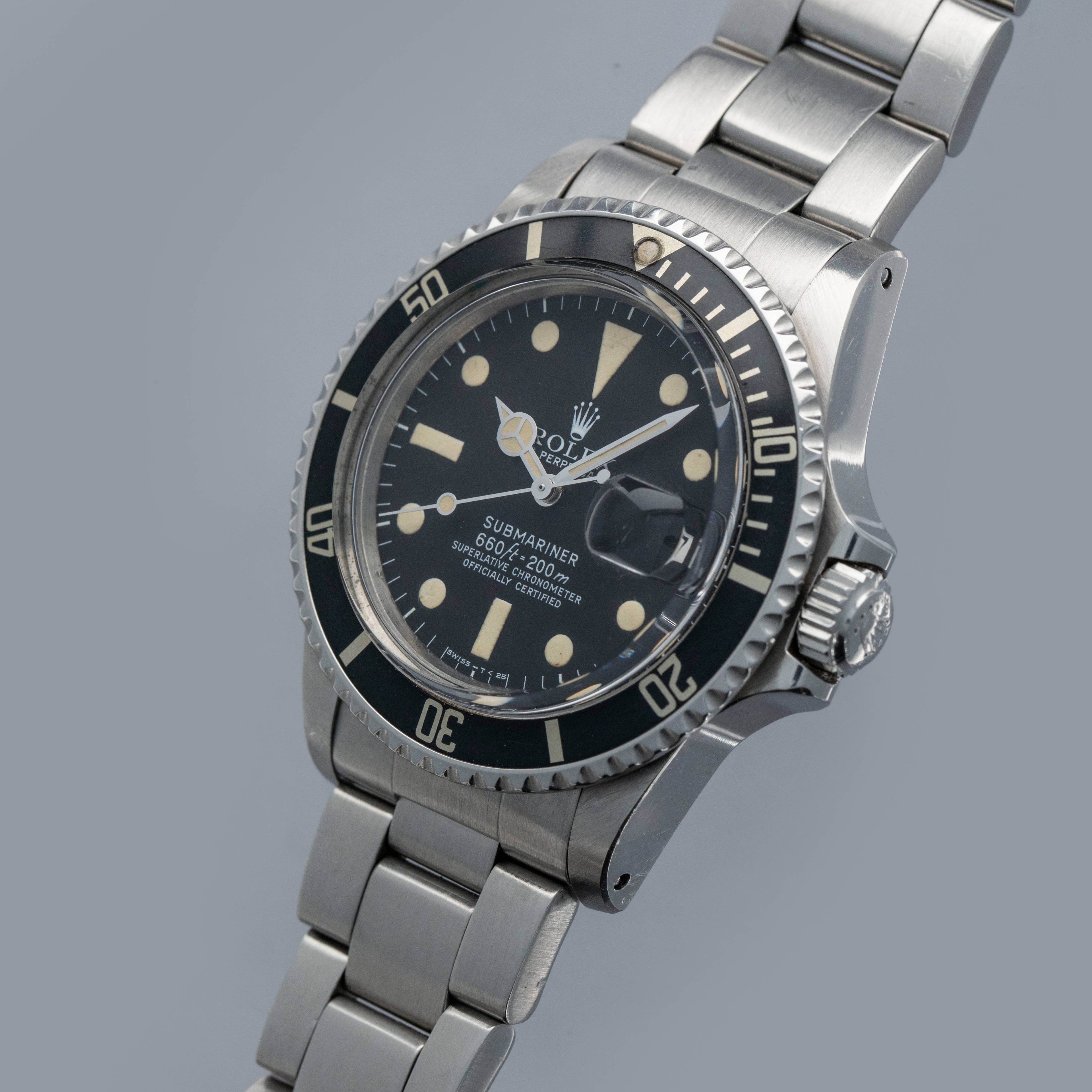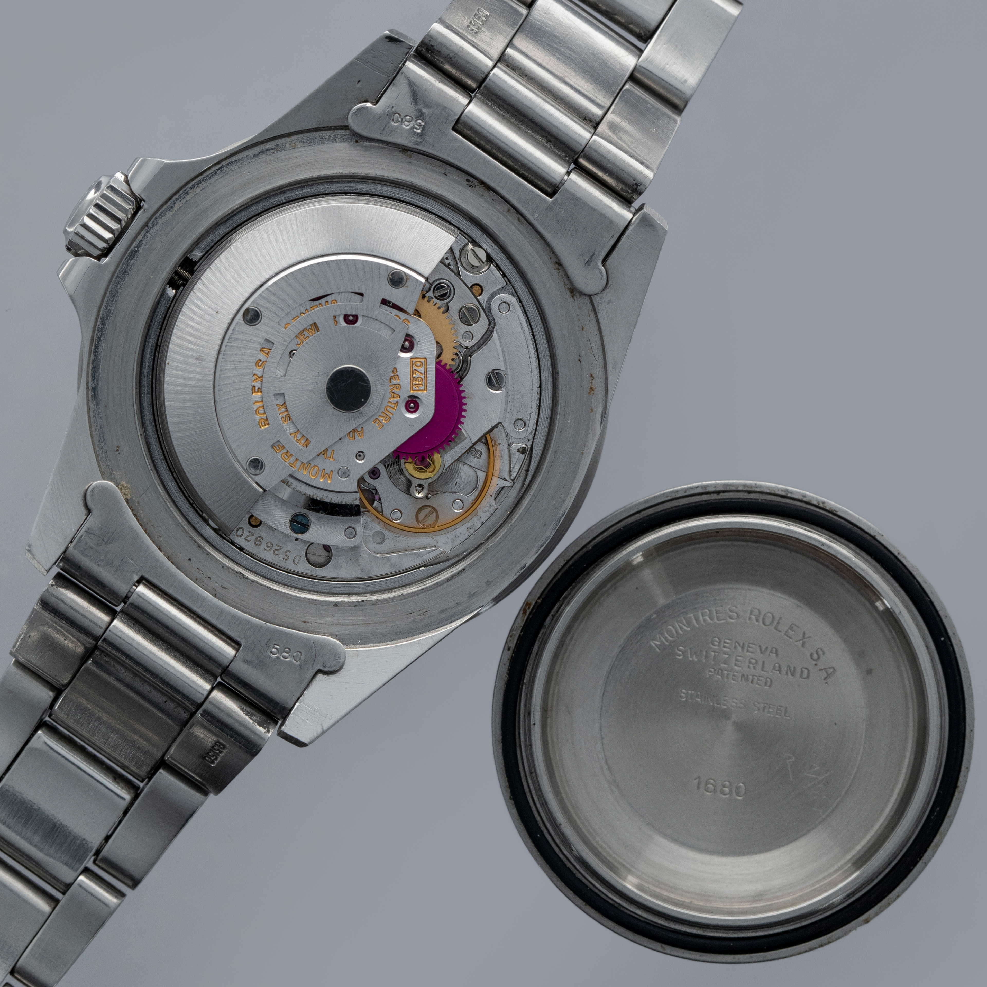 Released around 1967, the Rolex Submariner ref. 1680 marked a change of direction for the famed Genevan watchmaker. While tool watches had long been Rolex's focus during the 1950s, Submariner ref. 1680 announced Rolex's intention to cater to a new, larger market. The ref. 1680's new date function marked Rolex's true recognition that their watches had become an accessory worn by those who did not need Rolex's impressive tool-watch capabilities but rather everyday conveniences. The first production examples of the ref. 1680 were denoted by their red "Submariner" inscription, which was later phased out for white text by 1973, in keeping with the rest of the dial's design.