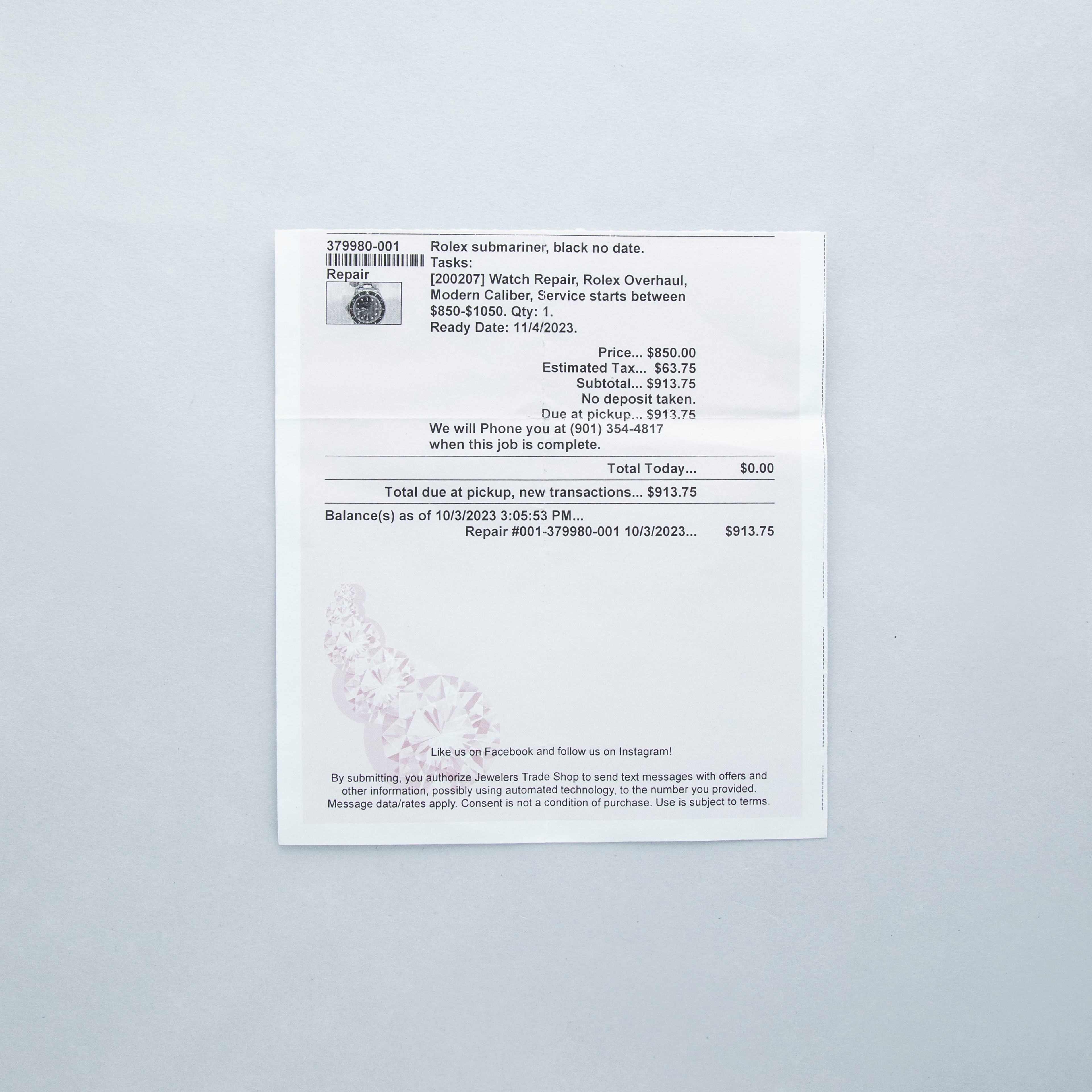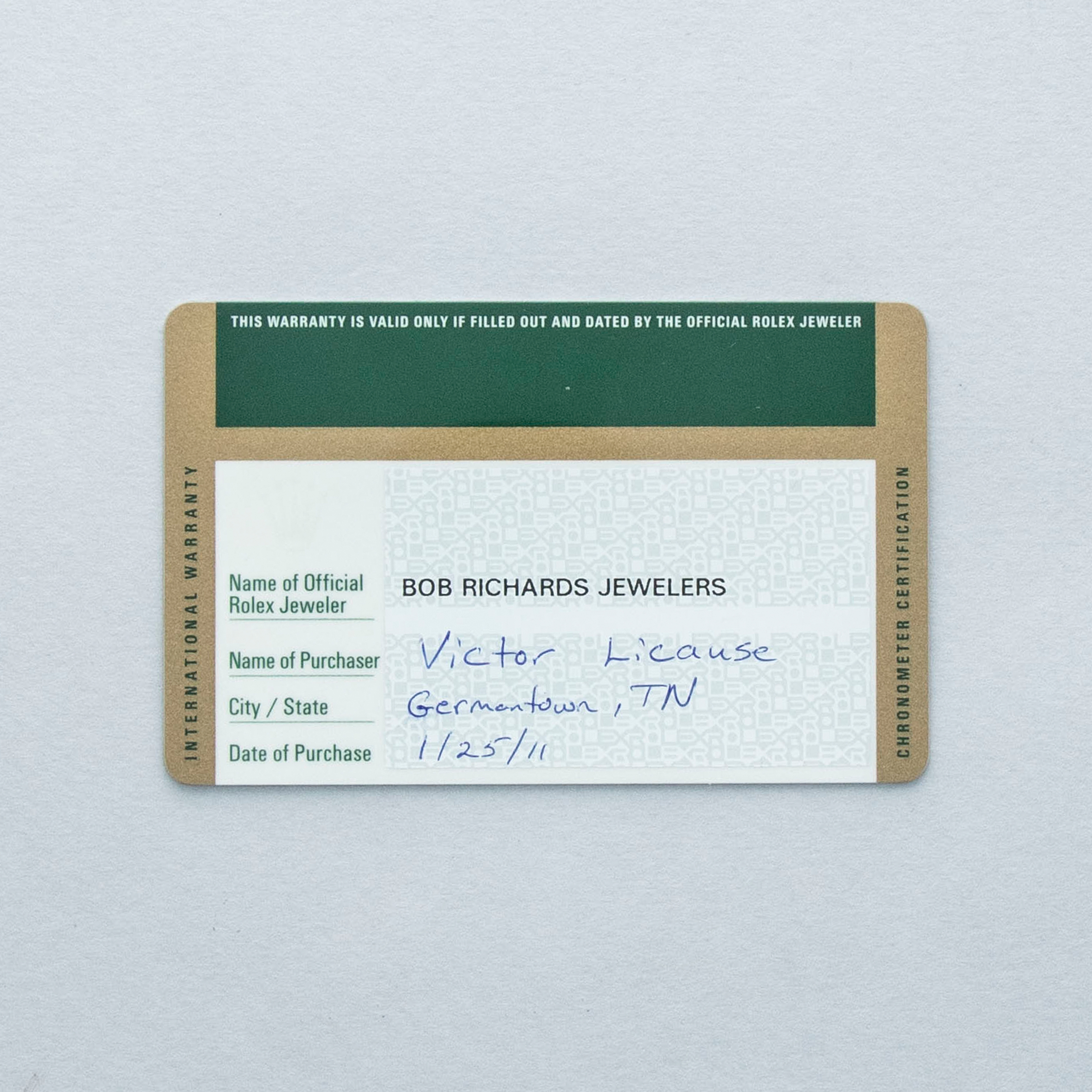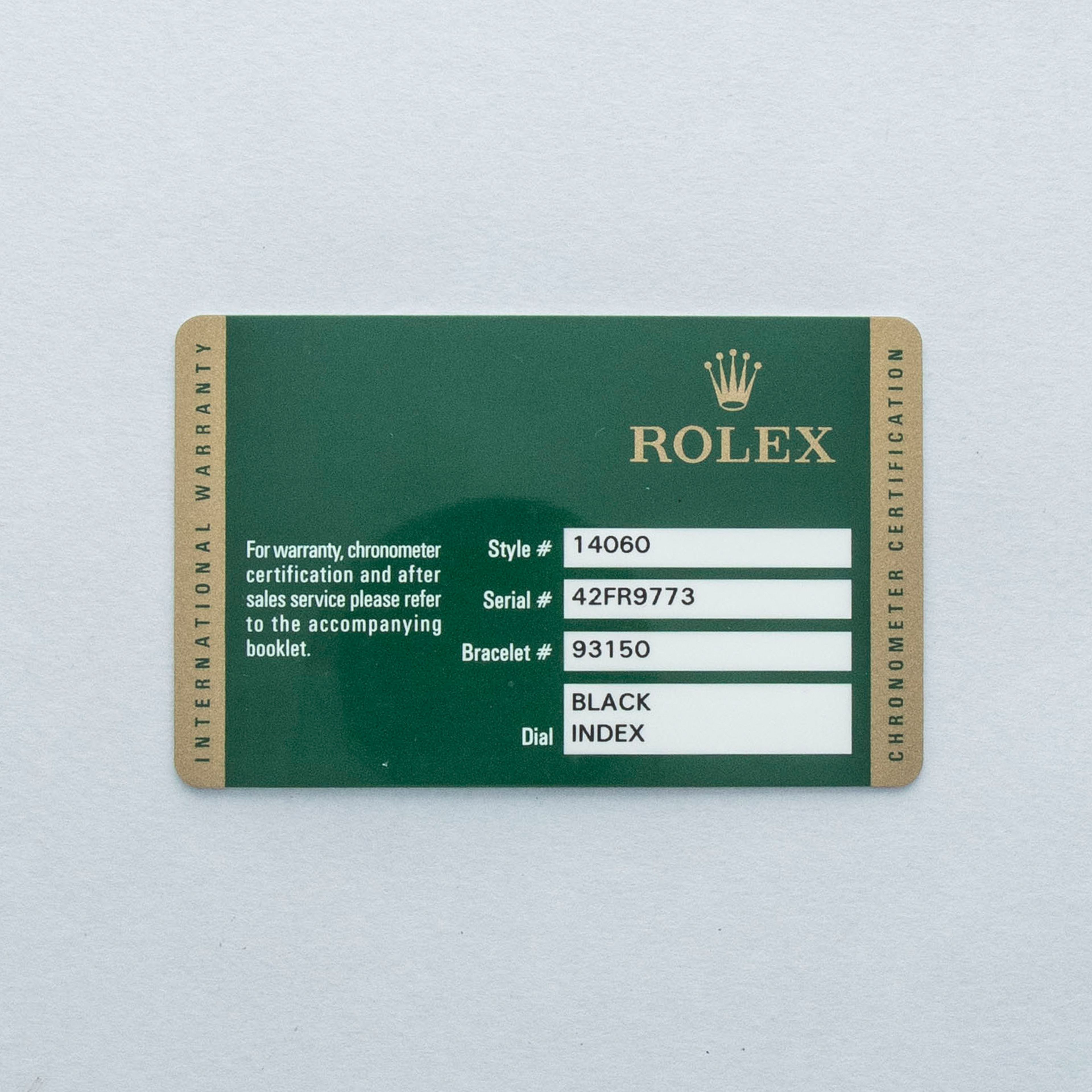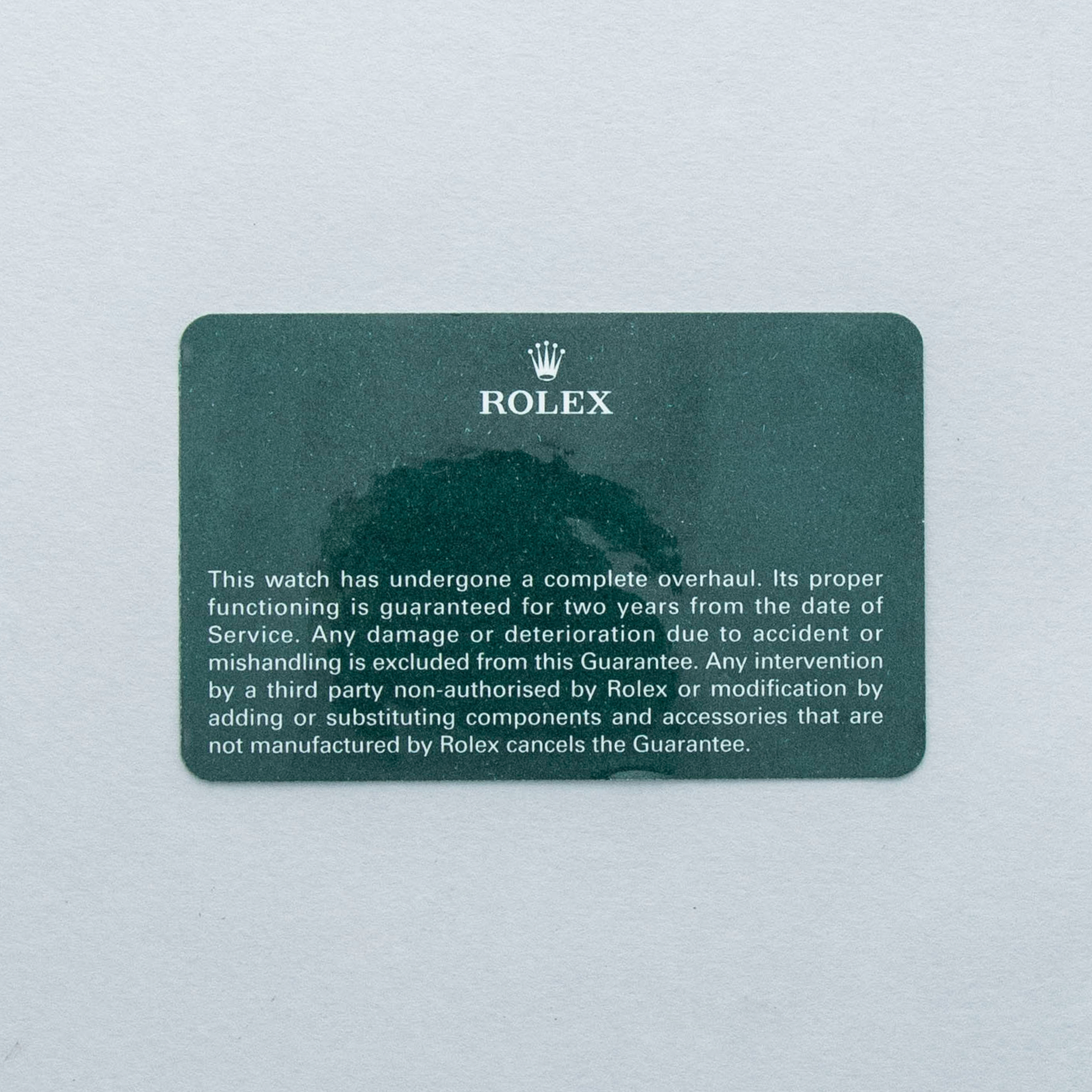 Watch, box, and papers, two Rolex service cards (one dated, one NFC)
