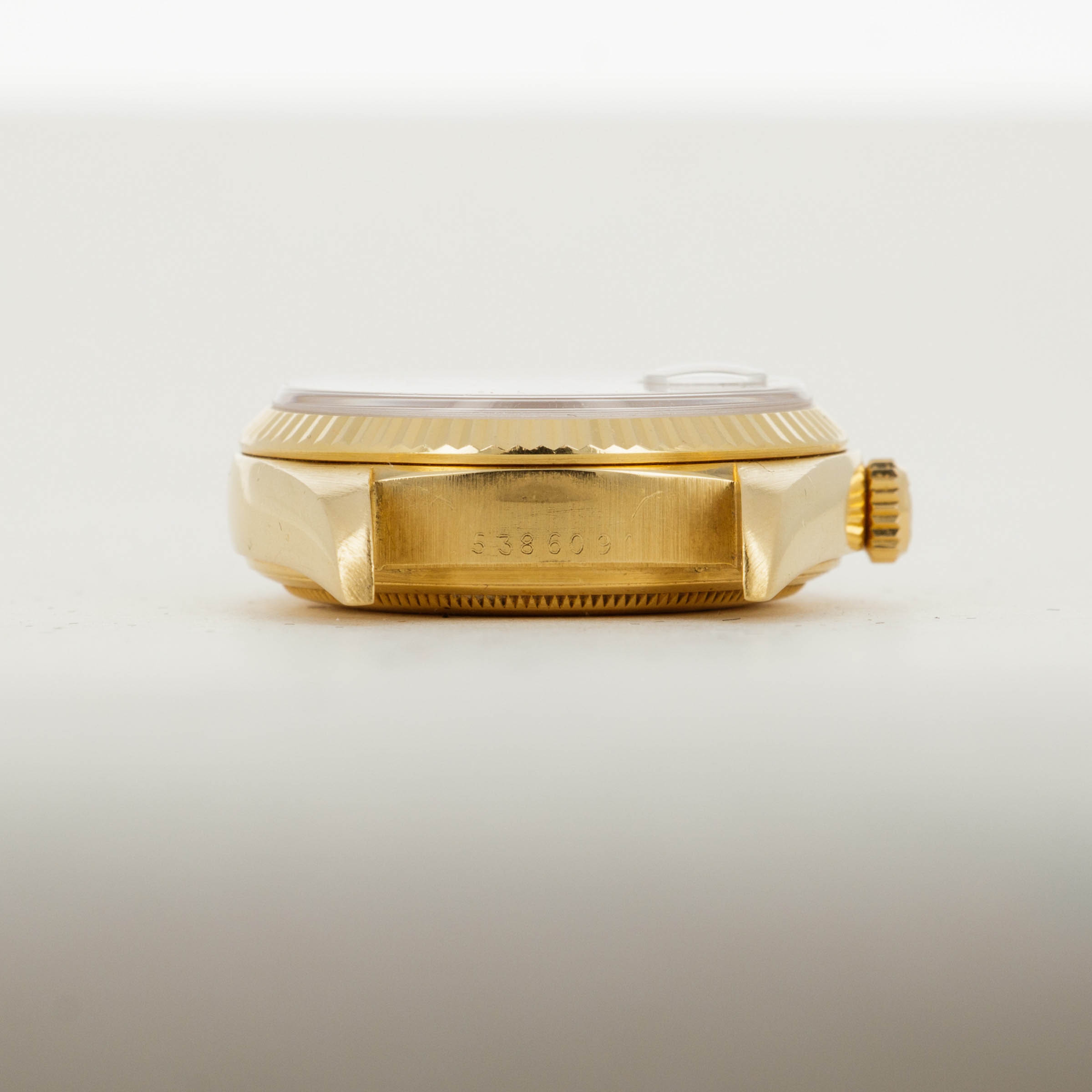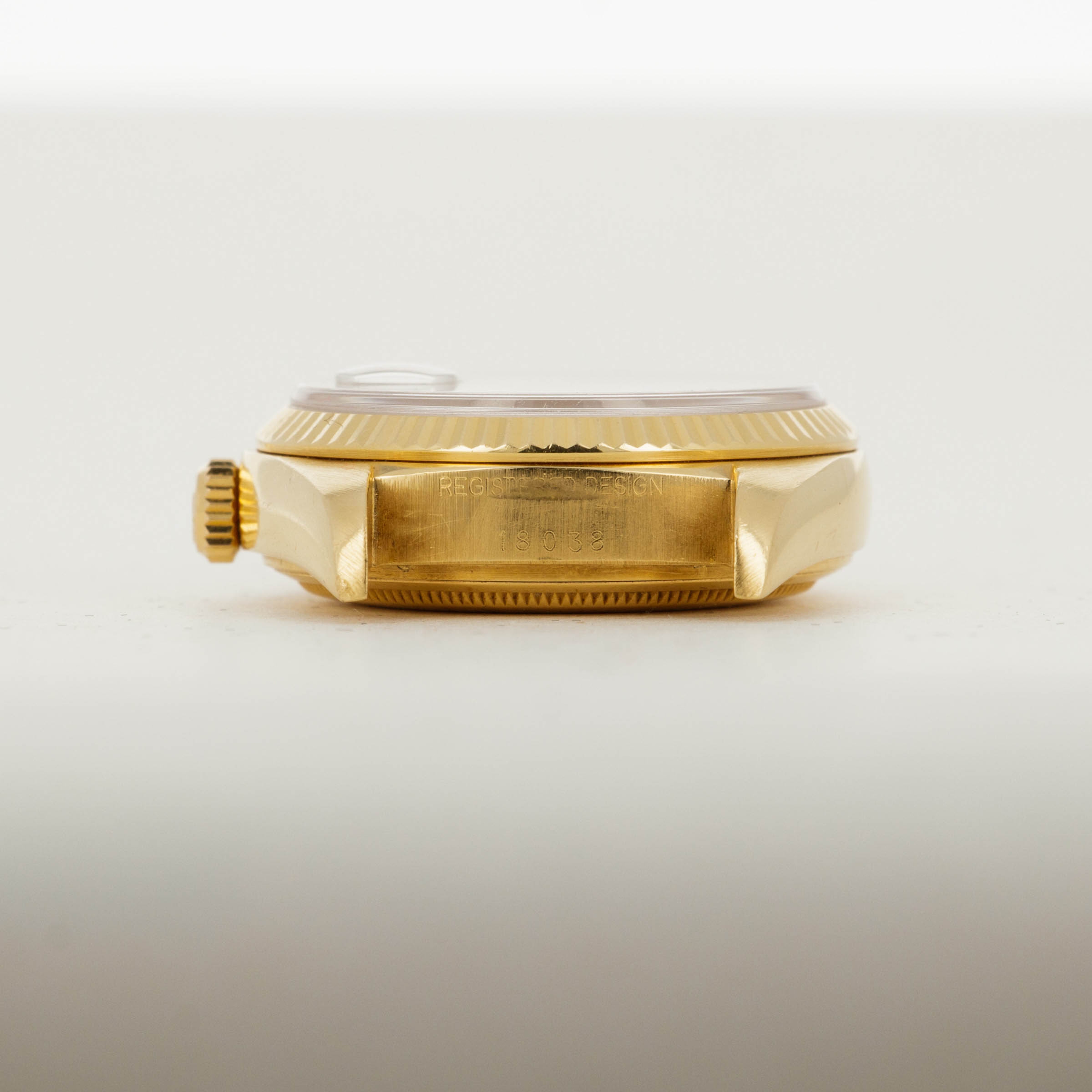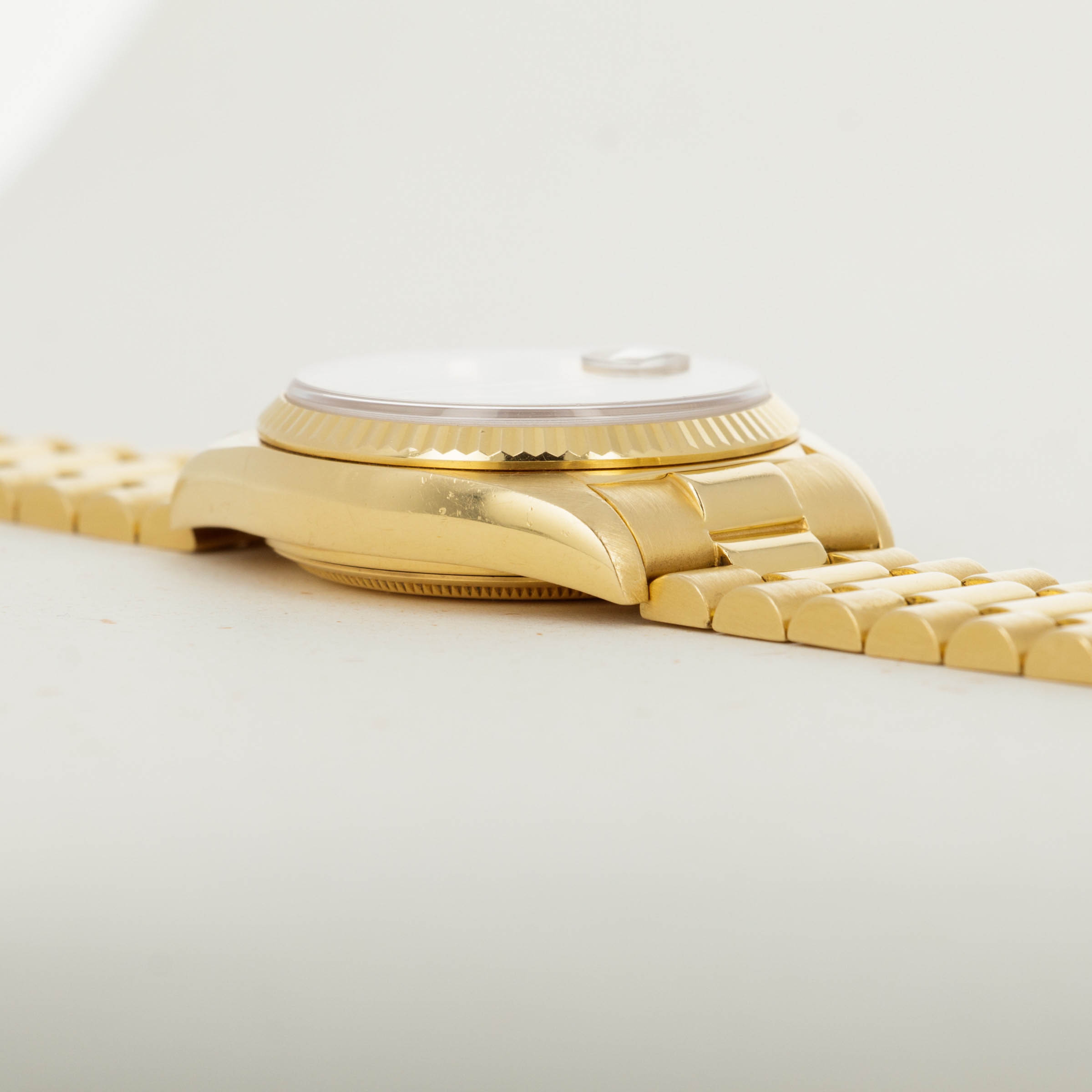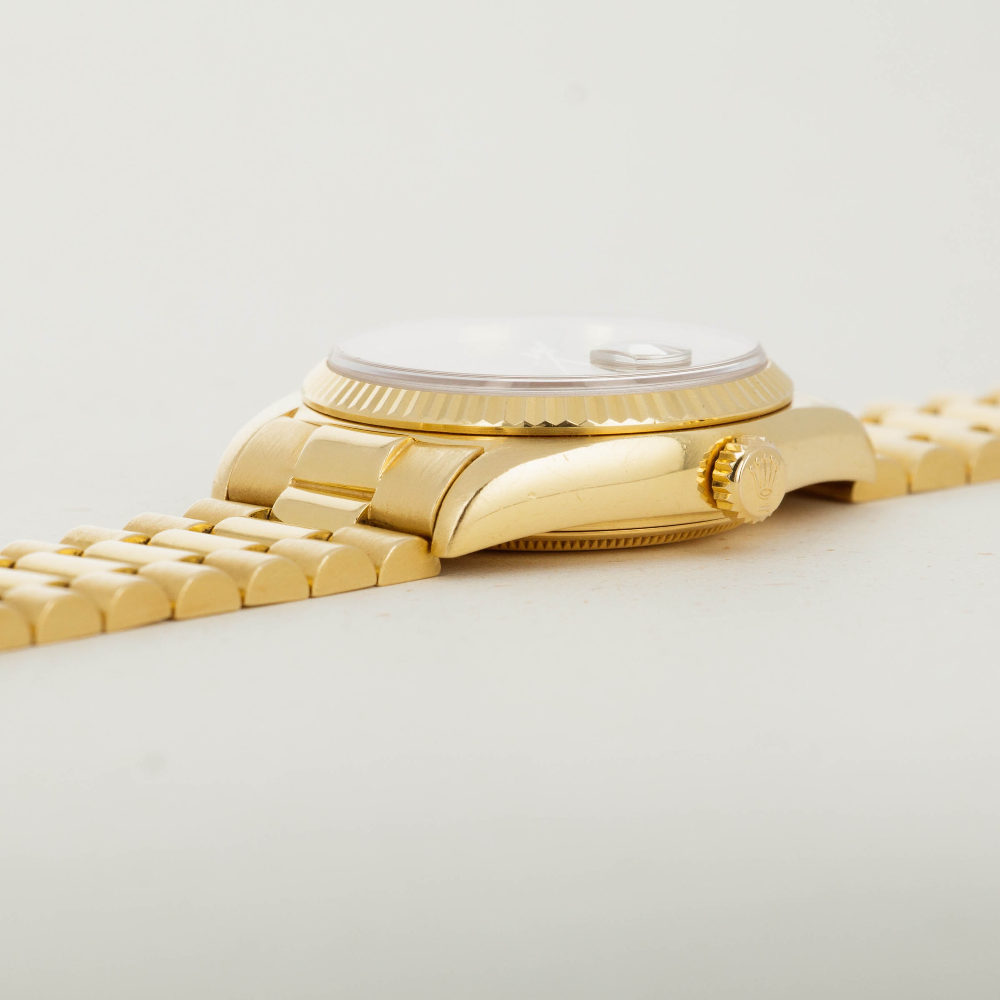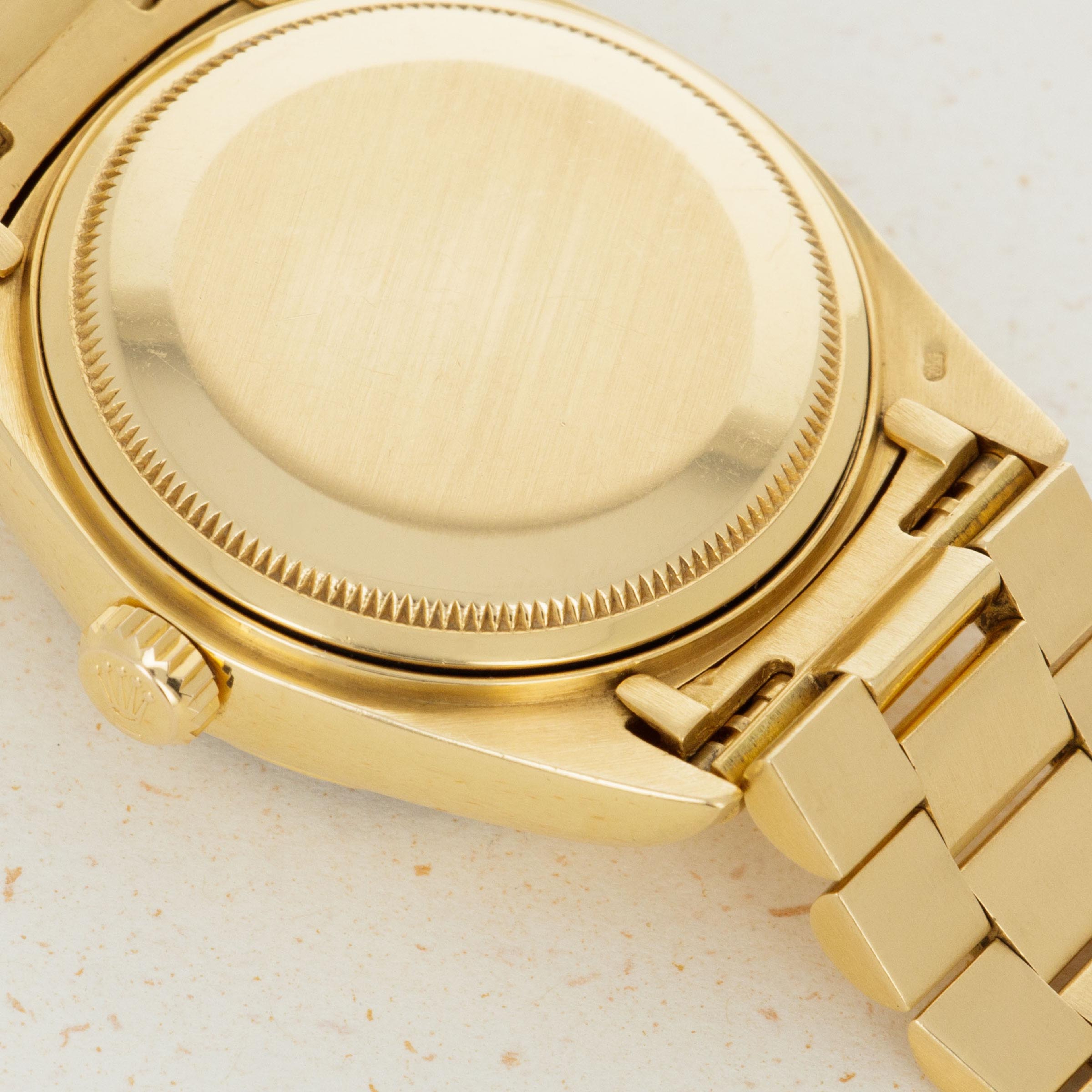 While its dial is certainly unusual, this ref. 18038's 18kt yellow gold construction is entirely classical in its design with its traditional 36mm case, Presidential bracelet and wonderful fluted bezel.