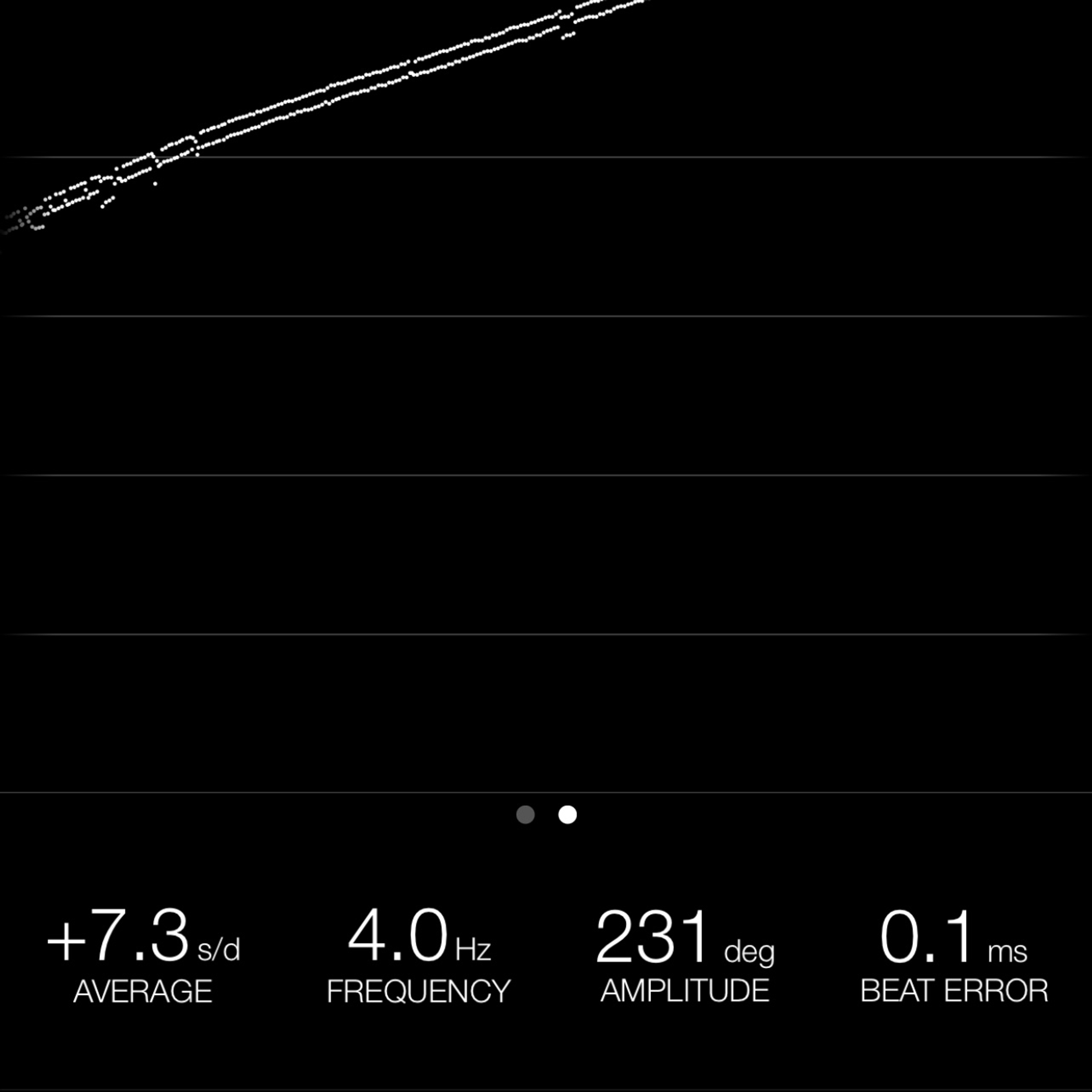 This reading was taken (crown down) with a ONEOF Accuracy Boutique Edition timing machine at time of cataloging. It is provided as a courtesy only, and shall not be construed as a warranty or guarantee of any kind. Please refer to our terms and conditions of sale for more information.