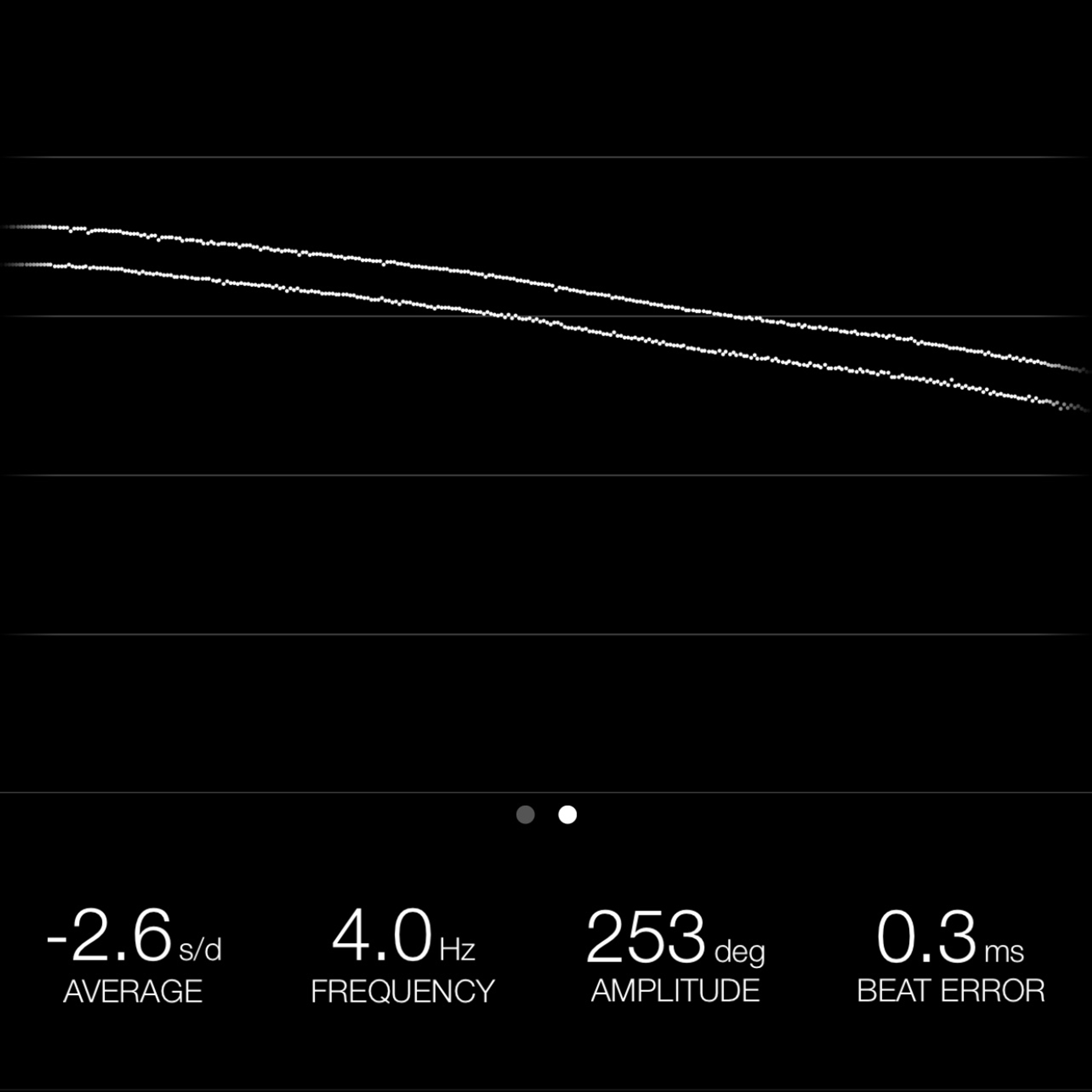 This reading was taken (crown down) with a ONEOF Accuracy Boutique Edition timing machine at time of cataloging. It is provided as a courtesy only, and shall not be construed as a warranty or guarantee of any kind. Please refer to our terms and conditions of sale for more information.