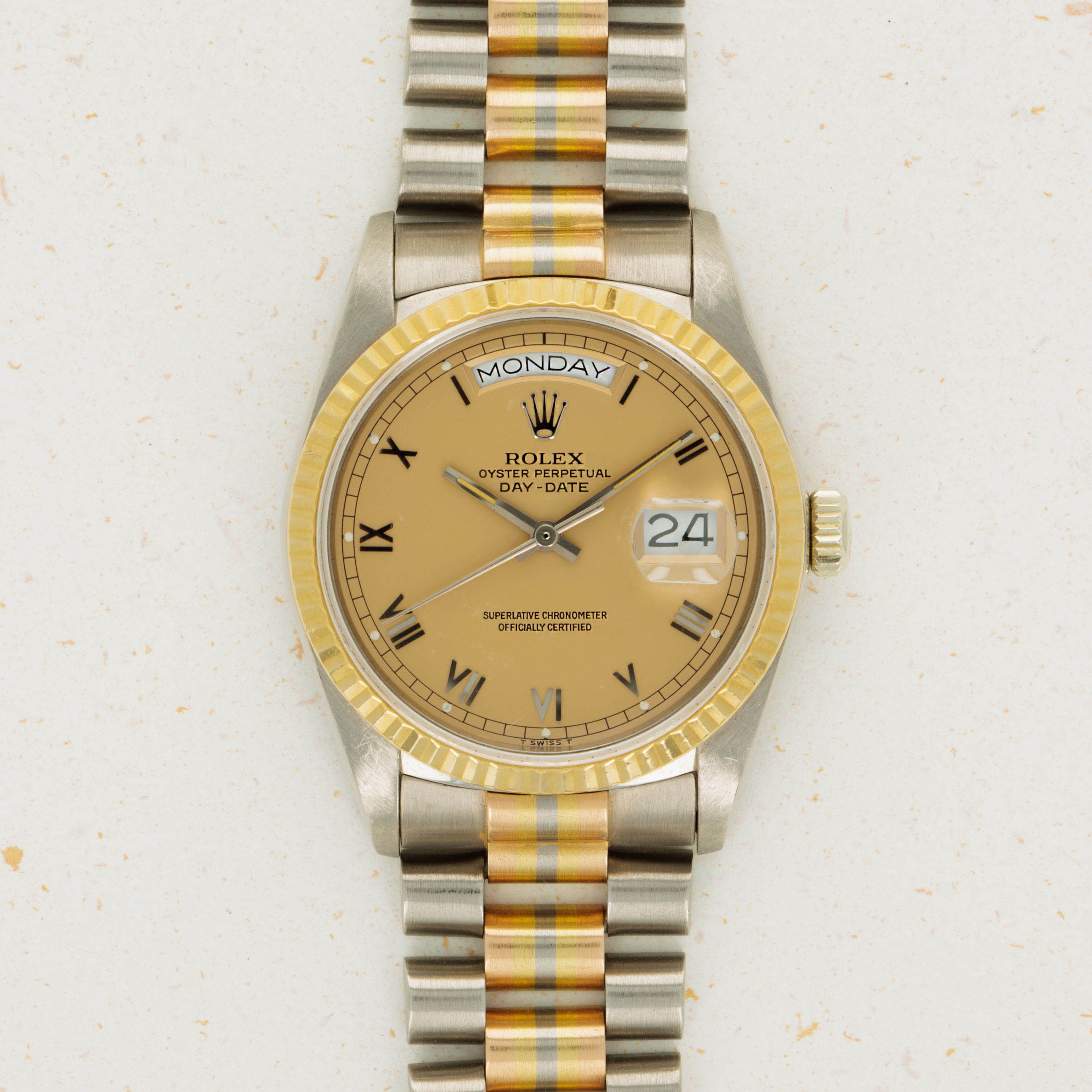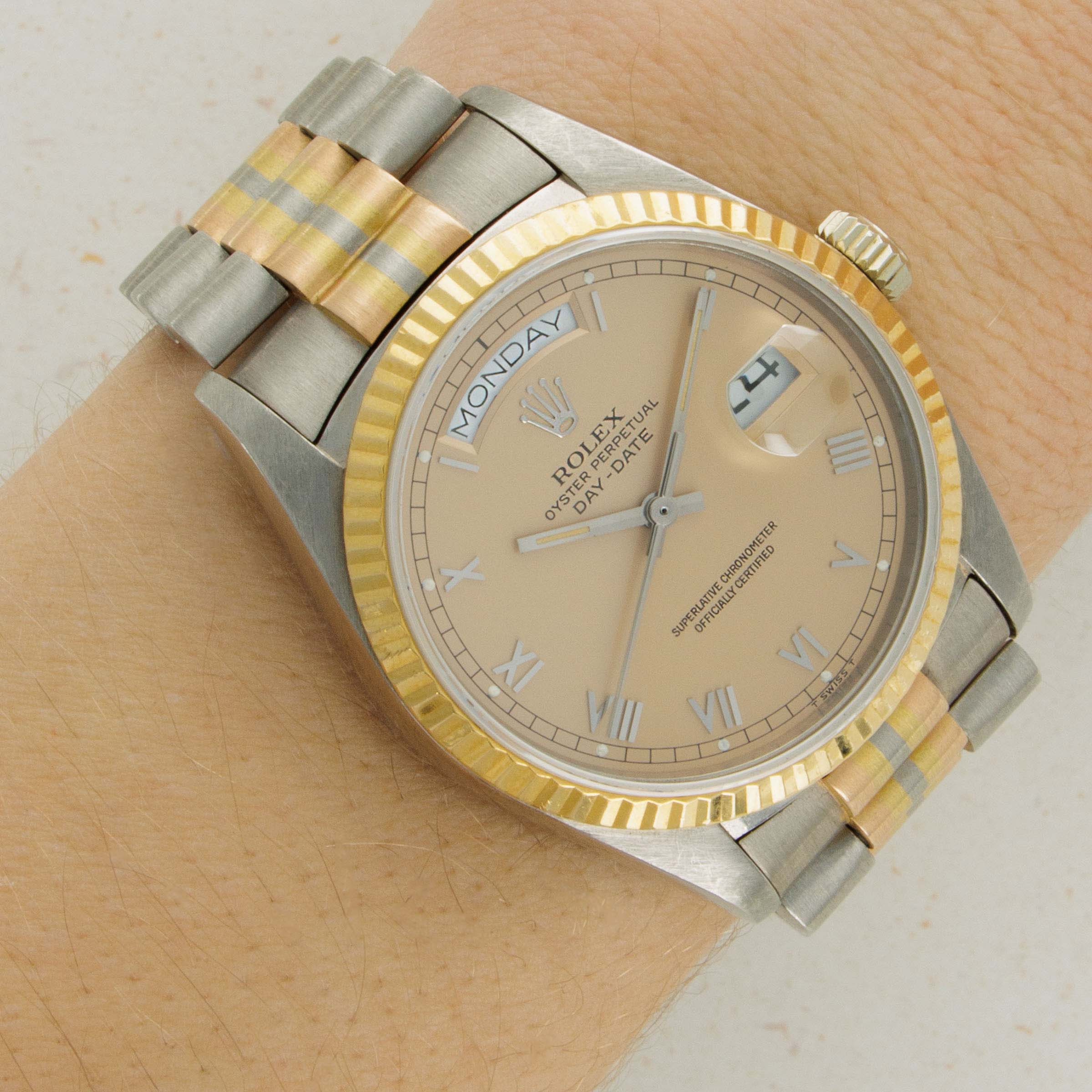 18kt yellow gold, 18kt white gold and 18kt rose gold President bracelet