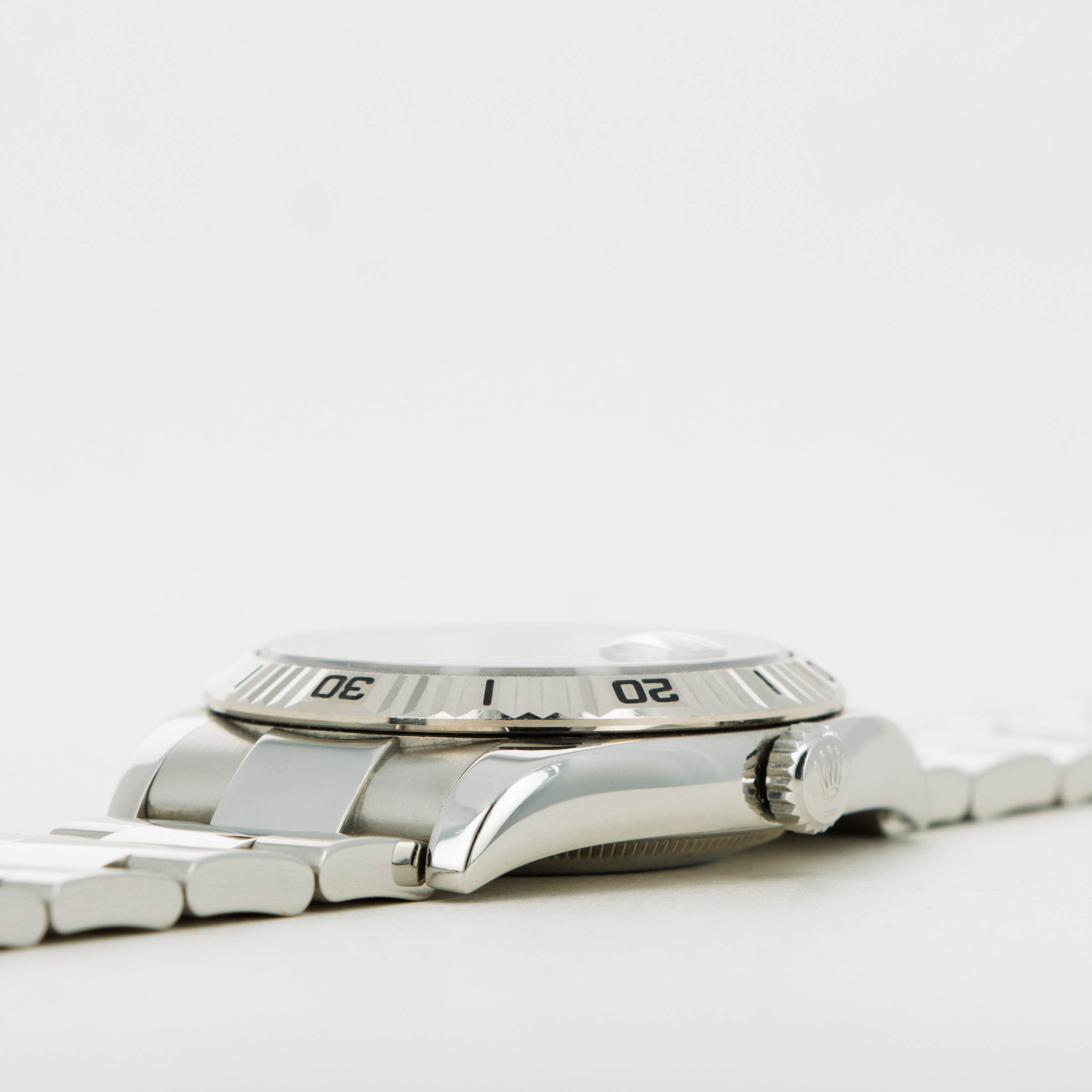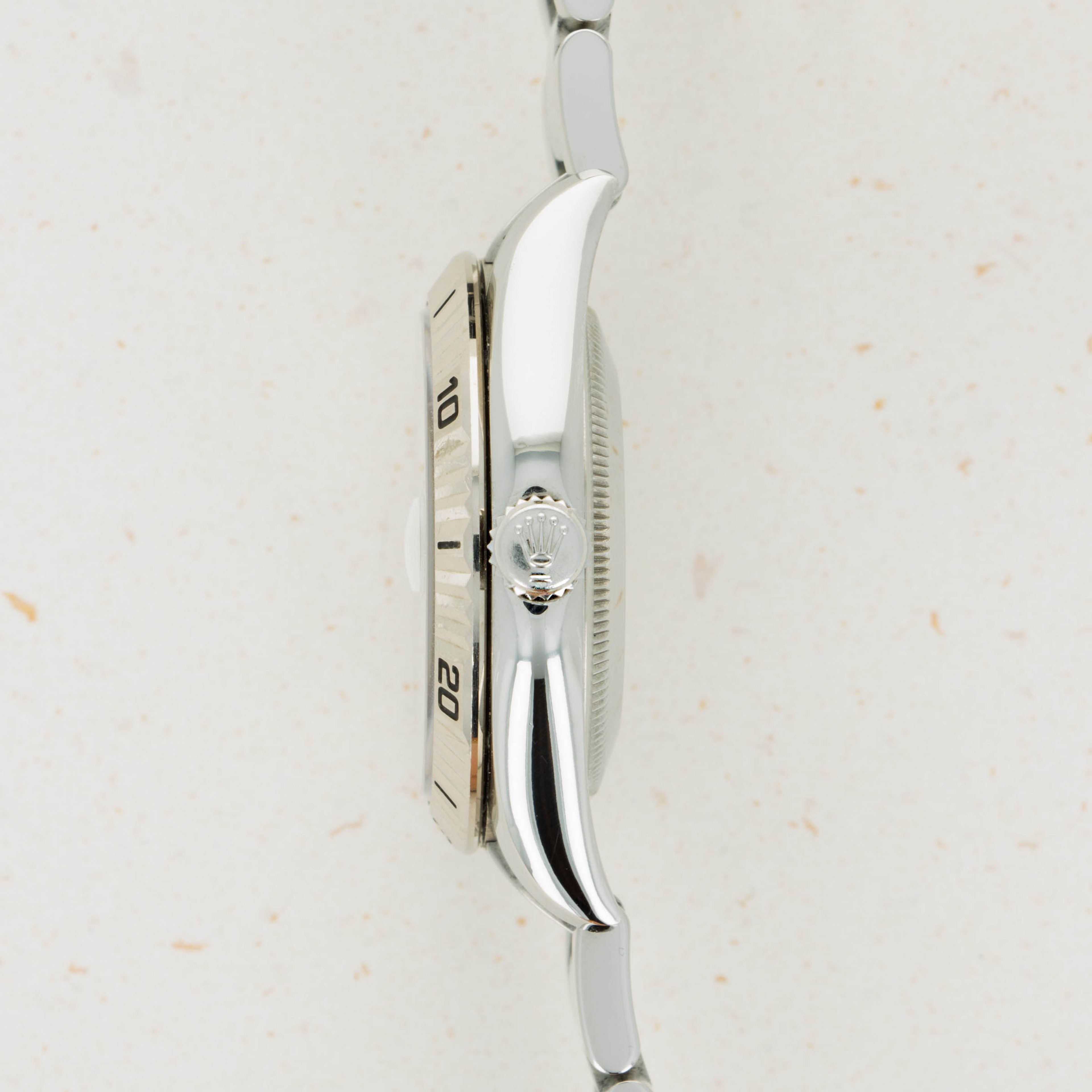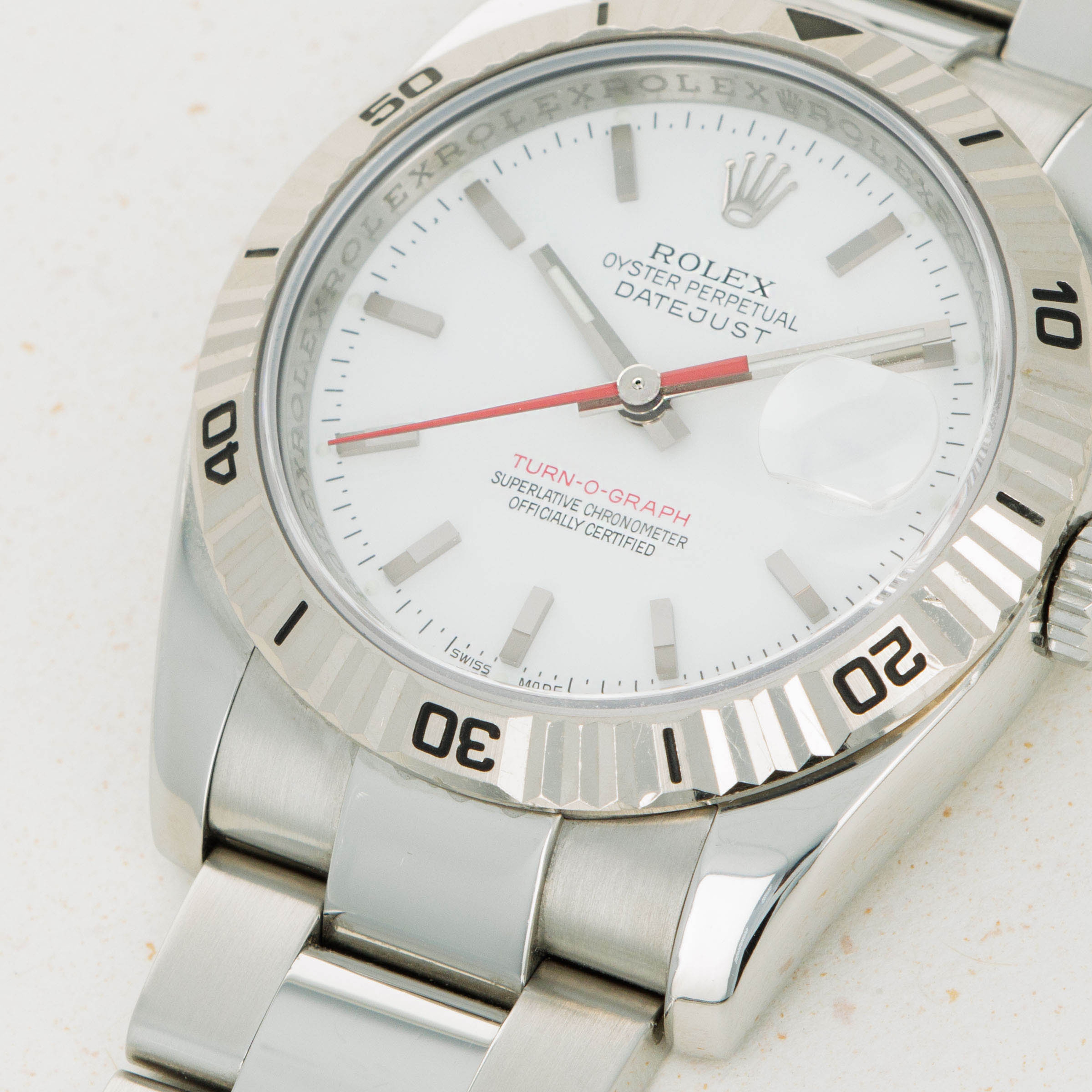 Featuring the Datejust's modern 36mm construction with its solid end links and center links and its modern clasp, the Turn-O-Graph ref. 116264 merges the appeal of a contemporary Rolex with the appeal of its long-lost vintage name.