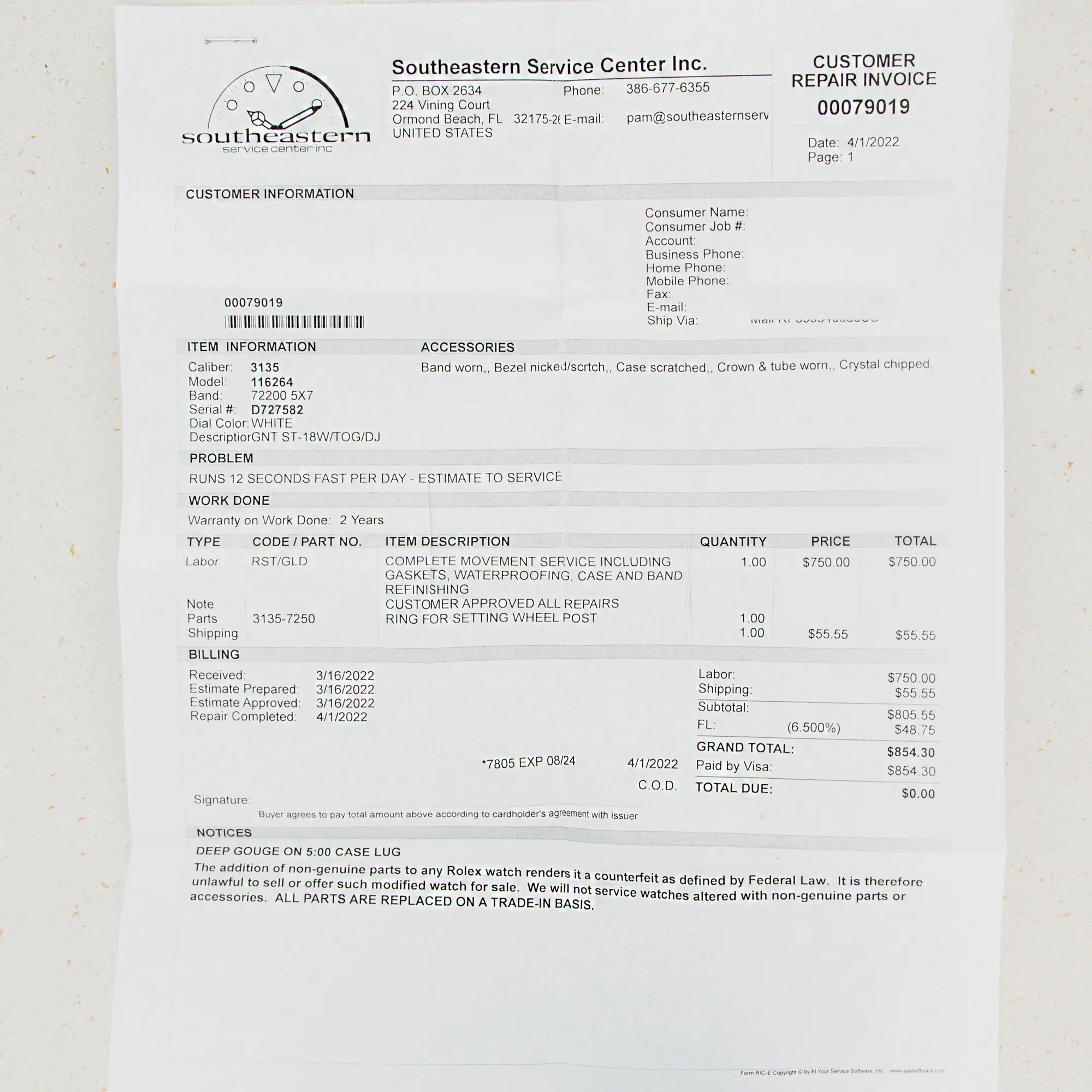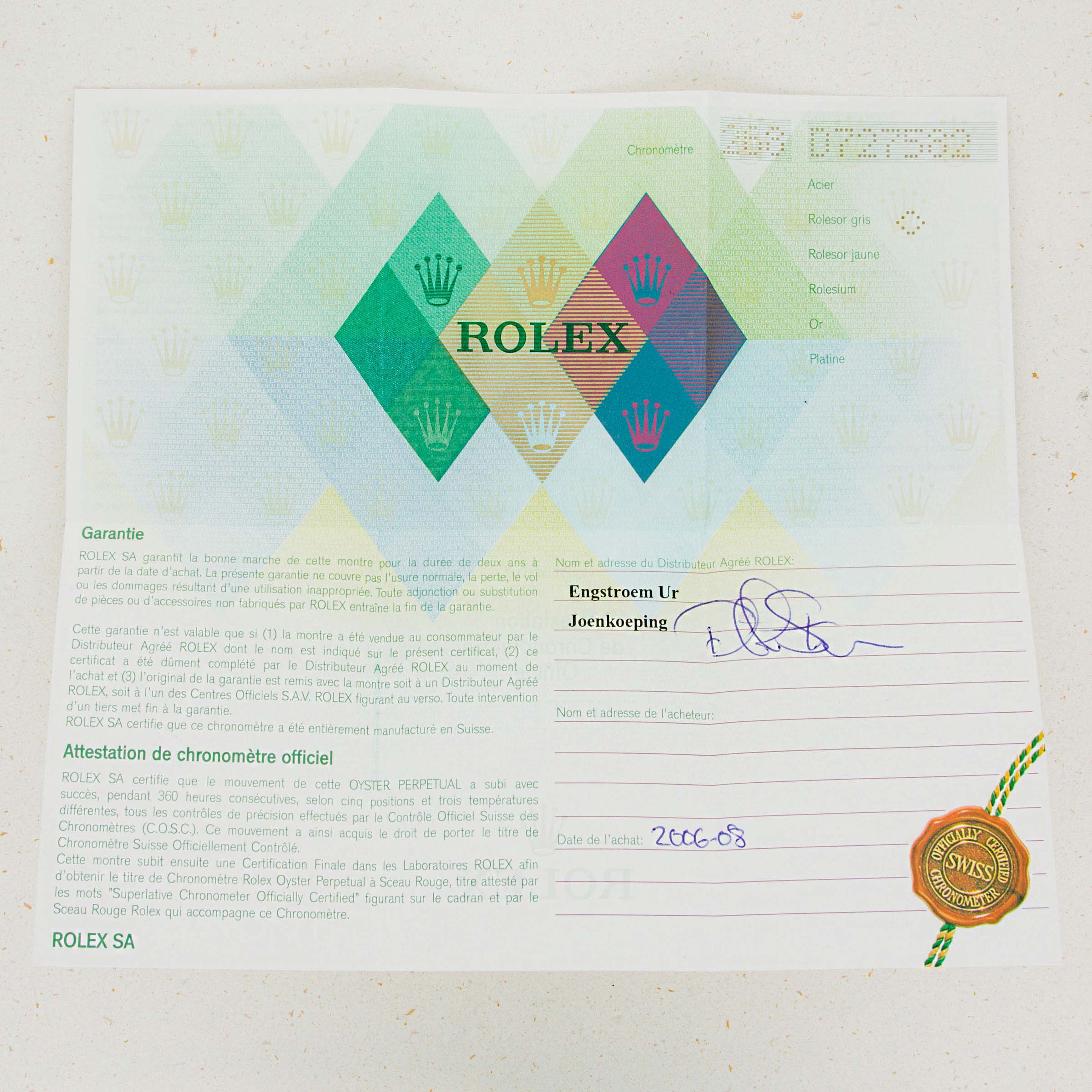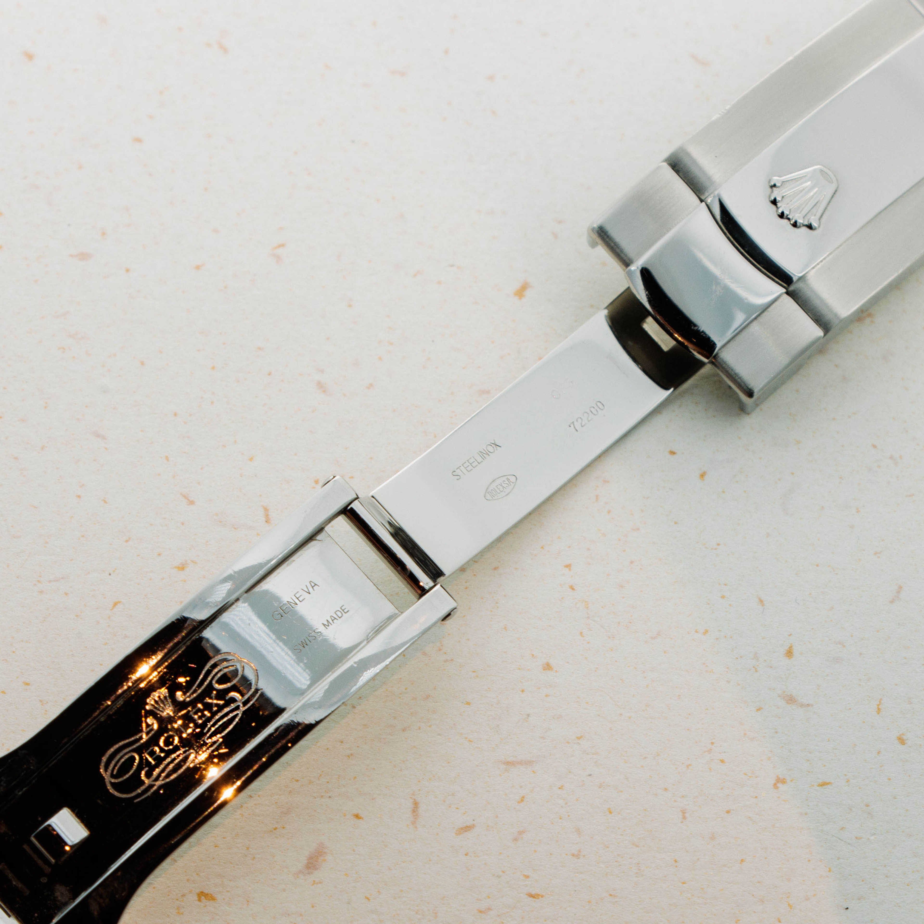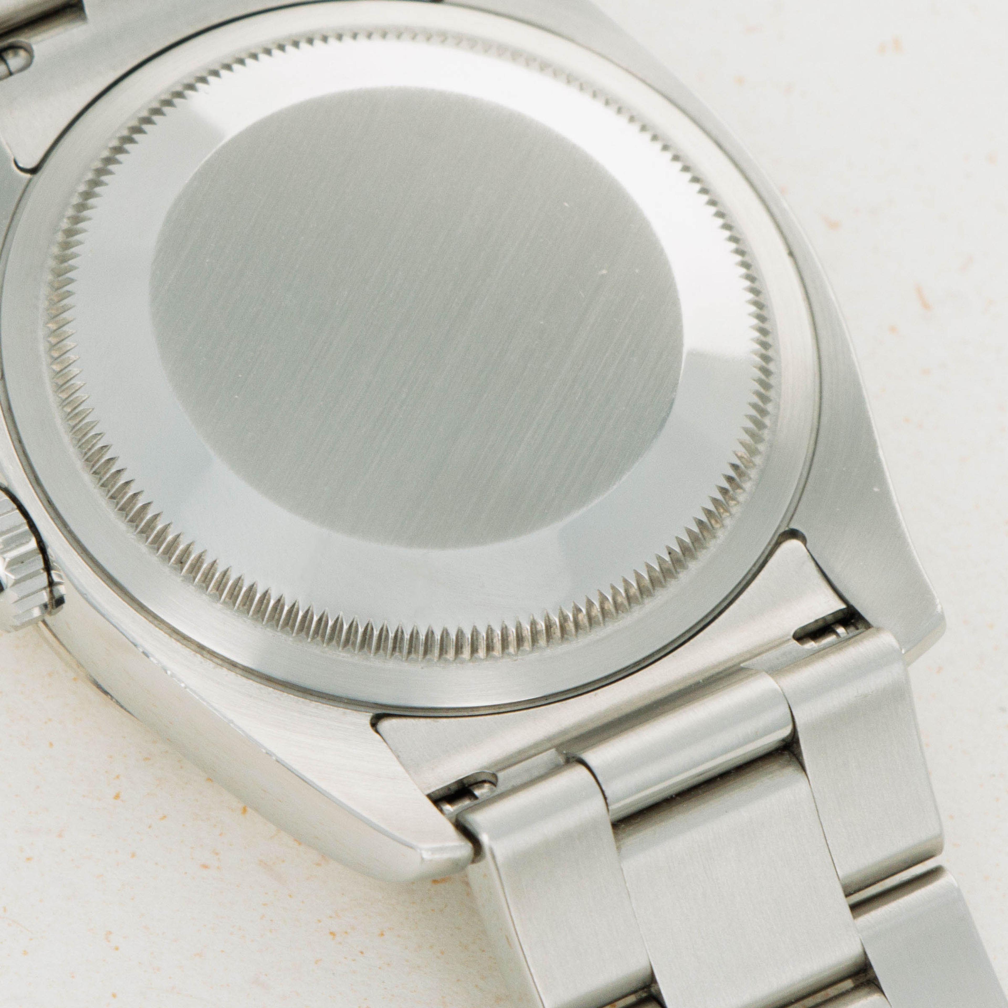 Watch is in overall excellent condition. The case and bezel exhibit signs of surface wear and scratches, as does the bracelet, primarily on the polished links. The watch has 11 full and 3 half links, 3 full links are removable.