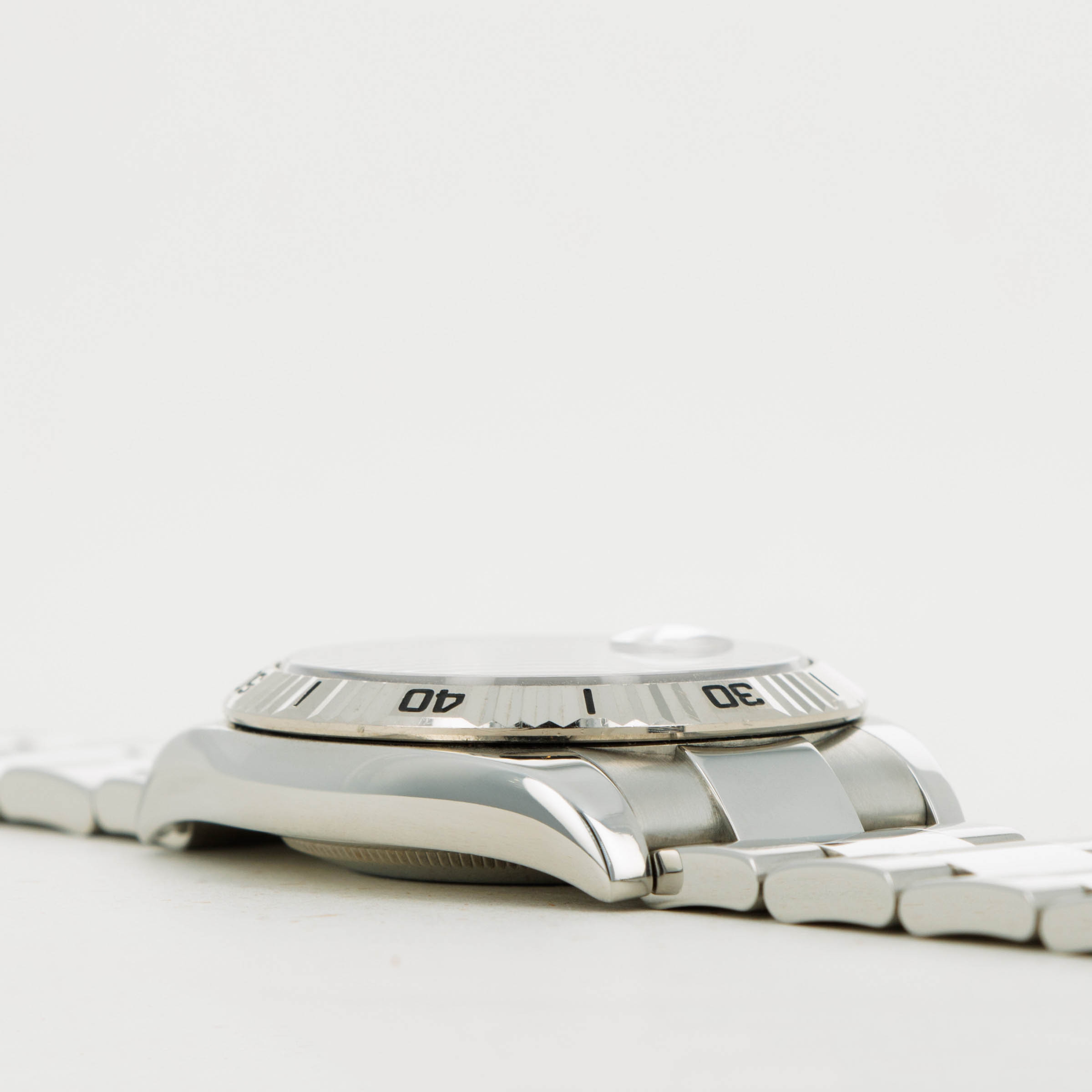 Initially launched in 1953, the Rolex Turn-O-Graph's release sparked an exciting turning point in their horological history. Considered Rolex's first serially produced tool watch, the Turn-O-Graph ref. 6202 was iconic for its eponymous feature; its bidirectional rotatable bezel. Armed with such a useful function, the Turn-O-Graph was designed to measure and record time much like a chronograph. Marketed to international business travellers, the Turn-O-Graph was presented as a tool to perform quick calculations due to its bezel. As such, the Turn-O-Graph was chosen by the United States Air Force’s aerobic squadron, the Thunderbirds, to aid in their pilots' navigational calculations. Recognizing the opportunity, Rolex marketed the Turn-O-Graph as the "Thunderbird" in the North American market. As sales for the Turn-O-Graph began to decline following the Submariner and GMT-Master’s launches due to their similar design and heightened utility, the Turn-O-Graph name only remained in use until the early 1960s before it was discontinued. However, the Turn-O-Graph did live on to an extent as the collection was absorbed into the Datejust family with the Turn-O-Graph’s rotating bezel remaining in the Datejust until 2000.