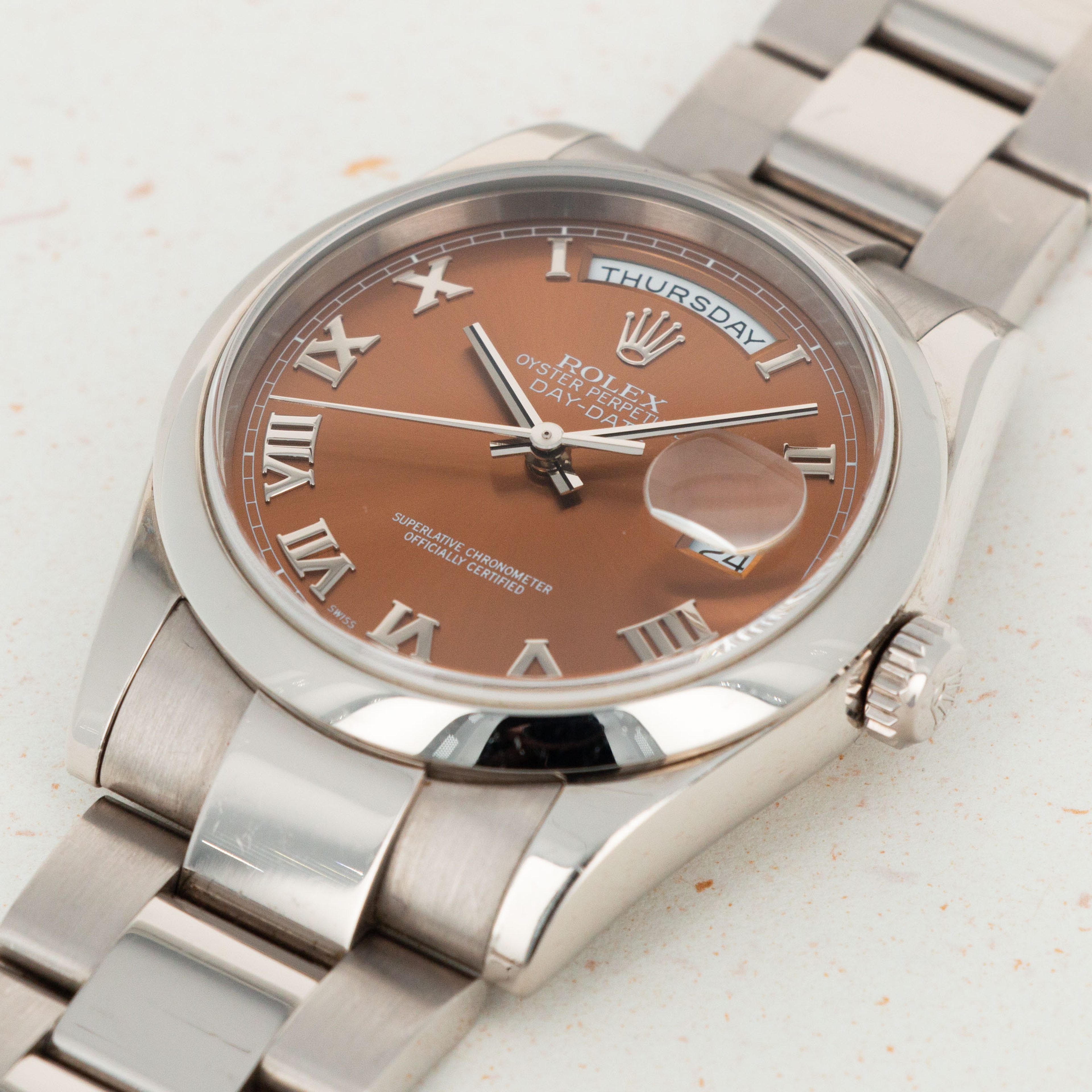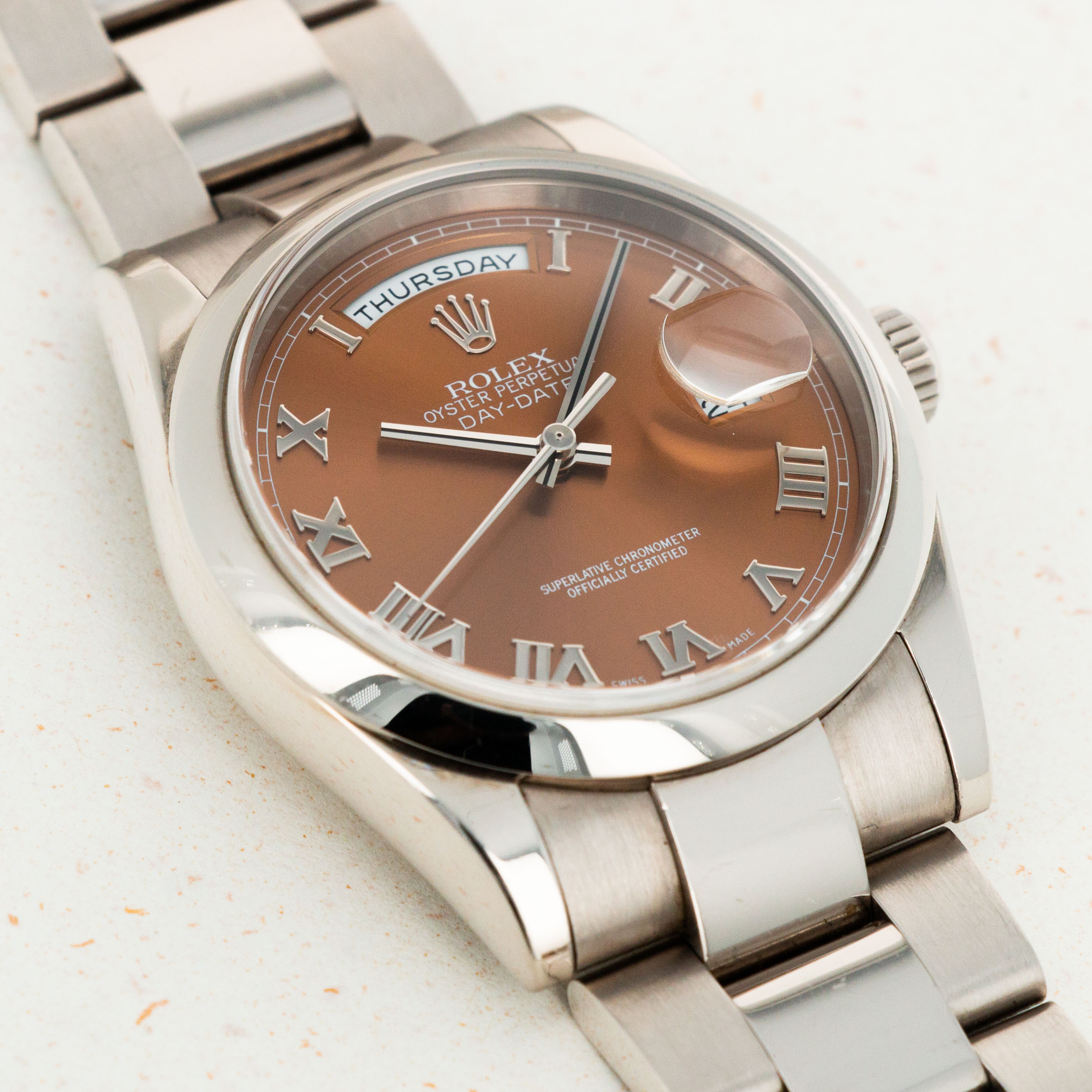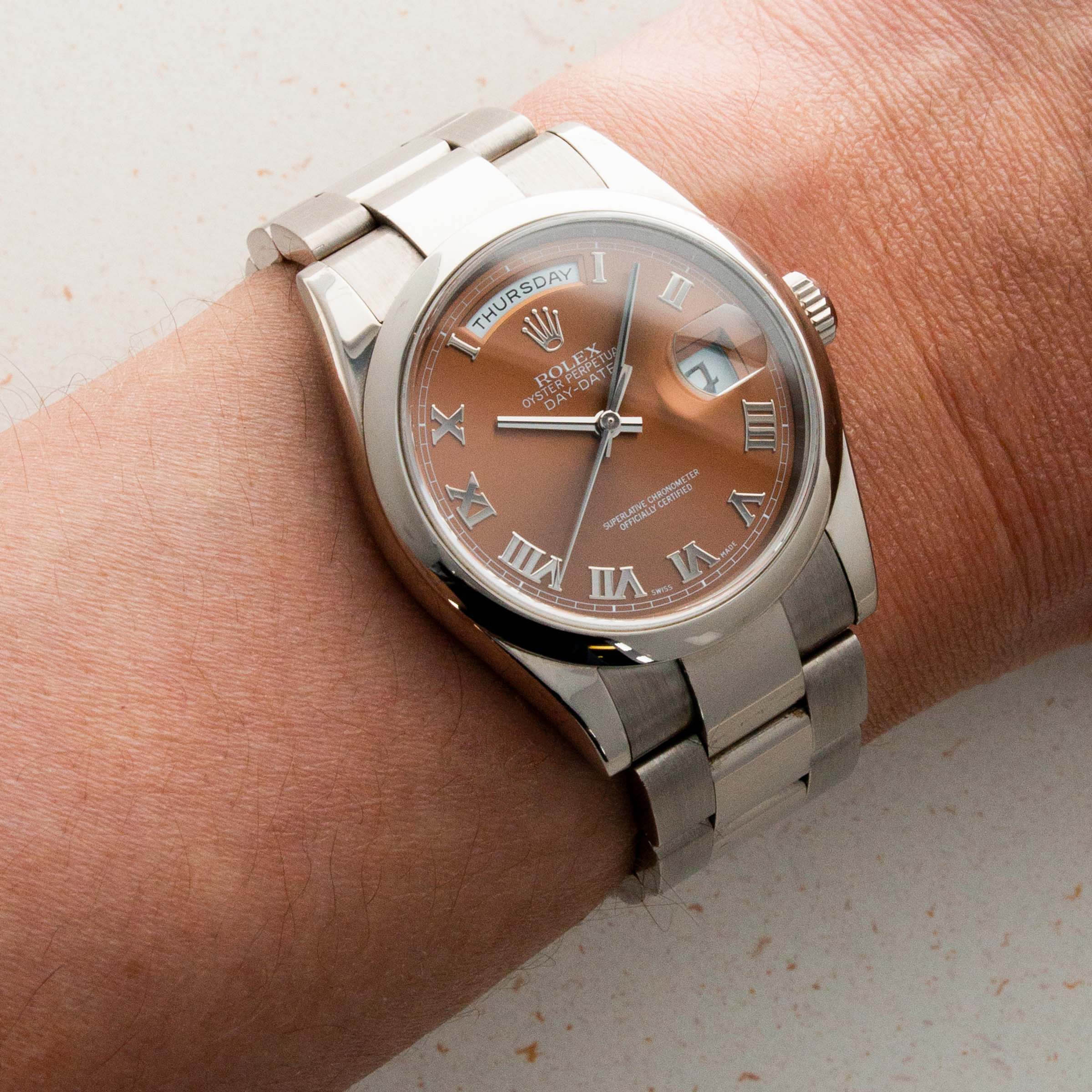 There are countless versions of the Day-Date available today, but this is easily one of my favorite modern ones. The domed bezel and oyster band, along with the dark contrasting brown dial, lends to a rather sporty and unique appearance that is seldom seen.