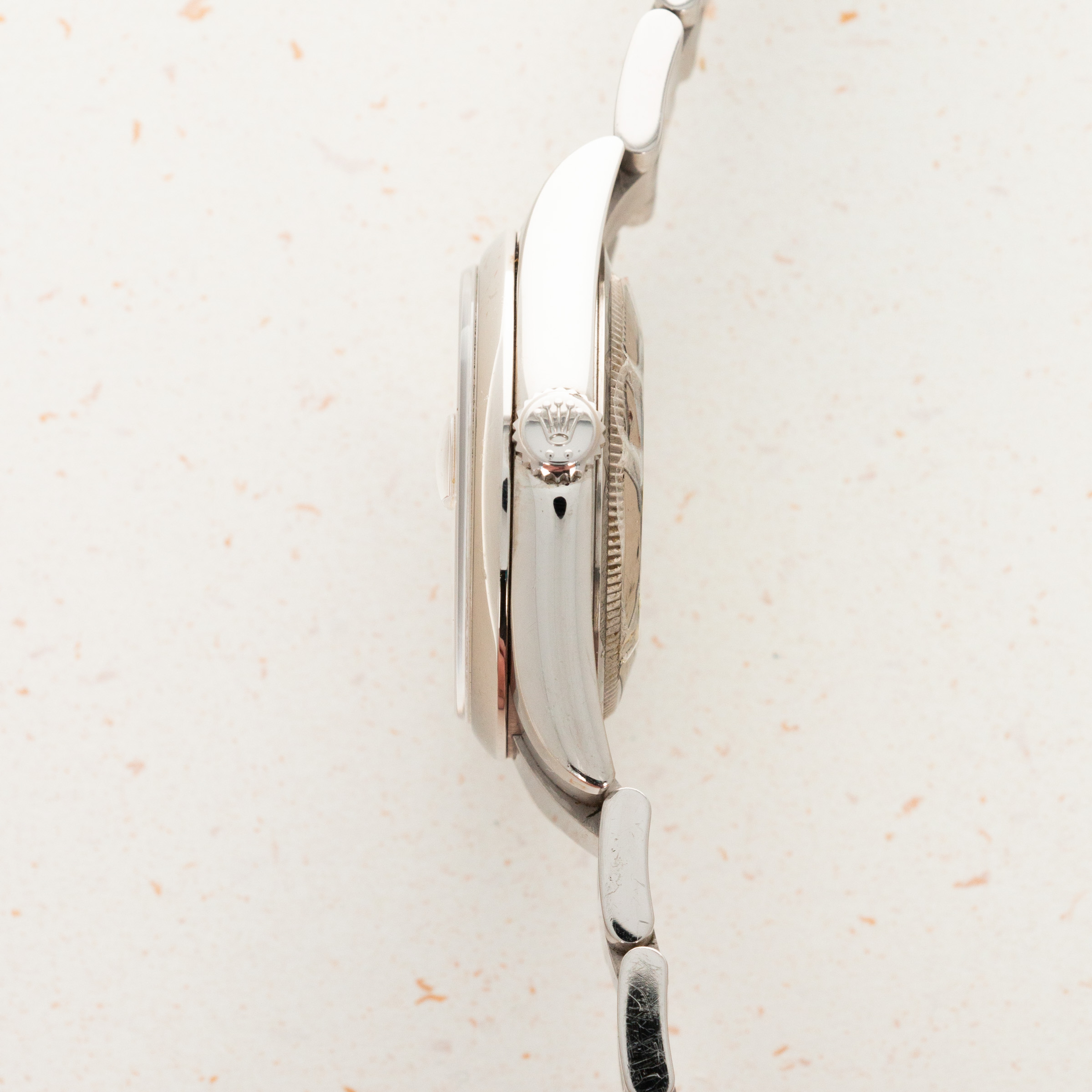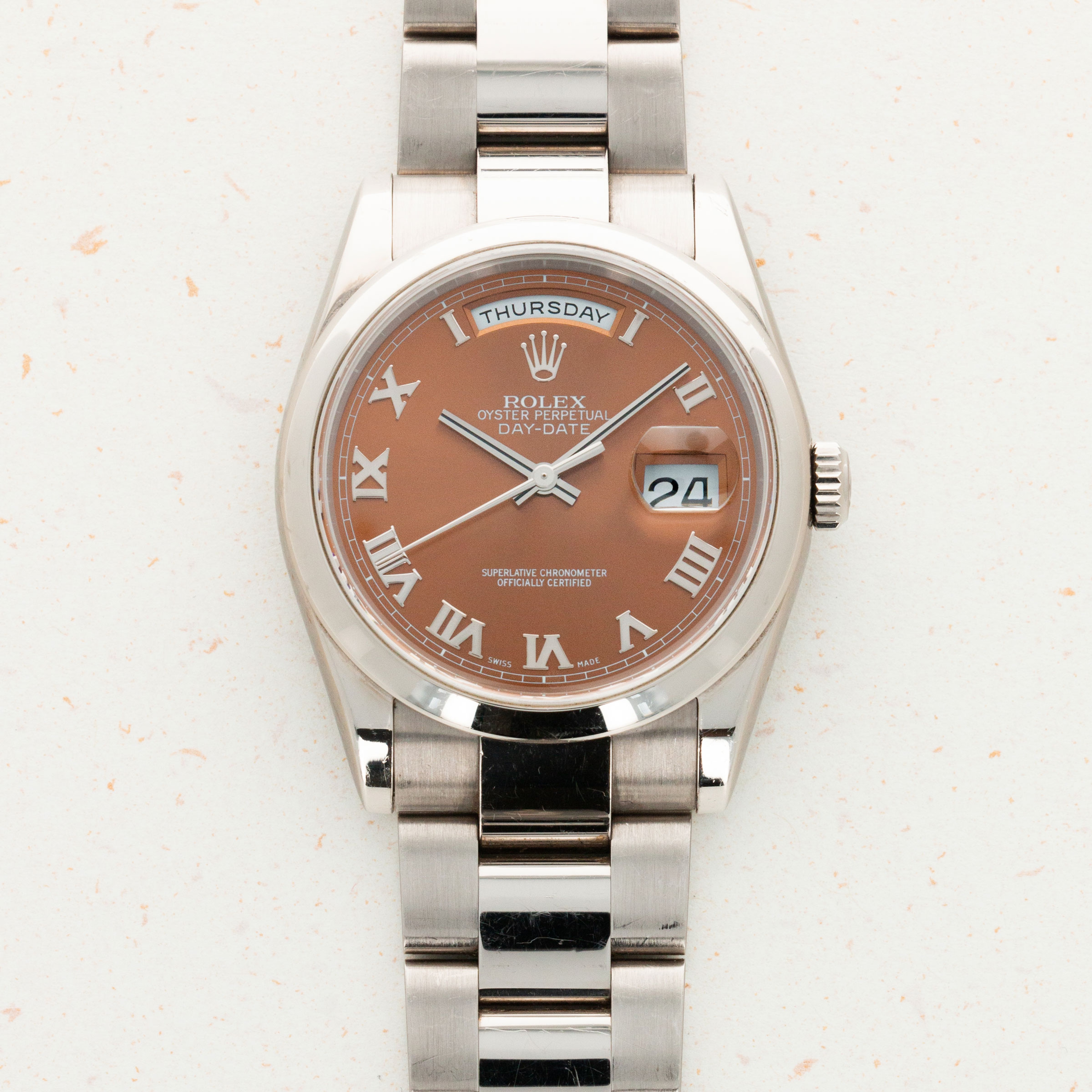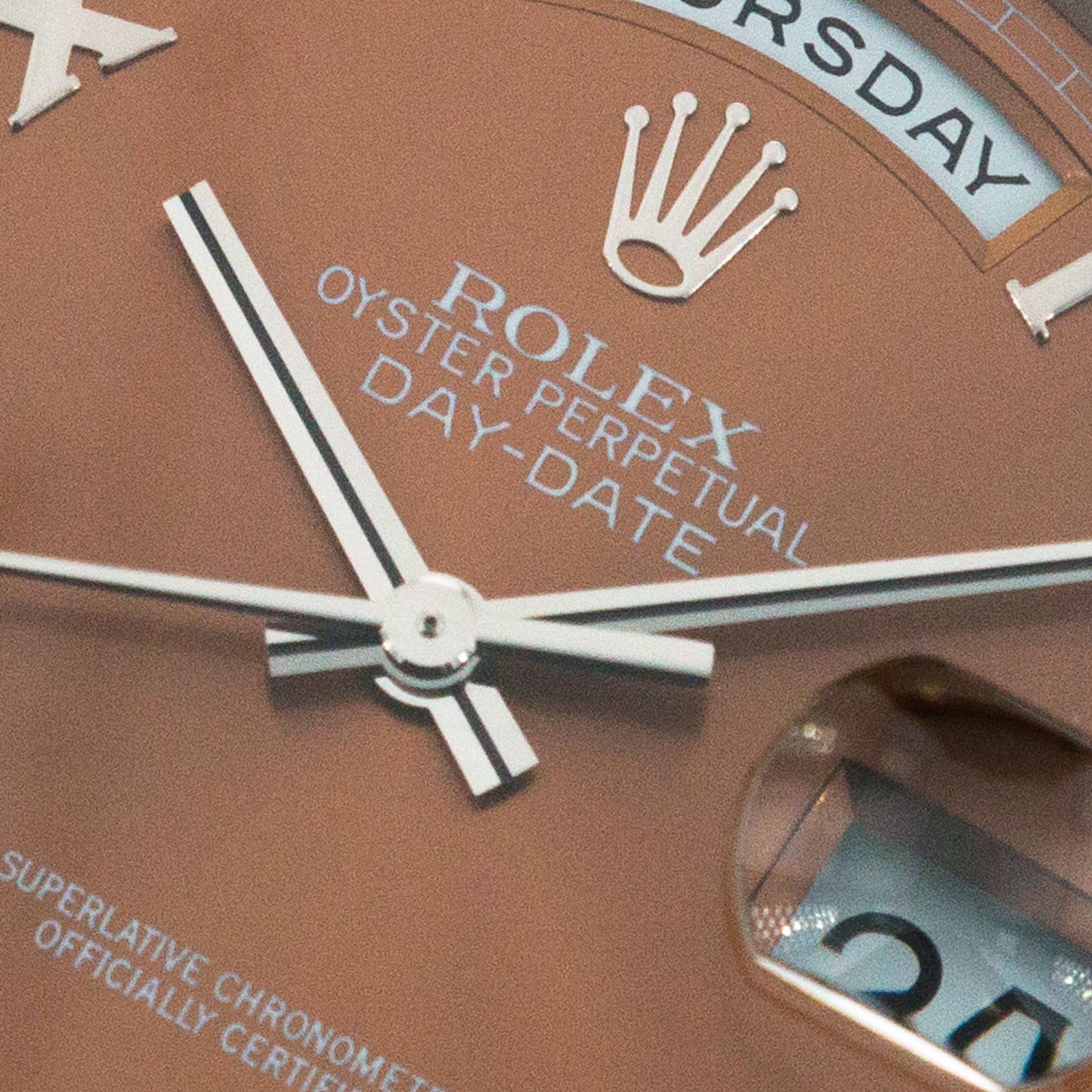A legendary timepiece with an unrivaled history, the Rolex Day-Date has earned its place as "The Ultimate Watch of Prestige" from its decades on the wrists of the world's most influential people. Released in 1956, the Day-Date quickly became synonymous with luxury, prestige, and exclusivity thanks to being the watch of choice for the world's athletes, visionaries, and world leaders alike. Only ever constructed of precious metals, the Day-Date's aesthetic is that of sheer elegance and grace. Aside from the beautiful array of dial options that have been available over the decades, the Day-Date's most iconic piece of design is its three-piece "Presidential" or "President" bracelet. Forming the bedrock of its construction, the Presidential bracelet has become synonymous with Rolex's flagship collection and their desire to create the very best and most iconic watches that the world has ever seen. With its timeless style and inescapable impact on horology, the Day-Date stands as a vivid reminder of just how successful they have been in realizing that very mission.