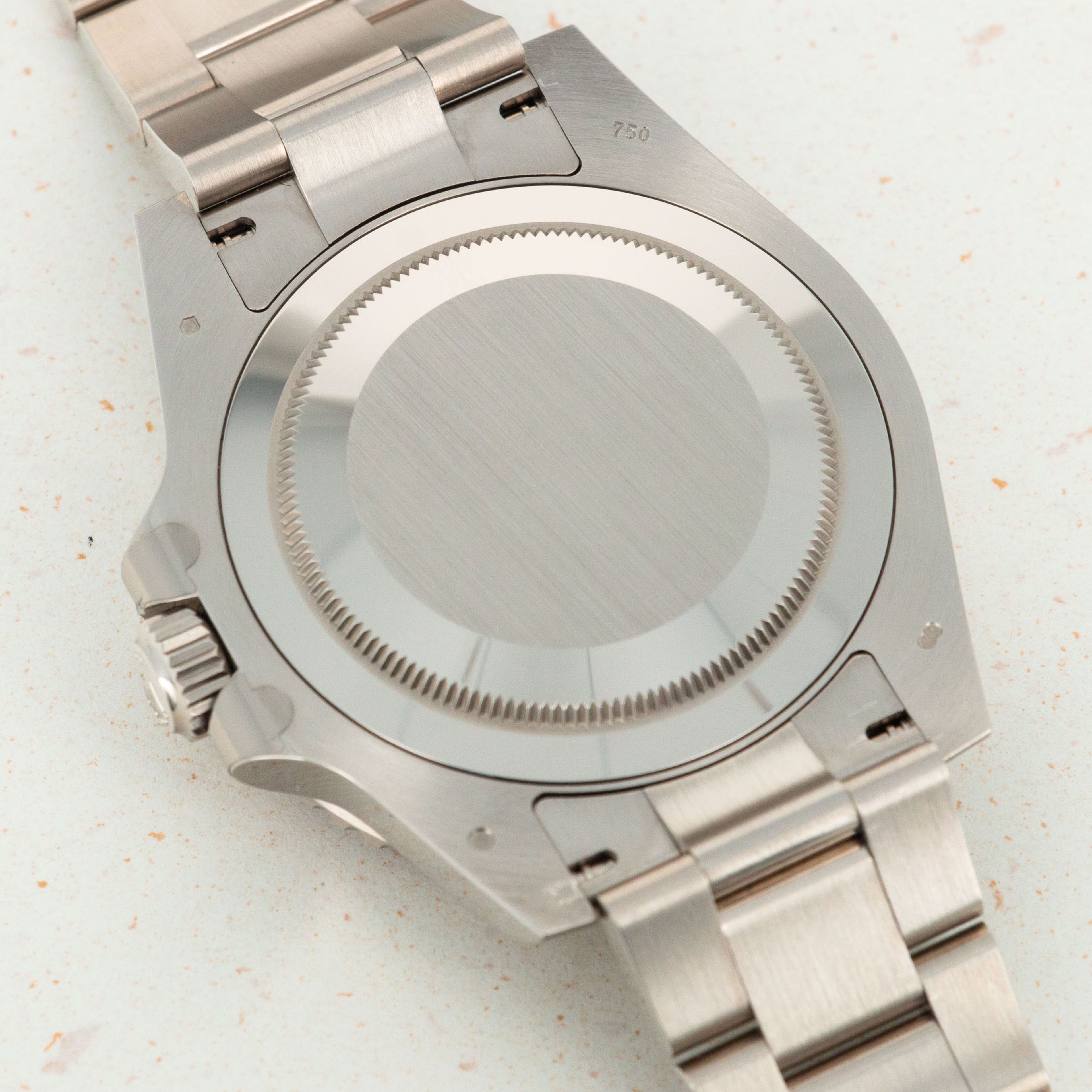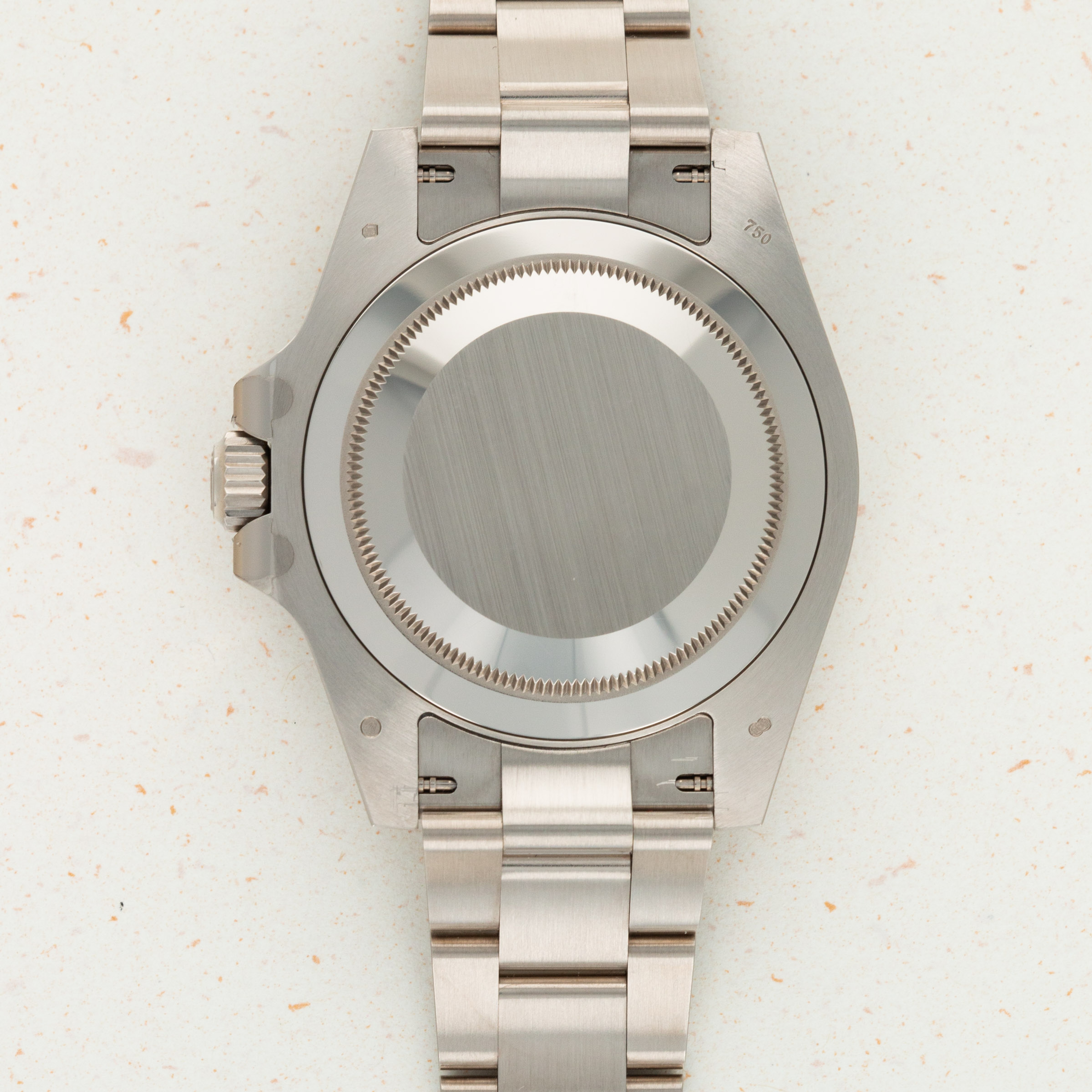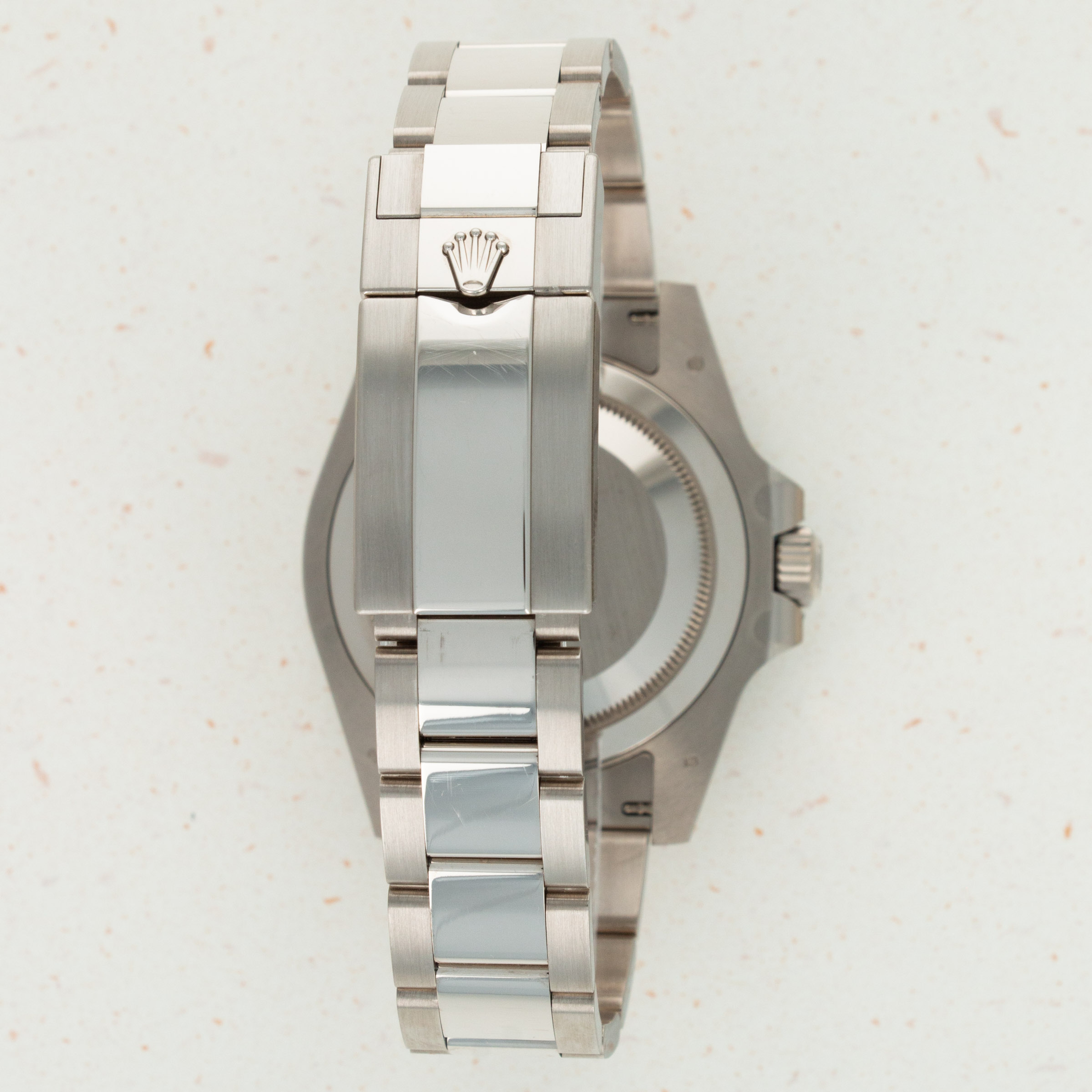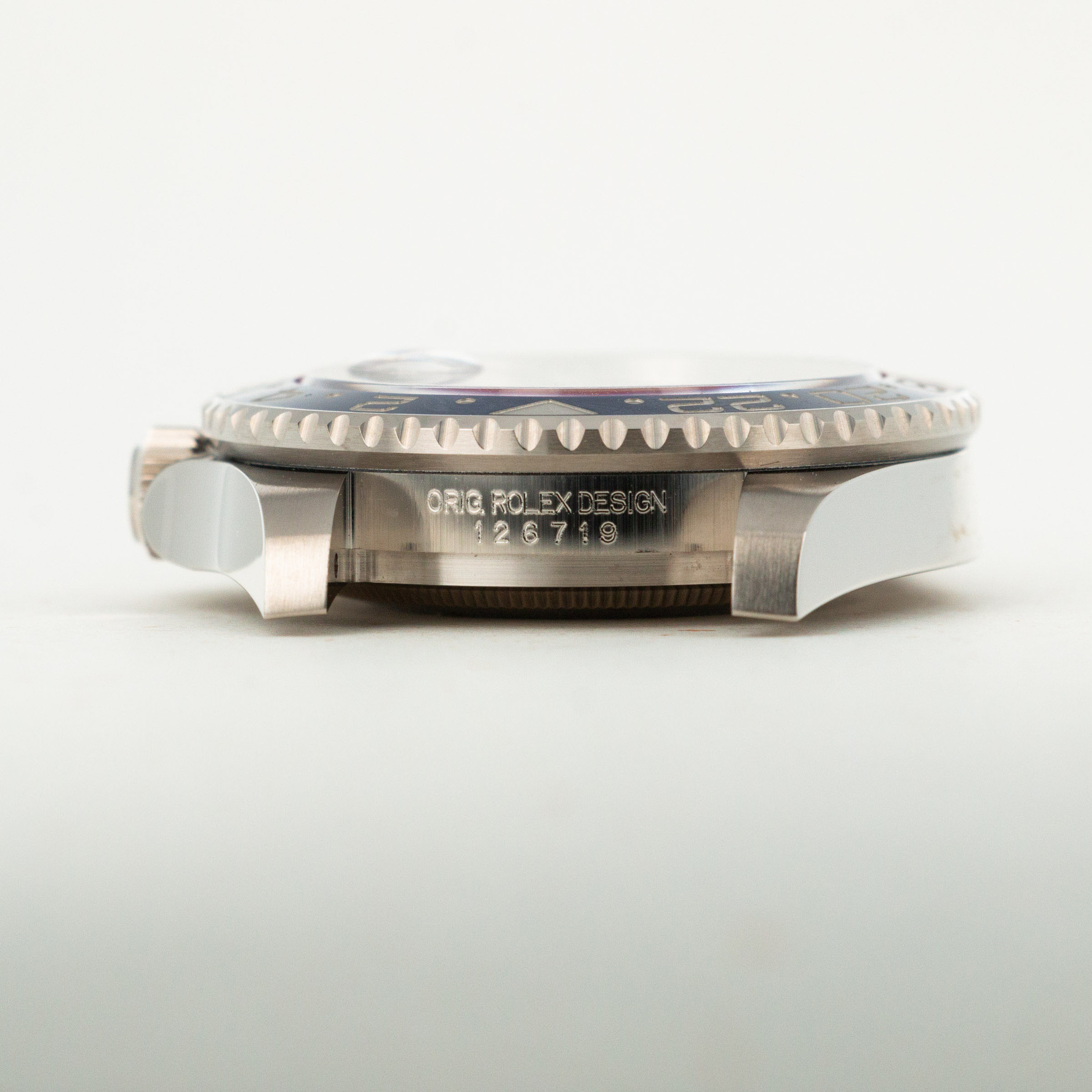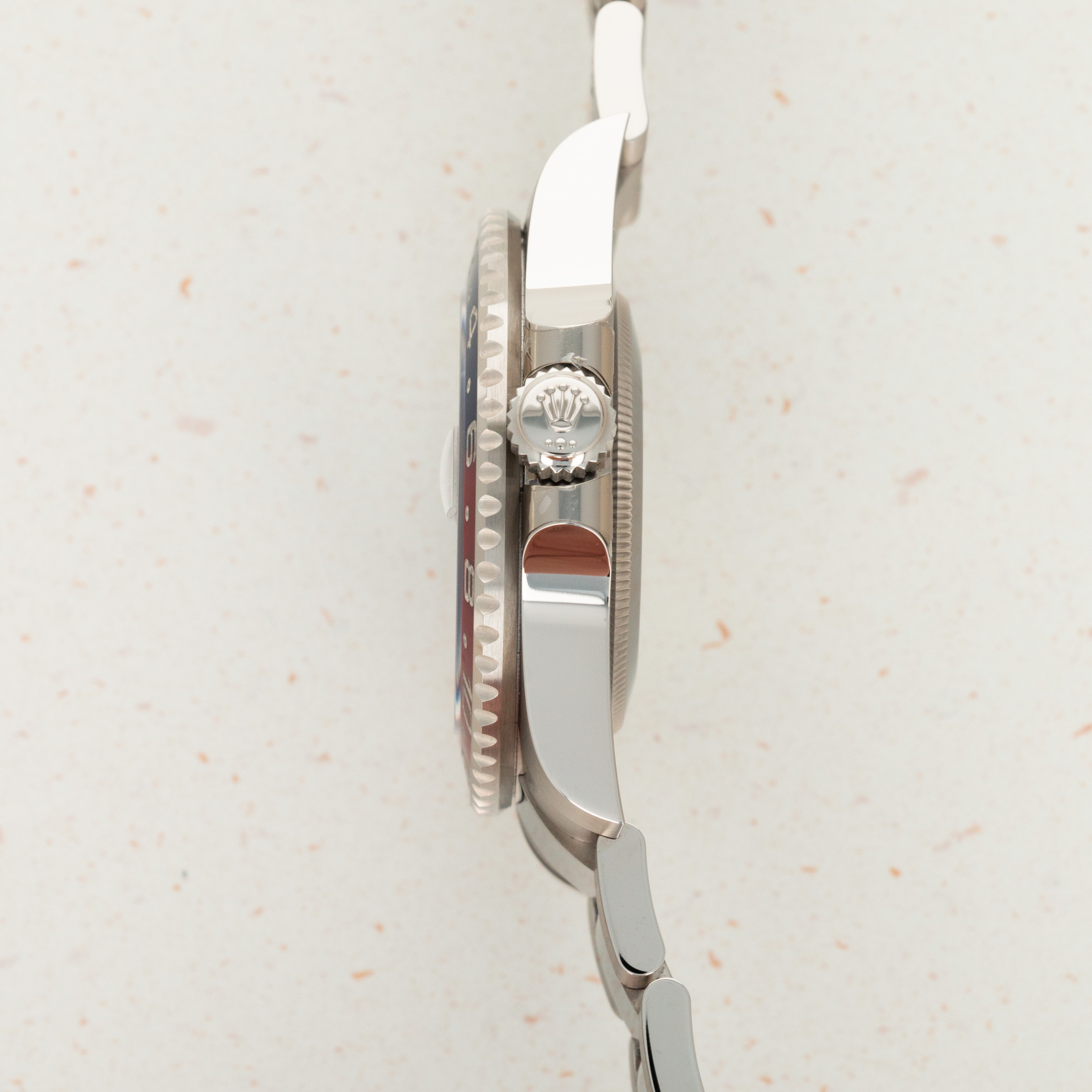 A view of the deep blue dial which is found exclusively on the latest white gold GMT-Master II.