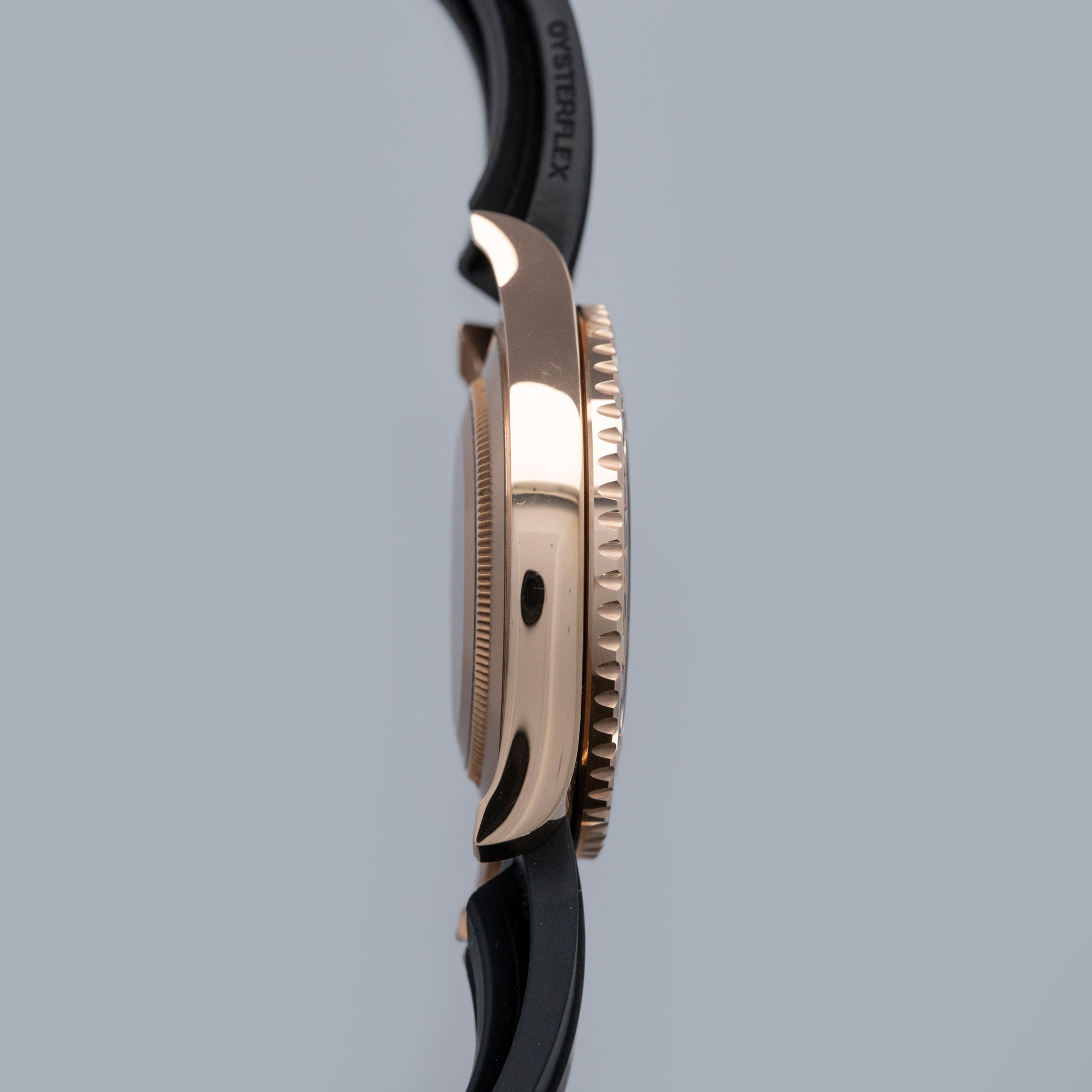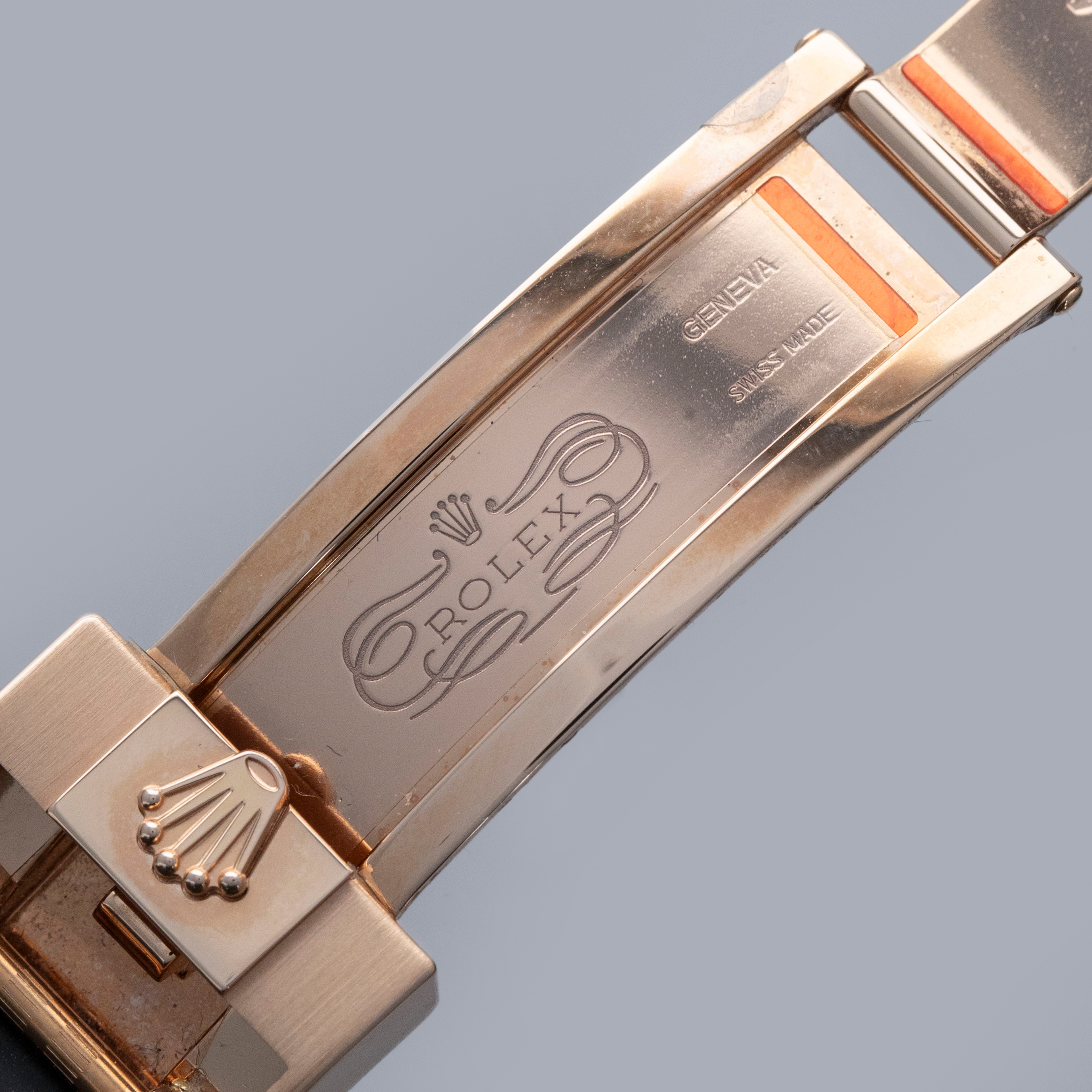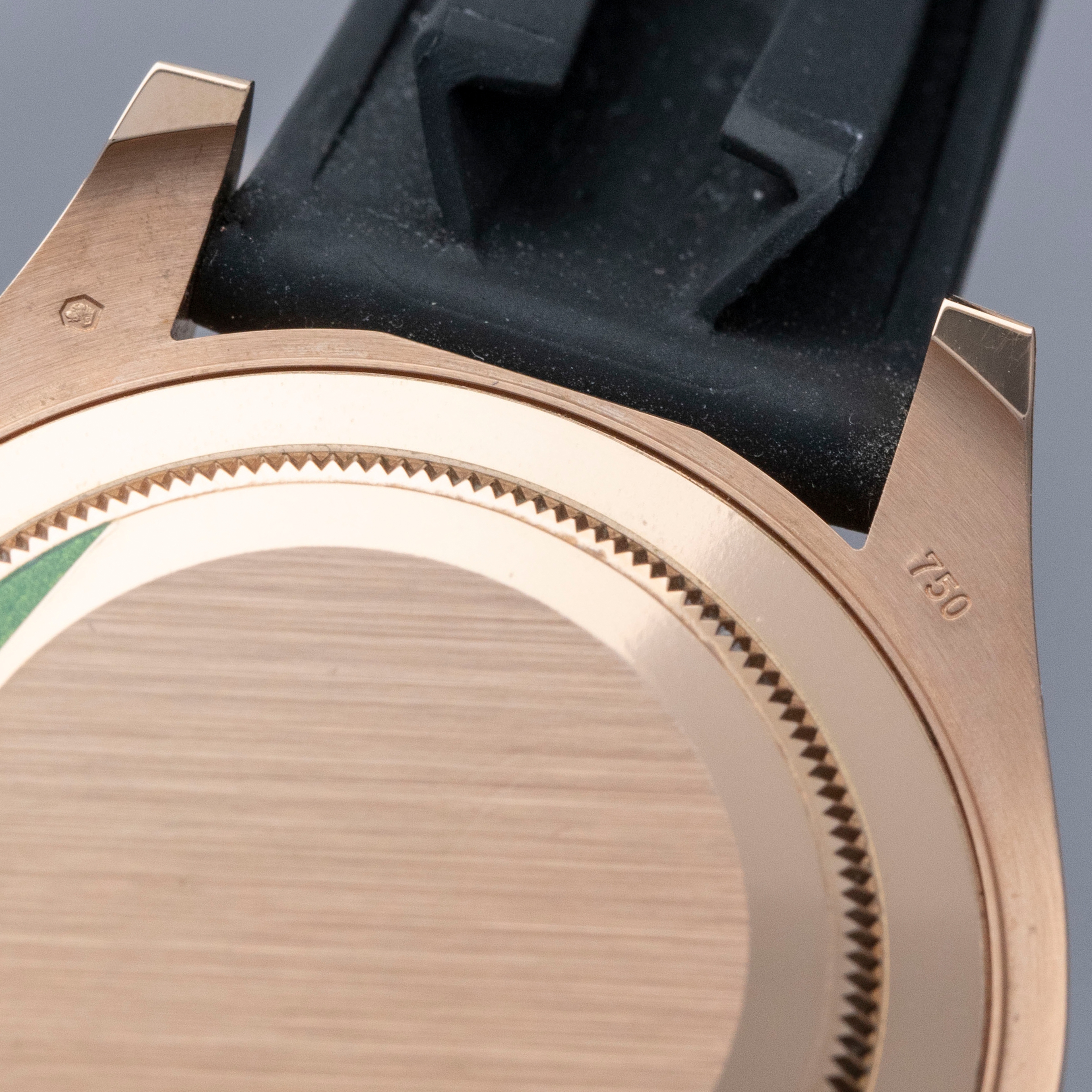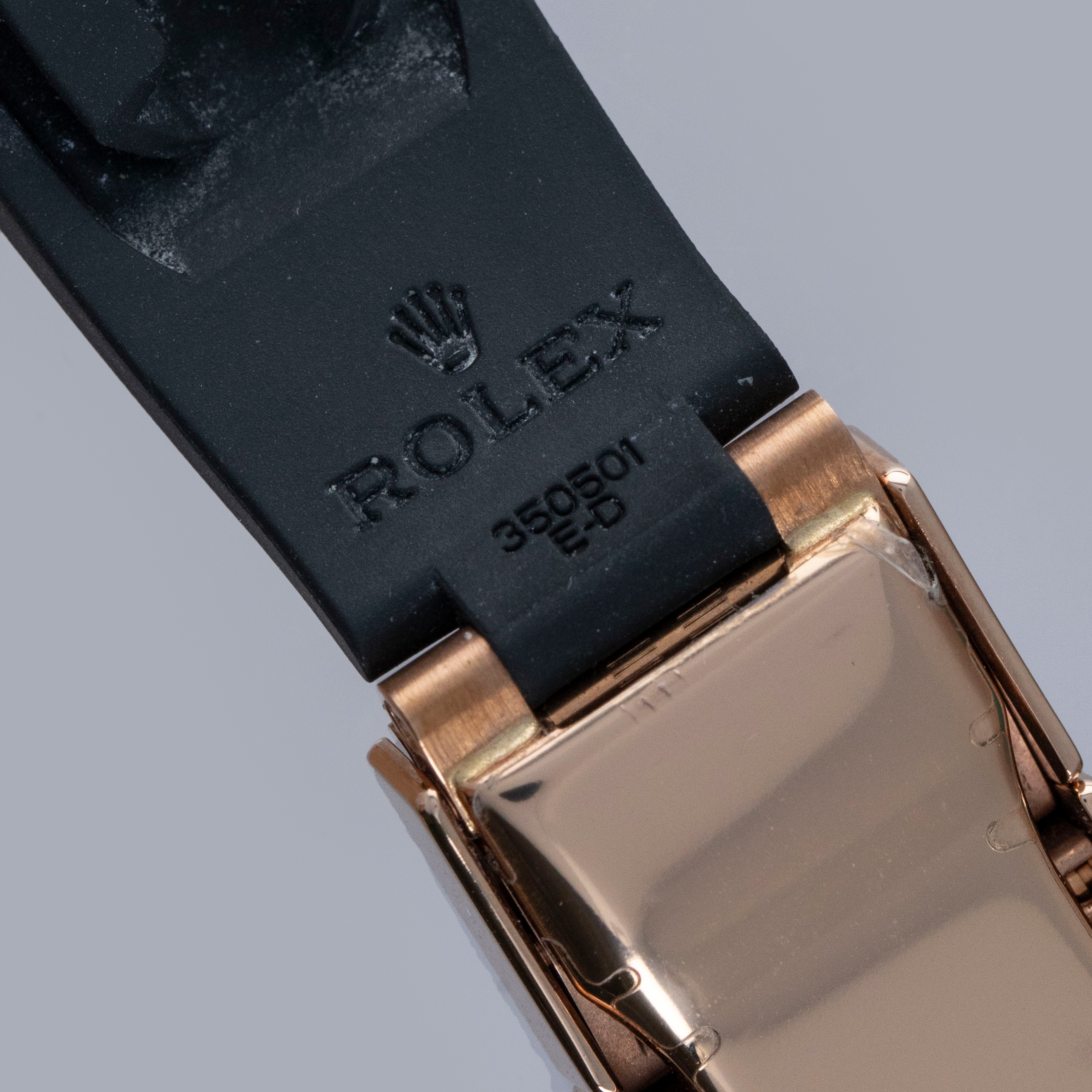The watch is in like-new condition, showing only very light signs of wear. The case back stickers are still intact, as are some of the clasp blade stickers. There is light wear visible on the exterior of the clasp. The Oysterflex bracelet fits an approximately 6 1/2” wrist. The watch comes as a full set with boxes, warranty card, booklet, hangtags, and card holder.
