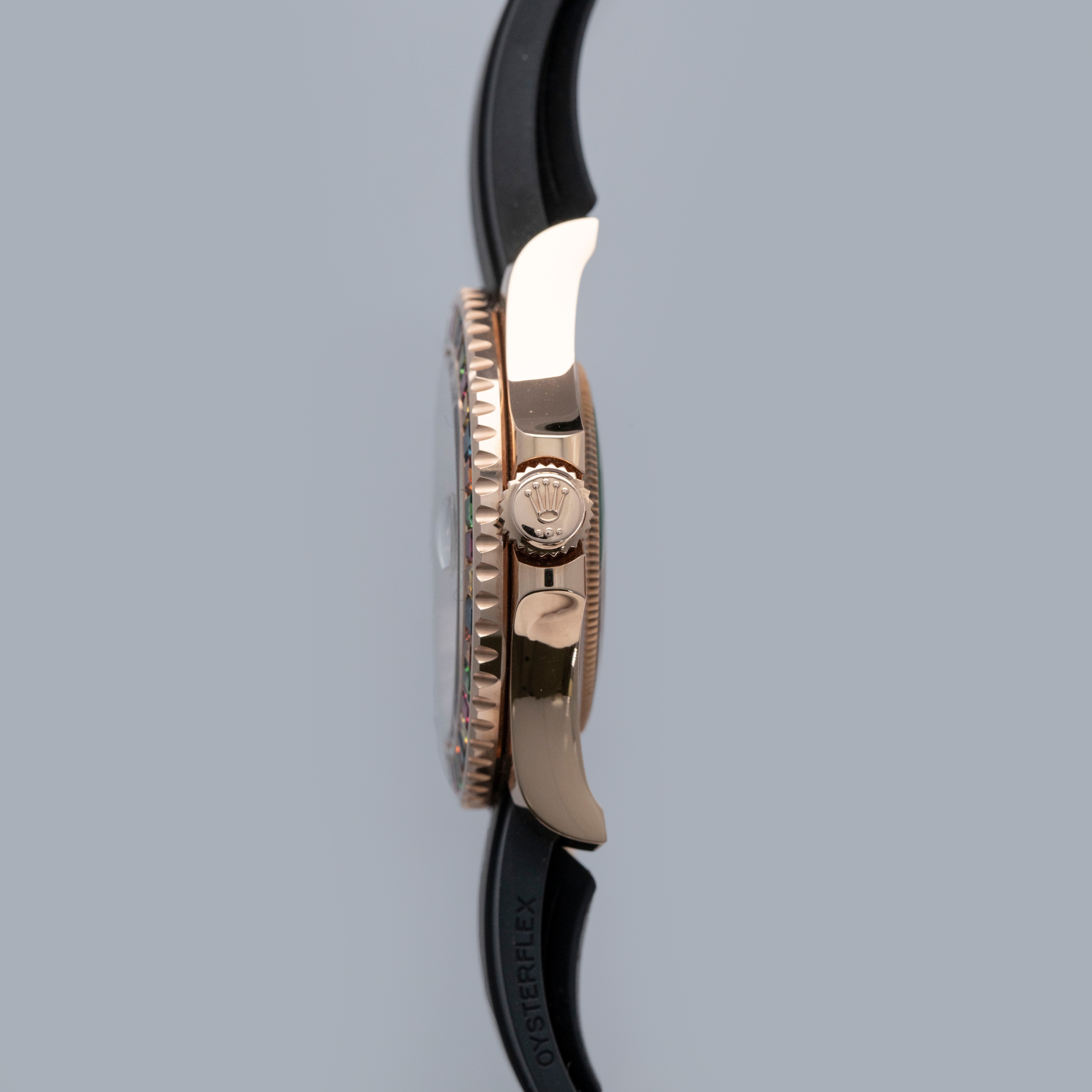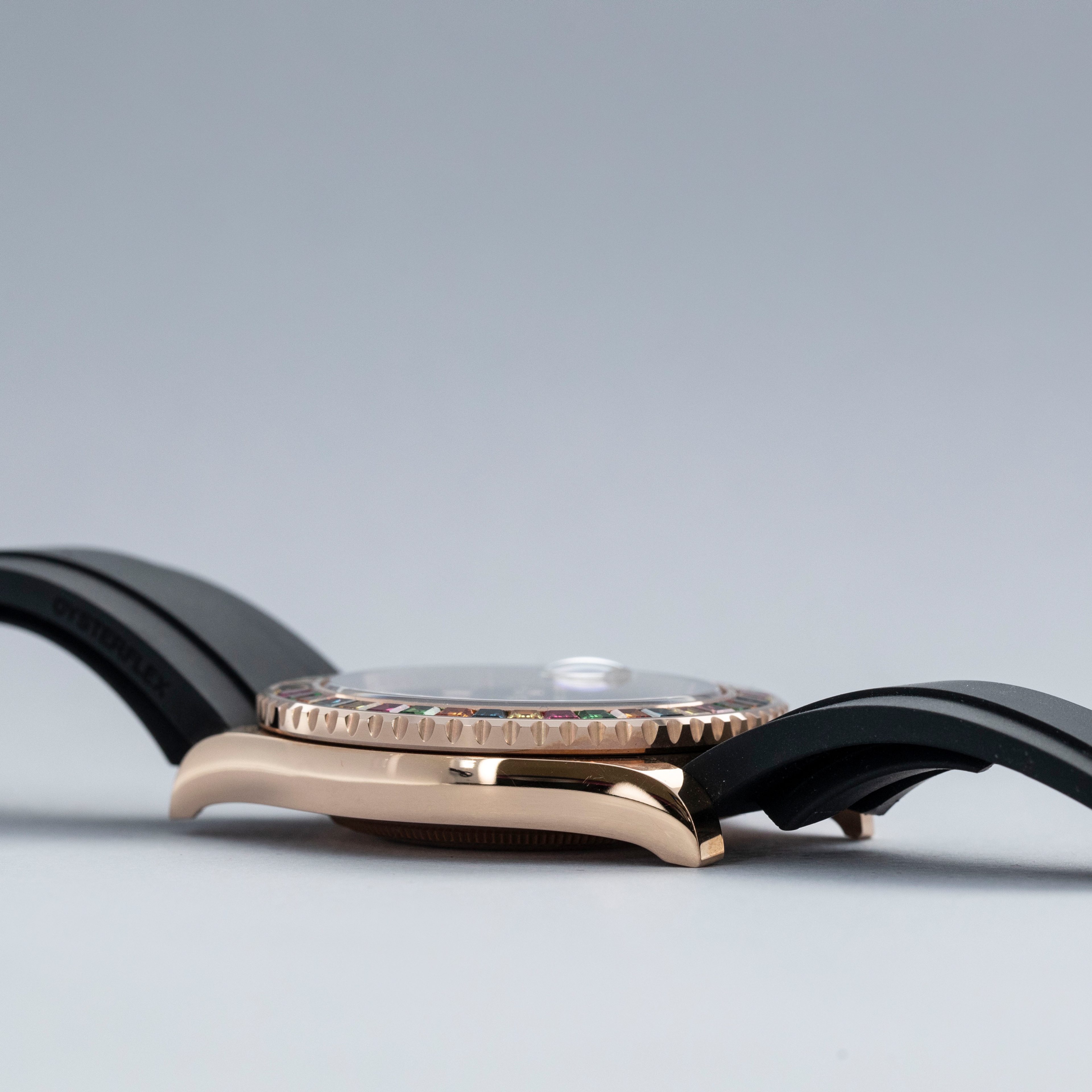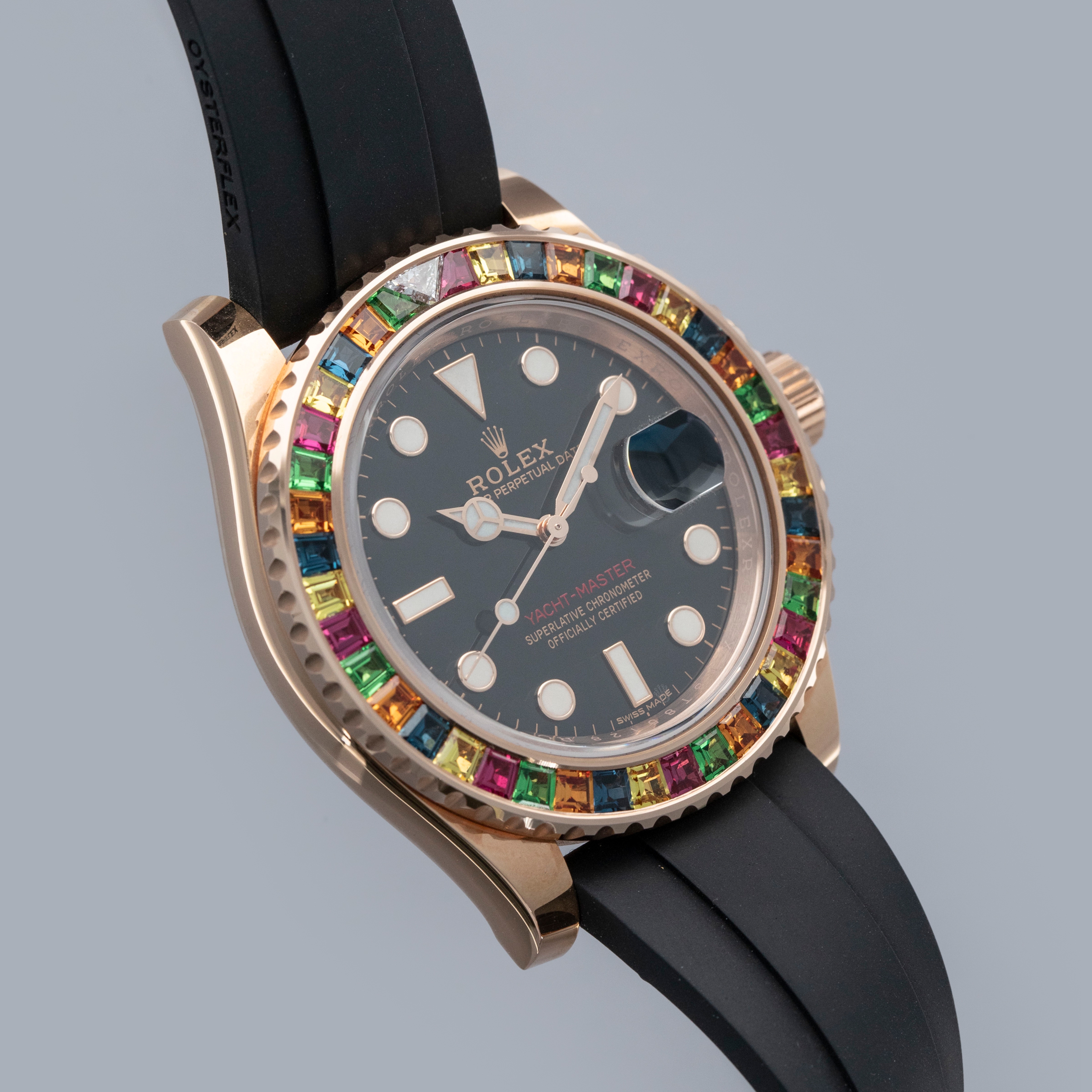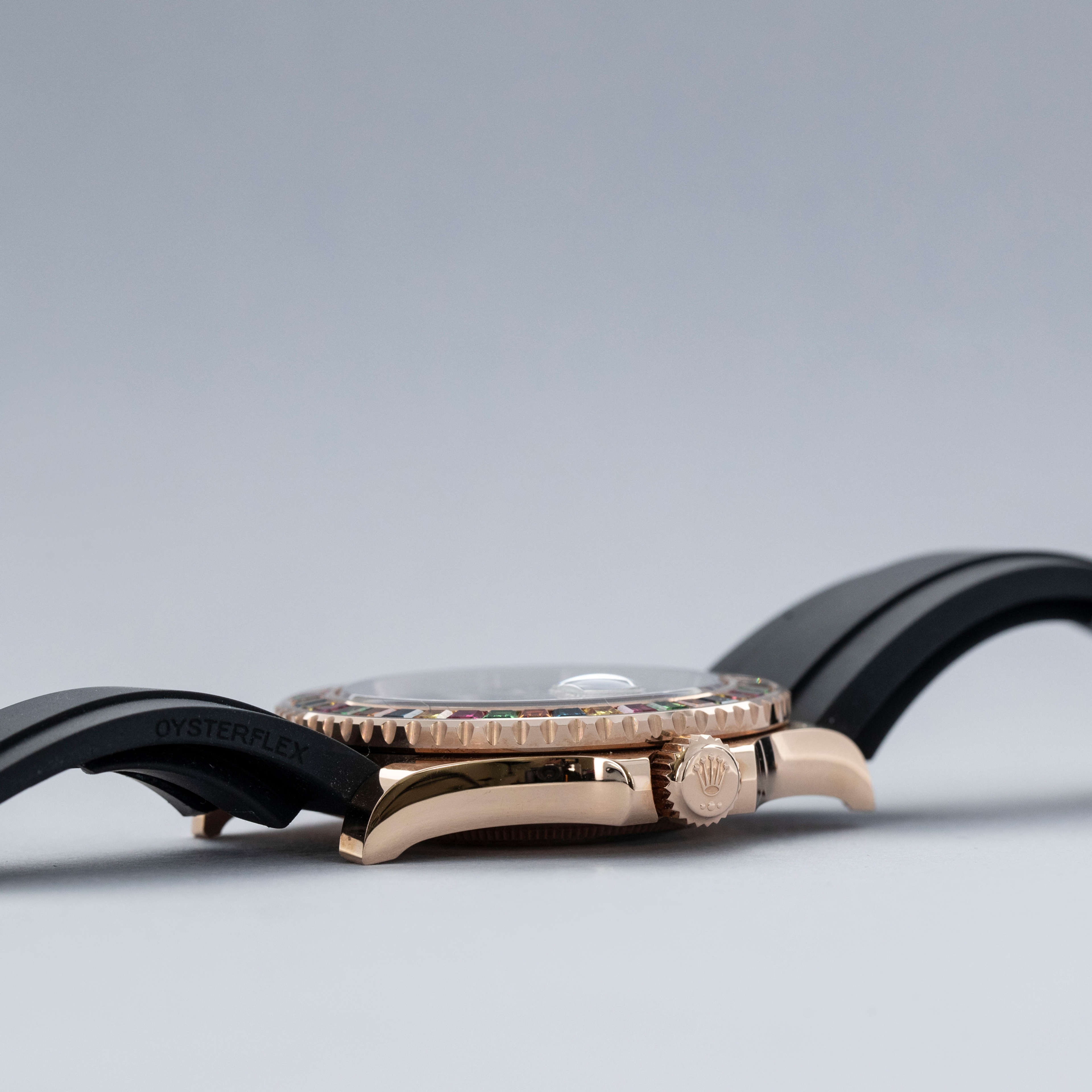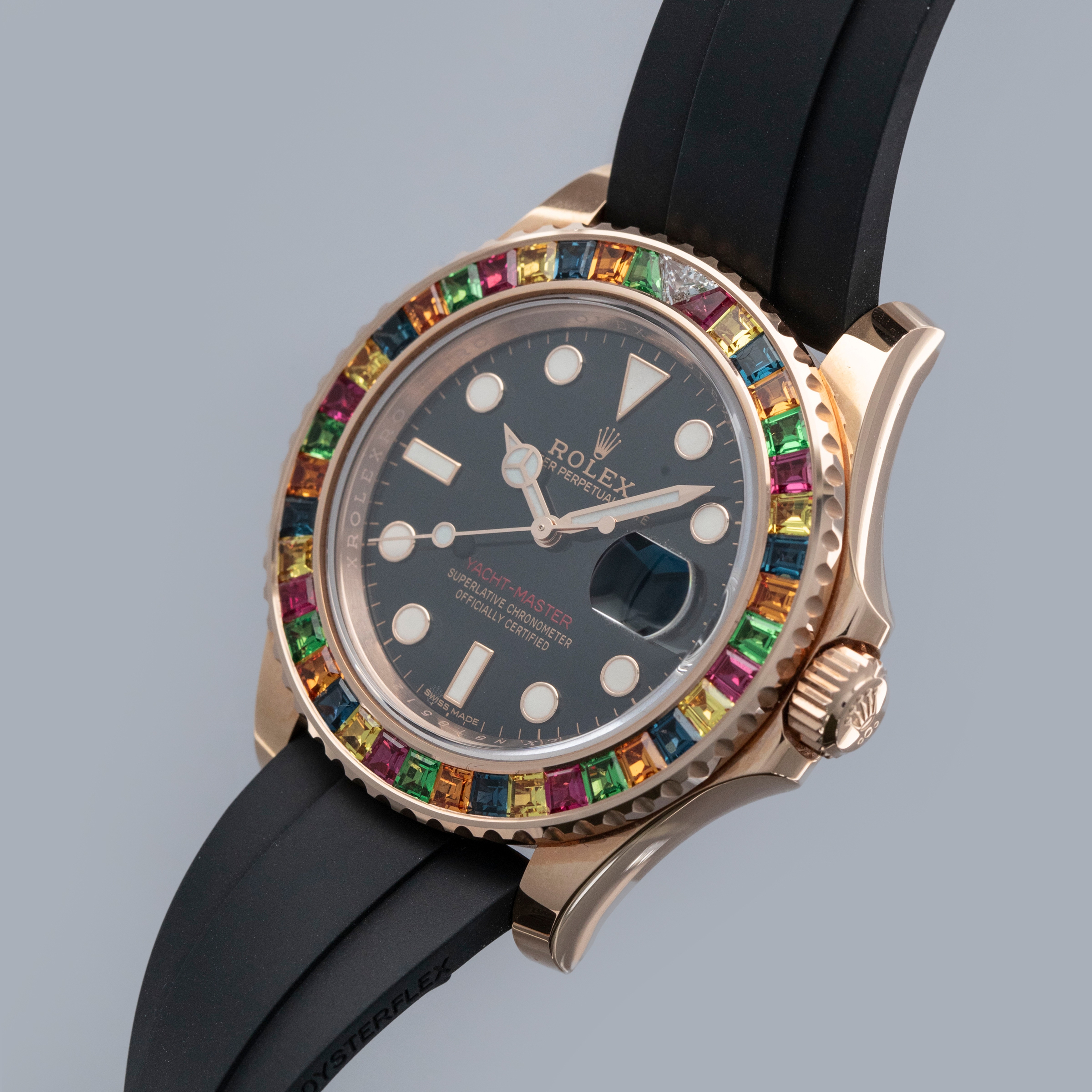 Far more exclusive than an ordinary Yacht-Master, the ref. 116659SATS swaps the ceramic bezel with a rainbow-set sapphire bezel that gives the model its "Skittles" nickname.