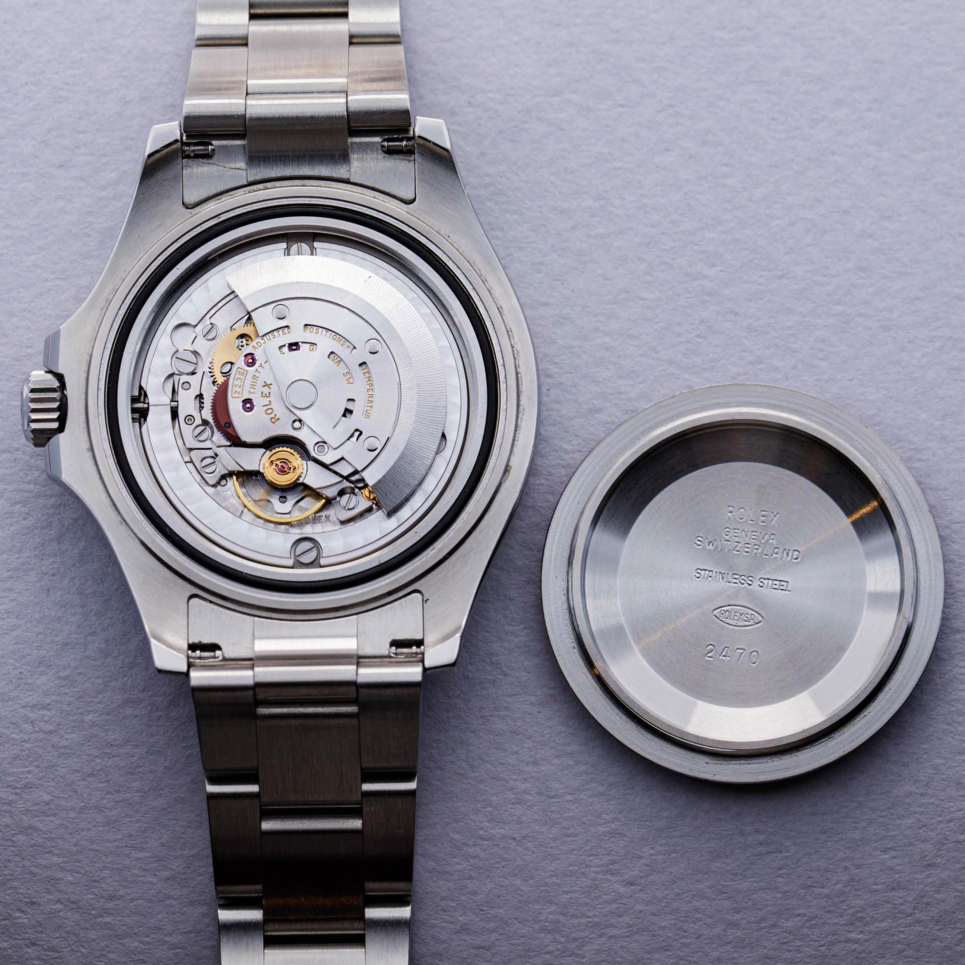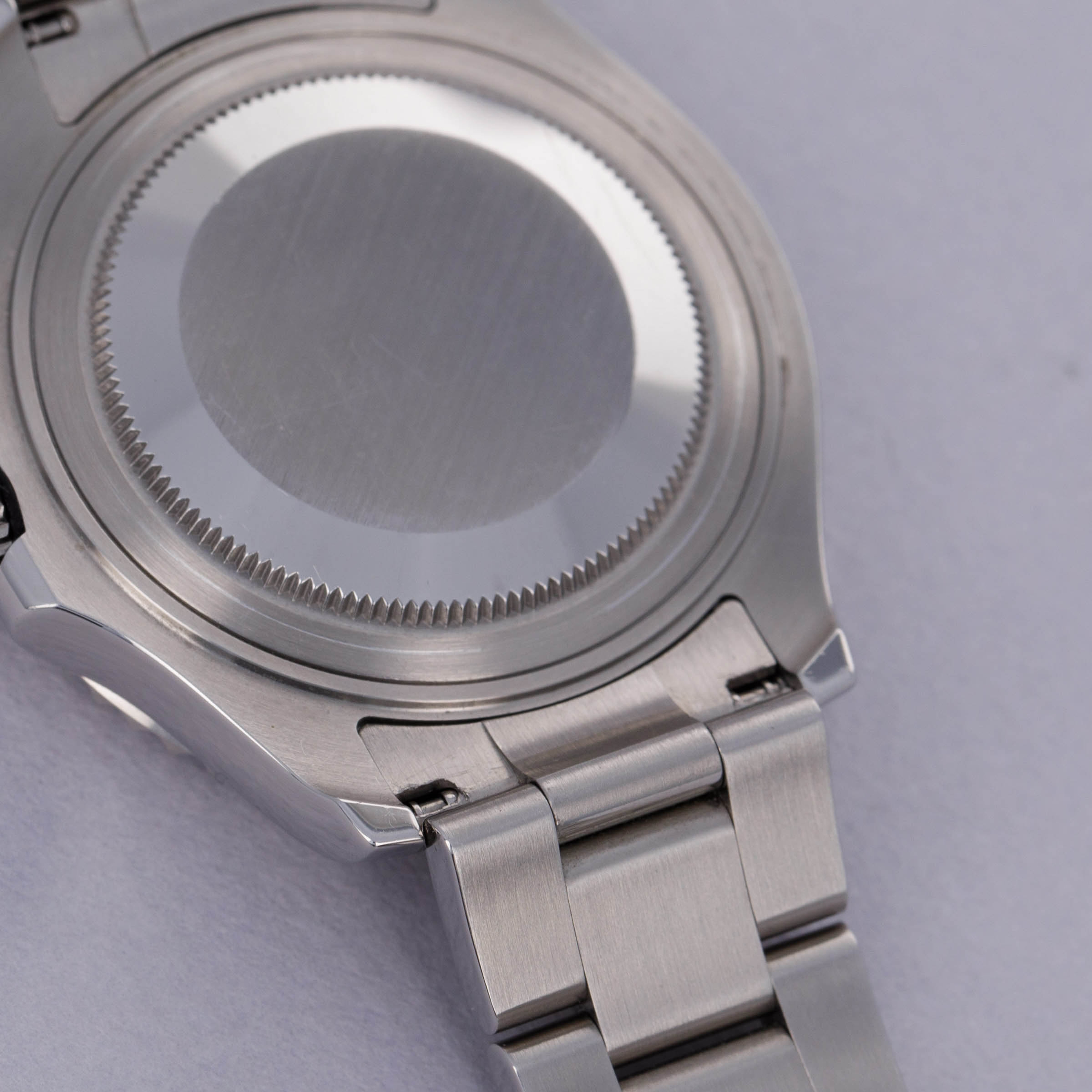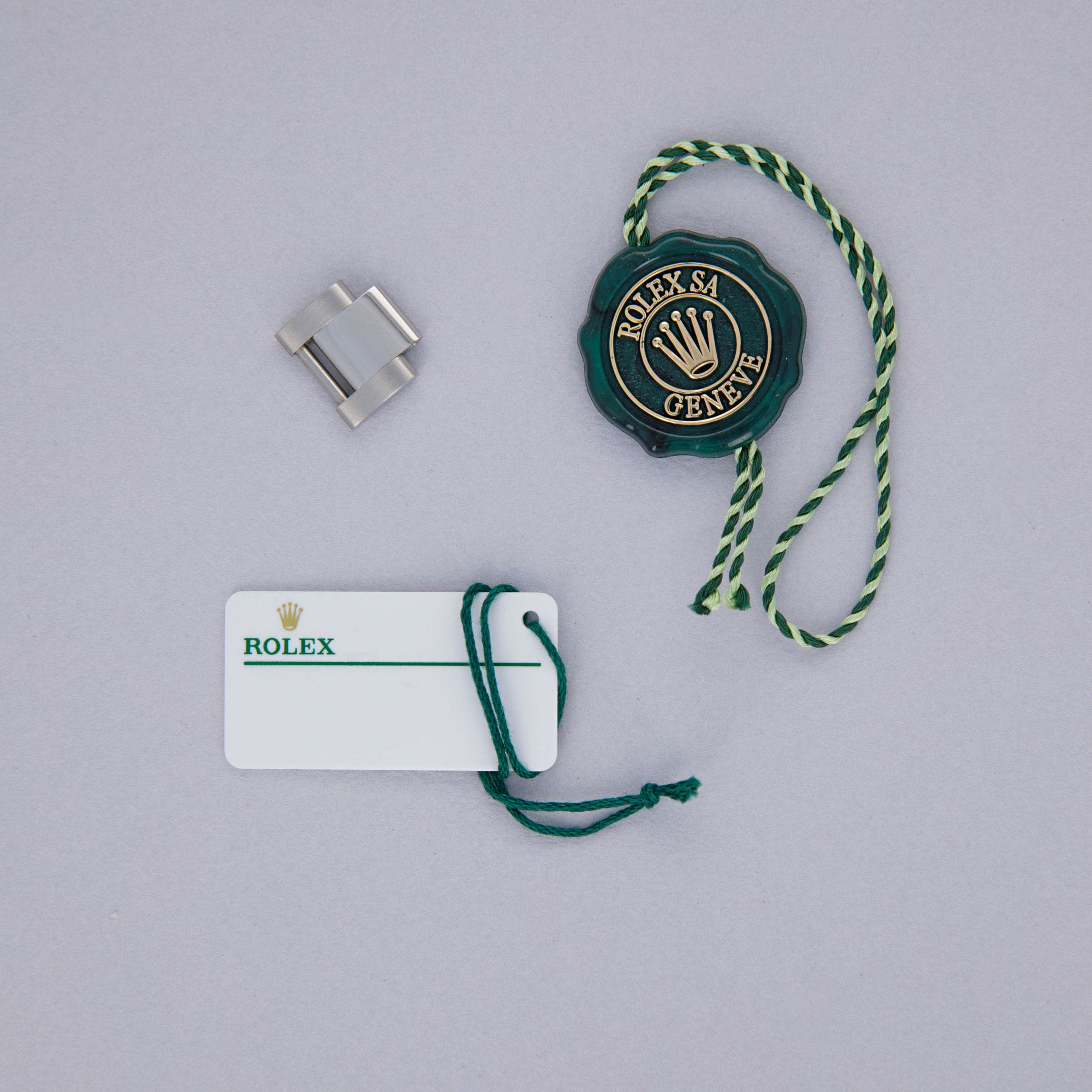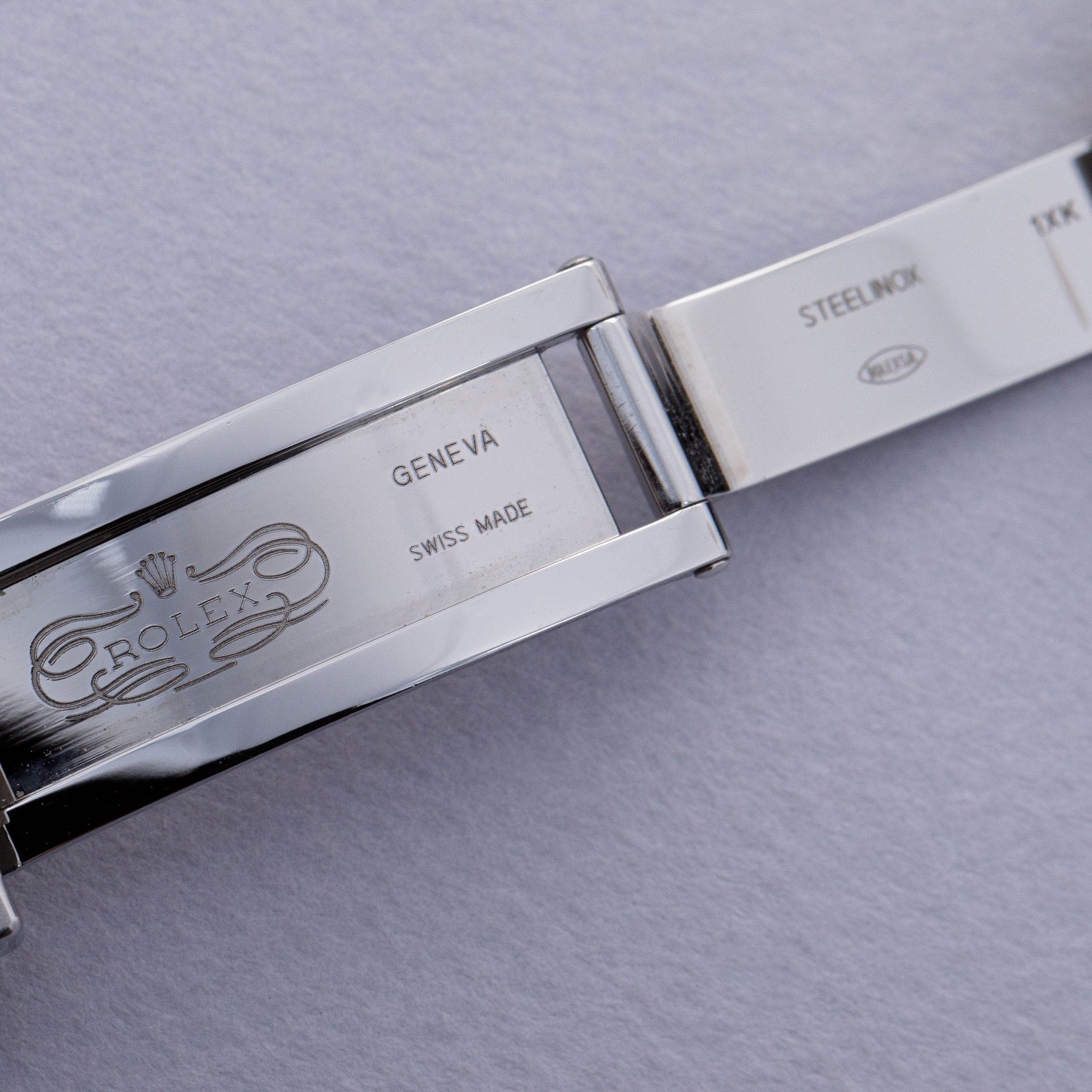 Watch is in excellent overall condition. There is some light cuff wear along polished edges, as well as some minor scratches visible at the lug tips. (Note the lower right lug) Watch comes on an oyster bracelet with 9 links currently fitted. It is sized for an approx 6 1/4" wrist. There is one additional link included with the auction.