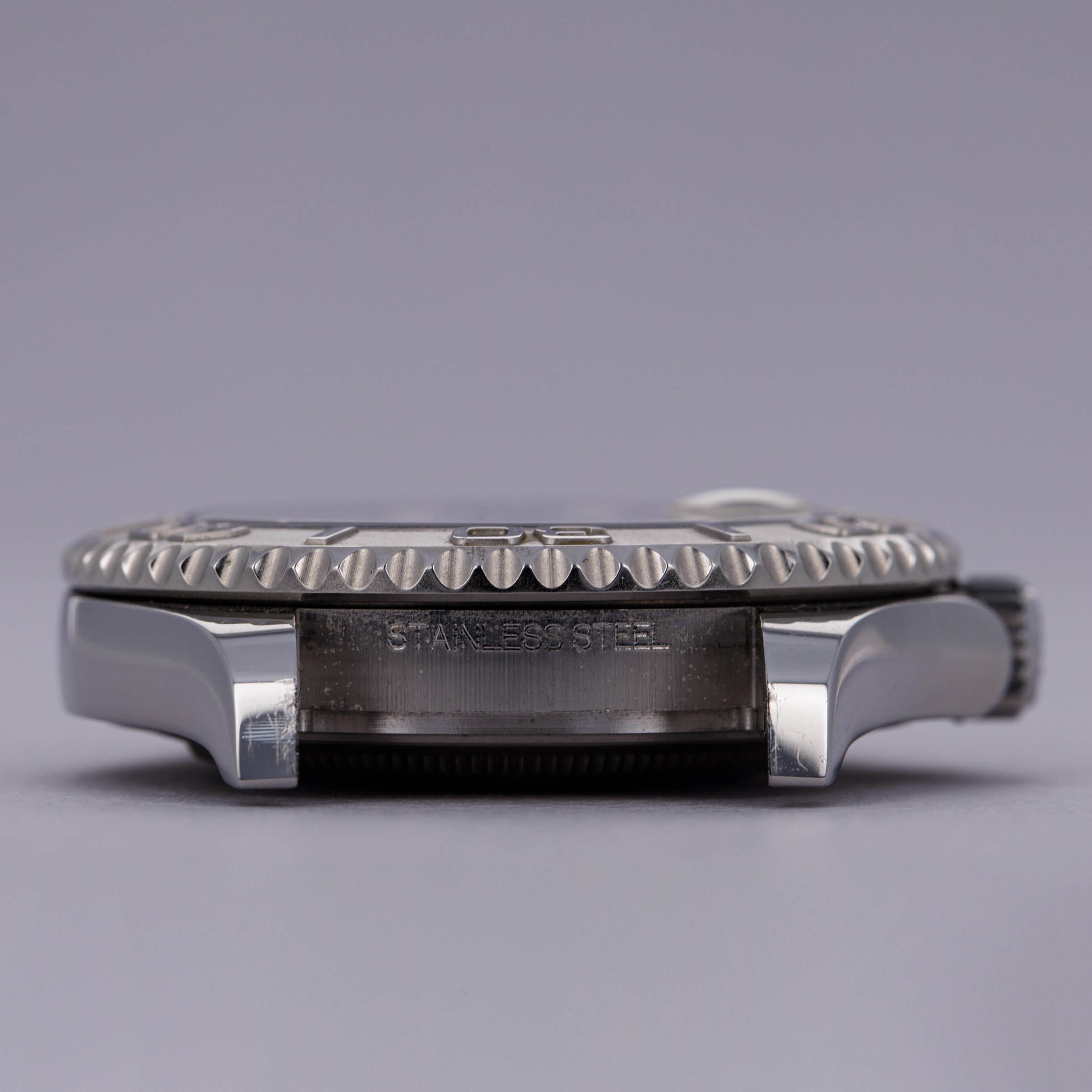 Introduced in 1992, the Rolex Yacht-Master quickly became synonymous with nautical luxury and sophistication. The 37mm variant, appealing to a diverse audience thanks to its compact size, embodies Rolex's mastery in combining elegance with functionality. The Yacht-Master, tailored for the yachting community, draws on Rolex's long-standing association with sailing and marine adventure. Through various iterations, the Yacht-Master has maintained its core identity as a watch that meets the demands of the sea while exuding elegance. It stands as a symbol of Rolex's engagement with the yachting world, sponsoring prestigious sailing events and reinforcing the bond between the brand and maritime heritage. Offered here we have a Yacht-Master 37mm ref. 268622 in stainless steel with the collection’s signature platinum bezel and a stunning rhodium dial that perfectly fits within the collection’s luxurious aesthetic. With beautiful blue accents topping it off, the Yacht-Master is a stunning timepiece, and with its smaller size, it can appeal to a wide variety of wrist sizes.
