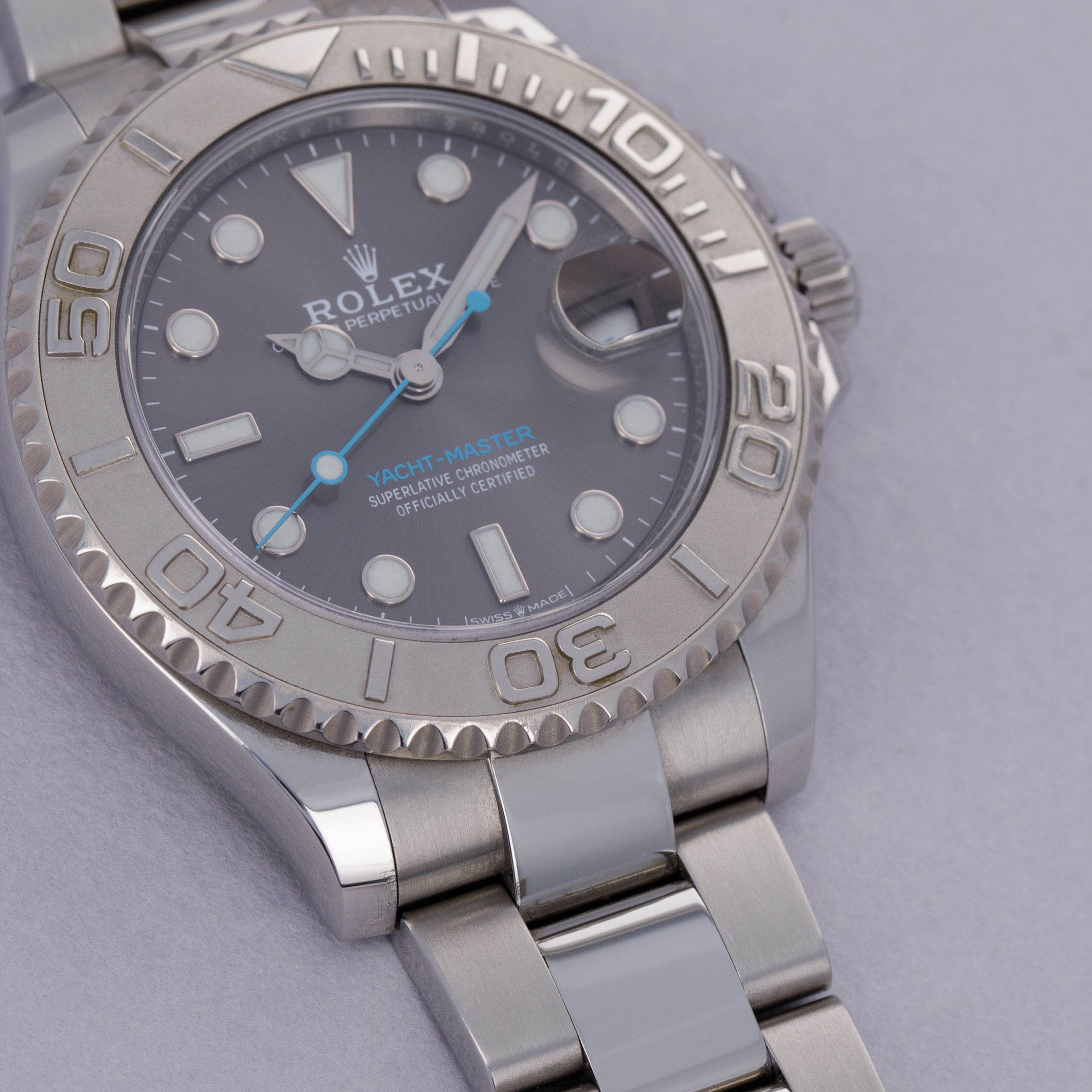 One of the smallest Rolex sports models, the 37mm Yacht-Master offers the collection's esteemed aesthetics and robust design without having to compromise on any facet of the Yacht-Master's offering.