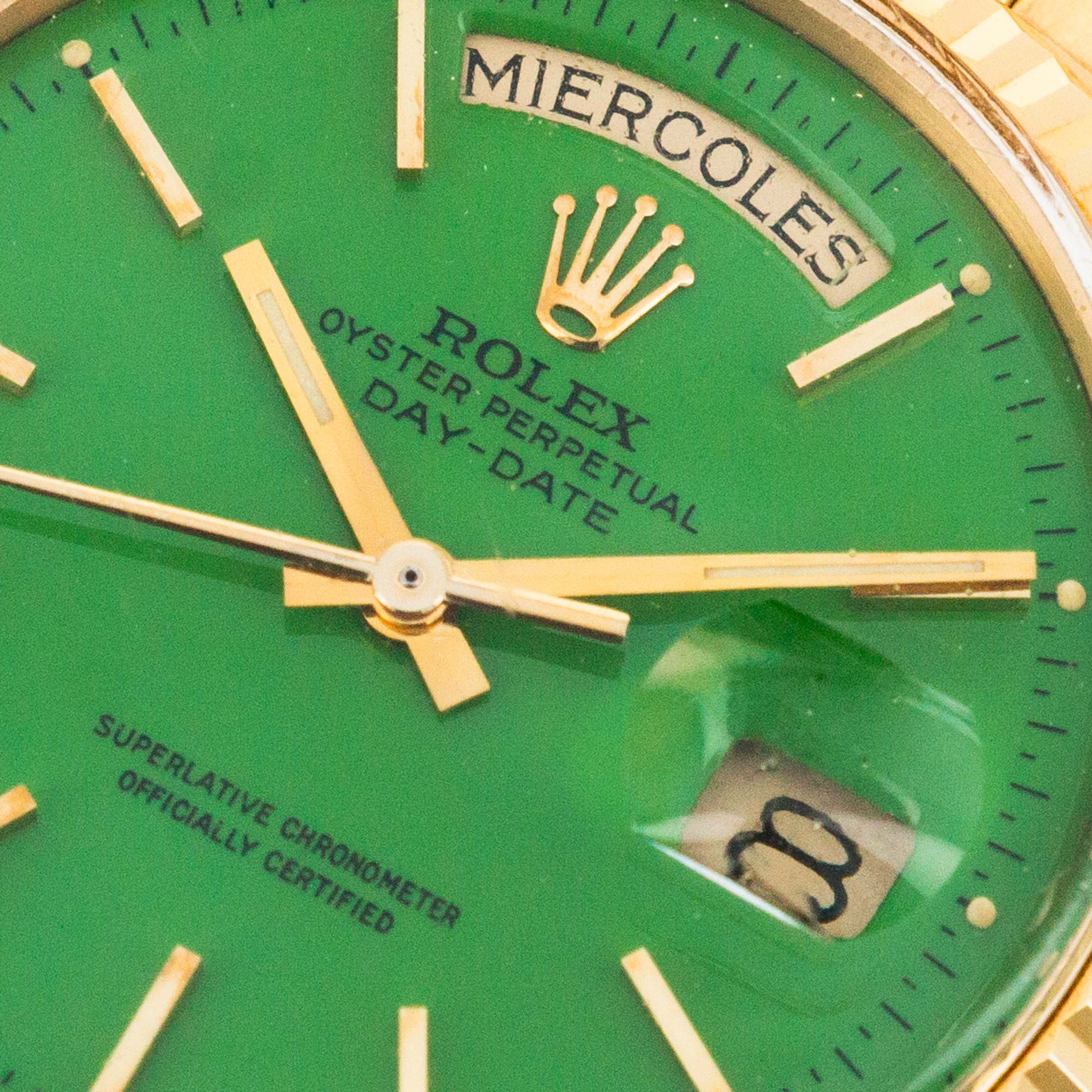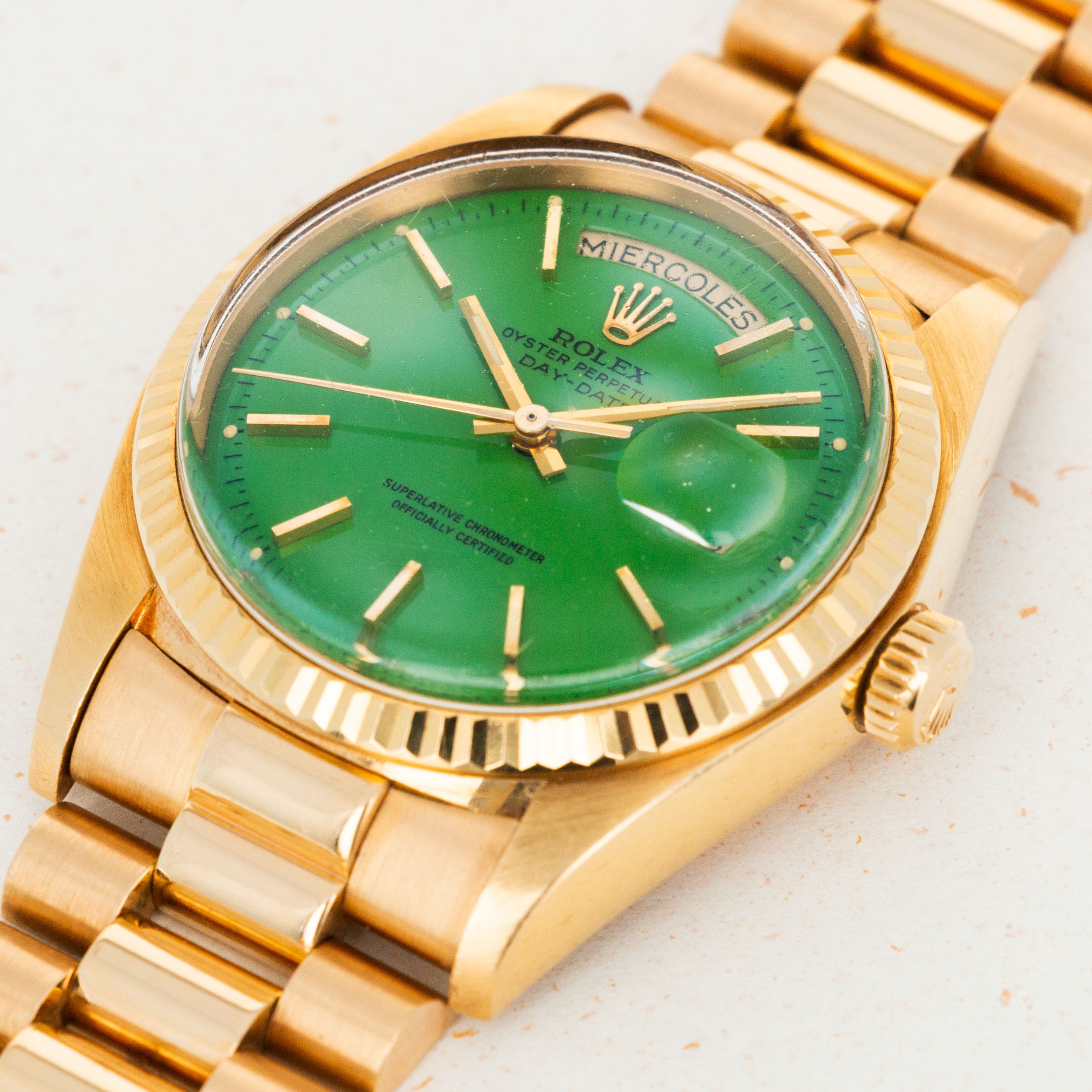 In the 1970's (years ahead of its time), Rolex introduced a range of colorful options to the Day-Date series in very limited quantities. Known as the "Stella Dials", they were named after the lacquer supplier that Rolex used for these dials. There are rumors that the colors were reflective of the flags of certain middle-eastern countries, but this has never been confirmed. Now extremely desired by collectors, the dials initially proved unpopular and many were changed out for ones in the more common champagne color.