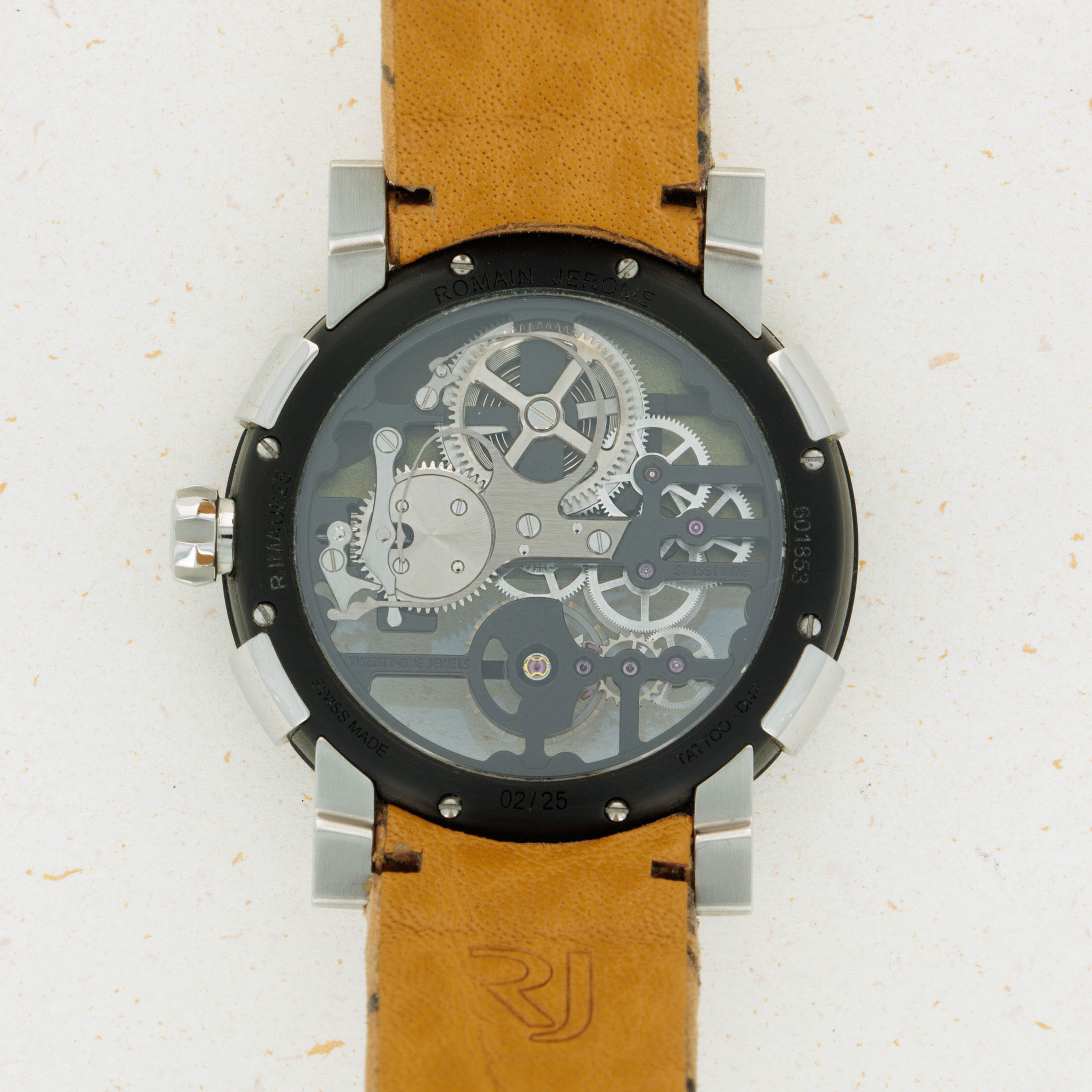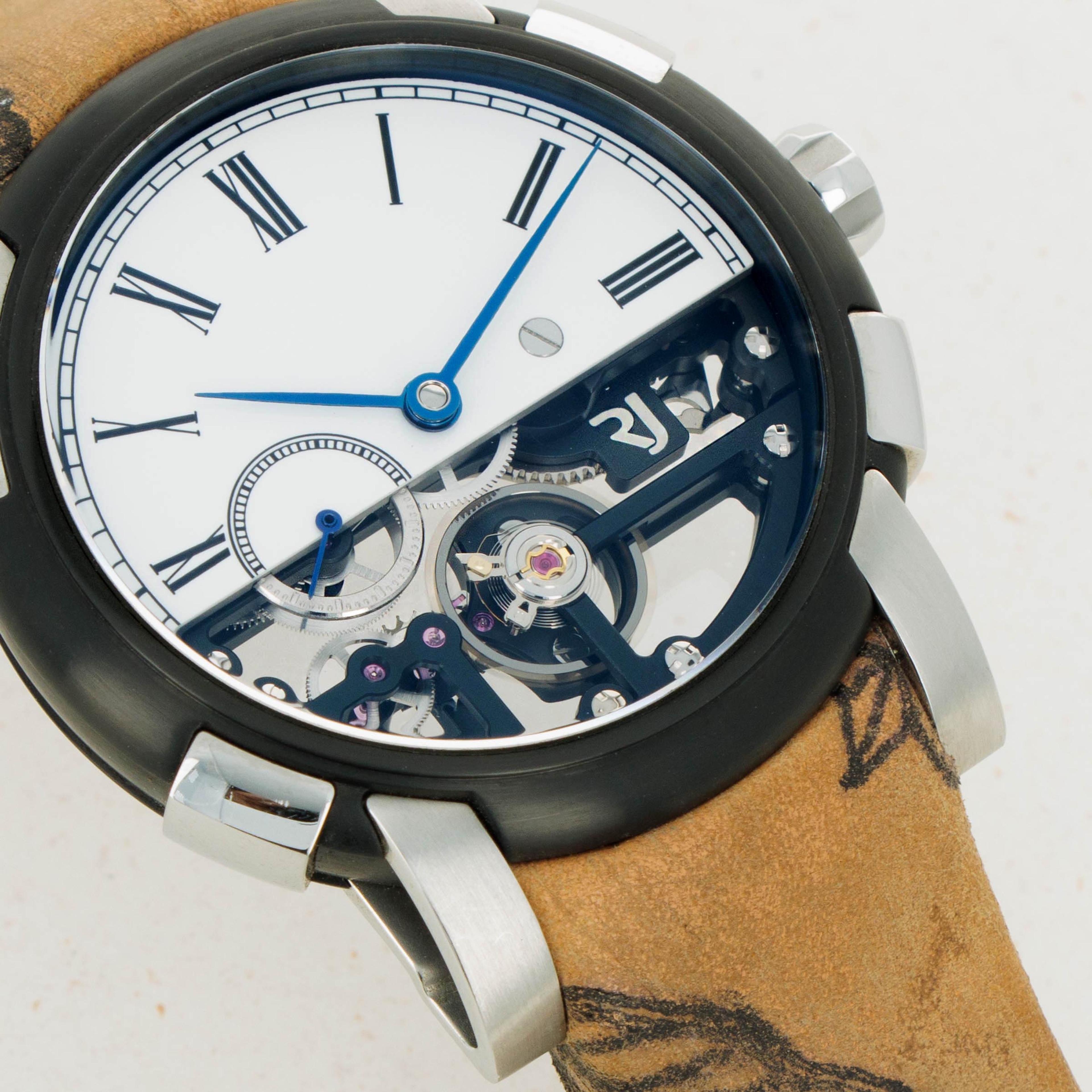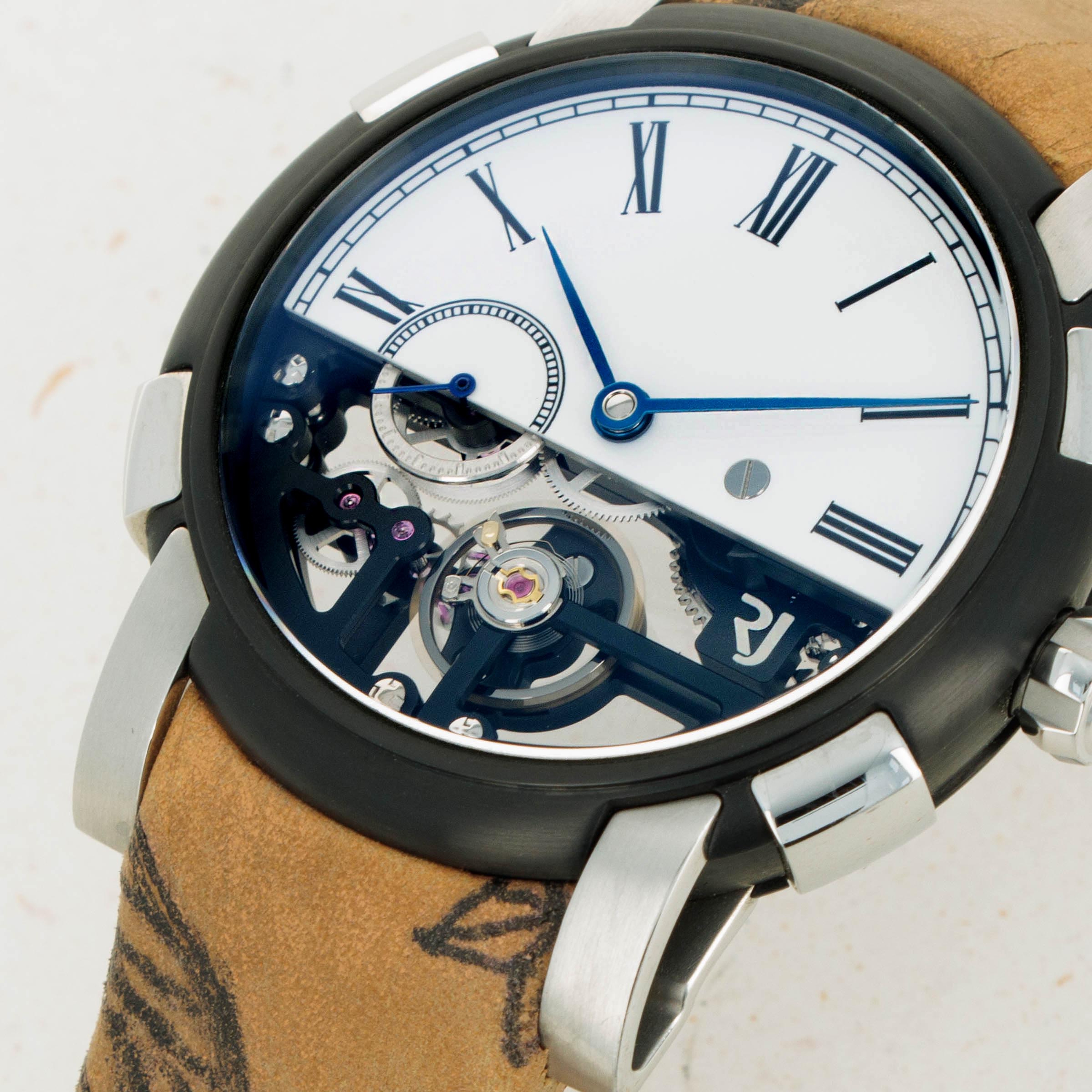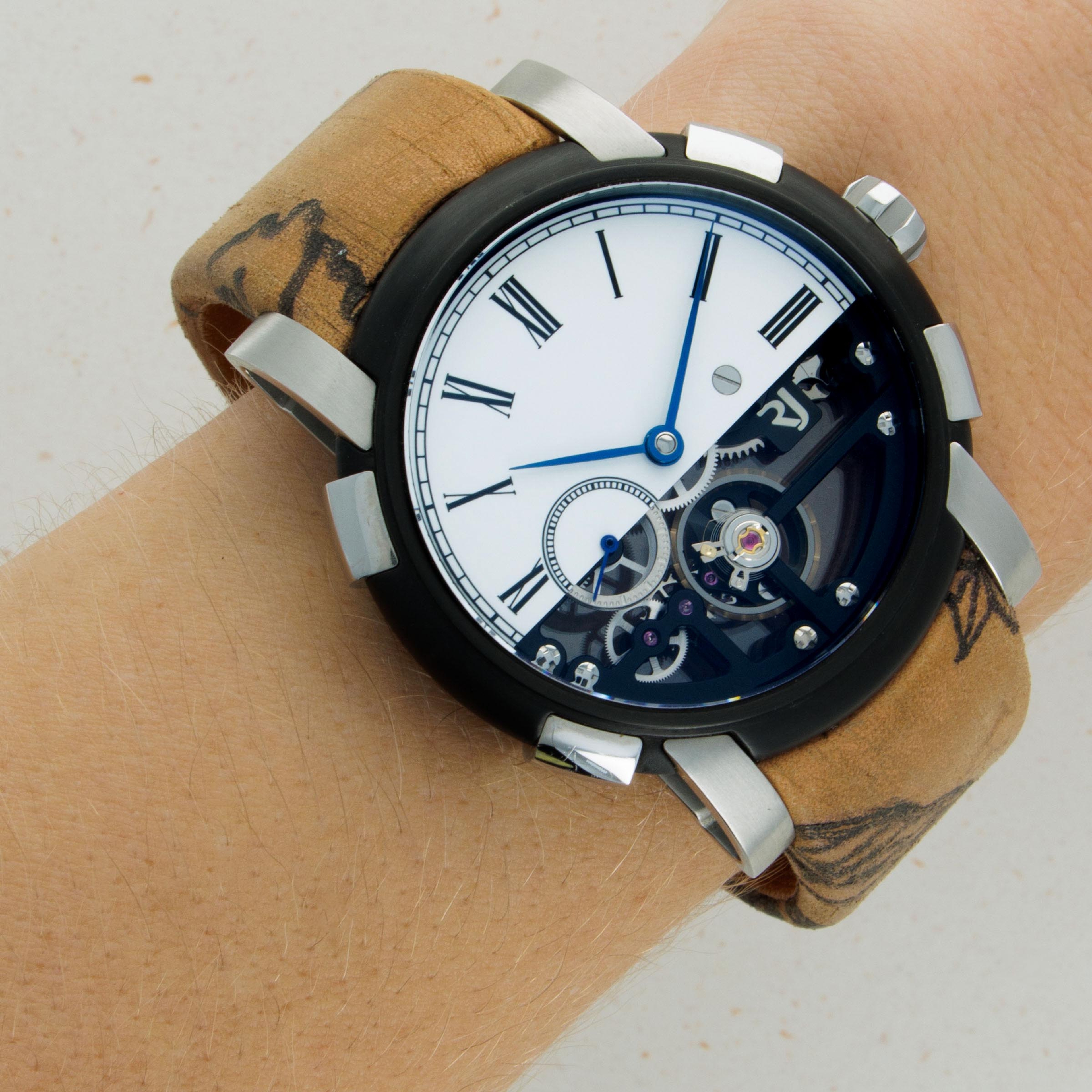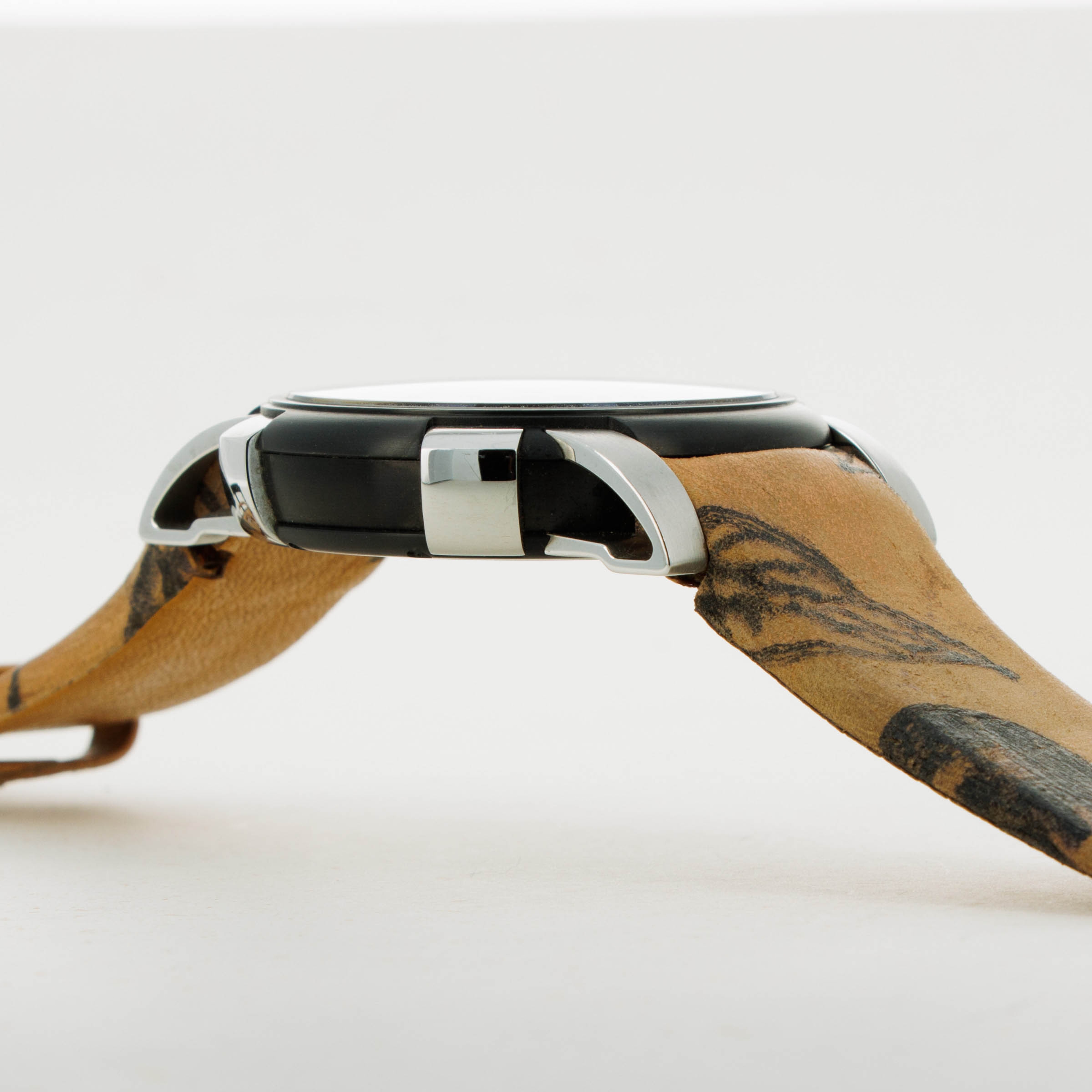 An exceptionally rare watch, the Tattoo - DNA is unique in both its aesthetic and ability to challenge norms within the watchmaking industry. With its tattooed straps, unique dial design, and interesting hands, it is unmistakable as a Romain Jerome timepiece.