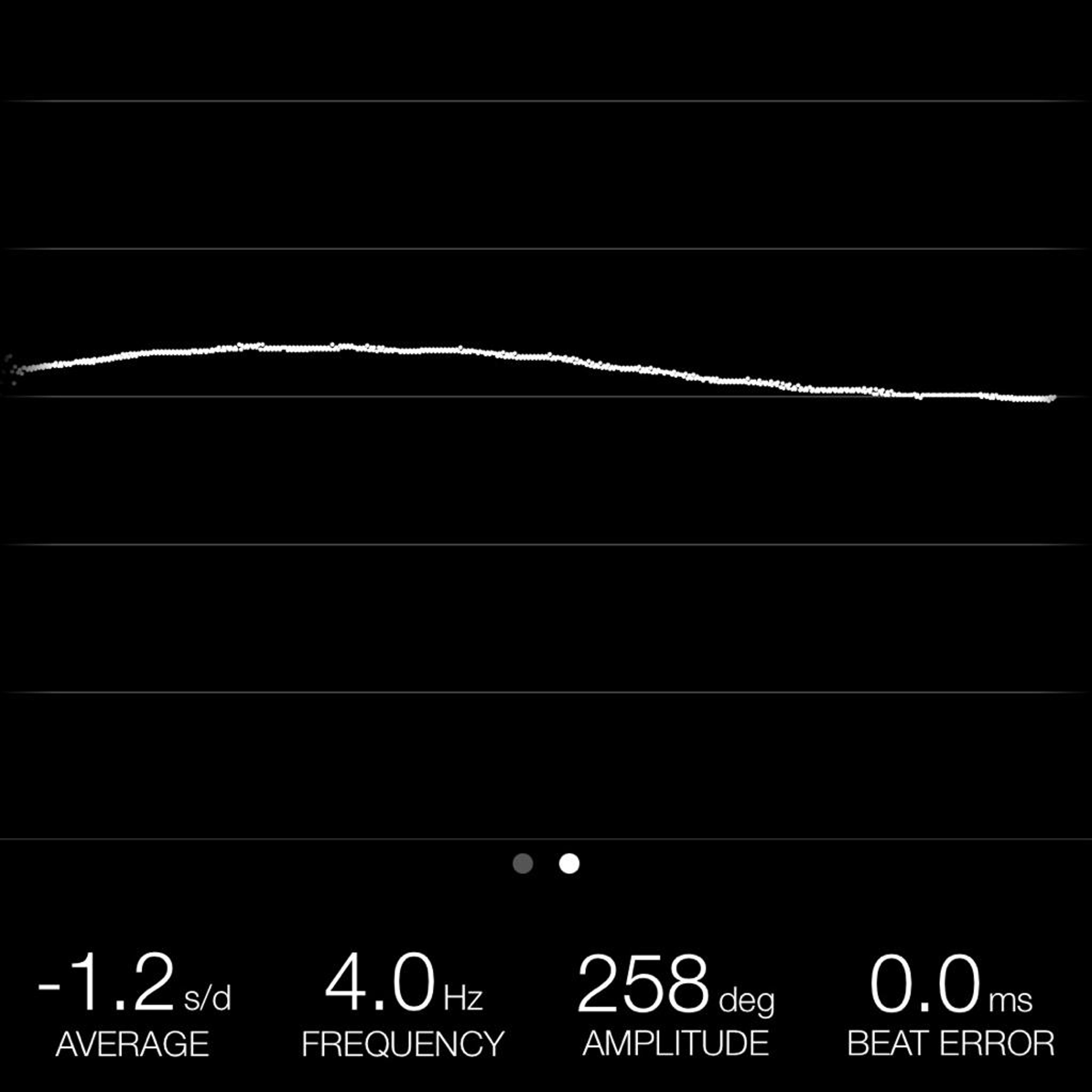 This reading was taken (crown down) with a ONEOF Accuracy Boutique Edition timing machine at time of cataloging. It is provided as a courtesy only, and shall not be construed as a warranty or guarantee of any kind. Please refer to our terms and conditions of sale for more information.
