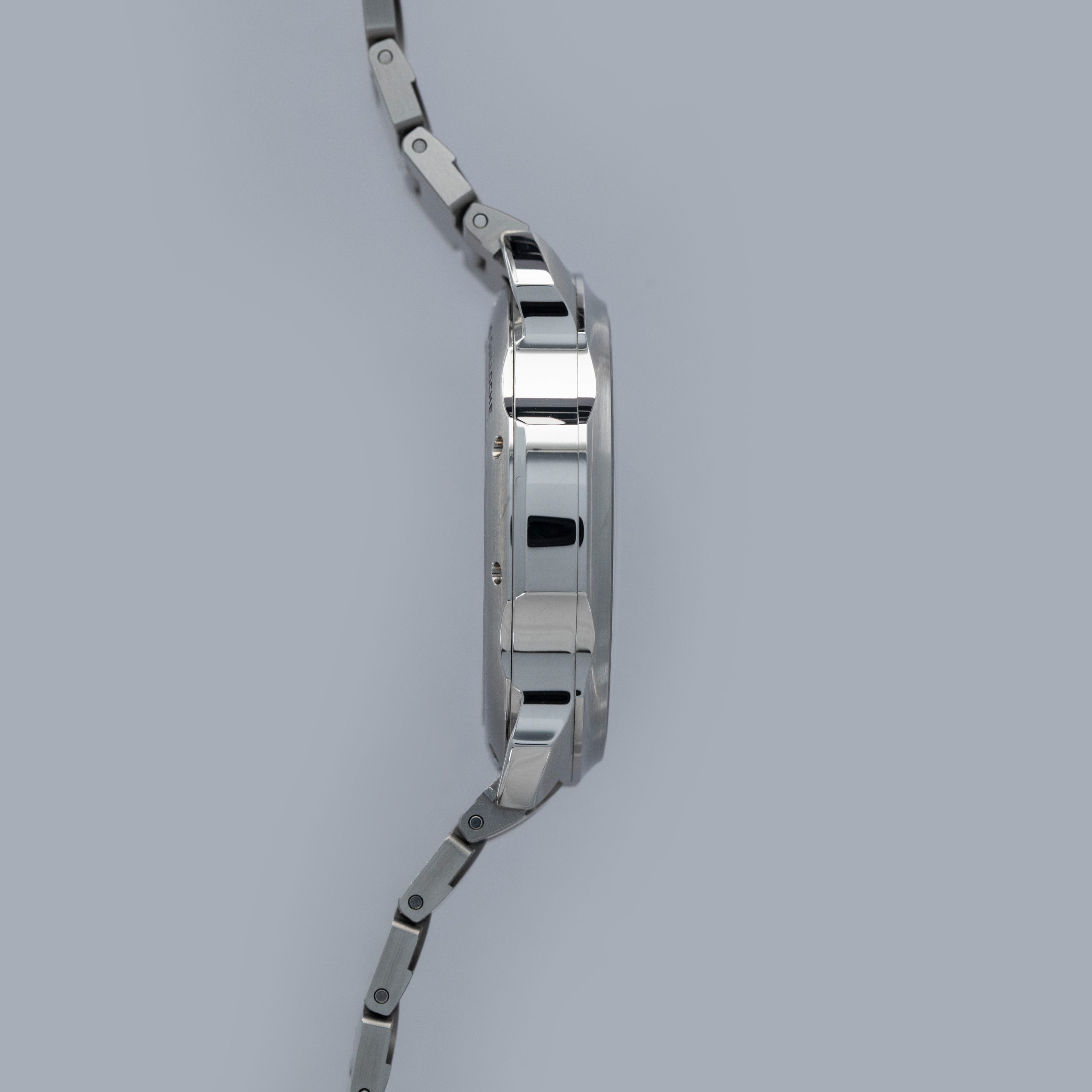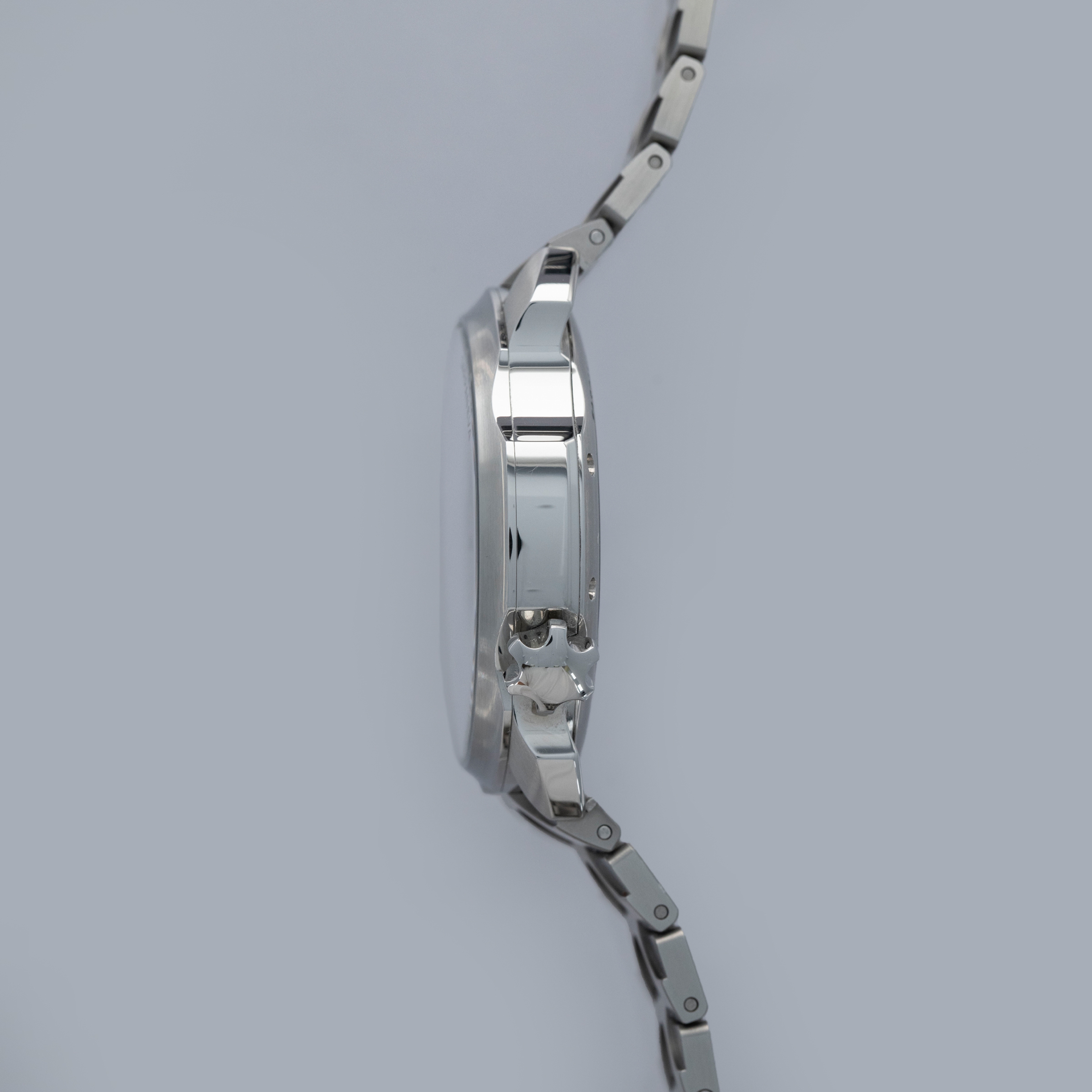The watch is in overall like-new condition. The stainless steel case and bracelet show only very light signs of wear or handling. It comes complete with box, warranty card, and accessories.