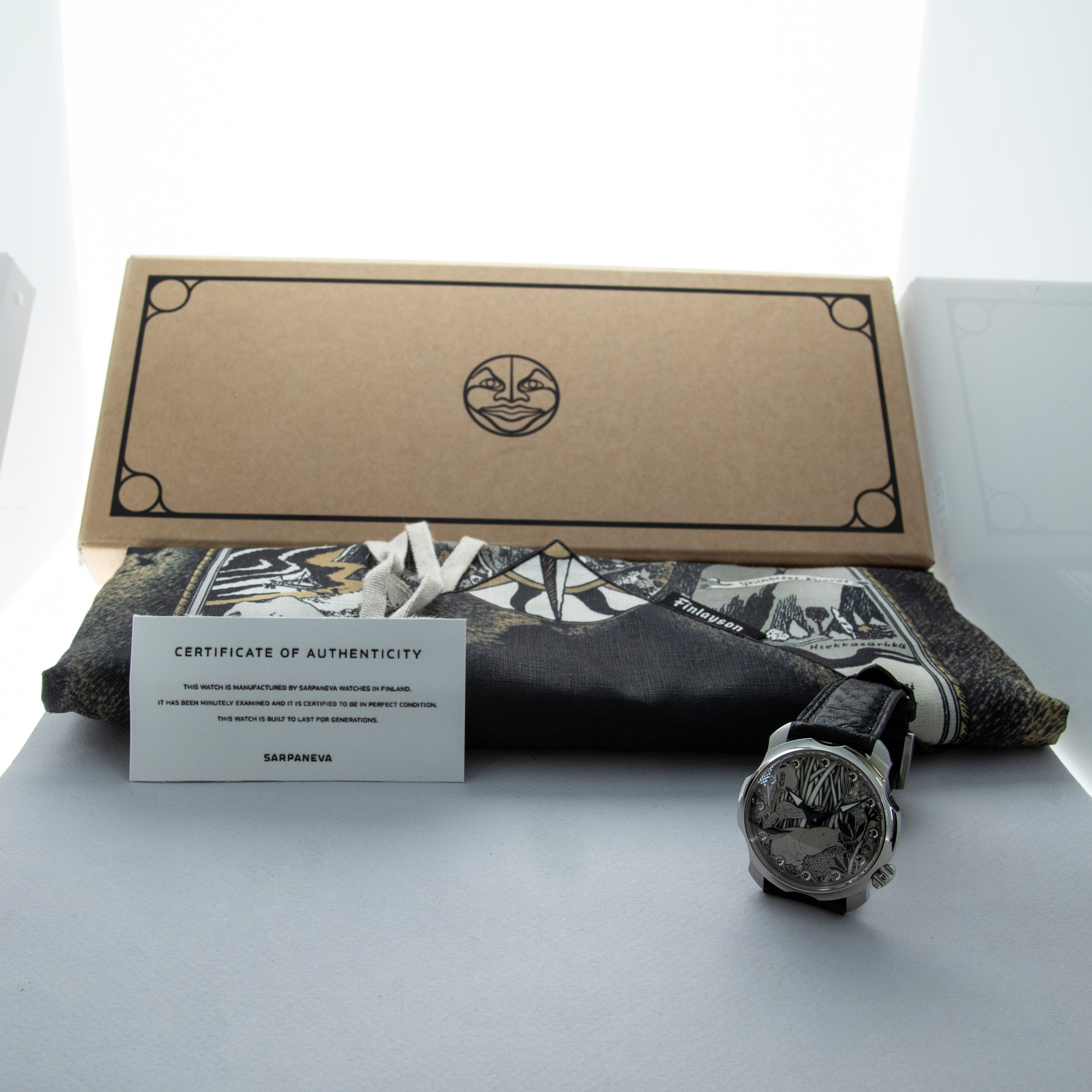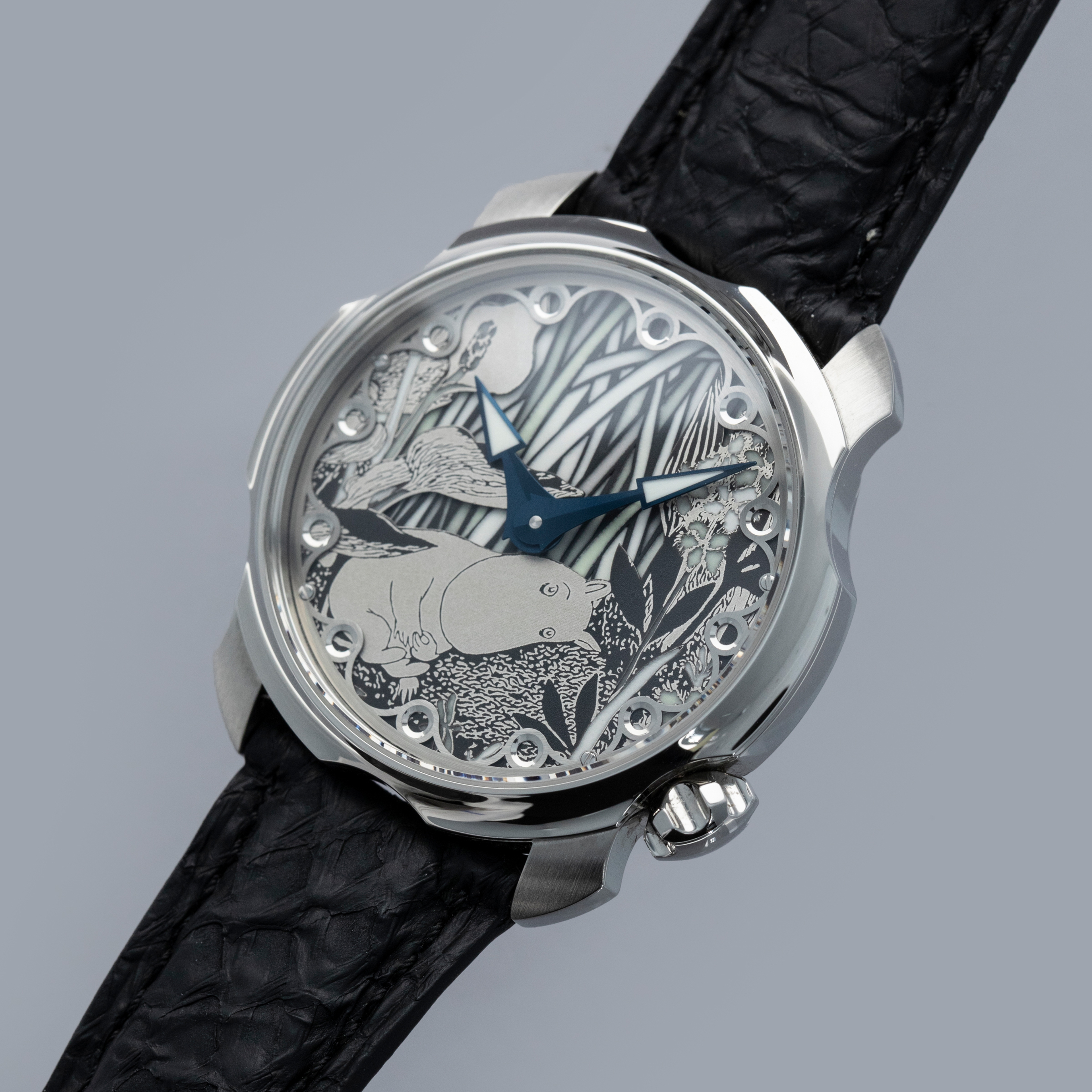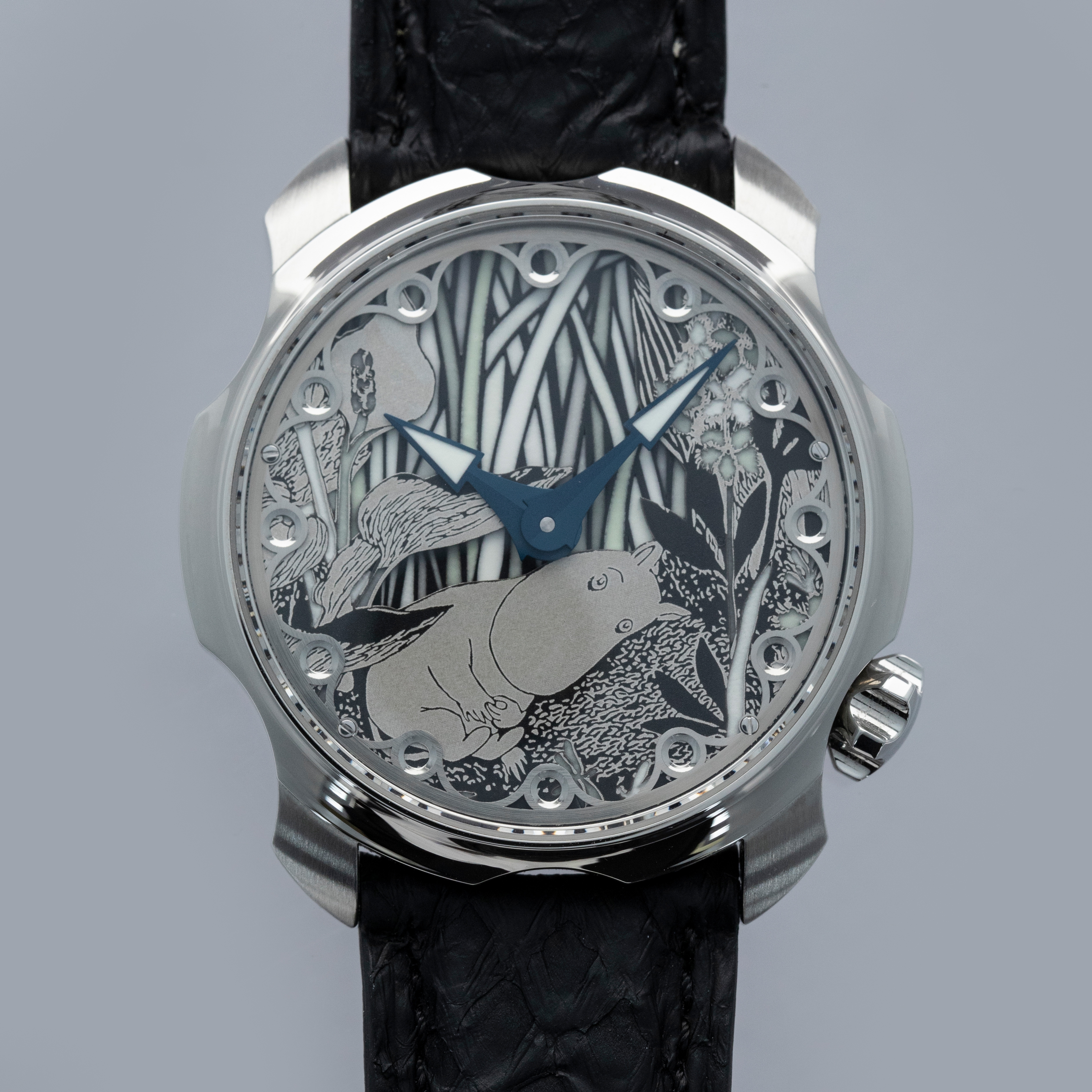 Not ones to half-do a job, Sarpaneva made sure to fit the Moomin with a movement fit for the incredible dial they gave the watch, and so its cal. A10 soprod movement is fitted with a custom skeletonised winding rotor with Sarpaneva's moon face logo.