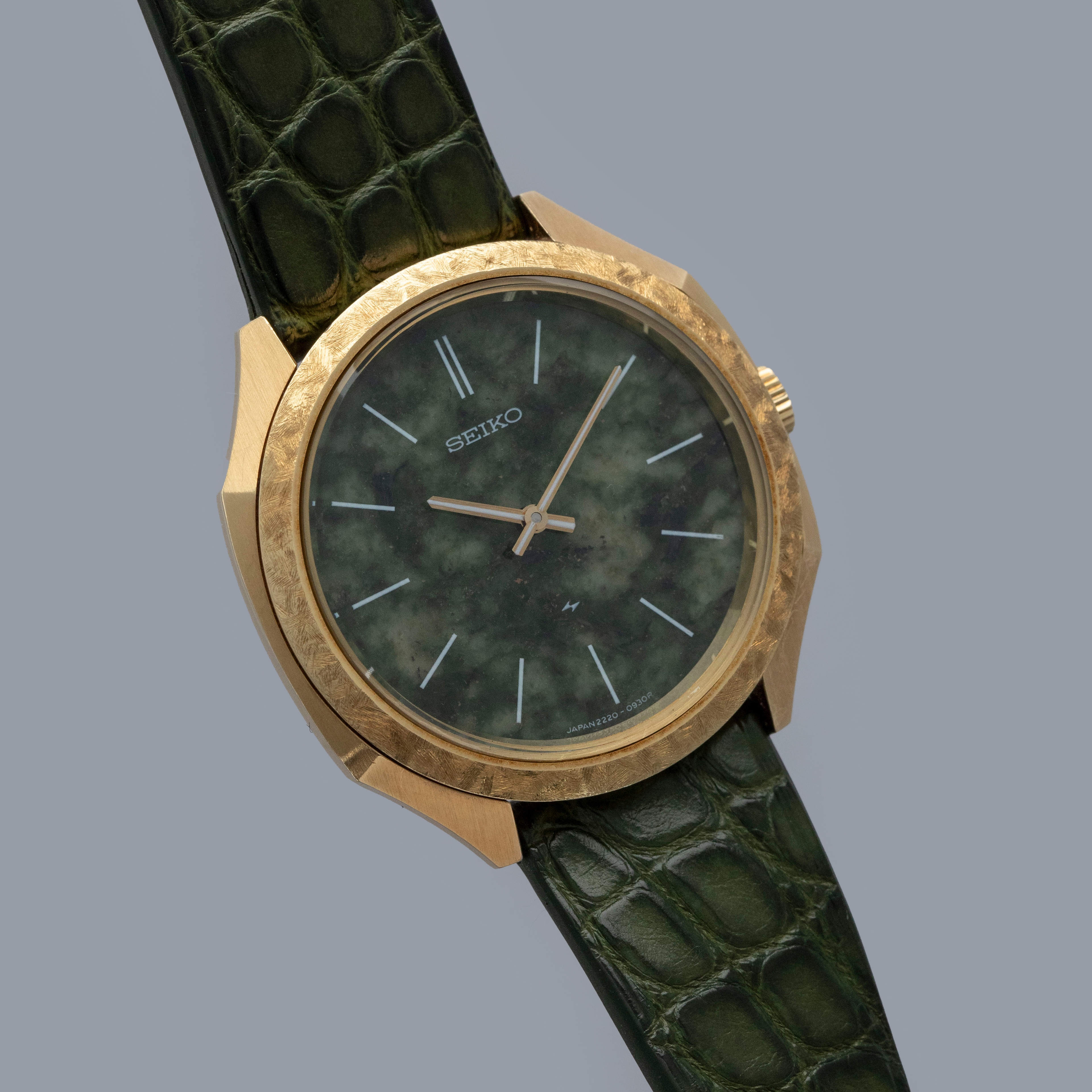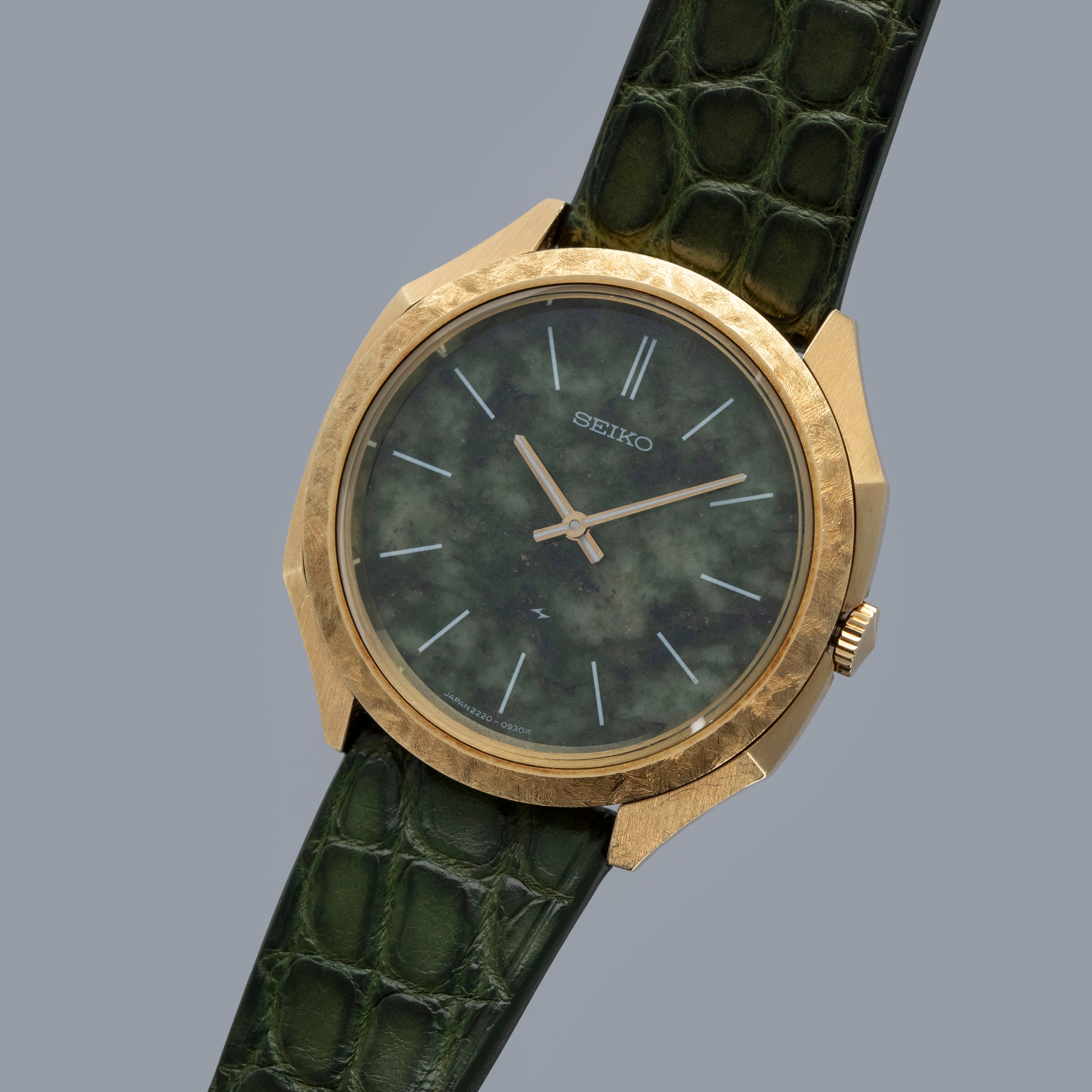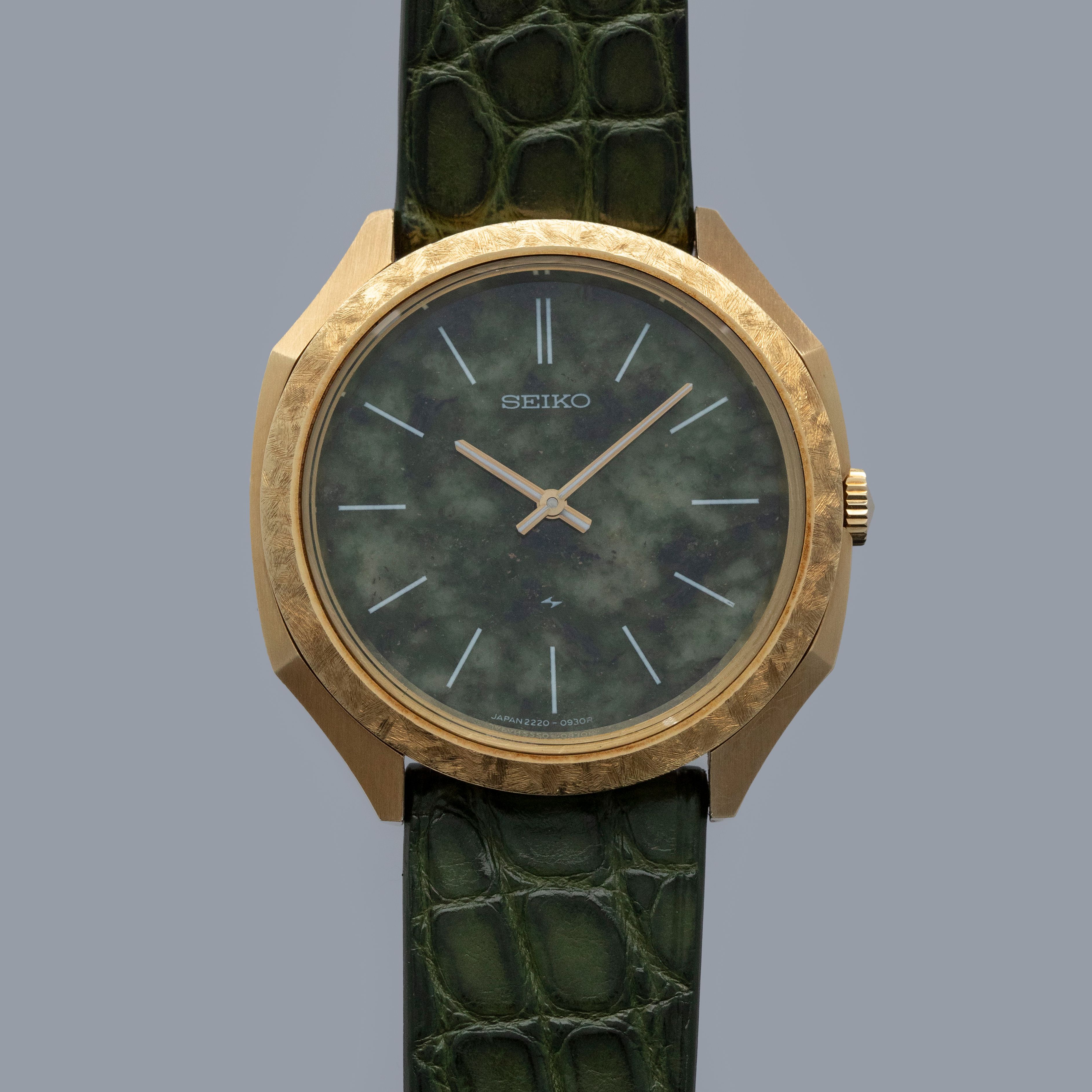 An exceedingly rare and rather interesting watch from before Seiko created the Credor line to focus on high-end watches, this timepiece's 18kt yellow gold case and jade stone dial are the epitome of luxury even by today's standards.