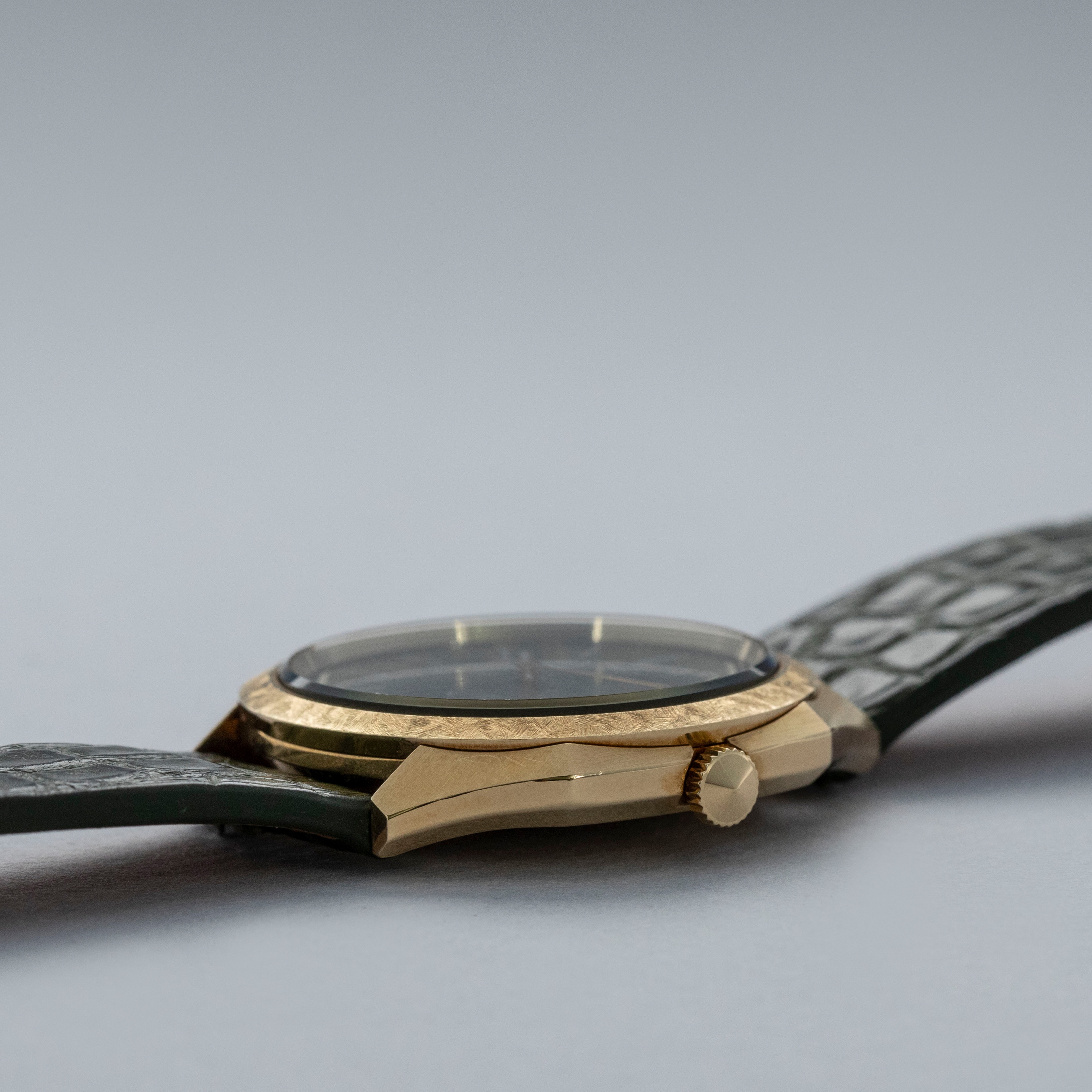 Offered in the 1970s as the pinnacle of Seiko’s horological offerings before they created the Credor line, the Chariot was once the very pinnacle of what Seiko had to offer. Combining impressive horology with luxurious craftsmanship, the Chariot was a thin 18kt yellow gold dress watch with a rather unique 36mm case. Boasting an angular mid-case and lugs, its design is almost octagonal, but with its round Florentine-finish bezel breaking up its angular execution. Identified by its marbled green jade stone dial, this Chariot’s display is elegantly executed and exceedingly rare. Boasting thin sword hands in 18kt yellow gold with white lume, the Chariot is still supremely legible, all while still being a 36mm timepiece that is the embodiment of an elegant and intensely luxurious 1970s dress watch.