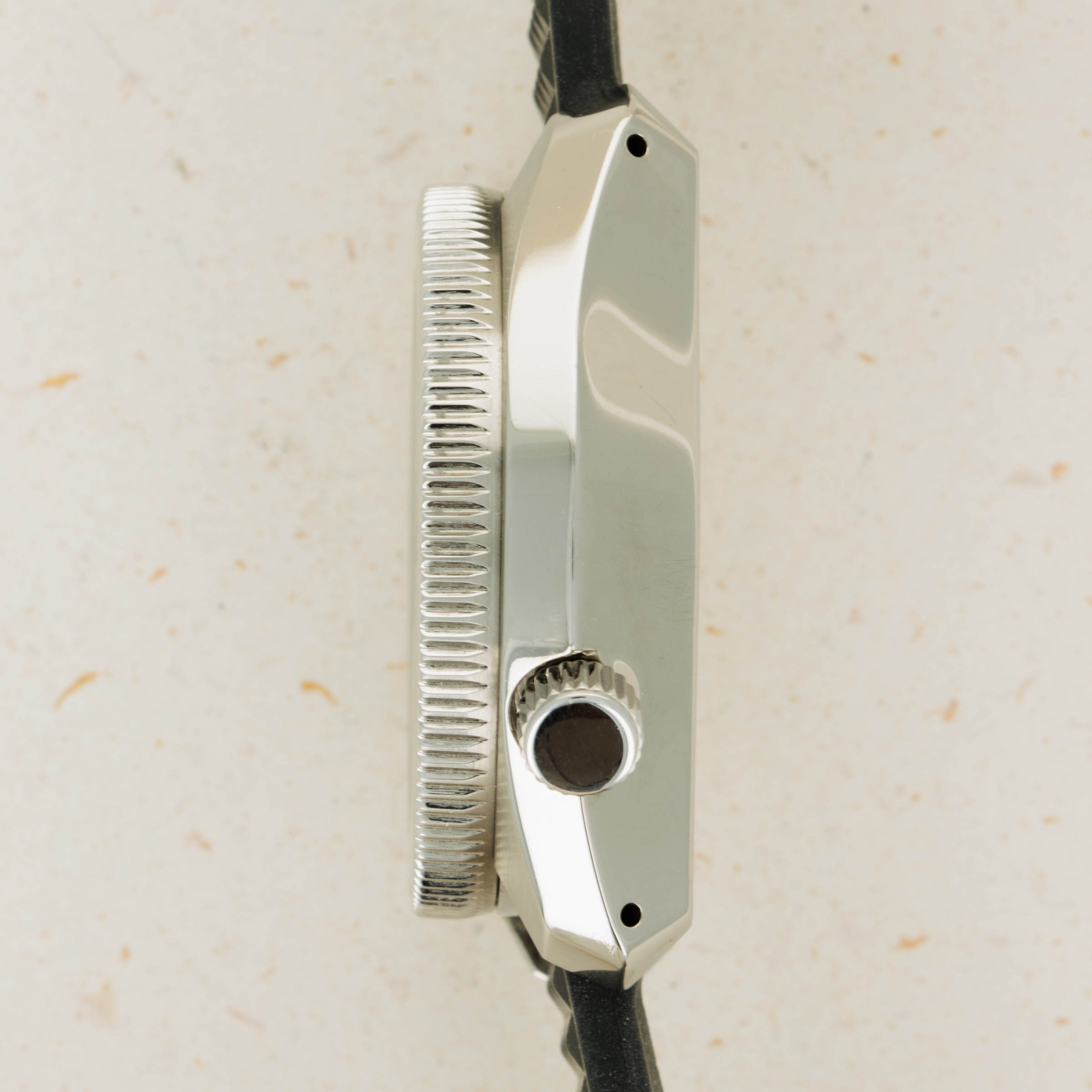 Featuring a hulking 44.8mm stainless steel case that stands 15.7mm tall, the SLA025's monocoque case provides it with 300 meters of water resistance, a feat that was quite incredible for 1968, given even watches like the Submariner ref. 5513 were only resistant to 200 meters at the time.