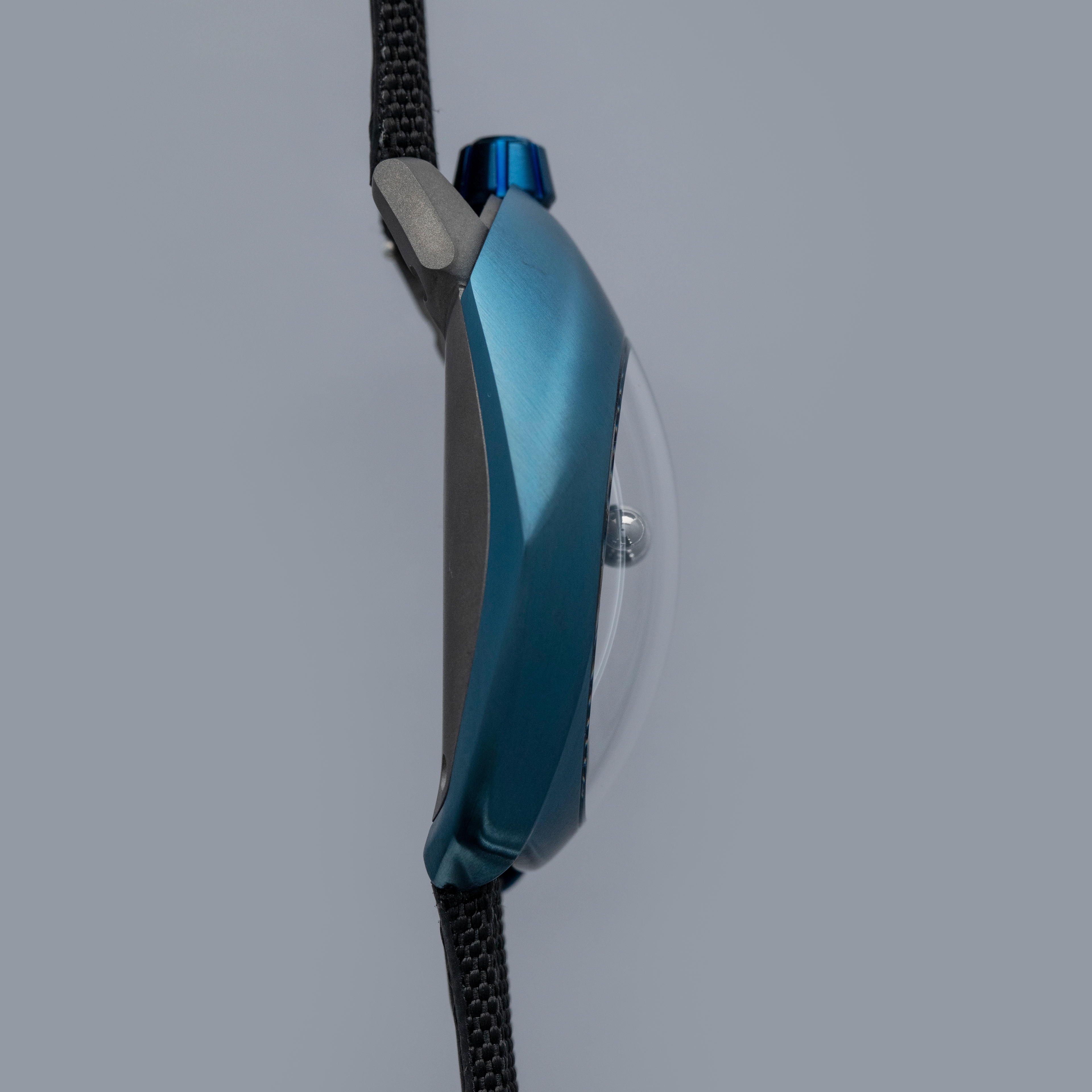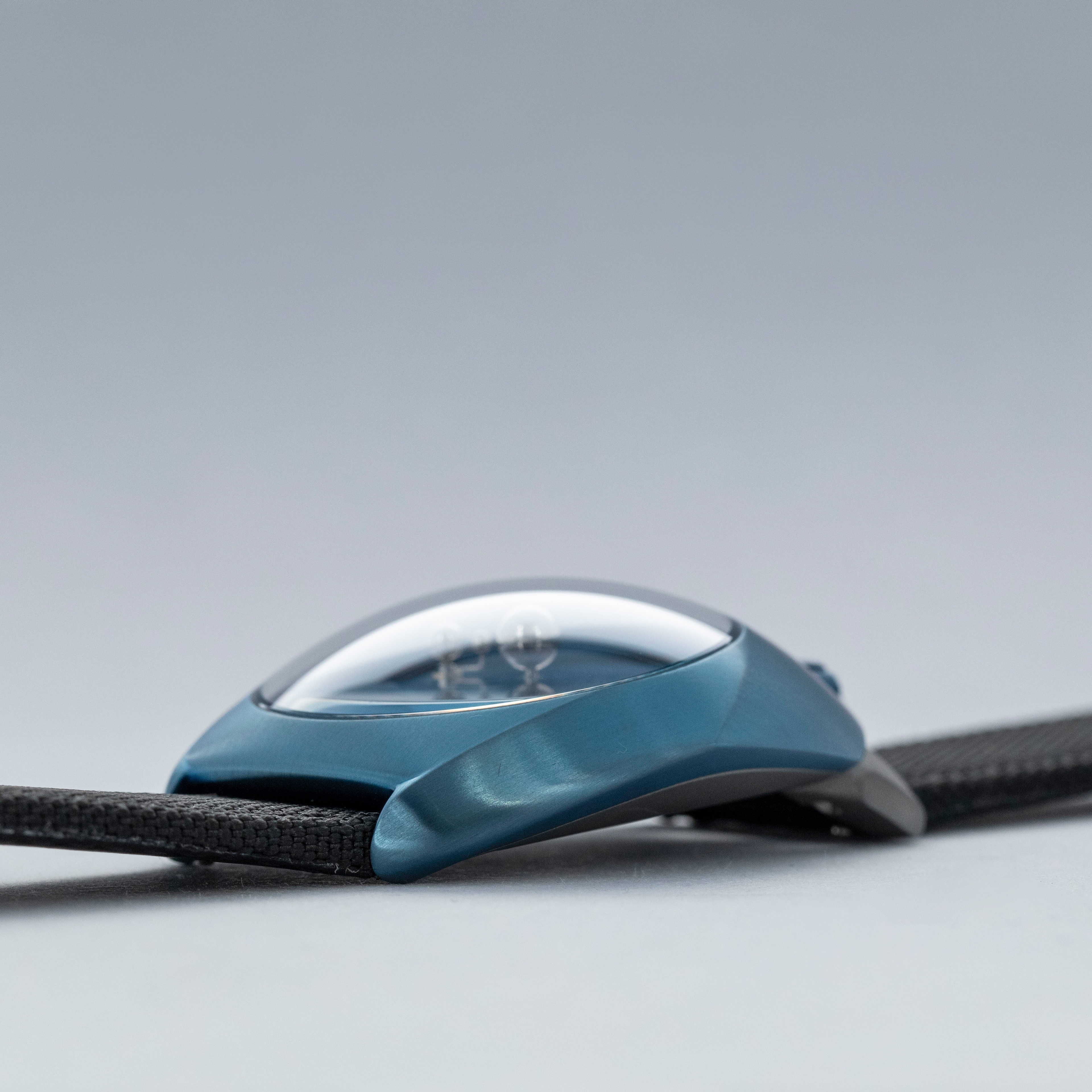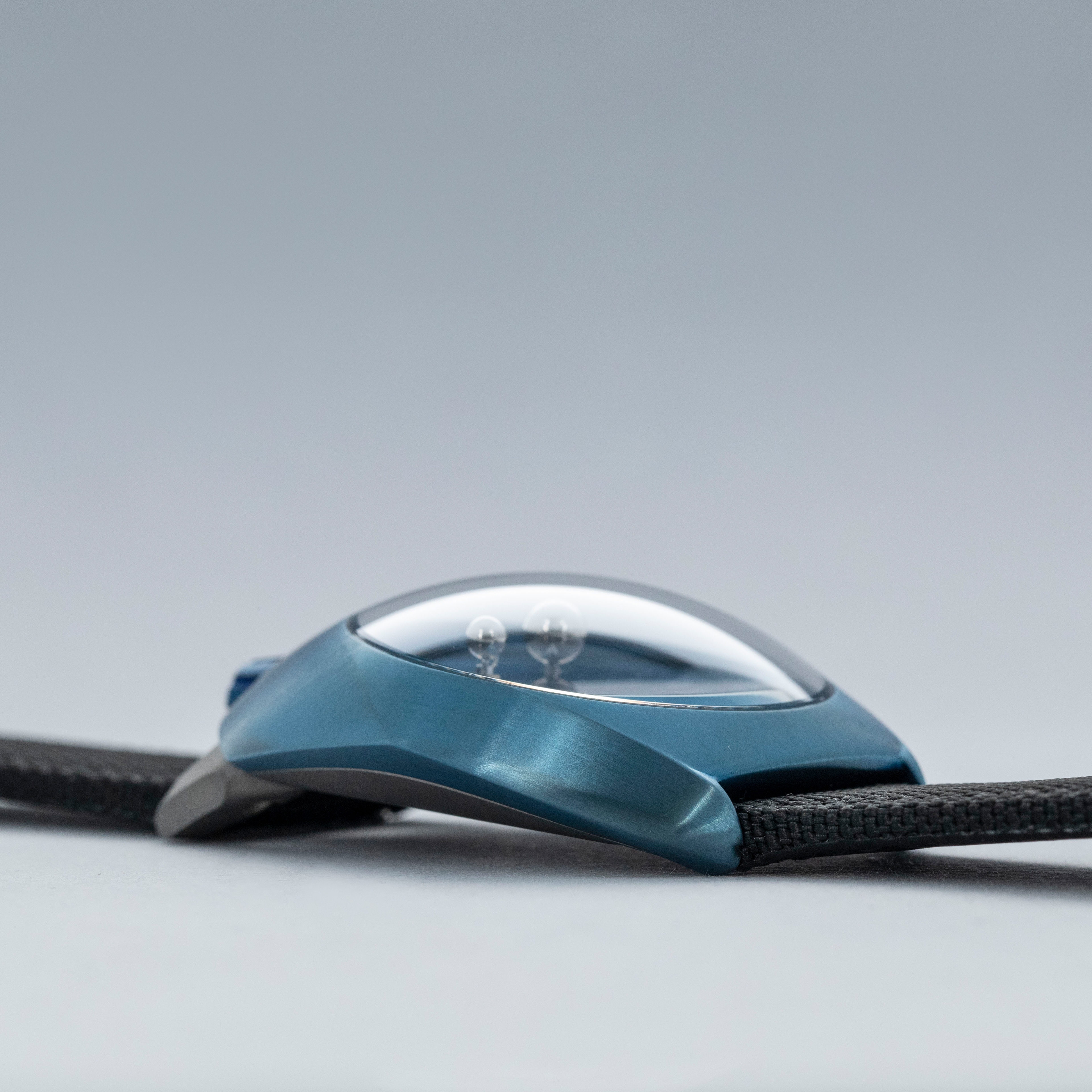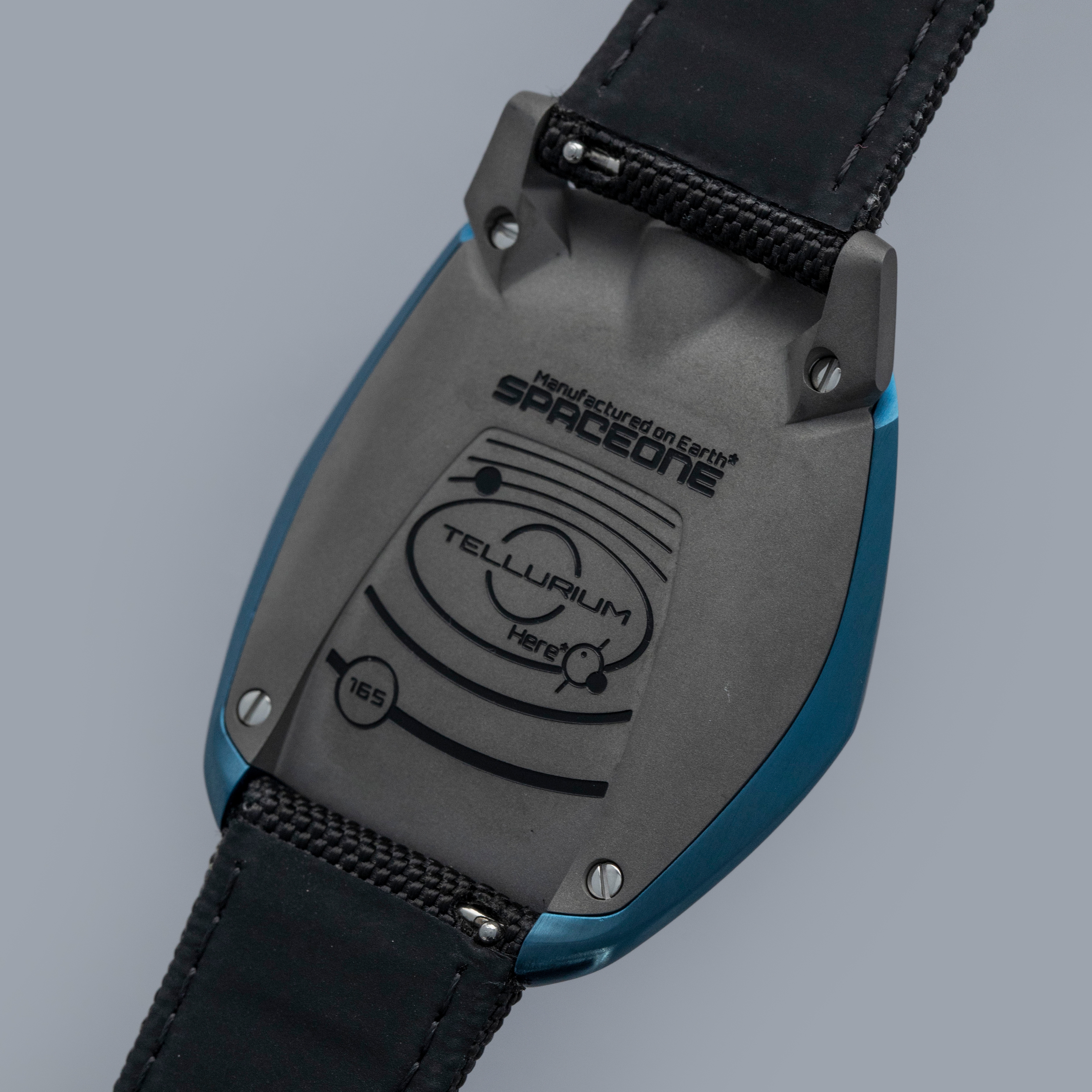 Sporting a futuristic aesthetic, the Tellurium boasts a blue PVD-coated grade 5 titanium case that is shaped like something from outer space.
