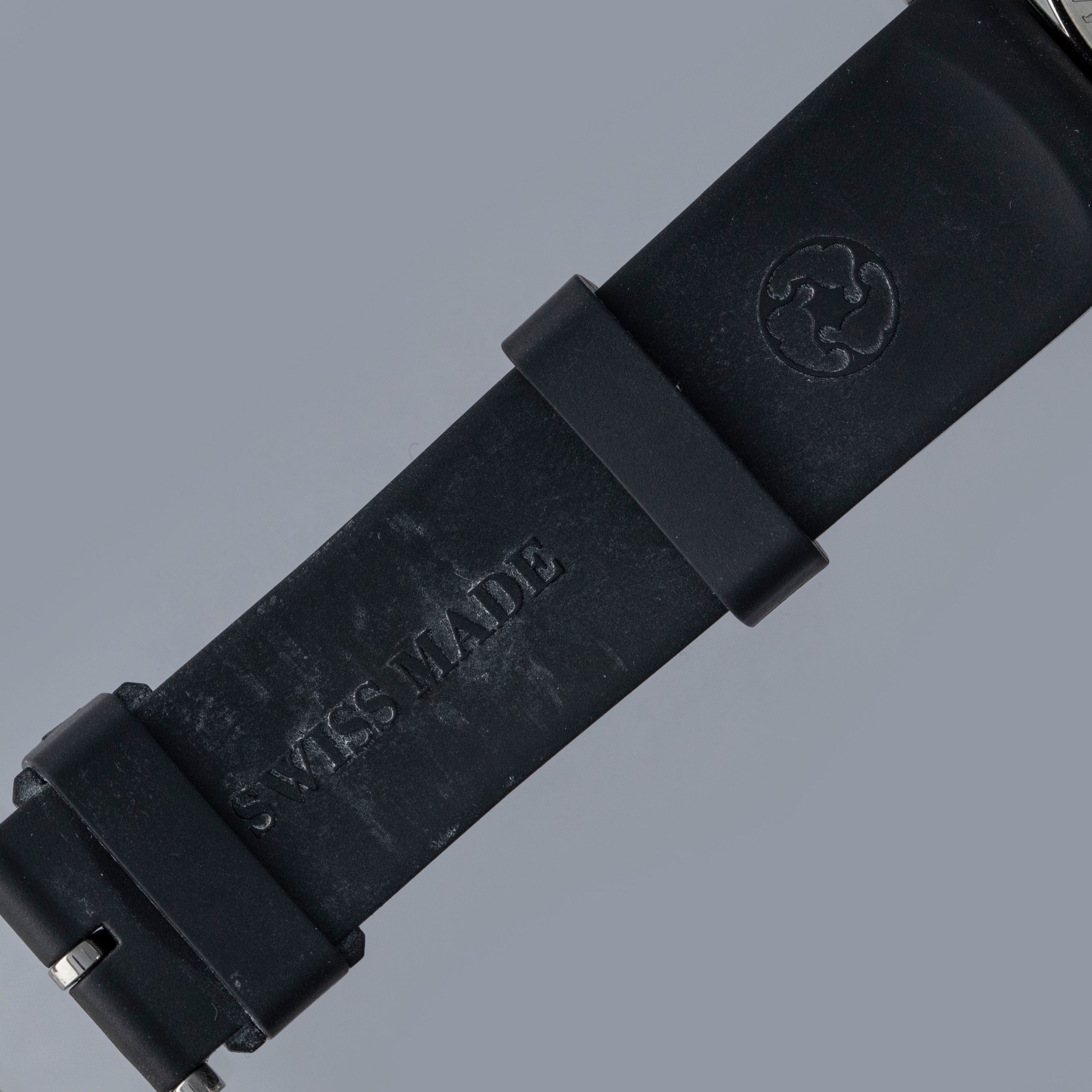 Watch is in overall near-mint condition. The steel case shows light surface scratches. The display case back remains clean, with well-defined engravings around the edge. The dial and hands remain like new. It is fitted with a black rubber strap and steel pin buckle showing light surface marks. Comes complete with box, inner zip pouch, warranty, and cloth.