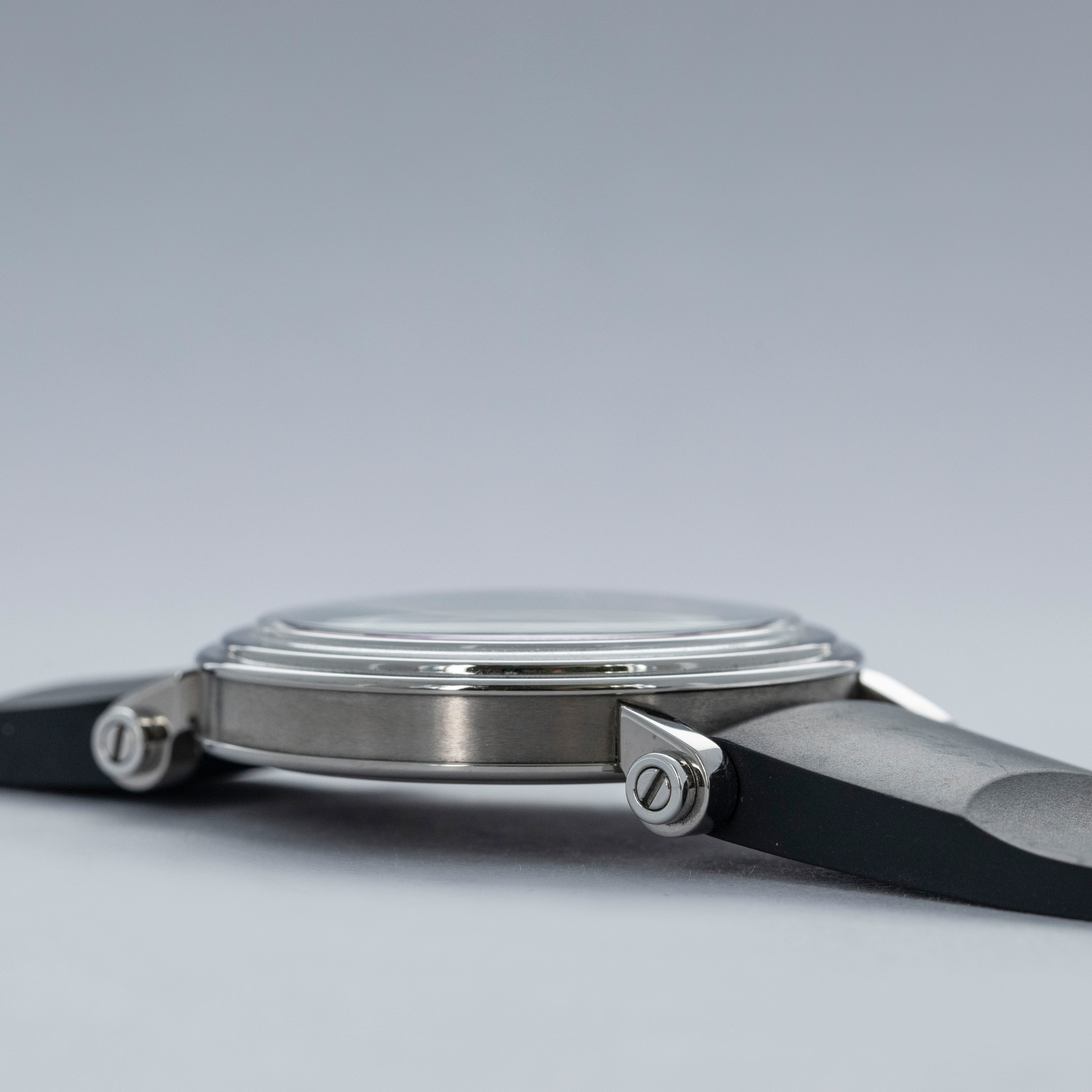 Using Speake-Marin's signature Piccadilly case design in titanium, the Academic Black Tie is both classical in its styling while also being modern and light on the wrist.