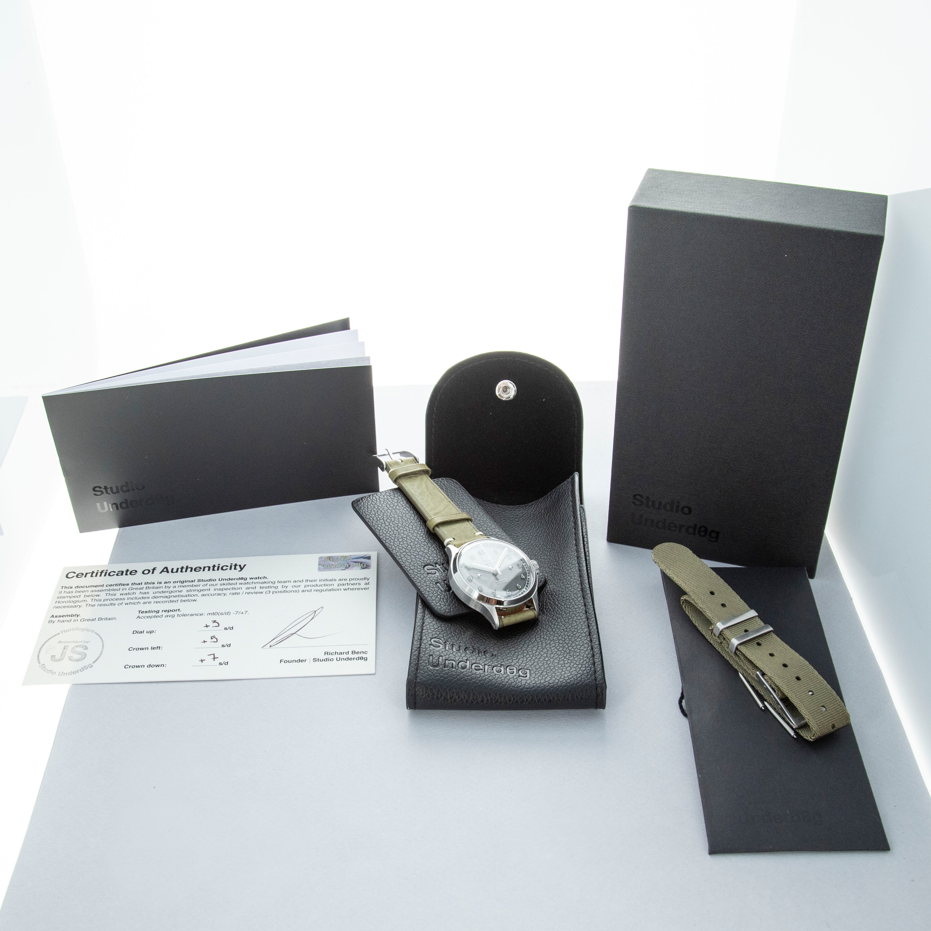 A testament to refined British craftsmanship and timeless elegance, the Studio Underd0g 02Series Field Watch Midnight is an aesthetically innovative timepiece that showcases the strength of one of the best modern watchmakers within the UK today. Delivering a balanced blend of vintage aesthetics and contemporary styling, which is mainly delivered through its grey dial’s construction, with its numerals and indices sitting on top of the dial via a sapphire disk, the 02Series pays homage to famed Dirty Dozen field watches in a modern and playful manner. Boasting a 37mm x 12mm stainless steel case with a two-part construction, the 02Series is a wonderfully wearable watch that is only 12mm thick thanks to its manual-wind cal. SW210-1 movement.